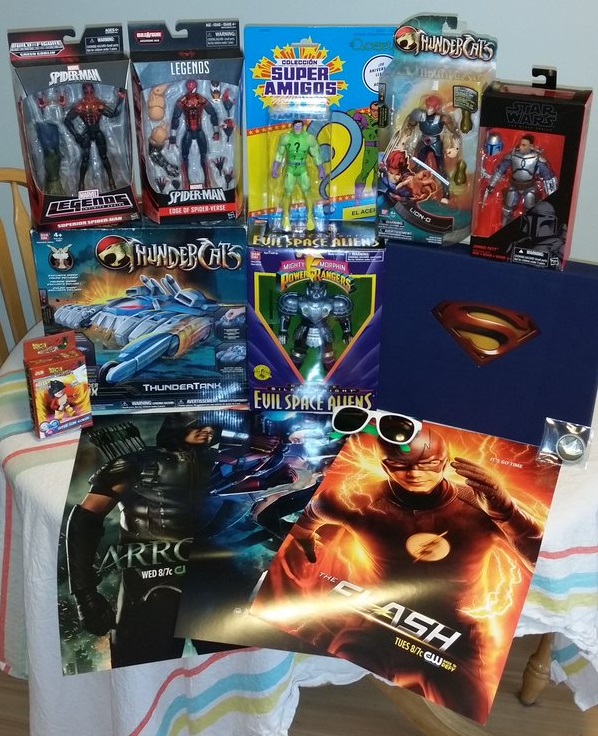 Marvel Legends Superior Spider-Man Marvel Legends Spider-Carnage Super Powers 30th Anniversary El Acertijo (Green Lantern as Riddler) Thundercats 2011 6" Lion-O Thundercats 2011 Thundertank Star Wars Black 6" Jango Fett KO Lego "JLB" Super Saiyan 4 Goku Silent Knight Power Rangers Vinyl Figure Superman Returns Photobook Slipcase Hardcover LCTC 2016 Exclusive Power Coin Flash, Arrow, & Legends CW promo posters All in all a pretty good haul this year. I spent far less this year so I walked away with things I wanted much more, and wound up getting killer deals. That Thundertank alone was only $5. This con has lost some great dealers I used to buy from, but there's still enough to enjoy.