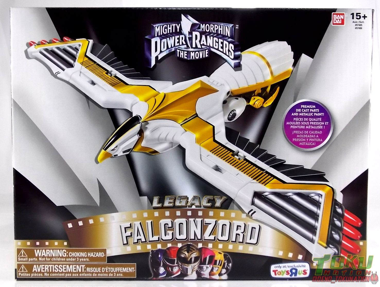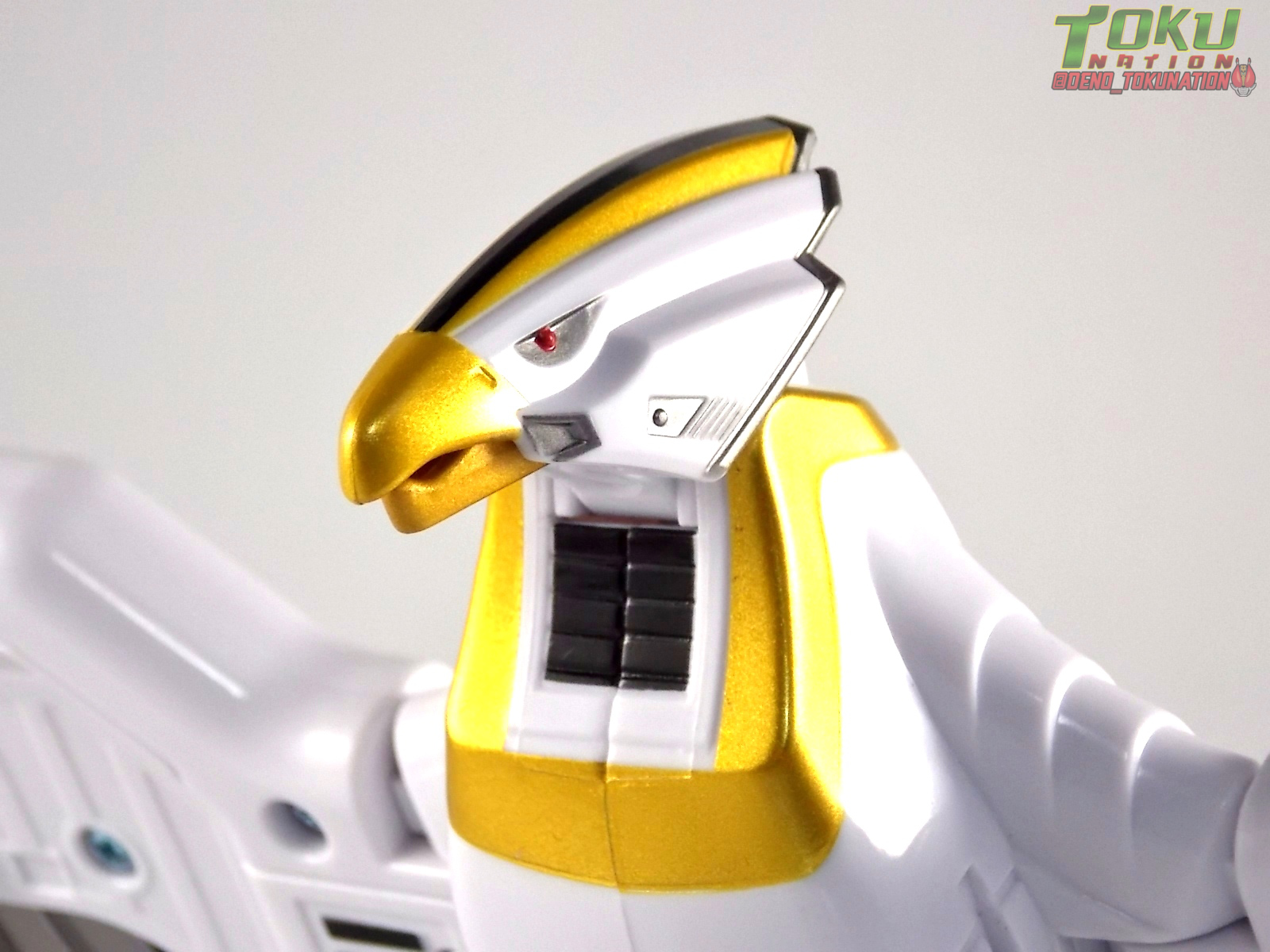 It's been a long time coming but the Power Rangers Legacy toy line has finally made it's way to the era of the original theatrical Movie & Season 3 of the original series. So it's time for us to take a look at the Legacy Falconzord! And we've included a full comparison between it and the original vintage Falconzord! Honestly this'll be a pretty straightforward review. There's not much to this figure, but I'll try to elaborate on the significant points. Packaging Much like the 5" Legacy Movie Ranger figures, the packaging of the Legacy Falconzord does it's best to approximate the vintage movie style packaging the line had in 1995. Now that isn't quite a 100% match-up in this case. As you can see I've included some comparison shots with the Vintage Falconzord in it's box (figure comparisons further below too). You can see that the box is much more narrow, the film reel is gold rather than red, and of course there are a few other differences minor differences, particularly on the back of the box. Overall I don't feel it quite hits the mark as well as the Legacy Megazord, Dragonzord, etc did. But it gets the job done. The interior tray is the standard cardboard we've gotten used to with the Legacy line, obviously nothing like the styrofoam of the old days. Now of course the original Falconzord was also eventually released in standard MMPR Season 3 packaging as was the Megazord after their short run in the "Movie Edition" style boxes. It's stands to reason that such a release could materialize for the Legacy Falconzord and the forthcoming Legacy Ninja Megazord. Figure The Legacy Falconzord comes packaged in 3 parts. The primary body and the two wing tips. This explains the smaller box when compared to the original. To get the wings on you just need to plug them into the sockets on the end of each wing stub. It's a little tricky as there's a sliding extending joint inside the wing to fiddle with. This facilitates the wing articulation you get when posing the Falcon. But this is the only assembly you need to do to get the full figure. At first glance it really is a pretty nice and impressive looking figure. Now I've included as many feasible comparison shots between the original & Legacy as I can to illustrate the similarities & differences properly. The primary feature of the Legacy that I see people site as it's superiority over the original, is that you get lots of fully painted details that on the original were decals. Now this IS nice. There's no denying that these paint apps are crisp, they really look great. This is especially true on the underside of the falcons' neck, where the gold trim and black center of the neck on the original were cumbersome decals. Now while the paint apps are clearly less difficult to deal with, in at least this location, they really aren't accurate. They just don't match up to the show model. Of course there are some paint apps that weren't even applied as decals on the original. Like the black lining the rib cage of the Falcon, those weren't present on the original in any form. The backside of the Falconzord of course features the best use of the paint apps, the lining around the tail as well as the broad wing design. These look great, again the original decals were troublesome multi-part pieces. I actually applied the decals to my vintage Falconzord jsut for use with this gallery to demonstrate how the Legacy stacks up. Paint apps that do work aside, there's almost no qualitative functional difference that makes the Legacy Falconzord better than the original. Sure, the legacy Falconzord features diecast feet, really nice diecast feet. It has a hinge in the end of the wing that lets you pose them at some cool odd angles the original just can't achieve. The neck has a much more full ranger of motion up & down. The tail does as well, allowing you to rotate the Falconzords' wings fully forward, stand it flat-footed, and fold the tail up sufficiently enough that it can hold that pose while standing. The original can't do that because the tail couldn't rotate up far enough. These are totally true positive things to say. But that barely differentiates the figure enough from the original to truly call it a "Legacy" release in my opinion. The claim of die-cast parts on the packaging literally applies just to feet, that don't really need it to even be functional. While the wings are articulated, the wingspan still winds up being just a tad bit shorter than the original. While the paint apps look great, the gold is off from original toy. Now to me the show accurate paint apps matter a bit more, but for some I can see how the lack of gold chrome would disappoint them. To each their own. But here's the real buzz kill of this figure, there's no Zord Builder present, period. For people who've collected the Legacy line up til now and who've lodged legitimate complaints about how the Zord Builder system breaks up the design structure of a toy, you're in the clear now. At least in this case. But if you've got a collection consisting of Bandai America Megazords from the last several years, you'll find this one's literally incompatible with anything else on the market right now. The implementation of Zord Builder into Legacy products has been declining with each release. To the point that it's marginally present in the Tigerzord & Thunder Megazord, just to facilitate a single combination. And on the Falconzord it's absent entirely. There are some fold out clips on the wings that look to facilitate what I can only guess would be a combination with an eventual Shogun Megazord. But the only other figure currently teased on the packaging and known to be in production is Legacy Ninja Megazord. But the clips that were present on the underside of the original Falconzord, that allowed it to combined with the original Ninja Megazord, are not present in any fashion on the Legacy. So exactly what are they planning in terms of combining it with the Ninja Megazord? Final Thoughts Honestly I