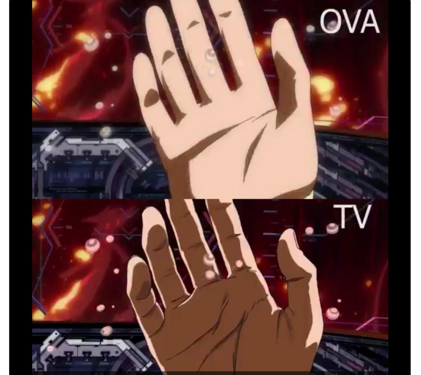 So somebody did find a difference between the OVA and Tv version of Unicorn so far. They redrew Banagher's hand.