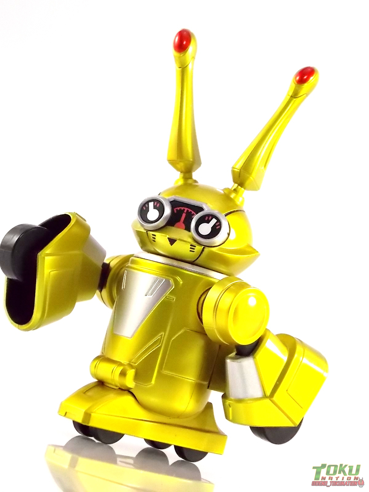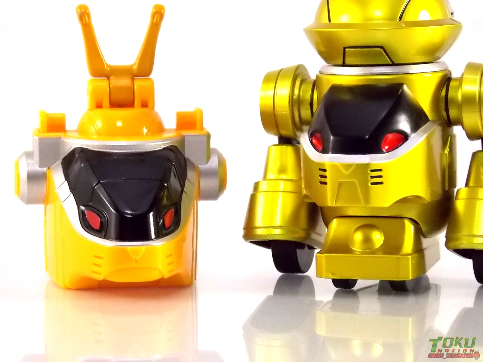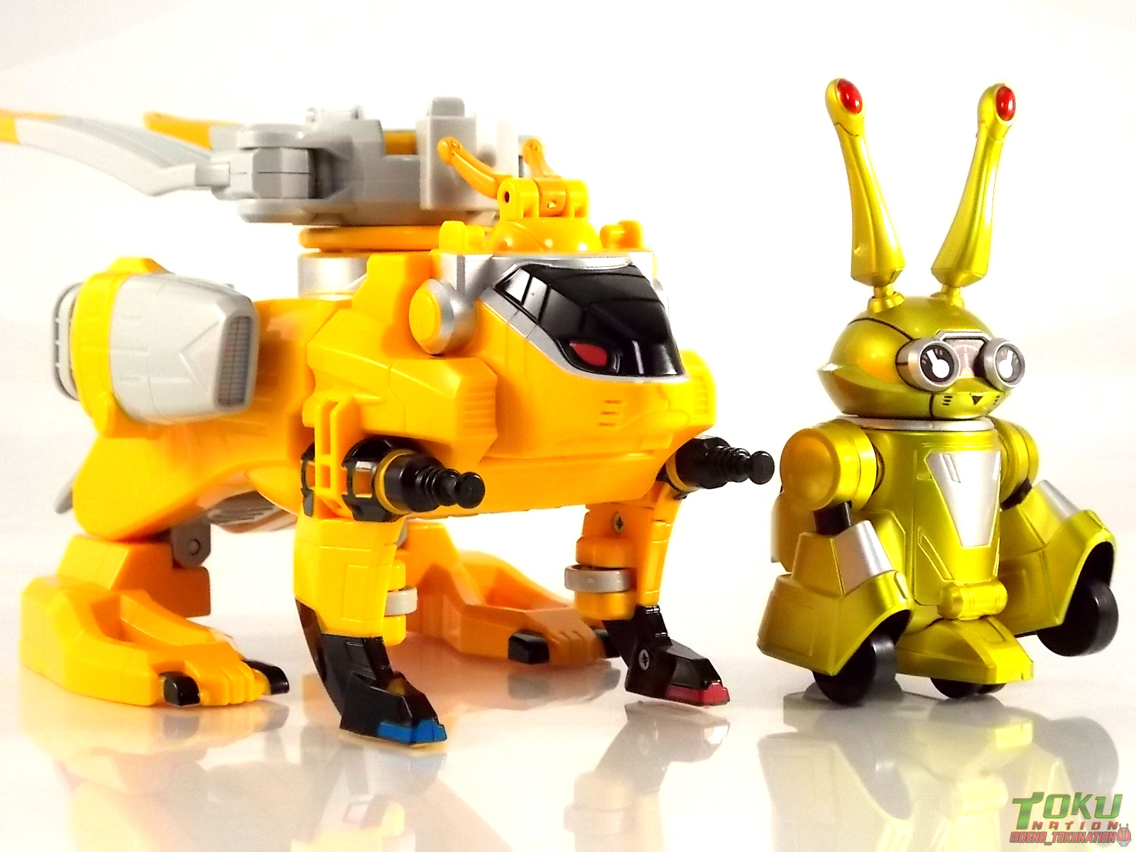 TokuNation is finally ready to finish the journey it began nearly 5 months ago. Our Gallery 2.0 retrospective for Tokumei Sentai Go-Busters comes to an end with this final gallery, S.H. Figuarts Yellow Buster & Usada Lettuce! ** As a heads up a majority of this gallery & review will be nearly identical to my Red & Blue Buster reviews. Packaging At the time Go-Busters figuarts featured some really creative packaging. And I still think that holds true. Yellow Busters' box featured all the series hallmarks and logos as part of it's design. Right down to the awesome "shades" logo. The metallic reflective cardboard makes it feel premium & stylish, and the stock photos present you with a figure, that while not entirely capable of recreating those poses, can do an admirable job. Main Figure Red, Blue, & Yellow Buster of course weren't looked fondly upon. People who hated the show subsequently seemed to dislike the figuarts and felt they were "taking spots" of other sentai that "deserved" release more. You see similar arguments crop up from time to time with MP Transformers. But there was a voracious dislike of that particular season and it's mainline merchandise too. As a show without a collectible gimmick it simply under performed and is most likely what caused Toei to 180 into the goofy silly super gimmick driven stuff we get now year in & out. For me Go-Busters was the last modern show with some true originality to it. I feel the figuarts, while not perfect, do deserve a 2nd glance. For starters Yellow Buster features some really unique detailing you don't often see on figuarts that aren't based on Showa era characters. You can mainly see what I'm talking about on the boots & thighs of the figuart. The show suits were made of leather rather than traditional spandex or lycra. While this meant they showed wear and tear much more easily, they also really popped on screen. The Figuart captures that perfectly down to the excellently molded in thigh and boot details. Little things that are easily overlooked while the suit is in action that can be recreated perfectly at this scale. Sort of like the fabric folds in old Showa Rider suits. Blue Buster also features a number of pretty nice crisp paint apps recreating the 2-tone silver/red costume right down to the "zipper" down the middle of the suit. The only new unique tooling to this version of the mold are the legs and skirt. Shorter legs to make her the appropriate size, and a skirt to simulate the suit. Unlike the Gokaigers that predate her, Yoko only has the standard skirt. She does not include an alternate with better thigh cuts for posing, so the range of her legs is limited. Sadly the elbow joints are incorrectly colored black rather than silver & yellow. I believe at the time of release it was assumed it's because that plastic wouldn't take to paint very well, the black does draw your eyes' attention but not terribly so, and the elbows function just fine too, perhaps being a tad bit limited. Yellow Busters' arms are also one of the last sentai figuarts releases to feature bicep swivels. Nowadays that feature tends to be reserved for more armored characters like Metal Heroes or Kamen Riders. Sadly because of the way the torso sculpt bulges forward at the shoulder the arms cant make much use of the swivels. So no, Yellow Buster can not recreate all of her signature poses properly. I've done the best I can to demonstrate what it looks like but this imperfection of the design is probably the one glaring flaw I see in the mold and it persists through all 3 releases. The helmet is pretty much spot on, though I would have loved to have gotten a nice chrome visor, but I can totally accept the metallic paint we got here. The sculpt is crisp and despite the complaints I often see, the head looks exactly the right size to me relative to the figure. Other details of note include the GB emblem on the belt which is sculpted really nicely, a dark paint wash could have brought out more of that detail though. The left arm features the molded in and near fully painted Morphin Brace as a wonderful scaled counterpart to the real deal. Though non-functioning I always love wrist changers. And to round out the nicer details of the figure we have a really great looking Transpod on the chest straps. (The straps themselves help contribute to the hindered arm articulation) Overall I still have a great opinion of this figuart just as I do the other 2 Busters. Design flaws and all. Perhaps I should mention though that possibly because of the material the hands are cast in, they can be really difficult to swap. In the case of Yellow buster I finally actually broken one of her wrists while shooting this gallery. despite owning her for 3+ years and having swapped hands numerous times, it didn't happen until just now. Luckily replacements are very cheap to come by now! ![]() Accessories 3 - sets of hands. Pretty standard stuff. Just mirrored sets with no unique poses. Identical to Red Buster. 1 - Sougan Blade. The standard bladed weapon of the 3 main Go-Busters. This is a nicely sculpted and accurate piece. Obviously it's not engineered to have it's binocular form as most figuarts weapons at this scale don't work in that way. It would have been nice if that were included separately. 1 - Ichigan Buster. The 2nd standard weapon of the original trio. It's just as nicely sculpted and painted as the Sougan Blade, though with more paint apps over all. I really dont see why this one wasn't molded with transformation joints, it would've been very simple that happen with it. As is though it's one of the more interesting sidearms out there. Really like it. 1 - Ichigan Buster Special Buster Mode. This is the combined form of the Blade & Buster. The 2 weapons themselves were not engineered to combine so this piece is included instead. I actually don't mind that as it allows you to have extra weapons to display. In much the same way that latter figuarts like the Kyoryuger had 2 versions
