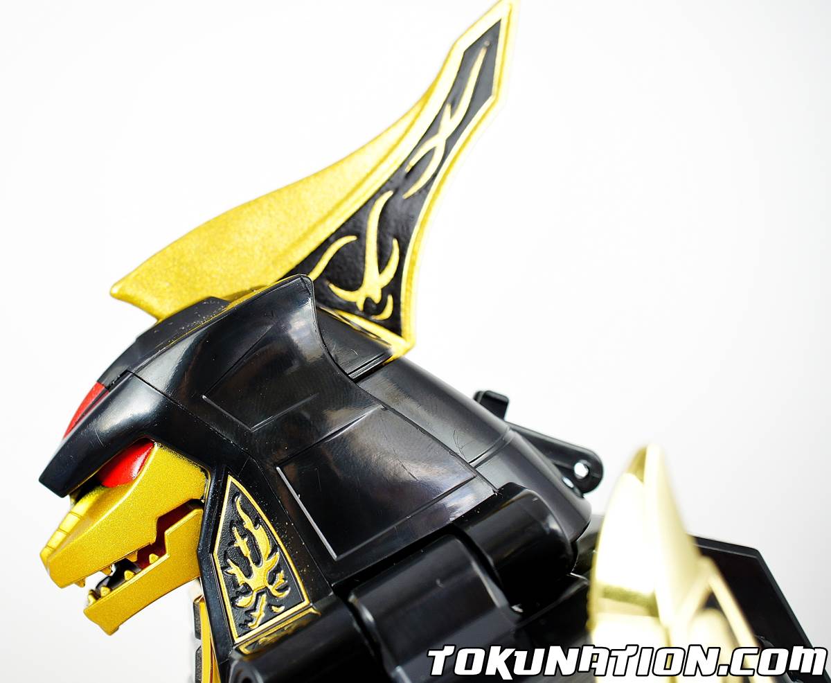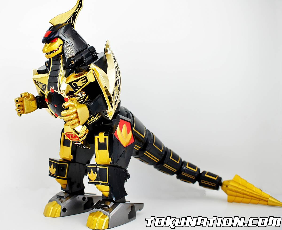 So - aside from being oh so pretty, how does this thing stack up? Check out our review along with 40+ images! The Dragonzord - Figure Can you call it a figure? Anyhow, the Limited Edition Dragonzord is identical to the Legacy Dragonzord release with two main exceptions - the color (duh), and at least in my release, better support for those heavy, heavy "Z" knees (especially in the armor mode). For whatever reason, this release also feels a bit more top heavy - my Dragonzord struggled to stand in certain poses and continued to want to fall one notch forward - which became quite annoying when trying to pose it for the perfect picture. Overall, the Legacy Dragonzord is just as good as the original in terms of being a figure, and it has a (in my opinion) much more pleasing paint job. The Gold Chrome Right off the bat you'll notice the gold chrome is a much darker shade than that on the Limited Edition Megazord figure. I don't know if that was done intentionally or if it was a mix-up when coming up with the colors. The change in colors does cause it to clash somewhat when combined with, or standing next to, the Limited Edition Megazord. The Megazord has almost a muted gold color chrome while the Dragonzord has a vibrant in your face colored chrome. It works for the Dragonzord - especially in Battle Mode (wow!), which does help make the crest stand out even more compared to the shoulders/arms which are the lighter color gold. Battle Mode Simply gorgeous. I'm biased but I cannot find anything wrong with this mode. The gold chrome stands out something fierce and makes for a very nice display piece. The off-color gold chrome of the Limited Edition Megazord doesn't hinder the Limited Edition Dragonzord at all - in fact it makes your eyes go straight to that giant beautiful crest. In "Armor" Mode on Megazord The "Z" doesn't seem quite as heavy - mine stood in place and has stayed in place since the gallery. In the original release, it was too heavy and would often "flop" forward. It was pretty painful to get the pieces to connect between the Megazord and Dragonzord, and even then I had to rig it a bit to make it work. I got scared of possibly scratching the chrome or black paint but I walked away unscathed. Overall If you're a fan of gold chrome, or you bought the Limited Edition Megazord, you need to buy the Limited Edition Dragonzord. The thing is just a piece of beauty and really stands out. The price tag may be off-putting to some ($79), but again - I stand by my stance when I say it's worth it. WARNING - some people have had bad luck and picked up LE Dragonzords that have major chrome chipping/flaking/scratching. Far as I know, there is no way to tell what you have until you open it. I suggest popping open the package in the car to determine if yours is a lemon or a diamond. Hope you enjoy! Thanks for reading!