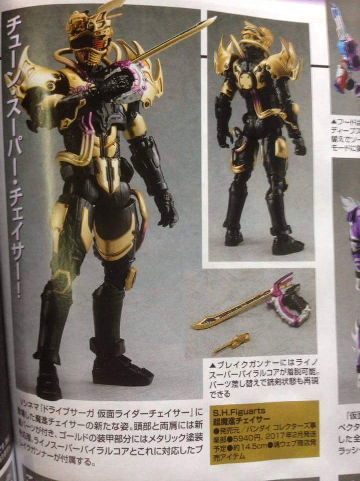 Kamen Rider Drive is getting a lot of lately! Directly from the Chaser V-Cinema is S.H. Figuarts Chou Mashin Chaser February 2017 Release Tamashii Web Exclusive 5940 yen Includes the upgraded Break Gunner as well as the Rhino Super Viral Core!