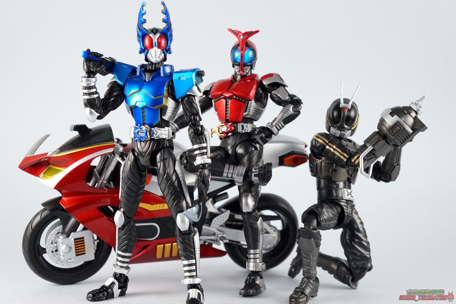 We're trying something a little new this month at TokuNation. Or rather, something old. As the S.H. Figuarts line continues to change and improve we're seeing a lot of figures getting the Renewal or Shinkocchou Seihou treatment. Recently we took a look at the original release of Kuuga Ultimate Form, in anticipation of his S.S. release. Well today we're going to take a look at another older release that's about to be made obsolete by his S.S. replacement, S.H. Figuarts Kamen Rider Gattack! Pacakging Dating back to 2008, Kamen Rider Gattack hails from the era of the gray box. It would be some time before figuats packaging would really get creative so Gattack has the same sort of generic looking packaging as figures would for the next several years through the line. Monotone with a single gray scale image of the actual show suit on the front, and a sampling of stock photography on the back, Gattack was pretty standard for the time. Main Figure Perhaps one of the more divisive series in the franchise, Kamen Rider Kabuto struck a chord with just as many fans as it generally infuriated. For the first real time since Ryuki we had a wide cast of riders all with their own motives and abilities running amok. And depending on how you liked the show, their handling was great or awful. Many could argue the real star of the show was Gattack himself rather than Kabuto, and I'd tend to agree. But the divisiveness of the series carried right on over to the lineup of figuarts produced from it. Kabuto has the distinction of being one of the most complete S.H. Figuarts lineups ever. Nearly every rider from the show and it's summer film were created aside from the one-note Bright Troopers, Hyper Gattack, and the masked forms of all the riders. But the figures that were produced also have plenty of faults. Kamen Rider Gattack was actually the 4th release in the Kabuto line (preceded by Punch & Kickhopper, and Kabuto). But the issues of those first releases weren't resolved by his time, nor really at any point with this series. For starters the Kabuto riders all feature a pretty similar and basic body. Just like any rider series the suits tend to share common elements especially in shows like Ryuki, Kabuto, Den-O, Gaim, etc. Lots of parts reuse. And maybe that's part of the problem for the original Kabuto figuarts. They all have one glaring flaw, bowed legs. Inexplicably most of them have legs that bow inward near the knee giving them a rather awkward stance when in an upright position. The legs themselves are also pretty spindly. But at this time rider figuarts were generally smaller and closer to Shouchaku Henshin in design and style anyway. In 2008 terms this was still a decent figure. Speaking of Souchaku Henshin the Kabuto riders featured something prominently carried over from it, die cast parts. Not only are the feet still the old style diecast, but so are the hip/thigh & shin panels. But where the legs meet the body we sadly get a pretty ugly breaking up of the sculpted in body lines. The much more modern Shinkocchou Seihou Kabuto fixes the hip & leg issues after all these years, but these older release all carry these traits. Overall this line had some pretty lanky proportions that put many people off from buying them way back when. The upper body is at least painted in a great metallic blue that seems to have fared much better over time than say, Kamen Rider Knight Survive. The gold highlights on the undersides of the armors pitifully dull and incorrect. Sadly the head is a swing and miss in terms of proportionality and sculpt, and functionality as well. Thanks to the neck cufff it can't really lean back properly. For the time it was great but looking at it now the head's a little too narrow and oblong. On top of this Gattacks arms can look rather puny just like his legs, they can't really assume natural looking poses very easily. Likewise Gattack's shoulder pads are kind of a mess. They hinge up just enough to be useful but they do look a little silly with the plugs molded in for his included weapon. When the Gattack Double Caliburs are attacked the shoulders do nothing to help get them out of the way of his face. But that's probably more a problem of the suit design in general than this figure's personal shortcoming. Sadly not a terribly serviceable figure after these 8 years. Undoubtedly passable for the time he was made, along with the rest of that line, Kamen Rider Gattack has not aged well. His design and execution just leave a lot to be desired. He's had a home in my collection for these 8 years but I'm ready to trade up to his Shinkocchou Seihou successor now. Accessories As is the case with many releases from this period, Gattack doesn't come with much: 2 - sets of additional hands. 1 set of splayed open hands, 1 set for holding his included weapons. 1 - Gattack Double Calibur set. These combining shotels are normally stored on his shoulders when not in use though he can be often seen without them at all. When attached they tend to make it hard to get cool poses out of the arm simply because they push your focus away from his body and often times get in the way of his face. He can use them individually like short swords or combine them into scissor like mandibles for use with his Rider Cutting finisher. Final Thoughts That's it but honestly that's not unexpected for this figures' age. 8 years ago this was the standard of the line. With the upcoming Shinkocchou Seihou releases of Gattack, the original becomes pretty obviously outclassed. Unlike our recent look at Kuuga Ultimate ahead of his own renewal, Gattack just doesn't fit in very well with newer figures either Ss you can see with him next to S.S. Kabuto, the original Gattack lacks the bulk and style to stand up to today's releases. If you're on a budget and would like to pick up an original S.H. Figuarts Kamen Rider Gattack up (maybe buy mine, please?) then he may be the way to go. But if you want a truly great representation of the cha
