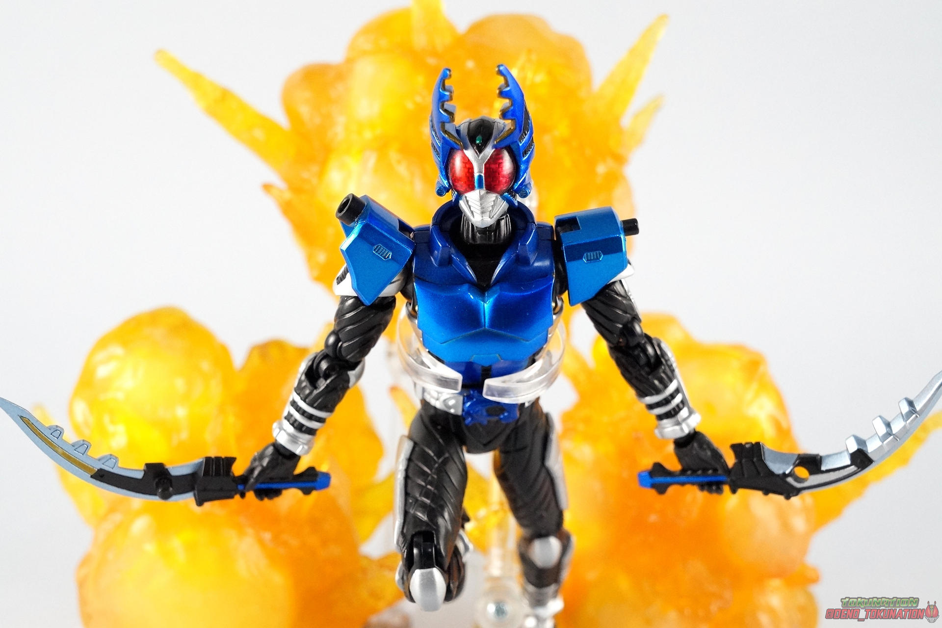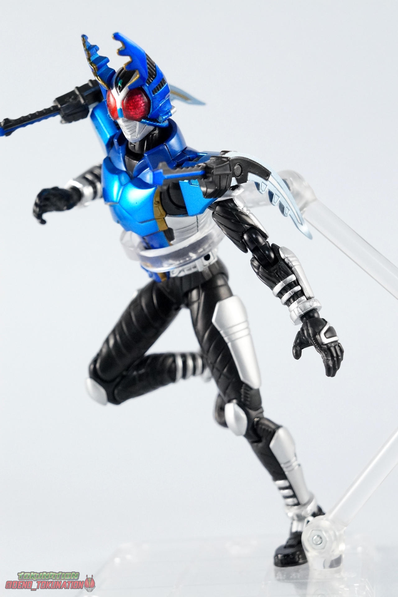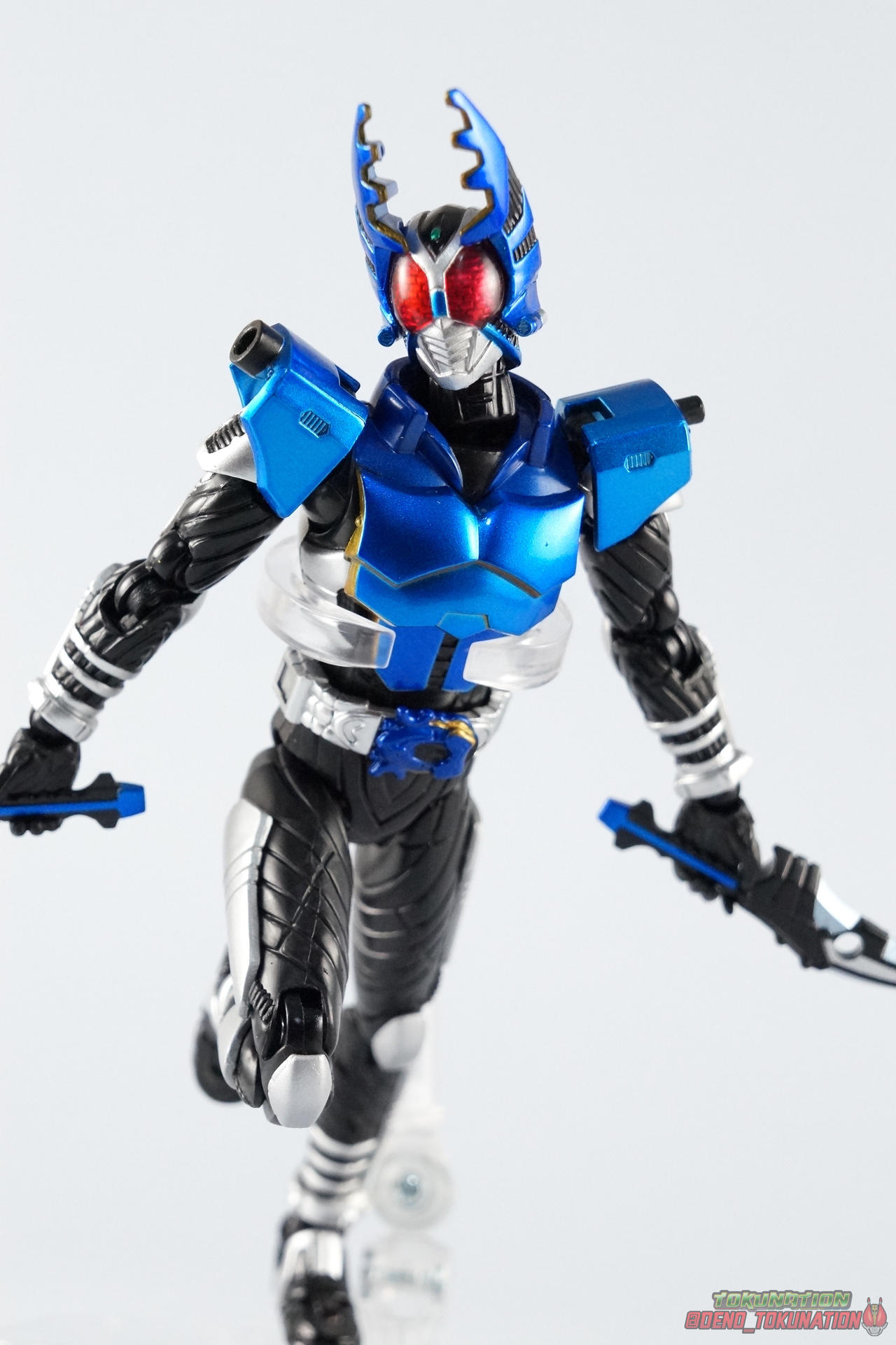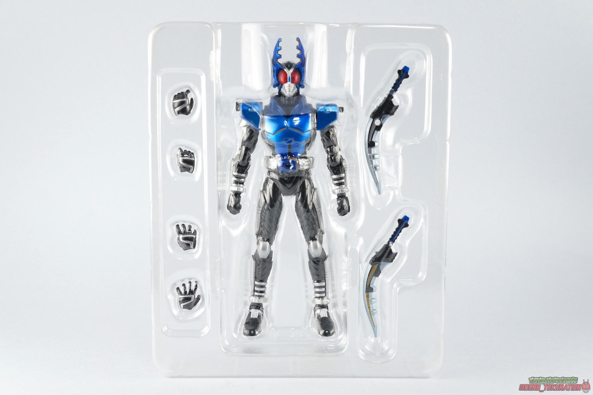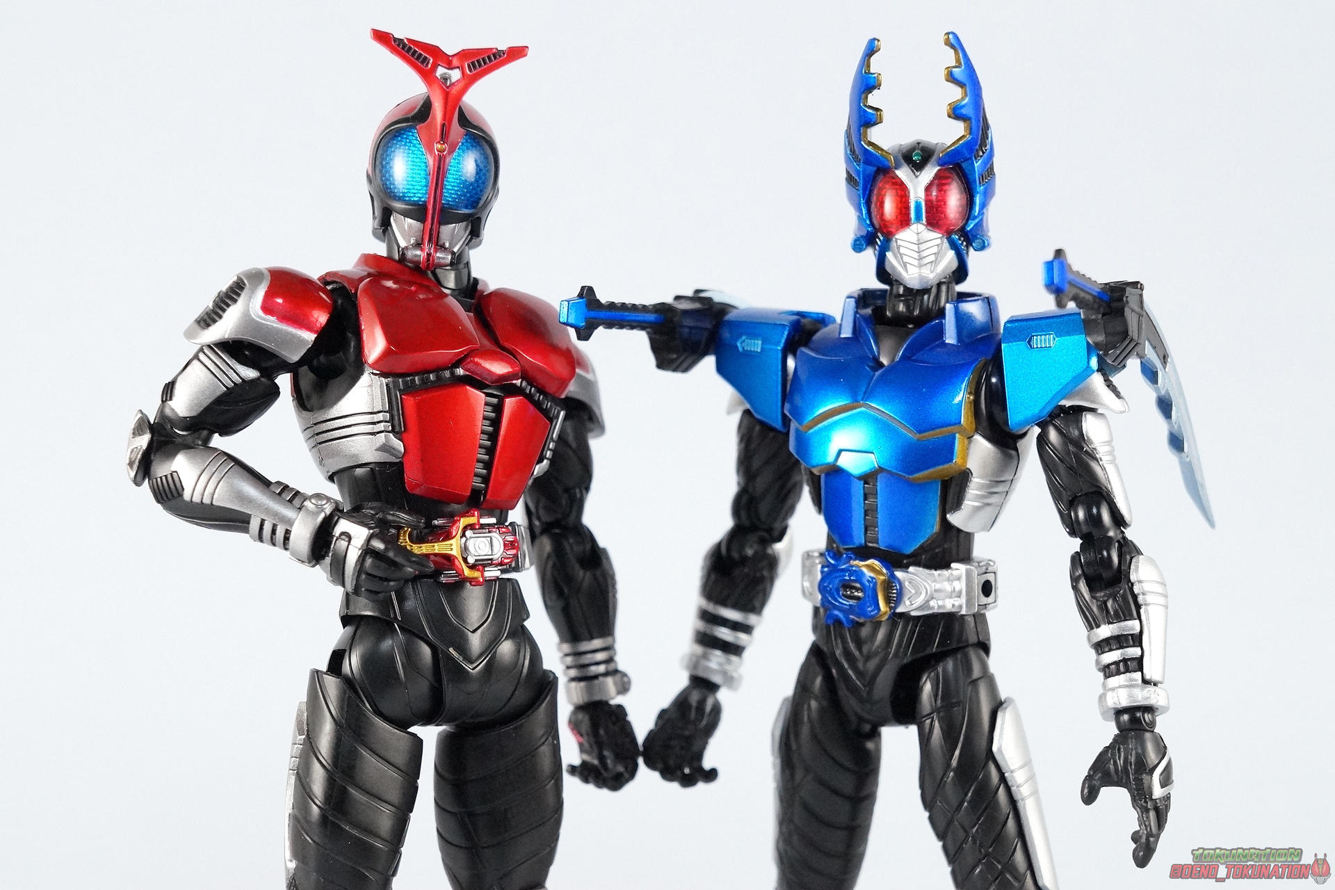We're trying something a little new this month at TokuNation. Or rather, something old. As the S.H. Figuarts line continues to change and improve we're seeing a lot of figures getting the Renewal or Shinkocchou Seihou treatment. Recently we took a look at the original release of Kuuga Ultimate Form, in anticipation of his S.S. release. Well today we're going to take a look at another older release that's about to be made obsolete by his S.S. replacement, S.H. Figuarts Kamen Rider Gattack! Pacakging Dating back to 2008, Kamen Rider Gattack hails from the era of the gray box. It would be some time before figuats packaging would really get creative so Gattack has the same sort of generic looking packaging as figures would for the next several years through the line. Monotone with a single gray scale image of the actual show suit on the front, and a sampling of stock photography on the back, Gattack was pretty standard for the time. Main Figure Perhaps one of the more divisive series in the franchise, Kamen Rider Kabuto struck a chord with just as many fans as it generally infuriated. For the first real time since Ryuki we had a wide cast of riders all with their own motives and abilities running amok. And depending on how you liked the show, their handling was great or awful. Many could argue the real star of the show was Gattack himself rather than Kabuto, and I'd tend to agree. But the divisiveness of the series carried right on over to the lineup of figuarts produced from it. Kabuto has the distinction of being one of the most complete S.H. Figuarts lineups ever. Nearly every rider from the show and it's summer film were created aside from the one-note Bright Troopers, Hyper Gattack, and the masked forms of all the riders. But the figures that were produced also have plenty of faults. Kamen Rider Gattack was actually the 4th release in the Kabuto line (preceded by Punch & Kickhopper, and Kabuto). But the issues of those first releases weren't resolved by his time, nor really at any point with this series. For starters the Kabuto riders all feature a pretty similar and basic body. Just like any rider series the suits tend to share common elements especially in shows like Ryuki, Kabuto, Den-O, Gaim, etc. Lots of parts reuse. And maybe that's part of the problem for the original Kabuto figuarts. They all have one glaring flaw, bowed legs. Inexplicably most of them have legs that bow inward near the knee giving them a rather awkward stance when in an upright position. The legs themselves are also pretty spindly. But at this time rider figuarts were generally smaller and closer to Shouchaku Henshin in design and style anyway. In 2008 terms this was still a decent figure. Speaking of Souchaku Henshin the Kabuto riders featured something prominently carried over from it, die cast parts. Not only are the feet still the old style diecast, but so are the hip/thigh & shin panels. But where the legs meet the body we sadly get a pretty ugly breaking up of the sculpted in body lines. The much more modern Shinkocchou Seihou Kabuto fixes the hip & leg issues after all these years, but these older release all carry these traits. Overall this line had some pretty lanky proportions that put many people off from buying them way back when. The upper body is at least painted in a great metallic blue that seems to have fared much better over time than say, Kamen Rider Knight Survive. The gold highlights on the undersides of the armors pitifully dull and incorrect. Sadly the head is a swing and miss in terms of proportionality and sculpt, and functionality as well. Thanks to the neck cufff it can't really lean back properly. For the time it was great but looking at it now the head's a little too narrow and oblong. On top of this Gattacks arms can look rather puny just like his legs, they can't really assume natural looking poses very easily. Likewise Gattack's shoulder pads are kind of a mess. They hinge up just enough to be useful but they do look a little silly with the plugs molded in for his included weapon. When the Gattack Double Caliburs are attacked the shoulders do nothing to help get them out of the way of his face. But that's probably more a problem of the suit design in general than this figure's personal shortcoming. Sadly not a terribly serviceable figure after these 8 years. Undoubtedly passable for the time he was made, along with the rest of that line, Kamen Rider Gattack has not aged well. His design and execution just leave a lot to be desired. He's had a home in my collection for these 8 years but I'm ready to trade up to his Shinkocchou Seihou successor now. Accessories As is the case with many releases from this period, Gattack doesn't come with much: 2 - sets of additional hands. 1 set of splayed open hands, 1 set for holding his included weapons. 1 - Gattack Double Calibur set. These combining shotels are normally stored on his shoulders when not in use though he can be often seen without them at all. When attached they tend to make it hard to get cool poses out of the arm simply because they push your focus away from his body and often times get in the way of his face. He can use them individually like short swords or combine them into scissor like mandibles for use with his Rider Cutting finisher. Final Thoughts That's it but honestly that's not unexpected for this figures' age. 8 years ago this was the standard of the line. With the upcoming Shinkocchou Seihou releases of Gattack, the original becomes pretty obviously outclassed. Unlike our recent look at Kuuga Ultimate ahead of his own renewal, Gattack just doesn't fit in very well with newer figures either Ss you can see with him next to S.S. Kabuto, the original Gattack lacks the bulk and style to stand up to today's releases. If you're on a budget and would like to pick up an original S.H. Figuarts Kamen Rider Gattack up (maybe buy mine, please?) then he may be the way to go. But if you want a truly great representation of the cha
