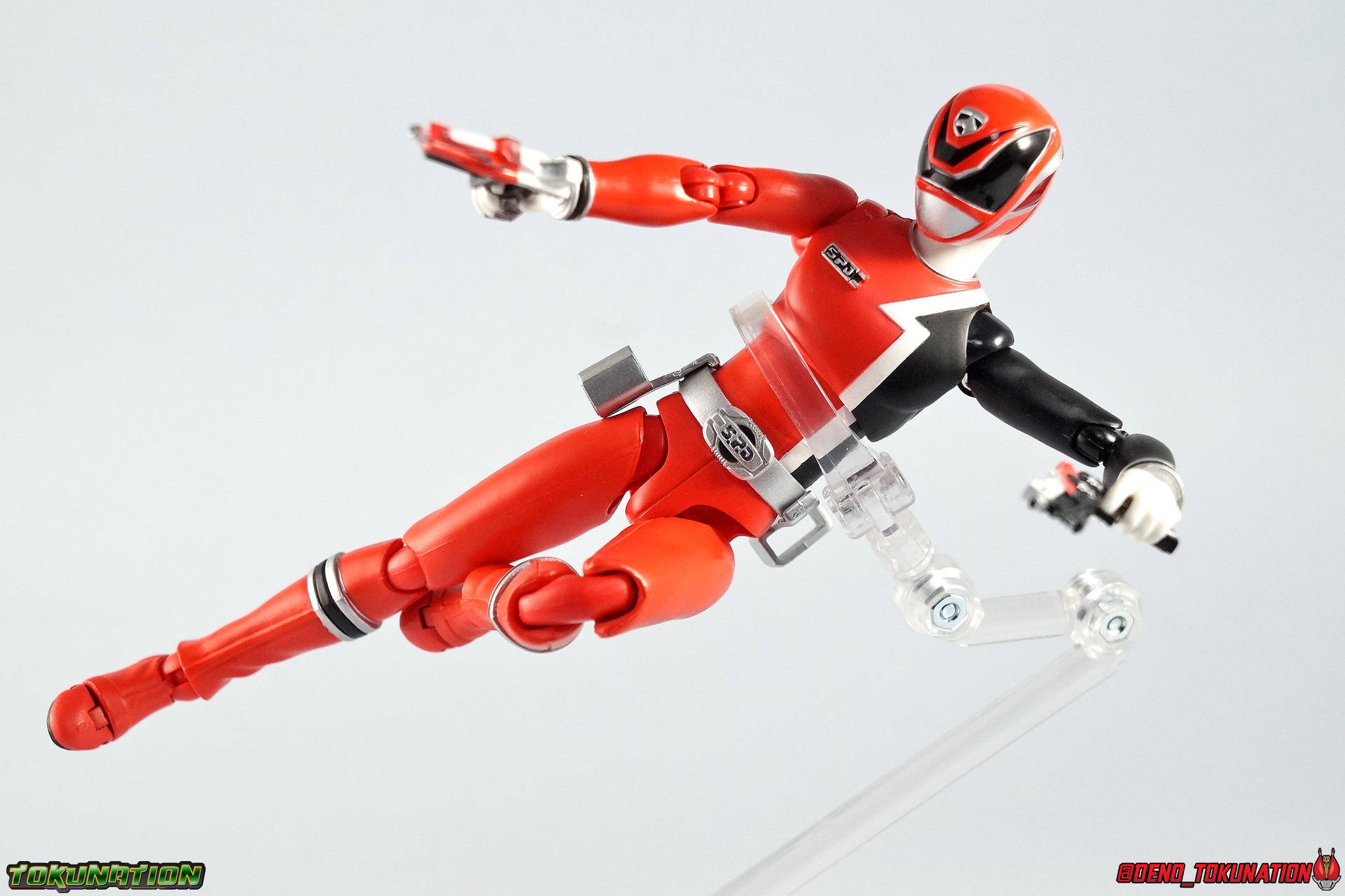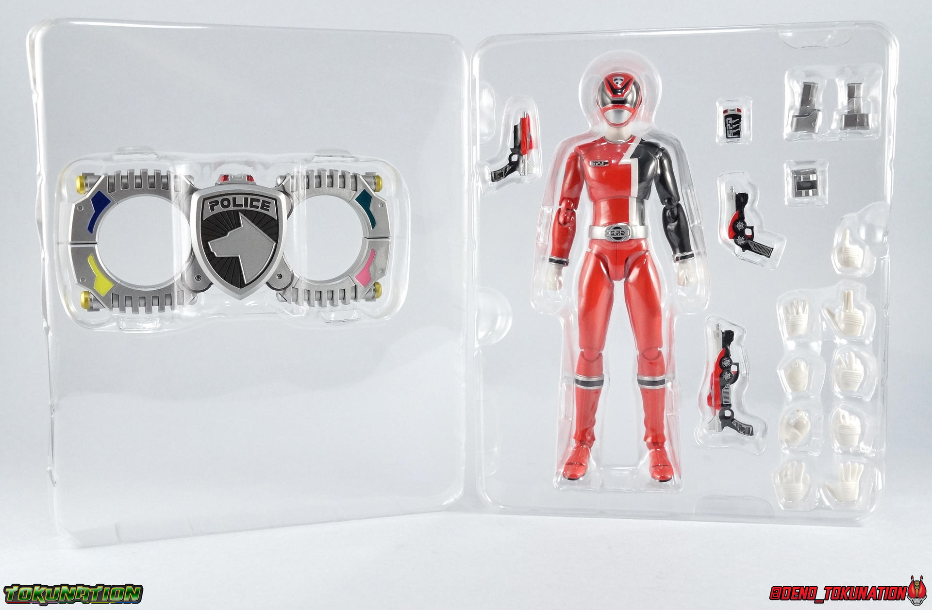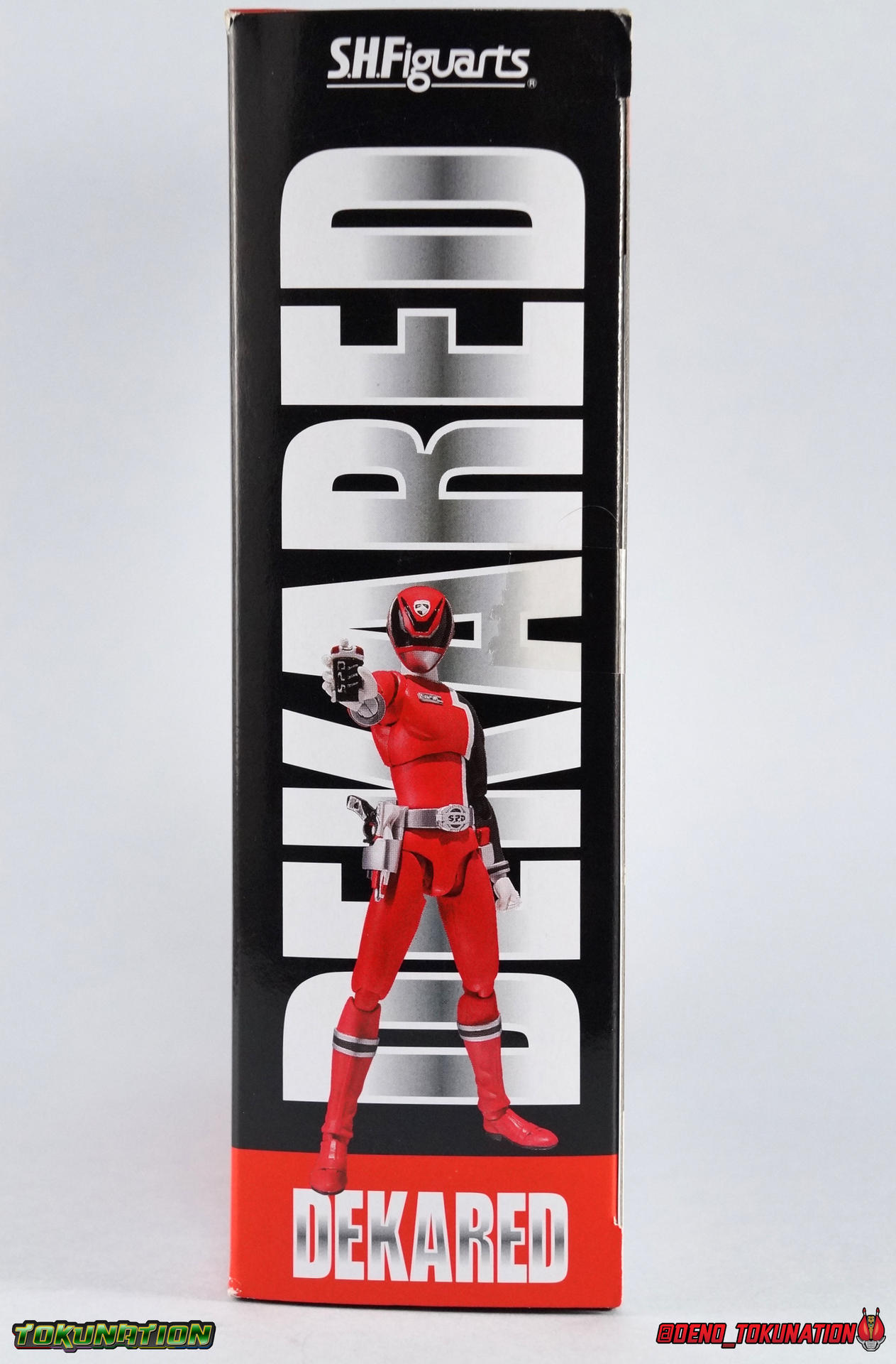 1! Emergency! It's time we brought you yet another new subset of galleries as a part of our ongoing 2.0/redux gallery treatment. Recently, we did some galleries of older releases from Tokumei Sentai Go-Busters as you can see. But this time we wanted to check out some slightly older sentai releases. Kicking off our look back at Tokusou Sentai Dekaranger is the first in our 2.0 gallery series, S.H. Figuarts Deka Red! Packaging Sentai Figuarts have always had some fairly elaborate looking boxes. Shinkenger releases being the only exceptions (in my opinion). And the Dekaranger box style is no slouch. I know packaging is probably the one thing most people don't care about. And ultimately I guess I don't either. But I always appreciate the full package with my collectibles. FYI there's a note on the back of the box mentioning the included Hikonin Sentai Akibaranger accessory, the Dekawapper. This piece is placed in it's own tray in box beneath Dekared. Main Figure Deka Red isn't a figure that will blow you away. Frankly he's based on a fairly generic base body or "buck" as the term is commonly used in western toylines. One that will be used (mostly) 4 more times in this sub-line. Deka Red has an average body build with no bulging muscles or mass to make him look weird. Of all the Sentai figuarts that were released, the Dekaranger body probably has the most realistic proportions. No skinny legs like the Gokaigers either. It just looks normal you know? At least it looks like the actors who portrayed these characters. In much the same way that the Akaranger or Vul Eagle figuarts capture the stocky build of their actors. Aside from the sculpted cuffs on the boots and wrists, as well as the belt & helmet, the Deka Red body relies heavily on paint application for details. As most any sentai figuart should. As non-armored types, these heroes can't hide flaws or articulation cuts under bulk. So they make due and try not to break up the body sculpt in the process. To that end Deka Red both succeeds and suffers. Given the limitations the paint apps need to be almost flawless, and they do an admirable job for sure. Right down to the tiny tampographed on Dekaranger emblem on the right shoulder. But when you get in close, as with any toy, you can definitely see inconsistencies. Especially on the torso just above the belt on mine. Now taking the limitations of the body into account I need to remind you that earlier on in the line, Sentai figuarts often had bicep swivels to allow the arms to rotate fully. Often this also facilitated swap out parts like Gokai Reds' crossed arms. Dekaranger is a line where those swivels are sorely missed. As an action oriented police drama series where characters flew through the air with guns blazing, those swivels could have been so useful. But given the limitation of the design, the figure can still bring much of it's on screen counterpart to life at this scale. The helmet is obviously where most of the work went for sculpt and paint apps, and it shows. Deka Red looks gorgeous. Mine has some minor paint flaws but that could be just as much from years of being displayed, posed, packed/moved, etc over and over more than anything. But it's still an ultimately nice representation of the suit & helmet. The figure as a whole is a great representation of the character really. As with any line age is a factor here though. At this point both the shoulders and hips have begun to weaken on this figure. I don't have any cracked joints like have happened repeatedly on my Gokaigers. But it could happen at any point given enough use. But considering the fairly affordable prices this release goes for now, finding replacements down the road should be simple. Accessories Deka Red set the standard for the types of accessories the following Dekarangers would come with and he does not disappoint: 3 - Belt holsters. 1 for Deka Red's SP License and 2 more for his included sidearms. These just need to be plugged in the holes on the belt, though the hips can make that tricky sometimes. Occasionally when posing you'll rotate the hips out too far and knock the side holsters off. 1 - SP License. Surprisingly well done at this scale, the Licene is functional though the interior does not have the jugdement signs painted in. It fits nice and snugly in Ban's hand or in his rear belt holster. 1 - D-Magnum 01 1 - D-Magnum 02 1 - Hybrid Magnum. The individual D-Magnums can not combine into this form, but the included combined version is perfectly acceptable to me. Luckily this figures' great range of motion allows him to hold it very comfortably with 2 hands. 4.5 - sets of Hands. Mostly everything you need! Though Im shocked at the lack of a thumbs up/down hand for judgement. I made do with what it included though. 1 - Dekawoppa! An odd inclusion for those unfmaliar. For conext, Deka Red made several cameo appearances in Hikonin Sentai Akibaranger. Famous for having battles that took place in delusions, Akiba Red was able to summon an "imaginary" version of Deka Red for backup. On their first team up he was able to materialize the massive Dekawoppa, the Ludicrous Power given to the Akibarangers by Dekaranger. A giant pair of cuffs that can split in two to be used as binding restraints. On their own they're nothing incredible. But when used in conjunction with the other Legend Sentai weapons, something greater is formed. But that's for another gallery, another time. Final Thoughts Aside from the above mentioned thumb hand issue, I can't think of much else Deka Red really needs. We all wish the Dekarangers had somehow come with Murphy, or SWAT mode parts, or something. But they didn't. And ultimately that's fine, because this is still a great figuart. S.H. Figuarts Deka Red has held up well over the years like many Super Sentai figuarts. He's a double edged sword. Both a pleasant reminder that this line was great, and unpleasant reminder that we talk about Sentai figuarts in a past tense now as well. Maybe one