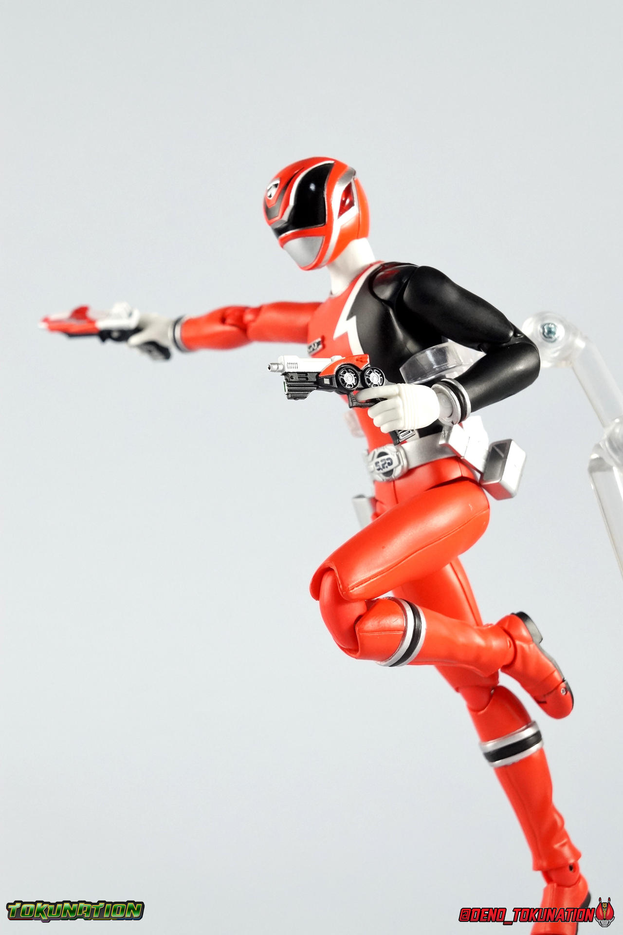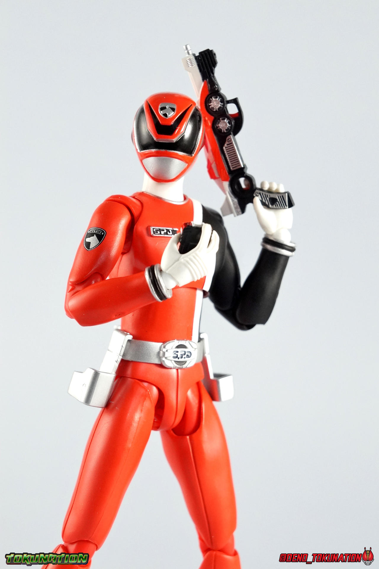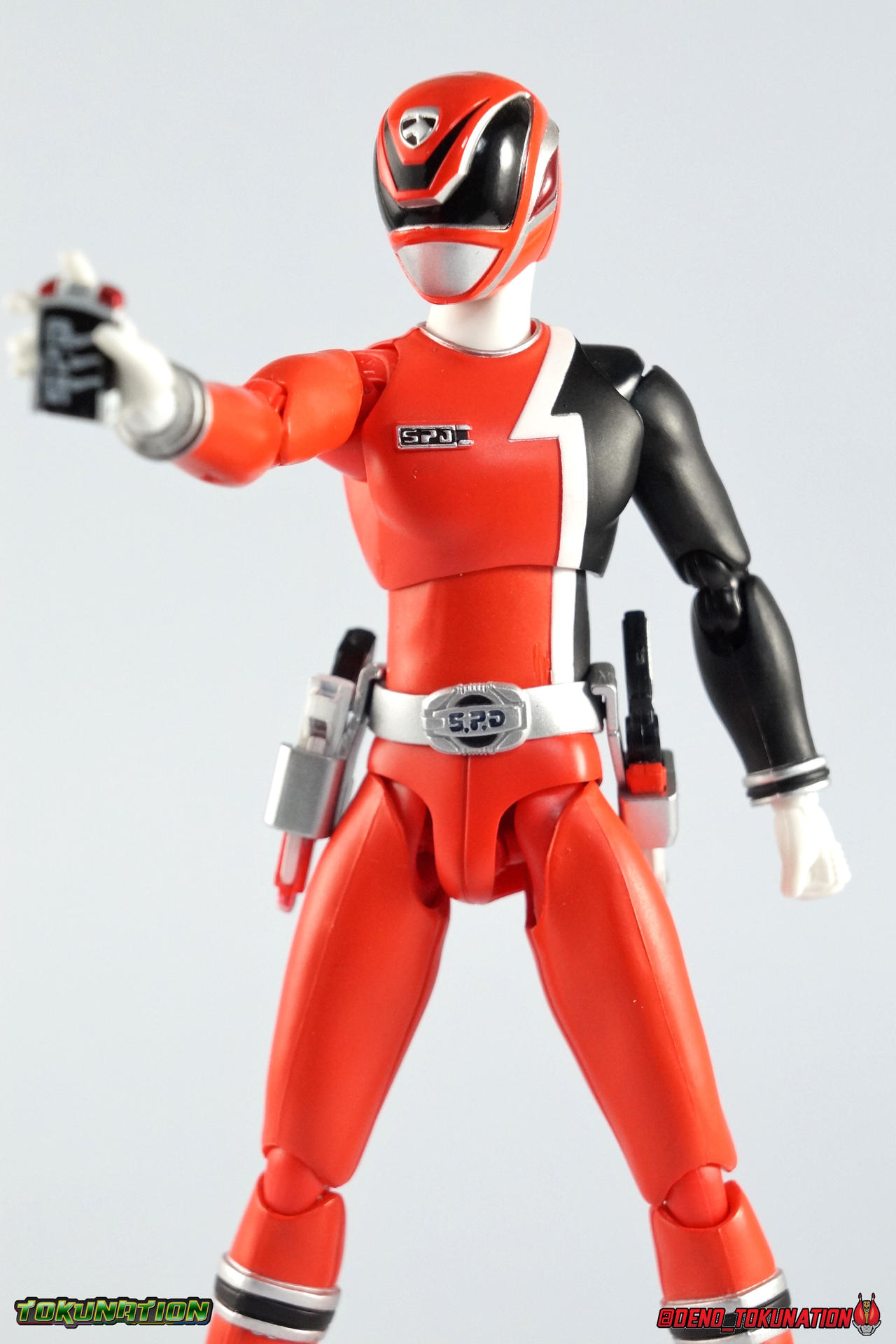 1! Emergency! It's time we brought you yet another new subset of galleries as a part of our ongoing 2.0/redux gallery treatment. Recently, we did some galleries of older releases from Tokumei Sentai Go-Busters as you can see. But this time we wanted to check out some slightly older sentai releases. Kicking off our look back at Tokusou Sentai Dekaranger is the first in our 2.0 gallery series, S.H. Figuarts Deka Red! Packaging Sentai Figuarts have always had some fairly elaborate looking boxes. Shinkenger releases being the only exceptions (in my opinion). And the Dekaranger box style is no slouch. I know packaging is probably the one thing most people don't care about. And ultimately I guess I don't either. But I always appreciate the full package with my collectibles. FYI there's a note on the back of the box mentioning the included Hikonin Sentai Akibaranger accessory, the Dekawapper. This piece is placed in it's own tray in box beneath Dekared. Main Figure Deka Red isn't a figure that will blow you away. Frankly he's based on a fairly generic base body or "buck" as the term is commonly used in western toylines. One that will be used (mostly) 4 more times in this sub-line. Deka Red has an average body build with no bulging muscles or mass to make him look weird. Of all the Sentai figuarts that were released, the Dekaranger body probably has the most realistic proportions. No skinny legs like the Gokaigers either. It just looks normal you know? At least it looks like the actors who portrayed these characters. In much the same way that the Akaranger or Vul Eagle figuarts capture the stocky build of their actors. Aside from the sculpted cuffs on the boots and wrists, as well as the belt & helmet, the Deka Red body relies heavily on paint application for details. As most any sentai figuart should. As non-armored types, these heroes can't hide flaws or articulation cuts under bulk. So they make due and try not to break up the body sculpt in the process. To that end Deka Red both succeeds and suffers. Given the limitations the paint apps need to be almost flawless, and they do an admirable job for sure. Right down to the tiny tampographed on Dekaranger emblem on the right shoulder. But when you get in close, as with any toy, you can definitely see inconsistencies. Especially on the torso just above the belt on mine. Now taking the limitations of the body into account I need to remind you that earlier on in the line, Sentai figuarts often had bicep swivels to allow the arms to rotate fully. Often this also facilitated swap out parts like Gokai Reds' crossed arms. Dekaranger is a line where those swivels are sorely missed. As an action oriented police drama series where characters flew through the air with guns blazing, those swivels could have been so useful. But given the limitation of the design, the figure can still bring much of it's on screen counterpart to life at this scale. The helmet is obviously where most of the work went for sculpt and paint apps, and it shows. Deka Red looks gorgeous. Mine has some minor paint flaws but that could be just as much from years of being displayed, posed, packed/moved, etc over and over more than anything. But it's still an ultimately nice representation of the suit & helmet. The figure as a whole is a great representation of the character really. As with any line age is a factor here though. At this point both the shoulders and hips have begun to weaken on this figure. I don't have any cracked joints like have happened repeatedly on my Gokaigers. But it could happen at any point given enough use. But considering the fairly affordable prices this release goes for now, finding replacements down the road should be simple. Accessories Deka Red set the standard for the types of accessories the following Dekarangers would come with and he does not disappoint: 3 - Belt holsters. 1 for Deka Red's SP License and 2 more for his included sidearms. These just need to be plugged in the holes on the belt, though the hips can make that tricky sometimes. Occasionally when posing you'll rotate the hips out too far and knock the side holsters off. 1 - SP License. Surprisingly well done at this scale, the Licene is functional though the interior does not have the jugdement signs painted in. It fits nice and snugly in Ban's hand or in his rear belt holster. 1 - D-Magnum 01 1 - D-Magnum 02 1 - Hybrid Magnum. The individual D-Magnums can not combine into this form, but the included combined version is perfectly acceptable to me. Luckily this figures' great range of motion allows him to hold it very comfortably with 2 hands. 4.5 - sets of Hands. Mostly everything you need! Though Im shocked at the lack of a thumbs up/down hand for judgement. I made do with what it included though. 1 - Dekawoppa! An odd inclusion for those unfmaliar. For conext, Deka Red made several cameo appearances in Hikonin Sentai Akibaranger. Famous for having battles that took place in delusions, Akiba Red was able to summon an "imaginary" version of Deka Red for backup. On their first team up he was able to materialize the massive Dekawoppa, the Ludicrous Power given to the Akibarangers by Dekaranger. A giant pair of cuffs that can split in two to be used as binding restraints. On their own they're nothing incredible. But when used in conjunction with the other Legend Sentai weapons, something greater is formed. But that's for another gallery, another time. Final Thoughts Aside from the above mentioned thumb hand issue, I can't think of much else Deka Red really needs. We all wish the Dekarangers had somehow come with Murphy, or SWAT mode parts, or something. But they didn't. And ultimately that's fine, because this is still a great figuart. S.H. Figuarts Deka Red has held up well over the years like many Super Sentai figuarts. He's a double edged sword. Both a pleasant reminder that this line was great, and unpleasant reminder that we talk about Sentai figuarts in a past tense now as well. Maybe one