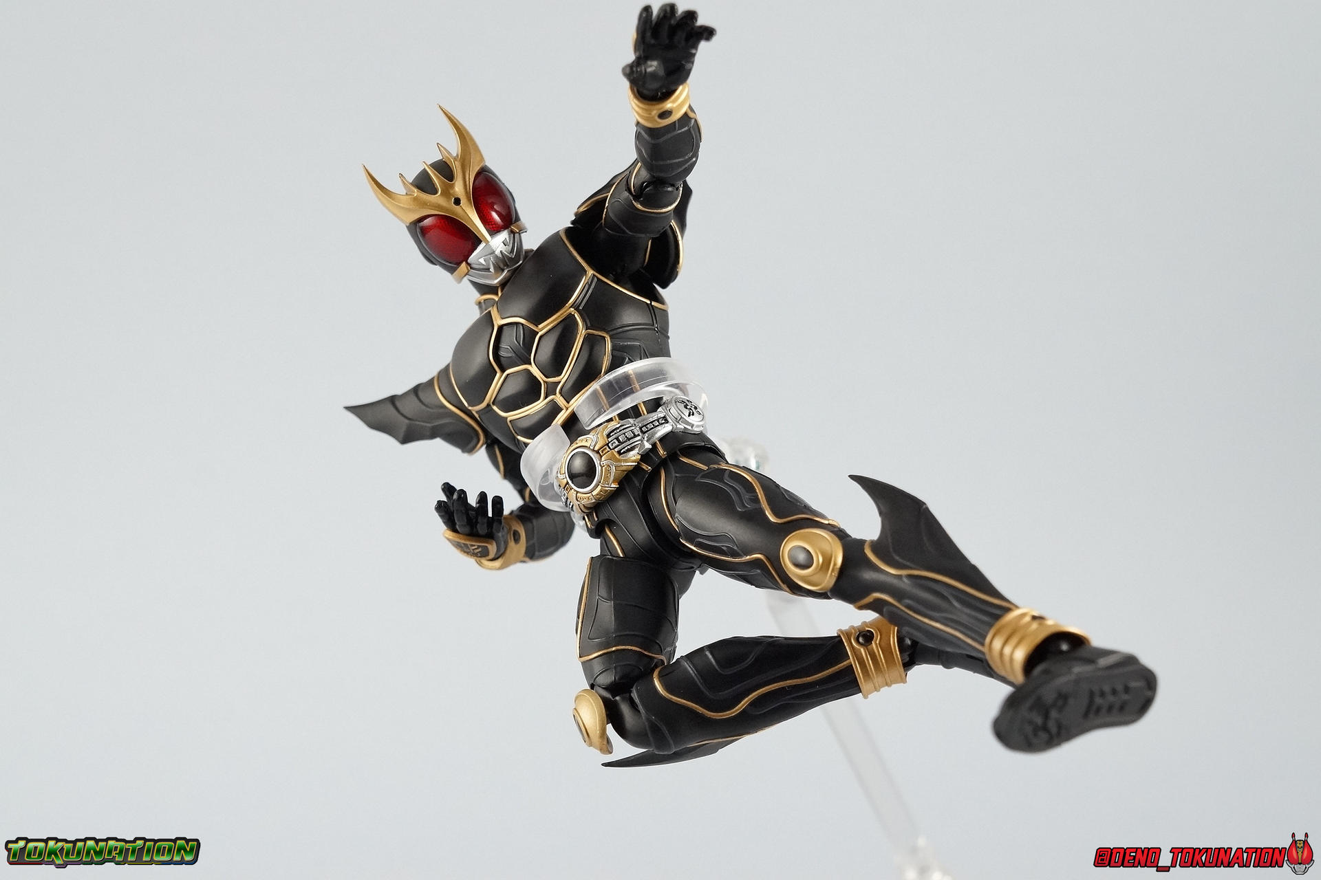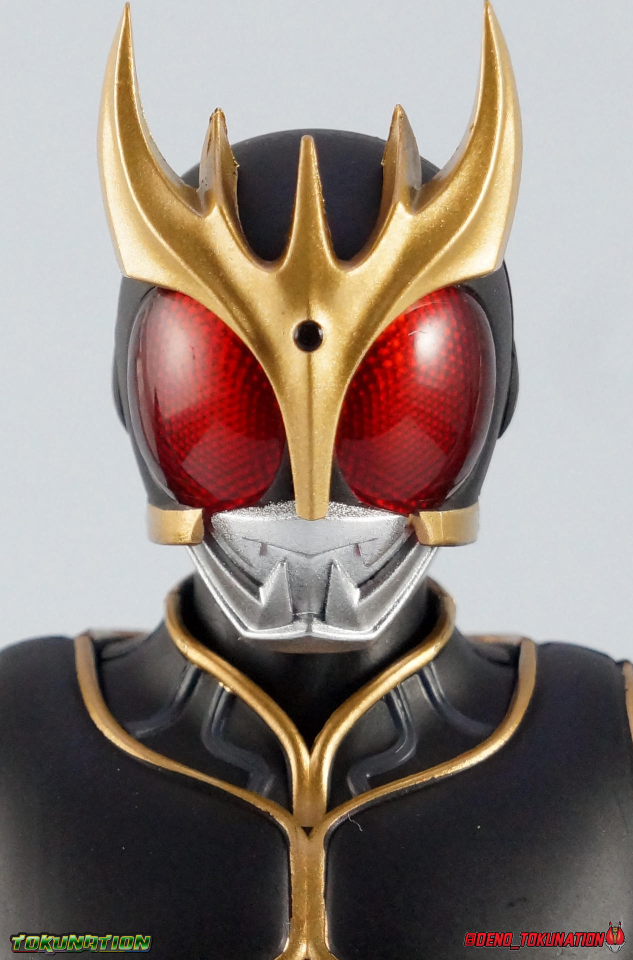 Following up on our special retro gallery of the original S.H. Figuarts Kuuga Ultimate Form, we now take a look at the premium successor to that release with S.H. Figuarts Shinkocchou Seihou Kamen Rider Kuuga Ultimate Form! The so far 3rd release from Kamen Rider Kuuga in the Shinkocchou Seihou line, Kuuga Ultimate is possibly the best. Read below to see how it compares to the original. Packaging Shinkocchou Seihou Kuuga Ultimate comes in the same kind of gorgeous slip cover box we've become accustomed to with this premium line. From Kabuto to now this packaging is always a delight. I love the grainy almost instagram filter look for the box art. The solid white stacked parts trays just work for me as well. I know it's a fairly simplistic packaging design, and it changes even less release to release than other normal lines, but I really like it. Main Figure The most important thing to note about Shinkocchou Seihou Kuuga Ultimate is that in every conceivable way, it outclasses the original release. There is no contest. The pictures really speak for themselves, but here are a few really important things to note. S.S. Kuuga Ultimate is designed with the same mentality that began way back with S.S. Kabuto. Building a realistic human form from the ground up. This releases' sculpt is dynamic and appears to be very powerful, even when in the most static of poses. You can easily imagine that's really Godai, brimming with power. Just as this form should appear. The proportions help convey this too, they're just so much more bulky and solid than the originals lanky legs, skinny knees/elbows, and all around emaciated look. Yes S.S. Kuuga Ultimate is a tab bit shorter than the original, but that height is appropriate. The original release was too tall in the first place. It should be mentioned that the hips are also massively improved with this release. Gone are those pathetic drop down hips on the original. No more worrying about scraping paint off when it impacts the waist. The second major improvement here are the paint applications. The original release was plagued by inconsistent paint apps that were often over-sprayed or under-applied. They easily flaked and frankly they weren't the correct color either. The gold on the S.S. release may appear toned down to you at first, but the truth is the original release had some garish color to it that's just not accurate to the show footage. The original figuart almost has a green tinge to it's gold, the S.S. release manages to capture the ornate gold plating look this form deserves. Likewise the "veins" on the armor are more appropriately close to grey, rather what seemed like blue on the original. Finally the poseability that S.S. Kuuga Ultimate embodies is unmatched by the original. I've taken the time to recreate a number of the shots from my original Ultimate Kuuga gallery in this one in sequence, specifically to demonstrate just how improved this figure is over that one. The Shinkocchou Seihou line began with the intention of creating realistic expressive human motion, in figure form. As was clearly evidenced by the lengths to which the design team first implemented this pseudo-skeletal design structure in Shinkocchou Seihou Kabuto. This figure manages to come alive simply, where the original just couldn't. Accessories This is a pretty basic breakdown, but one that's entirely appropriate for Kuuga Ultimate Form: 1 - Ultimate Dark Eyes head. Unlike the original Kuuga Ultimate, which only included a swap out visor, this version opts to include a full helmet. The Dark Eyes represent the inherent evil/drunk with power nature of this form, though Godai was rarely seen using it. Rather than becoming like Daguva he would revert to the red eyed form more often. However the Decade version of Kuuga is well known for succumbing to the Dark Eyes form for both Ultimate & Rising Ultimate forms. This head looks MUCH better than the visor included with the original release. It's lenses were basically dark tinted plastic. Whereas here we have basically solid black glossy lenses. Much darker, much better, much more accurate. 5 - sets of additional hands. Standard stuff here, a bit different from the original release in that there are 5 full sets rather than 4.5. I miss the open set of, wild/angry hands from that release. But this one includes both thumbs up hands so I'm cool with that. Otherwise pretty normal. He also includes Bike riding hands which is a plus. Final Thoughts As with any of these premium releases, S.H. Figuarts Shinkocchou Seihou Kamen Rider Kuuga Ultimate Form simply outclasses the original in every possible way. And I love it! I was never a huge fan of Kamen Rider Kuuga the show, it just didn't grab me. But the designs did. And after nearly 10 years the S.H. Figuarts line has finally reached a point where it can accurately and properly recreate these incredible suits in figure form. I said once before that, on a budget, the original Kuuga Ultimate is a worthy stand in. I need to say now, don't do that. Buy this beauty. If you have the means and opportunity, buy Shinkocchou Seihou Kuuga Ultimate Form. You won't be disappointed.