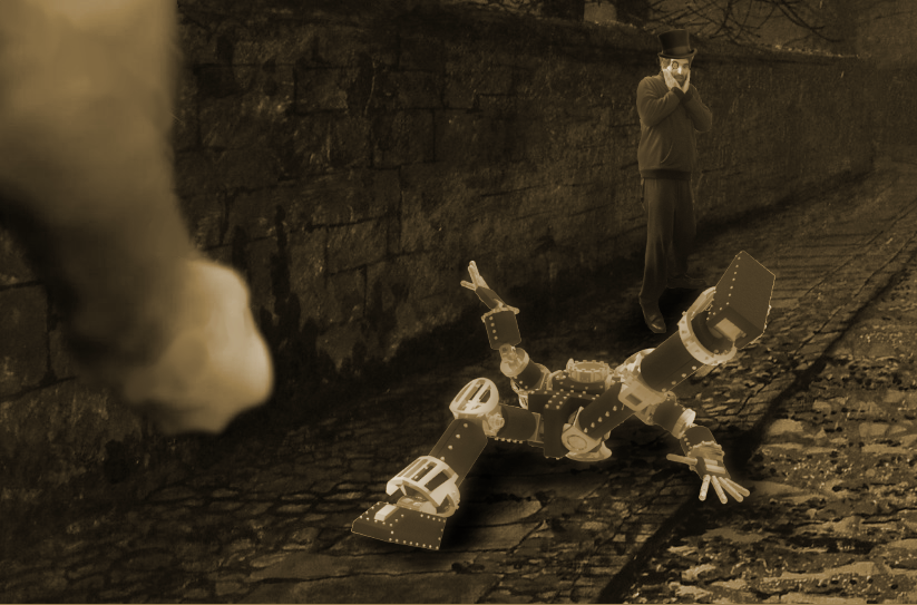 The "Action Shot" for my 3D modelling assignment. The prompt was a Steampunk Robot that had a function and a critical flaw. In my case, it was a bodyguard robot who goes down in one hit.