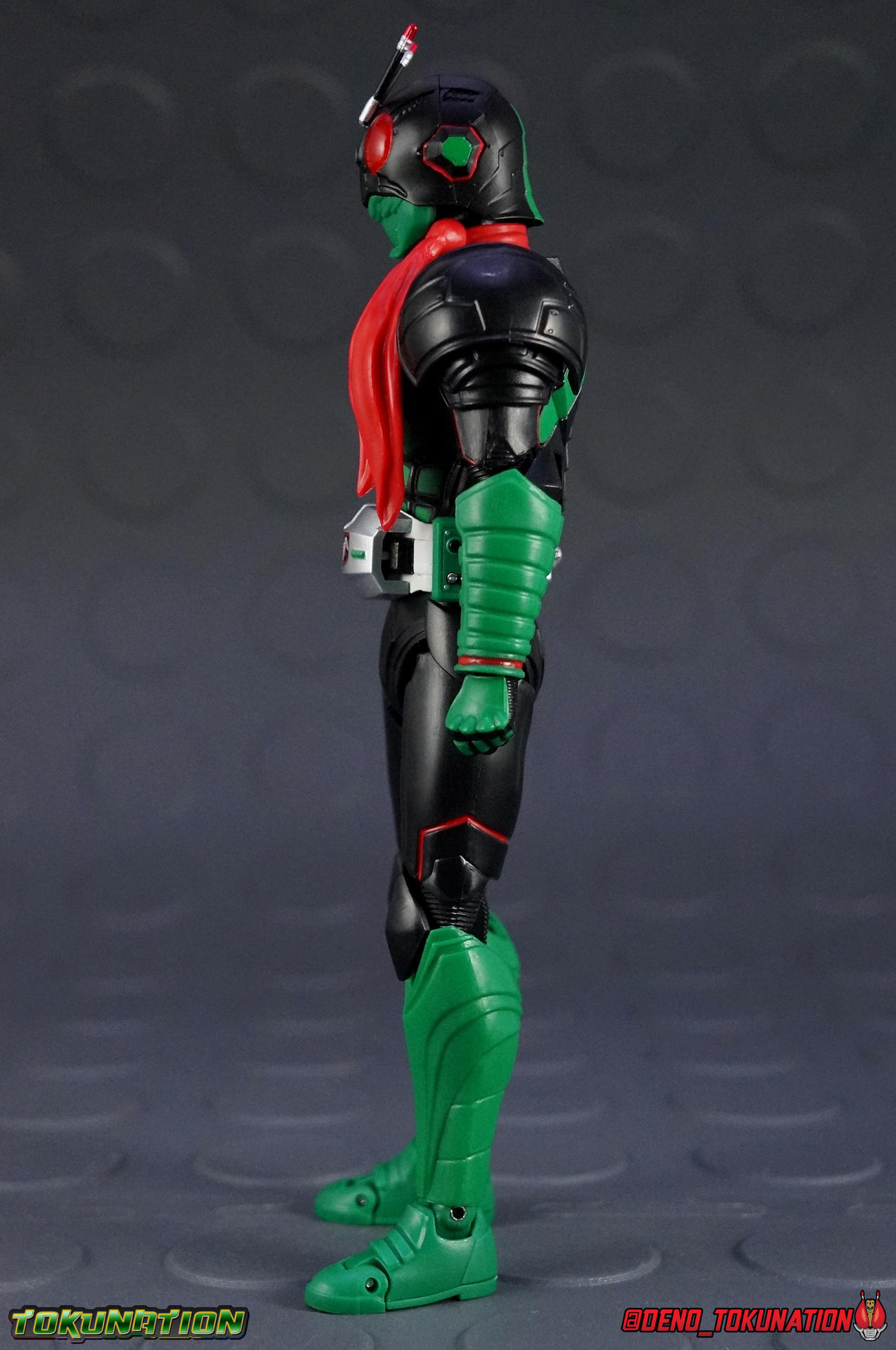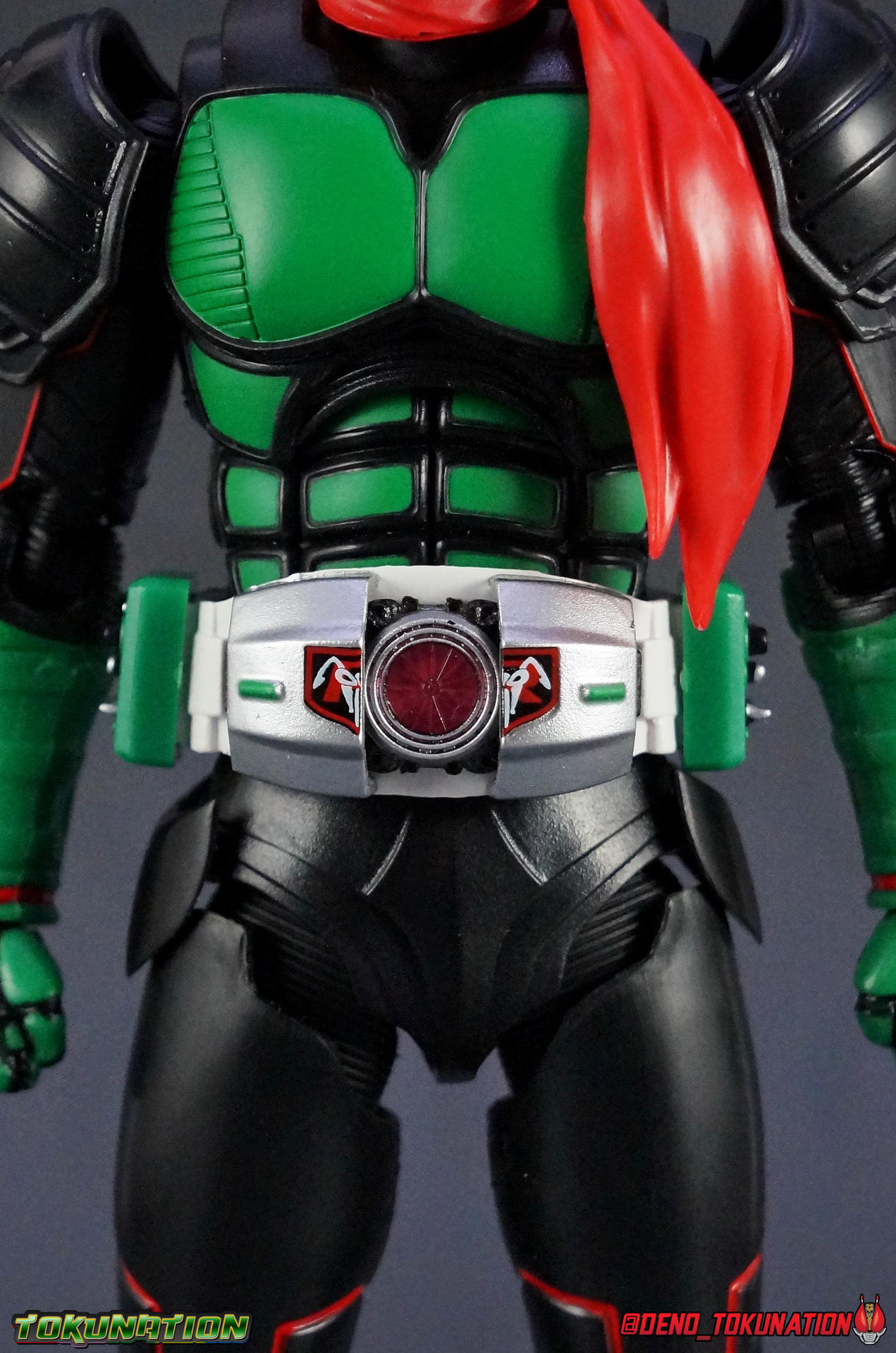 Debuting in the special Superhero Year tie-in film, Kamen Rider 1, the original Kamen Rider himself received his first new form in over 40 years! This form has yet to be explained or expanded upon since it's debut, and frankly time will tell if it ever will be. Despite Takeshi Hongo's numerous appearances in movies in recent years, and in fact the physical appearances of his original actor Hiroshi Fujioka in even more recent films, this is the first we've seen or heard of the so-called "Powered Up" Rider 1. A bulky behemoth that packs a real punch, today we're studying this unique upgrade in toy form with S.H. Figuarts Movie Kamen Rider 1 ! Packaging Unsurprisingly the packaging for this figure is the same Drive/Ghost style slim black box we've become accustom to. Without much flourish to packaging with the recent rider lines, it's all starting to a look a little too similar. I'm sure Ex-Aid will mix things up, especially given how it's inaugural S.H. Figuarts release will be a 3-pack. But given the fact that this is THE original Kamen Rider we're talking about, from his own movie no less, I expected something a bit more extravagant and impressive. Main Figure Wow. Color me impressed. When this form was initially revealed in magazine scans and movie trailers, it was derided by many (myself included) for being too big & bulky. Just too muscular, and well, thick. But the added bulk of this form makes a lot of sense given real world and fictional concerns, the aging of actor Fujioka and in fact of the Hongo character himself. But you'd be forgiven for expecting this figure to be limited. While undoubtedly CG movie magic and other special effects gave the physical suit a special flare & abilities all it's own, it's definitely not an entirely functional design. But I'm happy to report that the figuart IS! This isn't going to be the most poseable figuart you've ever purchased, but damn it all it's still a nice one. Movie Kamen Rider 1 is an entirely new sculpt from the ground up. This body isn't shared with any other release, though I can see aesthetic influences from another Showa turned Heisei redesign, Kamen Rider 3. But again, all new parts. The legs themselves have a fantastic mostly full range of motion, the usual necessary ankle tilts, a knee that could stand improvement but isn't detrimental, and hips that while good aren't perfect. You may be worried about the small hip armor components on the sides getting in the way but thankfully they can both angle up very very well, so the hips have plenty of clearance there. Sadly there are some pointy protrusions on the upper edge of the hips that can easily snag on the waist armor and in fact can flake or break quite easily. So watch out for those. Moving up to the new Typhoon belt, Rider 1 has gotten a significant upgrade here. When not in use this new style Typhoon has a shield that covers it with the traditional Tachibana Racing Club logo on the front. By default the belt is split open but the two halves can be removed and pegged in closer together to replicate this. Fun fact, I shot half of this gallery with the shield closed, and had to re-do all of it :P It's a welcome & unexpected feature though. The belt is also floating pretty freely around the waist and has some room to move up or down in case the hip armor needs a little more clearance or the abs do. The sculpted in ab section by the way is fantastic. Again this is where the figure tricks you with it's bulk, you expect it to be limited, but the upper torso joint floats perfectly on top. Allowing Rider 1 to arch his lower torso back and upper forward to give him really dynamic body language. I'm just impressed all around here. Even in the arms I expected severe limitation and found them to be really superb. More than most figuarts this one can actually accomplish it's signature poses! The traditional arm across the chest pose is nothing for this figure. Thanks in large part to how well the shoulders can come out from the main body, and how those massive shoulder pads (which are 2 pieces) can move independently to angle out of the the way. Perhaps my only complaint with the arms is that the wrist ball joints seem larger than the peg holes in the fists themselves, making it a little difficult to swap hands. Finally we come to the head, which to me is the one thing about this figure that departs the least from the original design(s). Well that and the classic muffler. The head definitely has more of a military style hardware look to it with the low edge covering the back of the neck. It feels more like armor and less like decoration you know? The eyes are a gorgeous red that's similar to what's used on Gold Drive so they really pop in the right lighting. But all in all this figure is fantastic. The sculpt & paint apps are on point, and the articulation is there. I totally get someone disliking this design, but once you have it in hand I don't know how you couldn't love it. It's just a top notch figure. Minor issues aside Movie Rider 1 really is just a great release. Accessories Nothing major or surprising here: 2- sets of additional hands. I'd hoped for more, like possibly bike riding hands. I know the new Movie Cyclone has never received a release date but Rider 1 works very well with most previous releases of the Cyclone as well. So those hands would have been great and cheap to produce inclusions. 1 - muffler/scarf. The ball on the neck is a bit too large to plug this on easily but once you get it on there it rotates very easily. I'm surprised a wind-swept version wasn't included like with previous Rider 1's. 1 - Rider Kick Effect part. An always welcome addition that often is left out from most non-Showa rider releases. I especially like the coloration on this one. It's got a little more uniqueness to it than most kick effects. And thankfully it locks onto the foot much more tightly than many I've dealt with previously. A pretty lite selection but mostly appropriate. There were no o