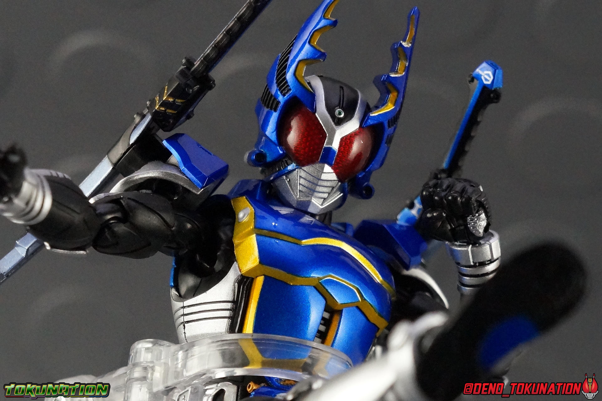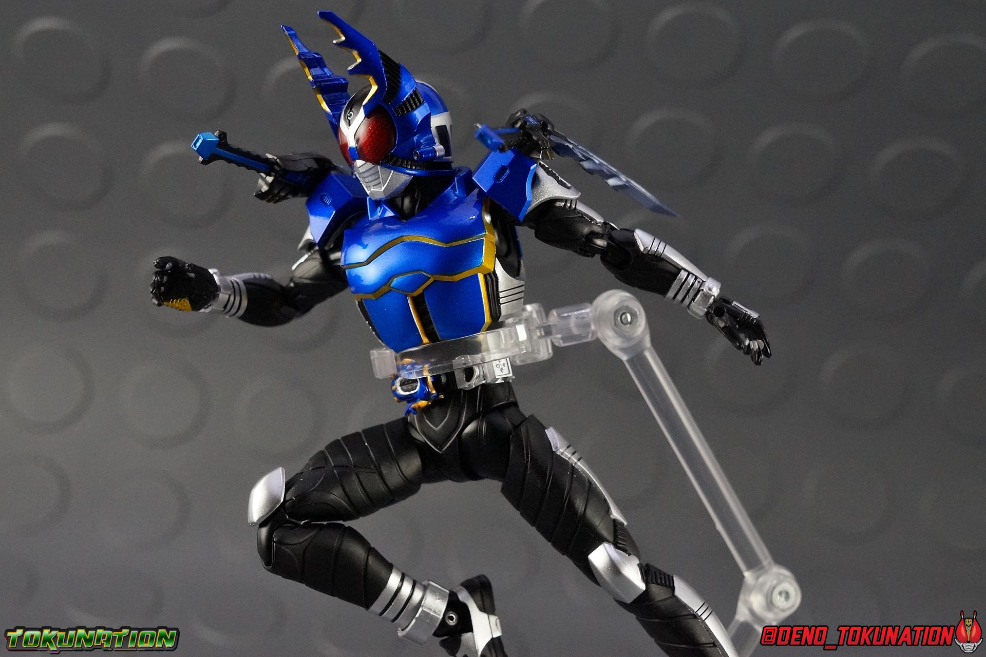 In September we took a look back at a fairly old release with the oroginal S.H. Figuarts Kamen Rider Gattack. That helped get us prepped and pumped for today's subject, the all-new and improved S.H. Figuarts Shinkocchou Seihou Kamen Rider Gattack! Rider Cutting! Packaging That wonderful premium Shinkocchou Seihou packaging returns! I recently said it when I reviewed Kuuga Ultimate Form, but this type of slipcover box really works for me. And it continues to sell the nature of the S.S. releases as a truly premium line. Plus, that cover artwork! Main Figure You may recall that when I looked back at the original Gattack release there were some pretty big issues. Granted that's a 5 year old figure, but the problems that exist in the original Kabuto line make them kind of eyesores in a modern collection. Well, to put it simply, Shinkocchou Seihou Gattack fixes every single one of them and looks dead sexy while doing it. For a quick idea of what this figure is like you can read through my old S.S. Kabuto review. These two figuarts share most of the same body parts with a few keys differences. But it's pretty clear that even after 2 years, the Kabuto style body that began the Shinkocchou Seihou line is still very very strong. S.S. Gattack is the one release I was probably most excited for than any other in this line. As an unashamed fan of the series, and a die hard fan of Gattack as the "real" main character, I couldn't be happier with this figuart. Much like S.S. Kabuto, the articulation is nuts on this thing. The new (I guess now old?) style hips provide a wide and balanced motion that allows you to replicate some of Gattack's most iconic poses & attacks. The arms are free of nearly all obstruction thanks to wonderfully hinged shoulder pads. The waist/ab area has incredible flexibility as well. I would say the hips are liited only by their design as they do impact the waist assembly a little more prematurely than I'd like. The same type of peg style hands featured on Kabuto are present here. It's still kind of odd that this type of hand has been so infrequently used. Not every S.S. Figuart has it even, which is odd. Of the 9 Shinkocchou Seihou releases thus far, only Kabuto & Gattack use this system. And Gattack doesn't even include the hand tree to store them. As I said way back when with Kabuto, I still don't really like them. They're fine, they get the job done, but I can't help but feel something is lost without a ball joint in the wrist. But that's a very minor nitpick. All in all this is a solidly built figure. About the only issue I've found with him is the head. The sculpt is dead on, it's finally the appropriate size & color, and it looks gorgeous (mine has one irritating silver fleck in the left eye). But the neck cuff prevents the head from tilting back and side to side as much as I'd like. That's probably my one gripe. The paint apps are masterful (eye issue aside), and thankfully Gattack's body is finally in the appropriate blue & gold colors. The gold accents finally look good on this release, the old one just looked so dull and you could barely see it on the folds of the armor. Speaking of, Gattack doesn't have poseable pecks like Kabuto did, though on Kabuto I never found they served much purpose. With this gallery I tried to replicate all of the shots from my original Gattack gallery, just to demonstrate how much of an improvement the Shinkocchou Seihou is. In functionality & personality, Kagami has never looked better. Pairing him with Kabuto is one of the more satisfying things I've gotten to do recently. Accessories As a far as Tamashii Web Exclusives go, Shinkocchou Seihou Gattack comes with a better than average accessory count. He does come with more or less everything he should. No glaring omissions but nothing over the top either: 3 - sets of additional hands. At least one set is pretty redundant. You get two sets of holding things hands. I know the 2nd set is meant for the Gattack Extender bike, but they're basically identical to the hands for holding weapons. I would have preferred some kind of expressive set of hands instead. 1 - Gattack Double Calibur set. These combining shotels are normally stored on his shoulders when not in use (though he can be often seen in show without them at all). When attached they can tend to get in the way of Gattack's head but angling them out of the way is pretty simple. I feel like they add a unique flare to his costume, and shoulder mounted weapons are certainly a feature you don't see much in toku costumes. He can use them individually like short swords or combine them into a pair scissor like mandibles for use with his Rider Cutting finisher. This set isn't largely different from those that came with the original but they do look much better thanks to more accurate paint applications. And the pegs on them look far less generic if that makes sense. 1 - Gattack Zecter. This version of the Zecter is the standard pre-henshin state of it. When the Zecter is flying around towards Kagami. You can put it on the belt as well to to replicate finishers but it does kind of suck that it isn't engineered like the Kabuto Zecter was. I know it just had a simple hinge but it was basically functional. Now I can't even have both detached Zecters at once since Kabutos' is non-removeable. I don't see too many reasons for this one to be included but it's fine for what it is. Again, no glaring omissions that I can think of. A Hyper Zecter would have been a fun inclusion but that wasn't very likely anyway. And Unlike S.S. Kabuto, Gattack does not include the "hand tree" to store the extras on when not in use. Which seems odd considering Gattack is one of the very very few figuarts to share this strange peg style of hand. In fact being only the second Shinkocchou Seihou release to have them. Final Thoughts As with any release in this line, I'm mostly floored by how fantastic it is. S.H. Figuarts Shinkocchou Seihou Kamen Rider Gattack is the premium mode