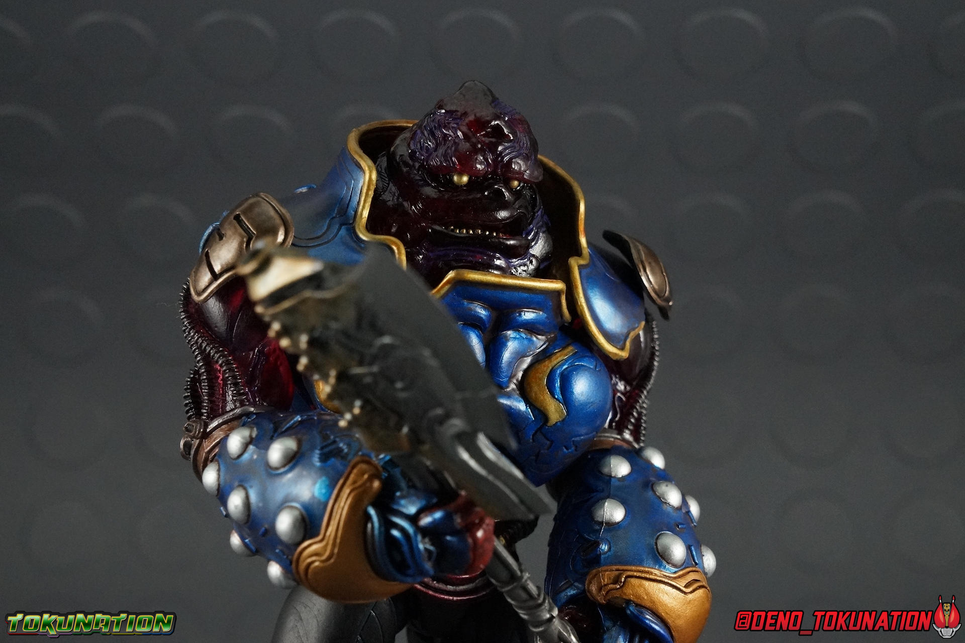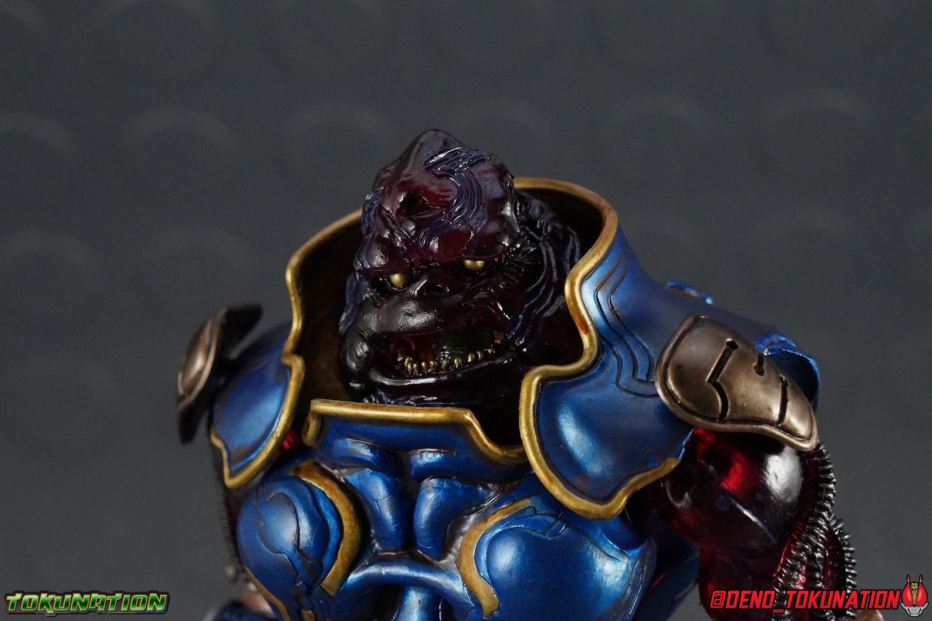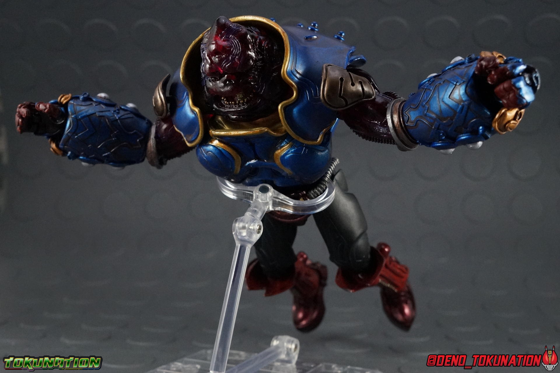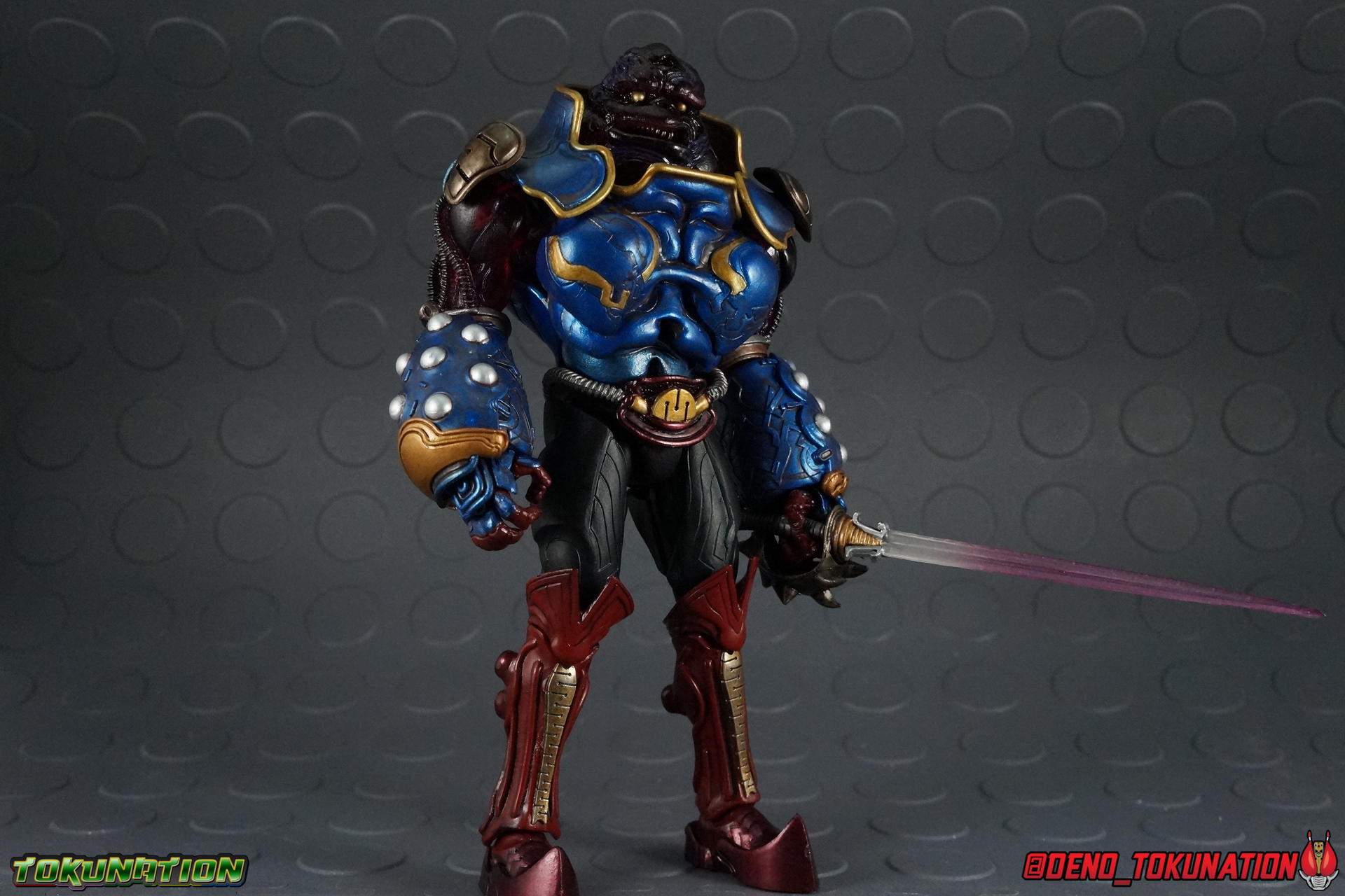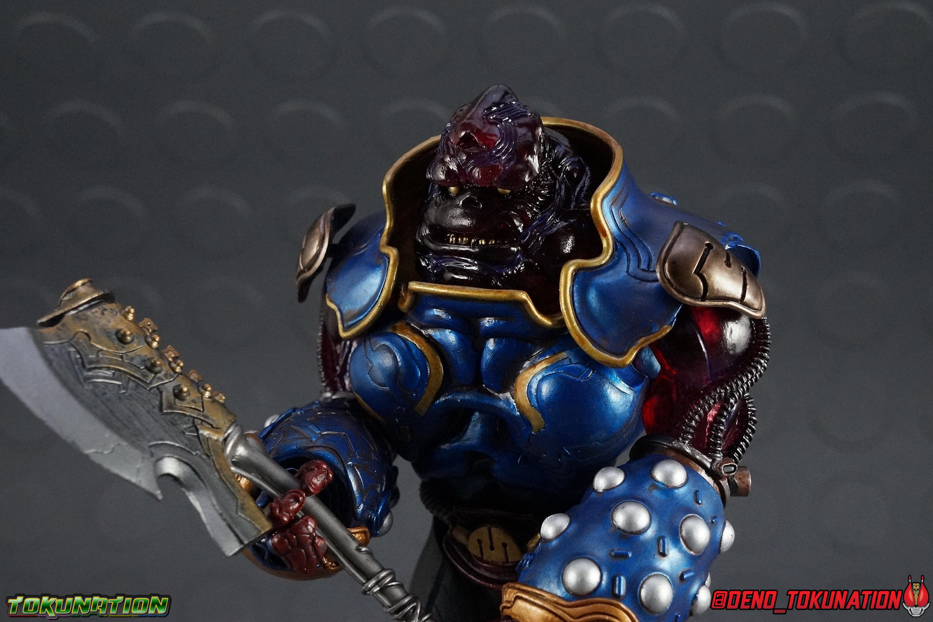 The classic 1975 Shotaro Ishinomori series Akumaizer 3 may not be something you're familiar with, but today that changes! The series stars Zabitan, a rogue member of the Demon Clan who has come from the Downworld to the human one, in order to become a hero. However he's initially pursued by 2 members of his clan's Internal Affairs, Ibiru & Gabura. While these 2 do initially hunt Zabitan, rather quickly (by episode 1's end) his code of honor and mercy win the duo over to his cause. Thus the Akumaizer 3 are formed! Rather oddly, although these characters are definitely demons, Zabitan himself is in fact half human as he has a human father. ![]() Akumaizer 3 was a brief footnote in Toei Tokusatsu history, running 38 episodes from 1975-76. But a very good one. So good in fact that it spawned a direct sequel in the form of Choujin Bibyun! A series which featured the Akumaizer 3 as new heroes, rewarded with human bodies in honor of their good deeds in their past life. While these 2 series don't receive much love these days, the Akumaizer 3 were dug up to be used as villains in Kamen Rider Wizard & Fourze Movie Wars Ultimatum. Their designs in that film were reminiscent of the S.I.C.S. but still very much their own thing. Now as with most all S.I.C. releases you'll see that the figures reviewed below are VERY different compared to their original show designs. The majority of S.I.C. designs are actually the brain child of the incredibly talented Takeyuki Takeya, whom you may recall designed all of the Roidmude for Kamen Rider Drive. His particular style has always been interesting and seeing it put to use redesigning these 70's Showa heroes is just incredible. The S.I.C. Akumaizer 3 figures are in fact the only high end poseable figures that have ever been made of the team as well. While these figures may not fit what you're looking for in terms of their classic appearances, you should read the review below to find out why they're so great. ** Post #1 is all Zabitan, #2 is Ibiru, & #3 is Gabura plus group shots Packaging As with most S.I.C.'s the box here is pretty huge. Granted this is also a pretty extensive 3-pack. But the box is just massive. The 3 figures are twist tied into the packaging with a separate parts tray for accessories. Be careful when removing older releases like this from box though as older S.I.C.s can be very fragile. Main Figures Zabitan- What you first need to know about these figures is that they're big. Like nearly 8" tall. S.I.C. prides itself on intricate detail and design flourishes so this 8" scale really helps set it apart even further from Bandai's other collector lines. The Chogokin implied by the "C" in S.I.C. obviously means there are diecast parts involved as well. On Zabitan those parts consist of the bronze colored shin guards, belt buckle, hip guards, shoulder pads, and forearm guards. Now they don't add much weight to this figure, but they do add, I don't know how to word it, a tiny bit of class perhaps? Regardless they don't improve or hinder the figure. With a S.I.C. of this age your expectations should be tempered in the first place. Older S.I.C.s tend to be fragile and easily broken. Tight joint tolerances/part fits and sometimes inconsistent quality can be a bad combination. And like many older S.I.C.'s articulation can be limited. Zabitan has some standard articulation himself, but it's hindered by his design. While he does have ball hips knees and ankles, his ankles are very loose, his knees are on a double joint that pulls out easily, and his hips don't have much back or outward range. It can be very difficult to get him into a dynamic stance with these issues. The upper body features a pretty nice waist and ab joint, but the shoulders pose more problems, the arms can only get up to about 45 degrees. The elbows pose a similar problem. So you get a pretty mixed bag articulation-wise out of Zabitan. The potential is there, the execution is not. But thankfully the head is on a peg to make exchanging it with the alternate ones easier, so it's mostly free of obstruction. Sidenote, the head originally attached tot he figure is actually one that represents an alternate state for Zabitan. This "standard" head is specifically a call back to episode 1 of the series when Master Mezalord used the Demon Crest to attempt to regain control of Zabitan. His skull began to crack and ripple from the strain so this head features that damage. The visor is also a bit larger and differently shaped on this head, a nod to how Zabitan's visor would change often from when he's not in combat to when he fights other members of the Demon Clan. An alternate and more towards show accurate head is included. As for the rest of the figure, a nice light blue paint wash is applied to black parts to draw out details, and a black wash is applied to the white parts. So it's a gorgeous looking figure, but one that ultimately doesn't function extraordinarily well. Ibiru - Ibiru shares many basic design similarities with Zabitan actually. His body is simply a bit more lean & slender. But ultimately the two are very very similar. Ibiru has all the same basic articulation and issues that come with it as Zabitan. Though I do feel he is more limited in the elbow area, and has weaker elbow joints, his shoulders seem much more free to rotate. His legs also feel a bit less restricted, though his ankles are just as weak. Ibiru also features diecast like Zabitan, though not in exactly the same spots (shins, forearms). But basically everything else about the two is the same from a design & execution standpoint. Ibiru even has a dark paint wash meant to bring out more details on the intricate suit. Speaking of the suit, just like Zabitan, Ibiru is a pretty interesting departure from the original costume. Though much like Zabitan it feels like a natural progression of the demon theme. The standard head attached to the body out of box is much like Zabitans in that it's more menacing than normal, but not 