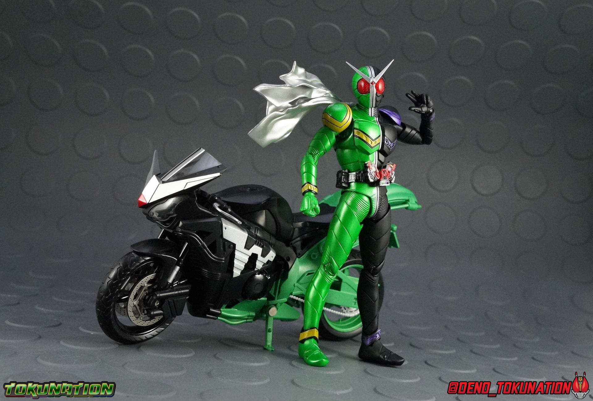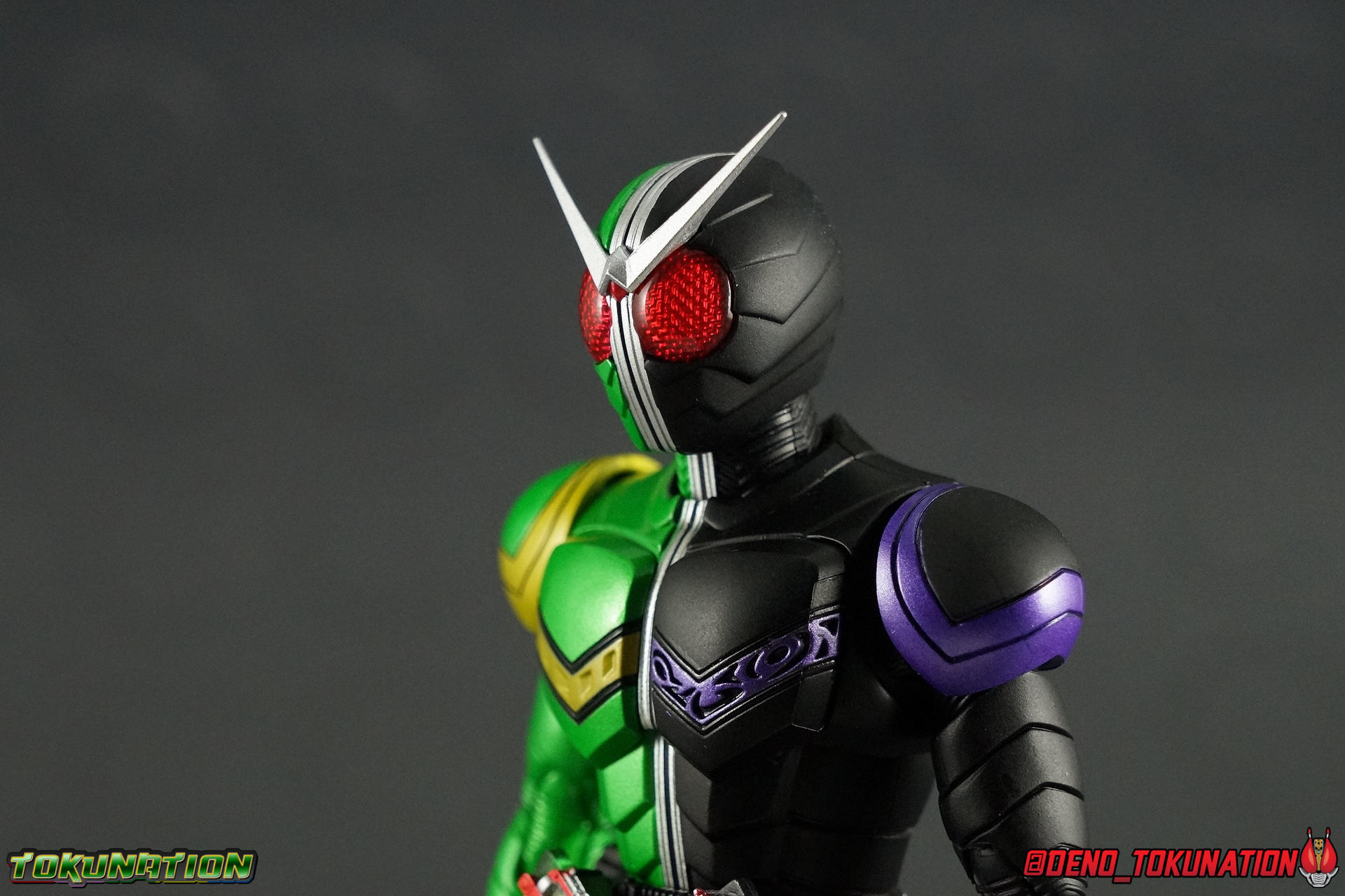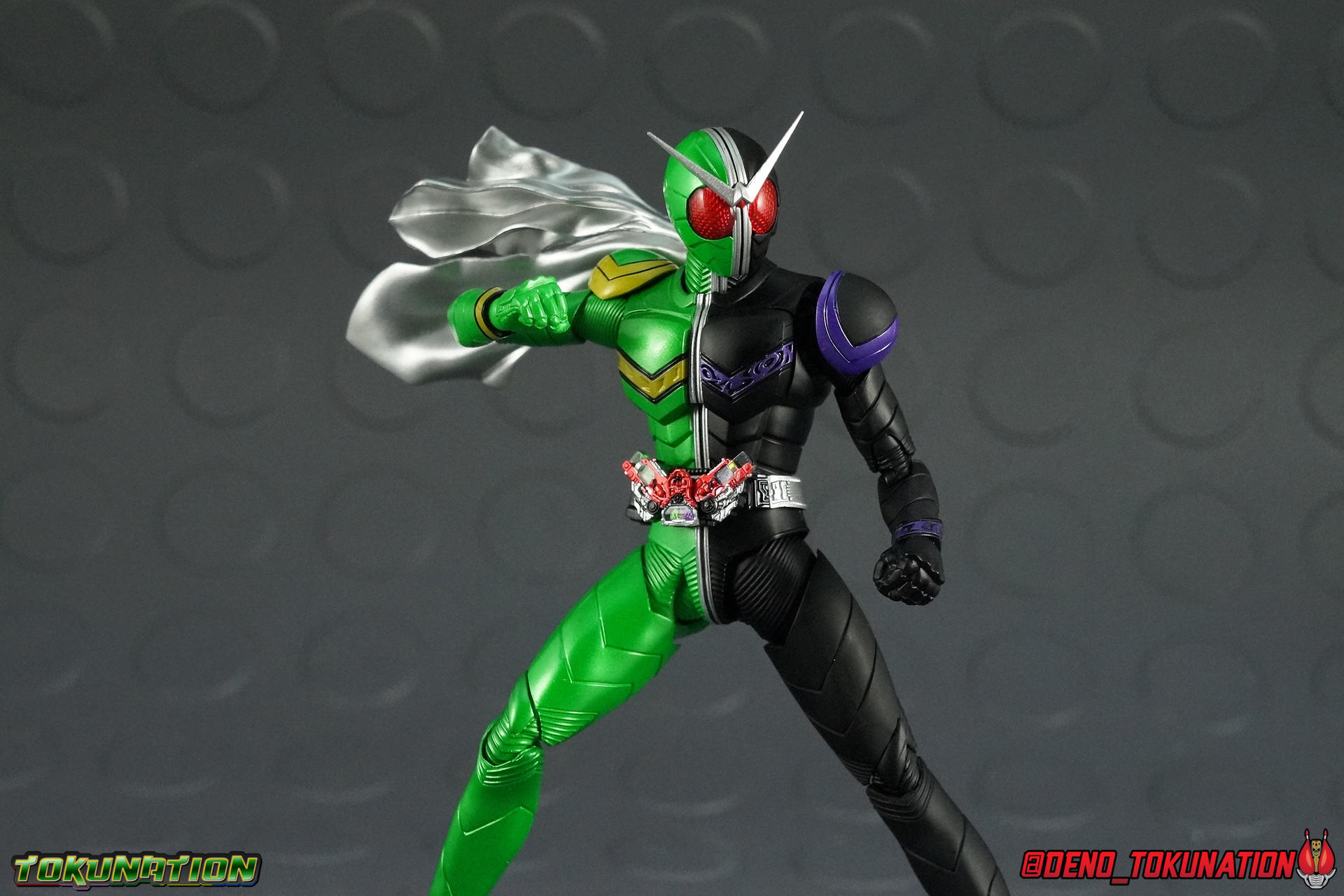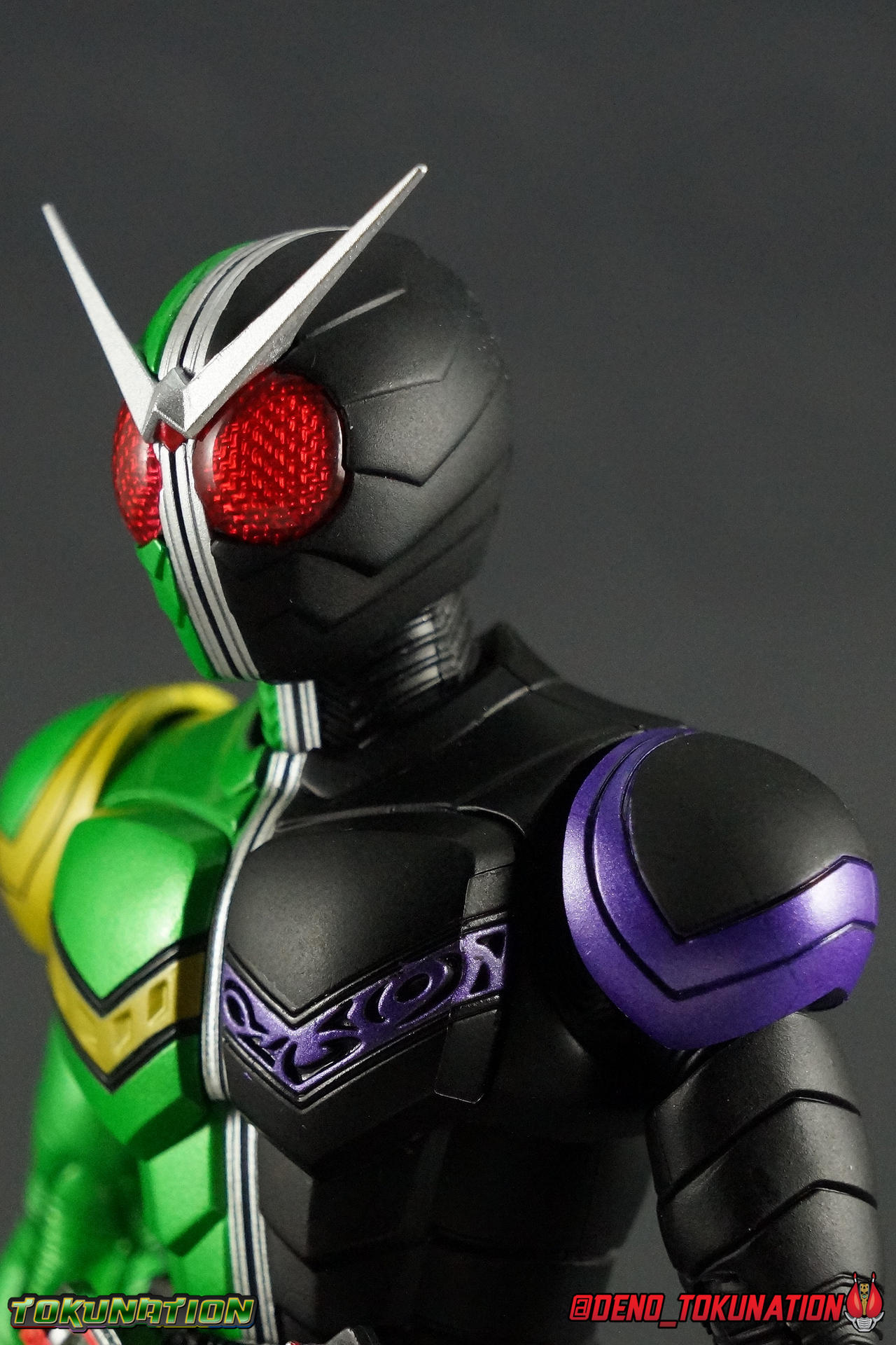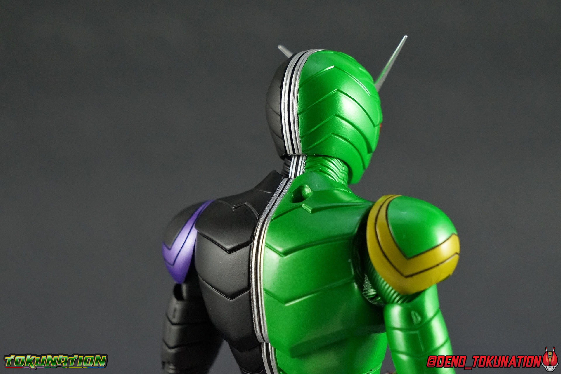 Once again Bandai have outdone themselves with another sophisticated modern update to a fan faovrite character. After years of being represented only by the original S.H. Figuart, collectors can finally upgrade their Kamen Rider W's with the S.H. Figuarts Shinkocchou Seihou Kamen Rider W! But is it the Figuart of year? Read on to find out that, yes, I think it is! Packaging The wonderful premium Shinkocchou Seihou packaging returns! If you've seen any of my recent reviews for Seihou Kuuga Ultimate or Seihou Gattack, etc etc, then you know I love this packaging, but it also isn't very different from release to release. Main Figure It's no secret that I have never been the biggest fan of Kamen Rider W. The show just didn't work for me on a number of levels. But I can respect that for many people it wound up being their access point into the franchise. And for those people more than most, there's been a glaring hole in their collection for years. A truly good SHF W. Well after 5 years of waiting, Bandai has finally rectified their mistakes. The original SHF W can go in the trash heap where it belongs, because Shinkocchou Seihou W is the renewal fans have deserved for years! This figure basically accurately recreates the suit you've seen in numerous episodes and movies down to it's finest details. I've said this many times with Shinkoccouh Seihou releases, but I truly think W is the peak of the line so far. In every conceivable way this figuart is a masterpiece. For a frame of reference, the original W Figuart was largely a product of it's time. A figure rushed to production with sloppy proportions, inaccurate details, no functional gimmicks, and an absolute dearth of accessories. In last 5 years this toyline has made huge strides towards striking the balance of accuracy & playability. And S.S. W is probably the peak at this point. For starters the S.S. release is completely the perfect shades of green & black. Finally after years of the ugly metallic on the original release, the S.S. embraces that wonderful shade of green and brings the suit design to life. Adding to this the gold & purple detailing are also the correct colors, the silver paint apps are on point, and the eyes are the correct shade of red. As you can see in the comparison shots below it's like night & day between these two. There is no comparison at this point, and then you look at the Double Driver. Not only does Seihou W feature an intricately detailed sculpt with appropriate paint apps for this device, it is entirely functional! Yes this Drive works just as it should including open slots for to-scale Gaia Memories to be used. This figuart includes (appropriately) the Cyclone & Joker memories, they fit into the slots very snugly as well so once in there they should be safe. But be careful when inserting them as they are easy to lose. The sides of the W Driver can fold down as well completing the look. If/when further W releases come out you'll be able to swap in their Gaia Memories as well, though obviously this figure can't split in half to form change. Now the Seihou W obviously has the look down, but does it have the functionality. Yes. In every sense of the word. Before now possibly the only poseable W figures released that could really pull off his signature poses and still look good doing it were the Master Grade Figurise model kit and perhaps the 12" Medicom figure. S.S. W has the articulation to pull off everything, and the proper sculpting for the joints needed for it to look perfect while doing so. How about those extending knee joints that look like a natural expansion of the costume, almost like fabric stretching? Or those seamless thigh swivels? Perhaps the masterful design of the shoulder pads & upper arms? Or the miraculous way the upper torso is designed. When I initially handled this figure I thought the torso was all one piece until I realized the upper body could move. It just looks that good in hand. This figure can pull off most any pose you recall the character making, and looks absolutely perfect while doing so. I've encountered a lot of truly great releases in the last year. But I believe this one takes the cake. Accessories 1 - Cyclone Gaia Memory. These small accessories can be used in either the Double Driver or the Maximum Drive slot on the right hip. They are extremely tiny, and extremely easy to lose. Do be careful with them. 1 - Joker Gaia Memory. These small accessories can be used in either the Double Driver or the Maximum Drive slot on the right hip. They are extremely tiny, and extremely easy to lose. Do be careful with them. 5 - sets of additional hands. Pretty much every iconic pose that W ever used. You couldn't ask for better character specific hands. 5 set's is just brilliant. As if the figure weren't already excellent enough, the hands just sell the body language it can pull off. 1 - muffler/scarf (short). The standard version of W's muffler. It can peg into the right shoulder blade and is hinged to move as needed. My only complaint about this smaller muffler is that it won't lay flat against W's back. It's molded in such a wavy position and the hinged joint it moves on doesn't allow for it to get very close to the main body. I get that W is known for his sweeping scarf in poses, but occasionally things do look more flat and static. I would have liked an alternate flattened scarf like we've seen in the past with numerous Showa Rider releases. 1 -muffler/scarf (long). Now this one is purely for cool posing. It's not really practical, especially due to it's considerable weight. The hinge on the peg can't entirely support it, so it can fall easily if moved to much. But it's not really a long term use accessory either. This one is obviously much larger and more wind swept. Honestly that's a pretty great set of accessories for W. I would say he should have included some effect parts, but the wind/cyclone Tamashii Act Effects that were released in tandem with him get the job done very wel