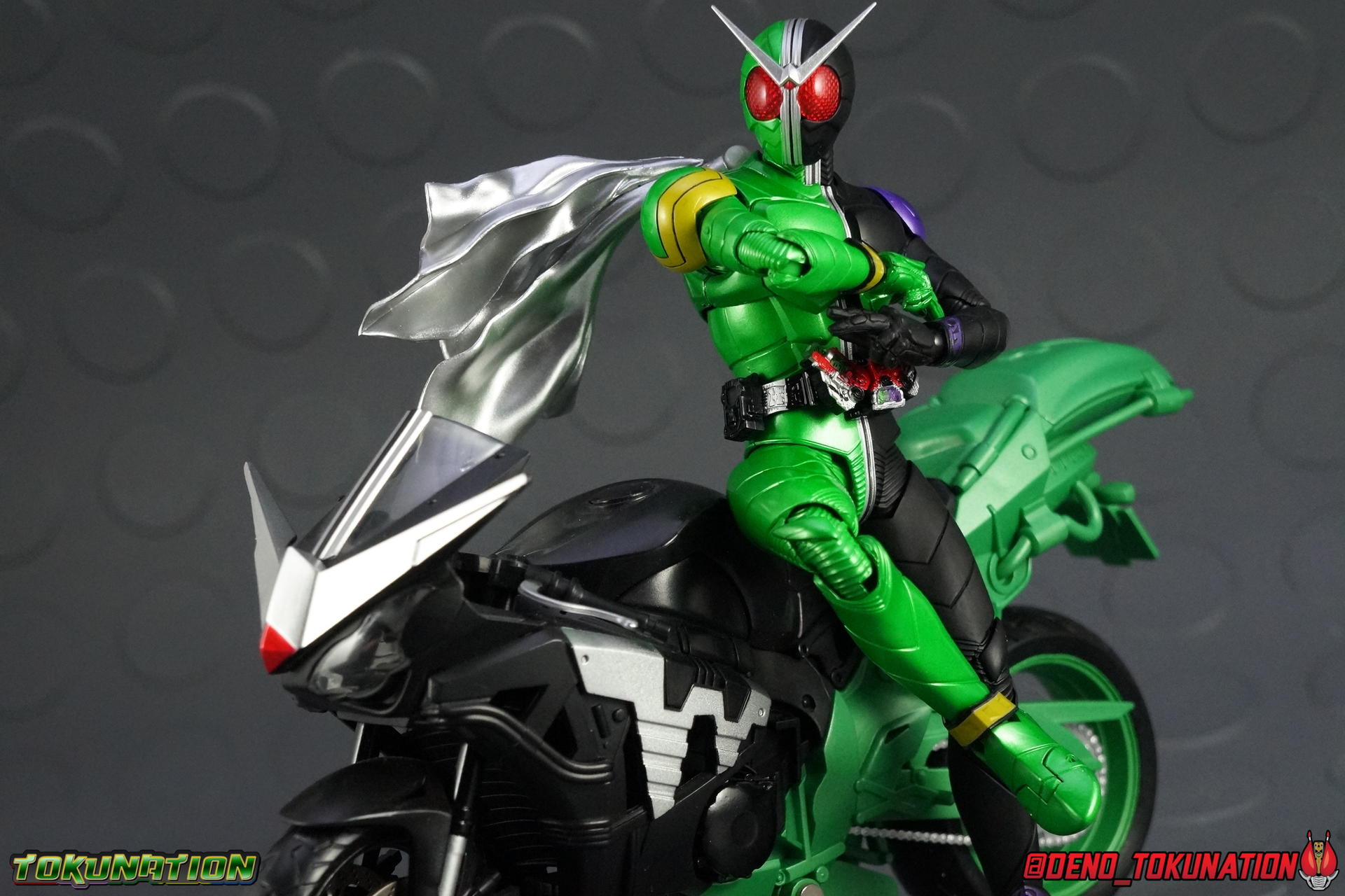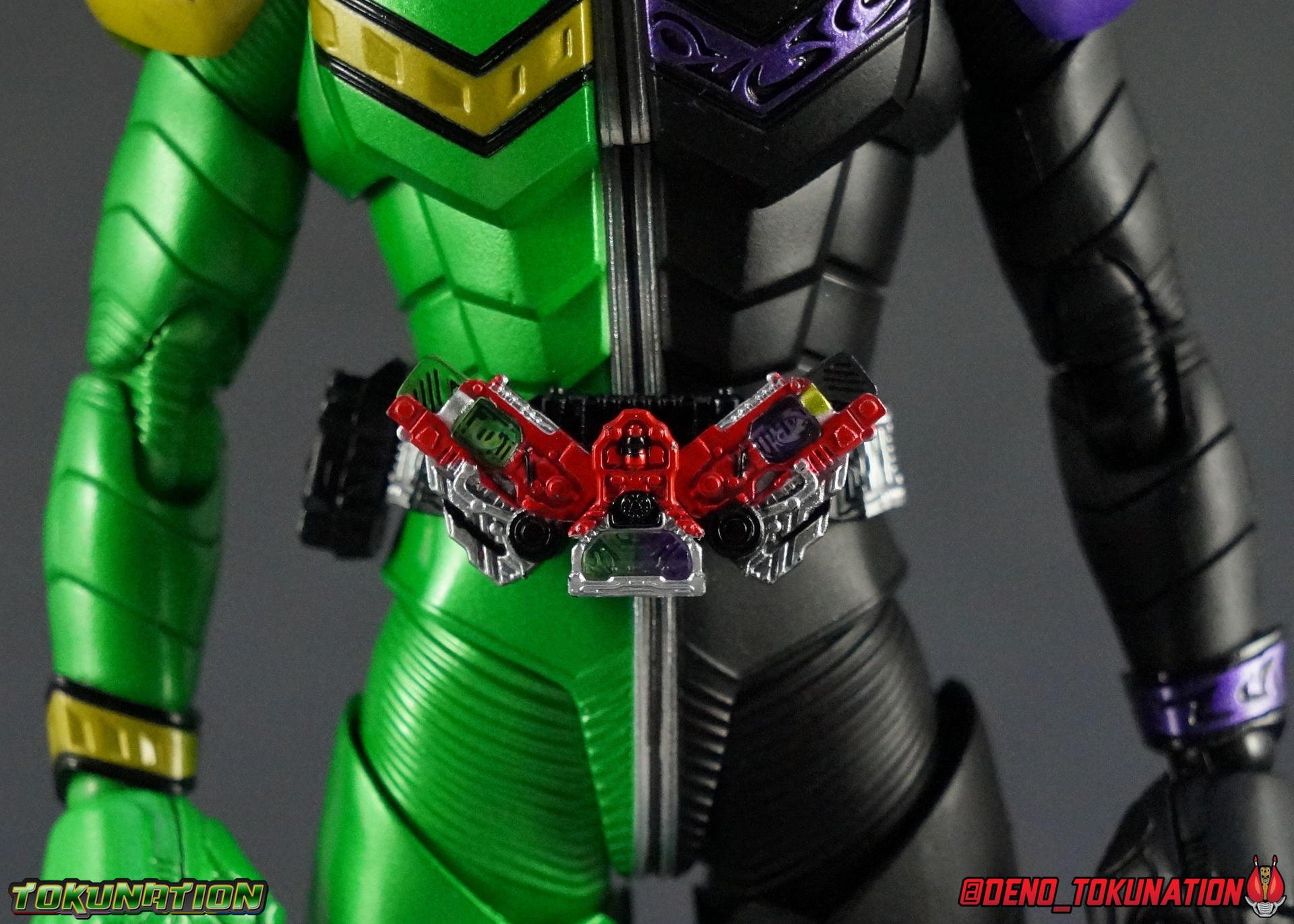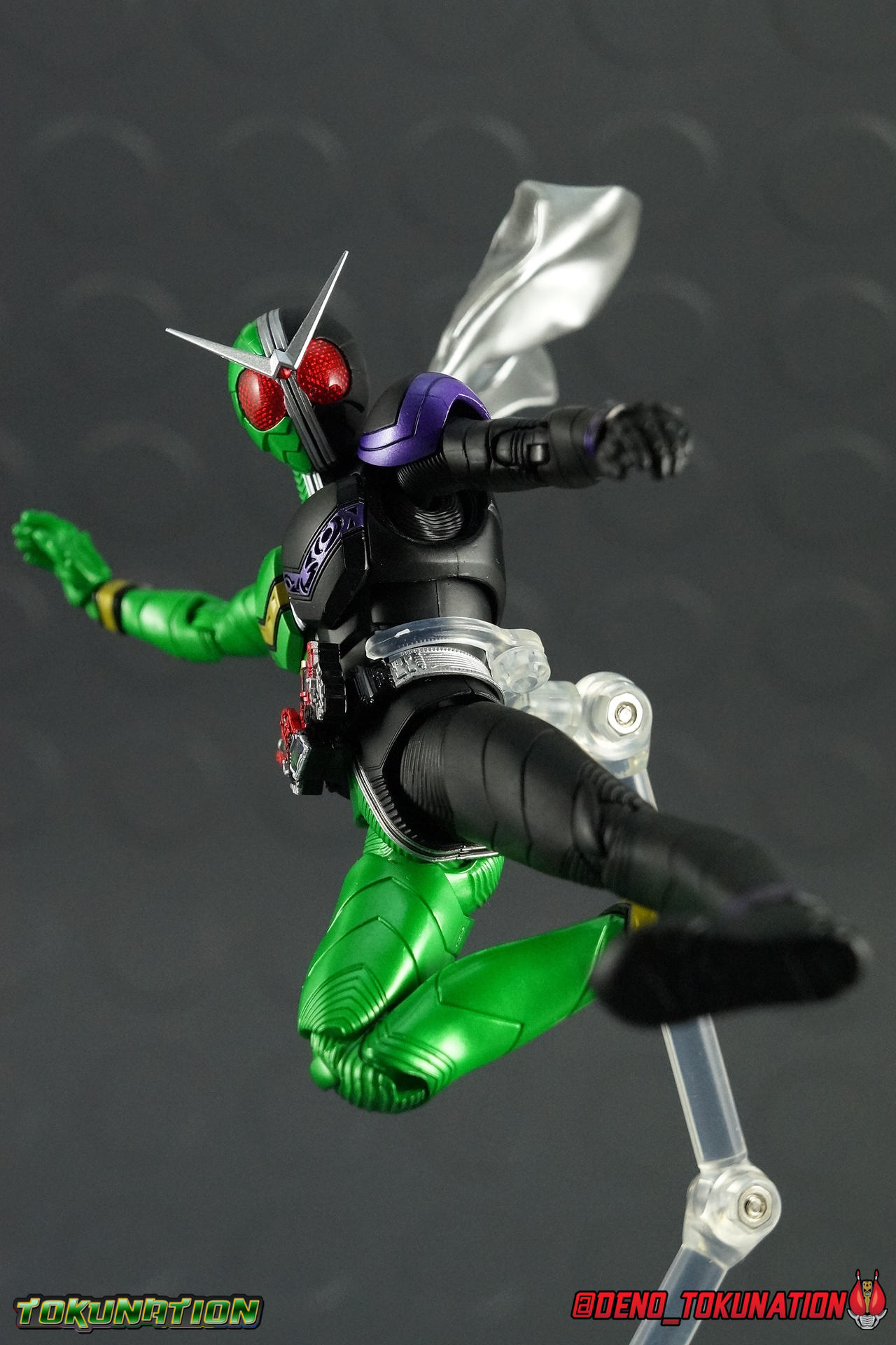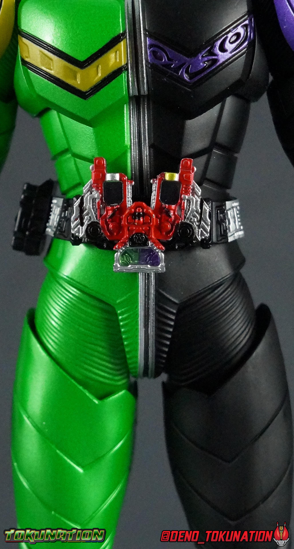 Once again Bandai have outdone themselves with another sophisticated modern update to a fan faovrite character. After years of being represented only by the original S.H. Figuart, collectors can finally upgrade their Kamen Rider W's with the S.H. Figuarts Shinkocchou Seihou Kamen Rider W! But is it the Figuart of year? Read on to find out that, yes, I think it is! Packaging The wonderful premium Shinkocchou Seihou packaging returns! If you've seen any of my recent reviews for Seihou Kuuga Ultimate or Seihou Gattack, etc etc, then you know I love this packaging, but it also isn't very different from release to release. Main Figure It's no secret that I have never been the biggest fan of Kamen Rider W. The show just didn't work for me on a number of levels. But I can respect that for many people it wound up being their access point into the franchise. And for those people more than most, there's been a glaring hole in their collection for years. A truly good SHF W. Well after 5 years of waiting, Bandai has finally rectified their mistakes. The original SHF W can go in the trash heap where it belongs, because Shinkocchou Seihou W is the renewal fans have deserved for years! This figure basically accurately recreates the suit you've seen in numerous episodes and movies down to it's finest details. I've said this many times with Shinkoccouh Seihou releases, but I truly think W is the peak of the line so far. In every conceivable way this figuart is a masterpiece. For a frame of reference, the original W Figuart was largely a product of it's time. A figure rushed to production with sloppy proportions, inaccurate details, no functional gimmicks, and an absolute dearth of accessories. In last 5 years this toyline has made huge strides towards striking the balance of accuracy & playability. And S.S. W is probably the peak at this point. For starters the S.S. release is completely the perfect shades of green & black. Finally after years of the ugly metallic on the original release, the S.S. embraces that wonderful shade of green and brings the suit design to life. Adding to this the gold & purple detailing are also the correct colors, the silver paint apps are on point, and the eyes are the correct shade of red. As you can see in the comparison shots below it's like night & day between these two. There is no comparison at this point, and then you look at the Double Driver. Not only does Seihou W feature an intricately detailed sculpt with appropriate paint apps for this device, it is entirely functional! Yes this Drive works just as it should including open slots for to-scale Gaia Memories to be used. This figuart includes (appropriately) the Cyclone & Joker memories, they fit into the slots very snugly as well so once in there they should be safe. But be careful when inserting them as they are easy to lose. The sides of the W Driver can fold down as well completing the look. If/when further W releases come out you'll be able to swap in their Gaia Memories as well, though obviously this figure can't split in half to form change. Now the Seihou W obviously has the look down, but does it have the functionality. Yes. In every sense of the word. Before now possibly the only poseable W figures released that could really pull off his signature poses and still look good doing it were the Master Grade Figurise model kit and perhaps the 12" Medicom figure. S.S. W has the articulation to pull off everything, and the proper sculpting for the joints needed for it to look perfect while doing so. How about those extending knee joints that look like a natural expansion of the costume, almost like fabric stretching? Or those seamless thigh swivels? Perhaps the masterful design of the shoulder pads & upper arms? Or the miraculous way the upper torso is designed. When I initially handled this figure I thought the torso was all one piece until I realized the upper body could move. It just looks that good in hand. This figure can pull off most any pose you recall the character making, and looks absolutely perfect while doing so. I've encountered a lot of truly great releases in the last year. But I believe this one takes the cake. Accessories 1 - Cyclone Gaia Memory. These small accessories can be used in either the Double Driver or the Maximum Drive slot on the right hip. They are extremely tiny, and extremely easy to lose. Do be careful with them. 1 - Joker Gaia Memory. These small accessories can be used in either the Double Driver or the Maximum Drive slot on the right hip. They are extremely tiny, and extremely easy to lose. Do be careful with them. 5 - sets of additional hands. Pretty much every iconic pose that W ever used. You couldn't ask for better character specific hands. 5 set's is just brilliant. As if the figure weren't already excellent enough, the hands just sell the body language it can pull off. 1 - muffler/scarf (short). The standard version of W's muffler. It can peg into the right shoulder blade and is hinged to move as needed. My only complaint about this smaller muffler is that it won't lay flat against W's back. It's molded in such a wavy position and the hinged joint it moves on doesn't allow for it to get very close to the main body. I get that W is known for his sweeping scarf in poses, but occasionally things do look more flat and static. I would have liked an alternate flattened scarf like we've seen in the past with numerous Showa Rider releases. 1 -muffler/scarf (long). Now this one is purely for cool posing. It's not really practical, especially due to it's considerable weight. The hinge on the peg can't entirely support it, so it can fall easily if moved to much. But it's not really a long term use accessory either. This one is obviously much larger and more wind swept. Honestly that's a pretty great set of accessories for W. I would say he should have included some effect parts, but the wind/cyclone Tamashii Act Effects that were released in tandem with him get the job done very wel