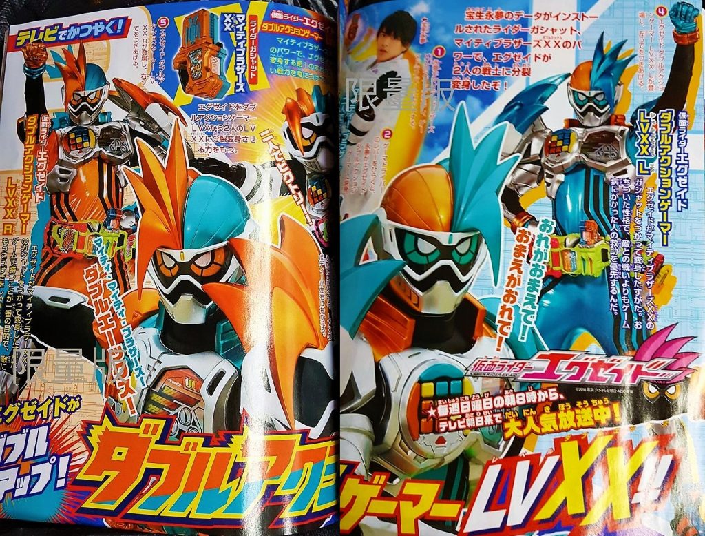 So apparently Mighty Brothers DOES split Emu into the two different facets of his personality, but they're both him. Which is the important thing. I actually like that idea a lot if they're not going to try and tell us he literally IS two people. It also says the Gashat has Emu's data installed in it, whatever that means. And the caption next to that picture of Kiriya and Emu that was also in the episode preview explicitly states that "Kiriya gets a Game Over and entrusts his Gamer Driver to Emu", so, um... I mean, Dan just got a Game Over and he didn't die, so... ...there's no way. there's no way... ...there's no way...