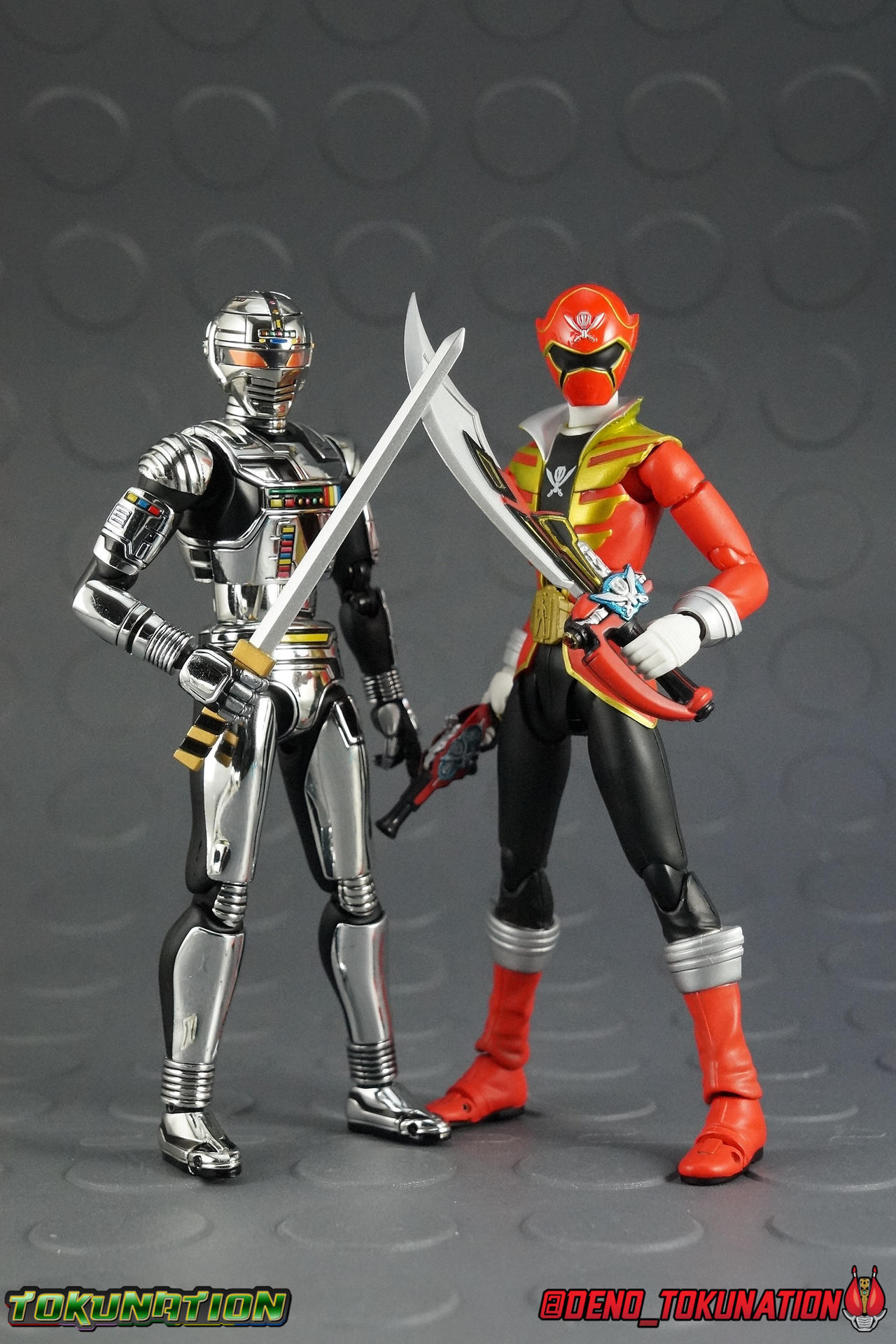 With the Dekranger/Gavan Space Squad movie on the horizon, we recently took a 2nd look back at S.H. Figuarts Deka Red. So while we were at it we figured it was time for a full gallery of the original Metal Hero himself, with S.H. Figuarts Space Sheriff Gavan! For a little background, Space Sheriff Gavan (Uchuu Keiji Gavan) was the inaugural series in Toei's Metal Hero franchise, the third of the big 3 Toei Tokusatsu franchises. The series debuted in 1982 and began with Retsu Ichijoji (Gavan) being dispatched by the Galactic Union Police in order to save Earth from the evil Don Horror and the Makuu Space Mafia. His adventures on Earth spanned 44 episodes and inspired the long tradition of Metal Hero's who succeeded him, including his 2 immediate successors who also bore the Space Sheriff title (Sharivan & Shaider). As well as his eventual modern replacement Gavan Type G. Type G would debut in 2011's Space Sheriff Gavan the Movie, and would even be followed up by modern updates to both Sharivan & Shaider. Obviously, Metal Heroes are undergoing somewhat of a renaissance in recent years. With S.H. Figuarts for shows like Juspion, Juuko B-Fighter, & Tokkei Winspector having been released in the last 2 years. Then there's a Premium Bandai Ranger Key Set, and even a 1:1 scale roleplay toy for Gavan. This is sort of the Golden Age for Metal Heroes. With all that in mind, as well as the recently announced Gavan Renewal Figuart coming our way, we figured it was well past time to take a look at the original S.H. Figuarts Gavan! Packaging The original Gavan packaging is actually pretty great. It's got some interesting detailing that really gives you a feel for the show and character. The later release, Gavan Type G, uses the same style of box with some swapped colors to differentiate, but really they're both pretty lovely. I don't know why but on occasion I'm kind of a sucker for cool packaging, in Gavan's case it just works for me. Main Figure Now first to get things out of the way, there is an S.H. Figuarts Gavan Renewal on the way, as recently revealed by Tamashii Nations. And I've had this original release ever since it first came out. Well I just can't properly express how excited I am by the prospect of the new figure. That's primarily because the original is such a flawed release. Read below to find out why. For starters Gavan actually really does look quite good out of the box. At first glance the chrome looks great, his proportions seem solid, and he manages to look a little less goofy than the actual show suit itself does from time to time. However on closer inspection the flaws begin to become clear. Starting with the chrome I mentioned, this was a bold choice by Tamashii Nations. Chrome has been used sparingly through out the S.H. Figuarts toyline but this is one of very few figures which is covered in it. And frankly it isn't entirely accurate. I get that they were going for the more striking look of Gavan, but reflective chrome just isn't what Gavan had all the time. He was often shown in more of a brushed silver. Silver armor with reflective aspects was used in appropriate scenes, but I always preferred the muted look of silver or gray to chrome. So I'm kind of 50/50 on the chrome. But the chrome on this figure is also very easy to flake, and applied inconsistently. It doesn't help that it's a finger print magnet as well. Looking at the feet, these were poorly designed in the first place. The ankle cuffs restrict nearly all movement so creating dynamic poses is very difficult. The cuffs also aggravate the chrome flaking. The way in which the hips impact the waist joint/diaper allows chrome to flake off there most easily. While we're on them the hips are also notoriously loose on most Gavan's The plastic used is the same weak type the wrist pegs were designed with (we'll get to that). So the hips themselves can crack internally and loosen over time, mine are quite bad at this point. The chest and torso details are actually quite nice, as are the arms. On the arms here comes the standard warning about the horrendously designed wrist pegs. They were constructed with paper thin plastic pegs that leave them extremely prone to breakage. Just be careful, and forgive me for not displaying Gavan with too many hands in the gallery. I couldn't bare to break another one. The arms themselves are limited by the shoulder design, the chrome shoulder pad impacts the joint itself making it hard to move his arms properly, they also tend to flake pretty badly over time. They got all the broad strokes of Gavan's detailing down pat on the torso and abs. But weirdly the lower torso section is on some strange angling joint that lets you lift up and pull out on the body, exposing a massive gap around his back when you do so. It looks very unnatural, not pleasing to the eye at all, and really it doesn't even facilitate that much more movement out of him. The head however is a dead ringer for the real deal, as is the swap out head described in the accessories section. If not for the flaws present in this design, Gavan could have been wonderful. As a huge fan of Metal Heroes I'm really quite disappointed that this is how the figuart turned out. I'm certain that the renewal will fix all of these issues and add some much needed proportionality to the design. As is this original figuart is somehow an even worse figure than the much older Toei Action Works release which was the standard for some time. Even the much older Souchaku Henshin release has more going for it than the figuart. It's just flawed in every aspect. Accessories Surprisingly for a Tamashii Web Exclusive, Gavan actually came with a decent number of accessories: 3 - sets of additional hands. Just the usual stuff, some open palms, some sword holding hands, and some pointing type fingers for Gavan's Laser Z Beam. Please be cautious, when exchanging hands on this figuart they are very easily prone to breakage. The wrist pegs snap clean off the ball join