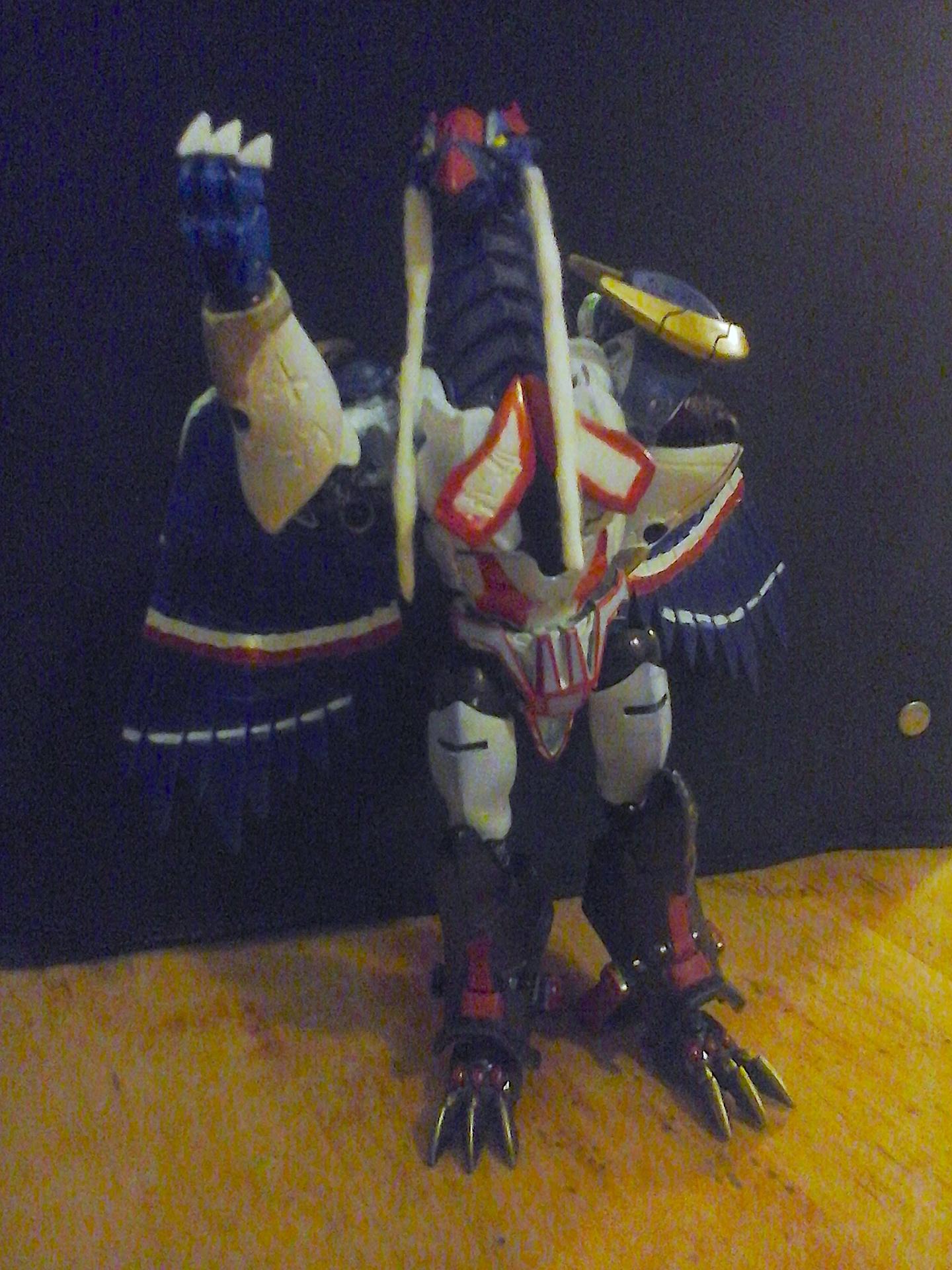 In tonights case, after about 4 days of off and on working with the figure (aka FIGHTING it like a beast!) I decided to turn my Beast Hunters Grimwing http://www.transformers-universe.com...imwing_Map.jpg into Wise God Torin of Kyoryuger! And I have to say, I felt quite happy with the end result overall. But, at the same time, I KNOW I can get better and produce such a figure with much cleaner lines, paint layers and in quicker time. Speaking of, what ratio would you guys recommend for the best overall layering of the paint between Pledge/Future Polish and Acrylic Paint? For now, enjoy what you will of this and I hope to hear feedback from you guys! Last edited by KumaOrigami83; 02-18-2017 at 08:29 PM.. Reason: Fixing a link |