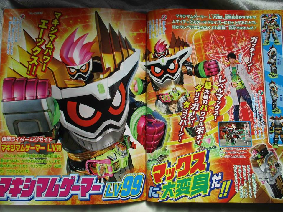 Girigiri Bugster (Gaiden? I can't read his name well) looks weird. And a Shakariki Bugster, at last! Looks freaky. So, yeah. That just leaves DoReMiFa. Rip poppers. It says they finally finish Genm, but...I wonder. I doubt he actually dies. Someone has to finish KRC. Whoooo knoooows. (gonna laugh so hard if graphite ends up being chronos or something) Brave finally gets to use Full Dragon, at least. And Emu and Poppi go talk to Masamune. Also interesting. Some weird stuff going on in Chou Super Hero Tasen. Maximum Gamer grows giant to fight alongside KyurenOh and Brave gets a new Legend Game form. Looks like a lot is going down next month. Looking forward to it! Oh, and I forgot to comment on it even though it's the main thing here. Maximum Gamer doesn't look too weird actually. A bit stiff in some respects but it kinda looks like it works. I kinda like it. Last edited by barnstenchfartface; 02-25-2017 at 03:31 AM.. |