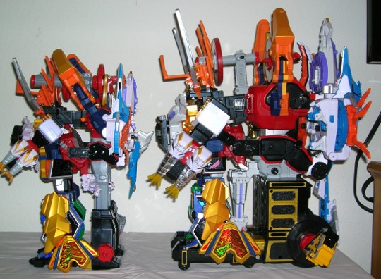 And the slimming down finally works. Even though I haven't gotten any Megazords in yeeears, I've still been looking and have been pretty darn disappointed with BoA dumbing them down instead of releasing the originals with minor changes like in days past. But that thing does look pretty good. And compared to the Japanese version, it does look better; just looking at it I never liked how HaOh just stood on a platform.