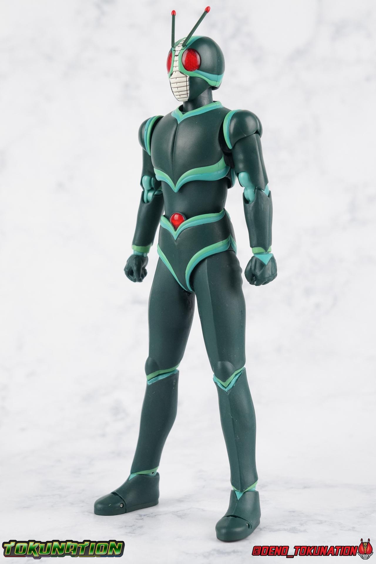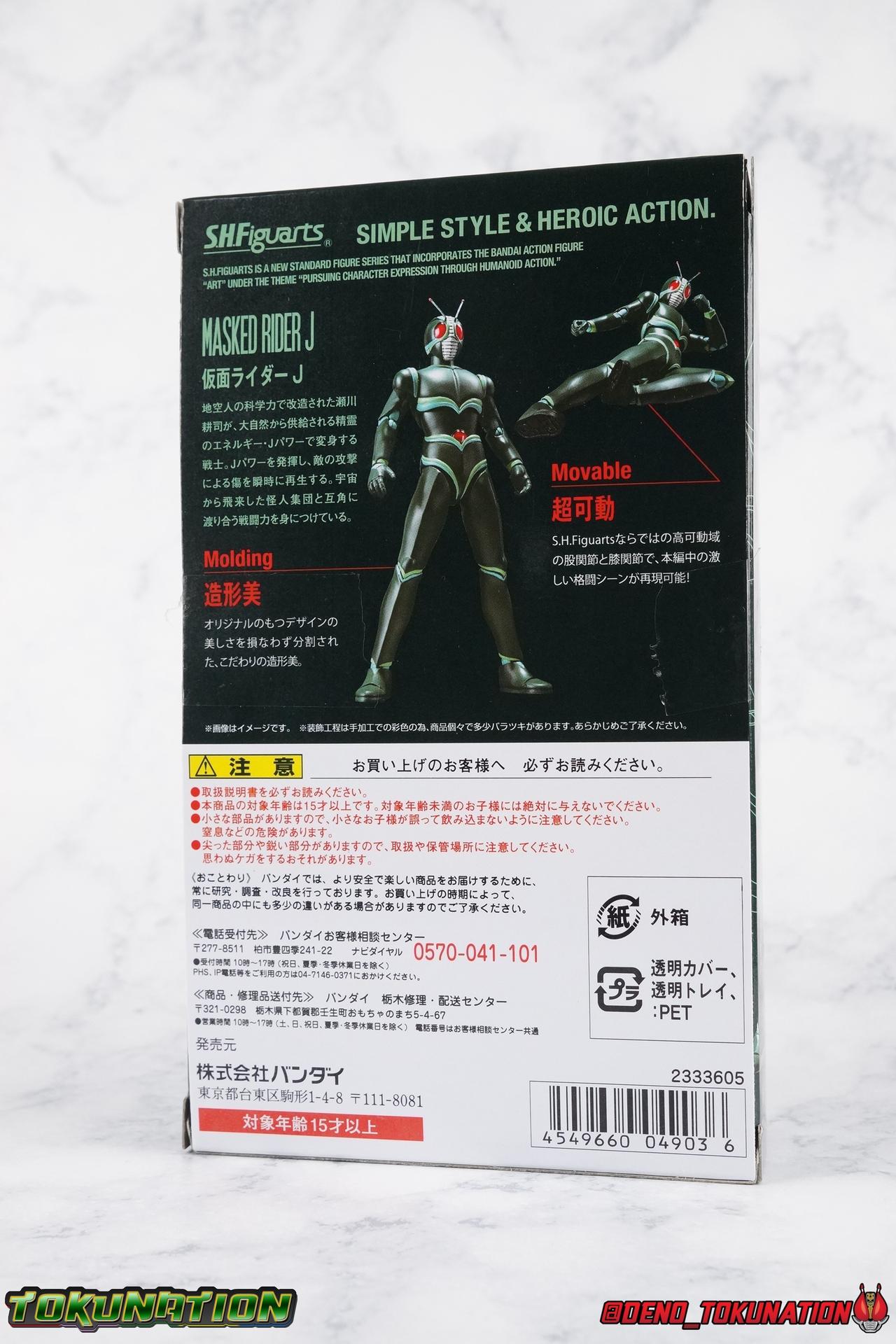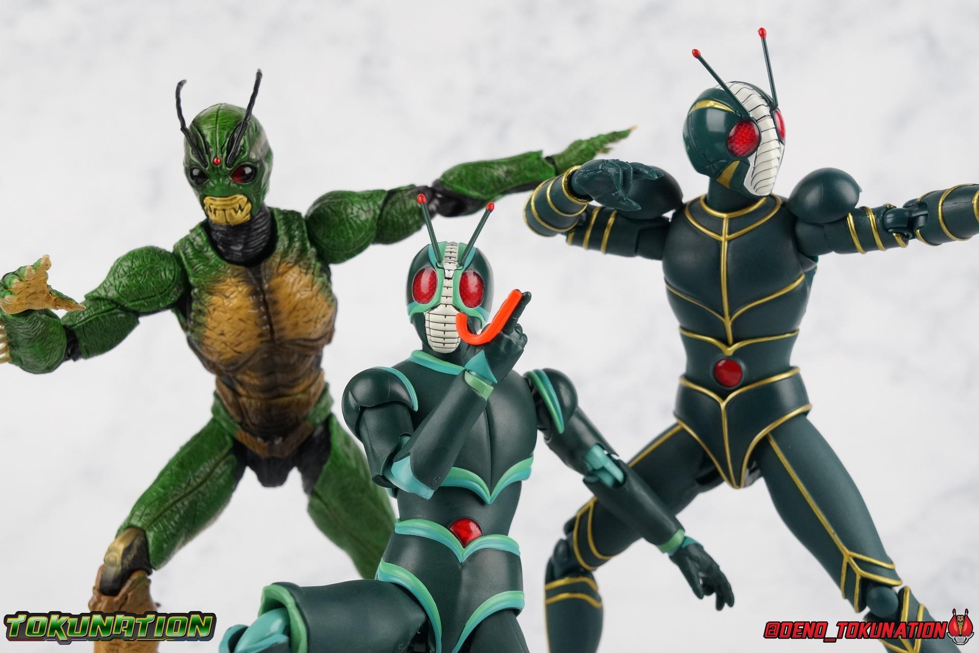 It's been a long time coming but I'm happy to announce my return to TokuNation galleries. It's time to take a look at the long awaited final Showa Rider, Kamen Rider J! J rounds out the trinity of movie exclusive riders from the post-RX era that is still considered Showa by Toei. Each film (Shin, ZO, & J) featured a new rider and a bit of a departure from traditional rider concepts, Shin to a far greater extent than the others. But they're all unique creatures really. This trilogy of films & characters have always had a bit of a cult status in fan communities. However despite S.H. Figuarts of Kamen Rider Shin & ZO having been released over 2 years ago now, J was only just released in January. Bandai has clearly been sitting on this release for some time, but I'm incredibly happy to finally have him in hand. For a little background, the Kamen Rider J film centered around a new evil group known as Fog Mother wanting to take control of the Earth to feast on it's inhabitants. Frankly it's fairly typical in Kamen Rider terms. But the designs and art direction of the film more than make up for any shortcoming of the plot. J himself, is actually the first real victim of this group, but would soon see himself reborn as a warrior of justice in no small part thanks to his soon to be talking sidekick, the grasshopper Berry. But more than any interesting facet of the story, J's actor is also what makes many fans enjoy this film. Yuta Mochizuki, whom many most fondly recall as Tyranno Ranger from Kyoryu Sentai Zyuranger starred in this film! Fun fact he was also the first live-action Tuxedo Kamen/Mask in the original Sailor Moon live action productions (hence the group shot down below). Packaging Nothing much to say here. J comes in a fairly standard slim style box. Only a handful of stock photos, and some dull colors don't make this box look terribly interesting. Packaging with Showa Riders has never been terribly flashy anyways. Main Figure ZO & J while separate films, had much of the same production staff, such as Keita Amemiya. That's specifically why their suit designs are so similar and why you may have mistaken one for the other at any point. It's common. There was an intention on the part of the production staff for these two to be like the modern equivalent of the Double Riders 1 & 2. Having both in figure form side by side allows you to get a better perspective on what makes them similar and so very different. Kamen Rider J, is clearly a new mold. Many people assumed J would have been an easy repaint or remold of ZO, but that just doesn't work. Looking at the finer details of the sculpt J had to be a new mold. Sadly I don't think it's nearly as nice as ZO. J has one glaring flaw, and that's his ankle design. For some reason the ankle joints are set in very very close to the shin guards. So there's no real forward movement and it makes balancing him pretty difficult. He tends to fall backwards if you don't straighten his legs out somewhat. Adding to this is the limited nature of the hips. J has some thick things that impact the waist piece quite a bit. He can still maintain some decently dynamic poses, but the lower body is far from perfect. As for the upper body J is actually really great. There's no noticeable issue that I can see. Physically the design is great, the shoulders are free of obstruction, the elbows have great range, and the torso can extend a decent amount as well. Honestly J has some superb articulation in his upper body. Thankfully the head is also uninhibited in this way. J has a smooth but striking design that lends itself well to the articulation he does have. However I do take issue with some of the paint apps. In the same way that ZO had some issues straight out of the box with his gold trim, J has issues with the green trim. Specifically I've noticed it on his shoulders. But these issues aside, Kamen Rider J is another wonderful addition to the Showa era of riders. It would seem that outside of going back down the renewal/Seihou path, or doing some odd one off re-colors, or the most unlikely scenario of doing more Kaijin, that the Showa era of riders is now complete. However there is still a shortage of Rider Machines at least. We've recently seen that ZX's Helldiver is going to be happening finally, perhaps J's J-Crosser & ZO's Z-Bringer will happen someday soon as well? Accessories As with many Tamashii Web Exclusives Kamen Rider J has a lite load: 2 - sets of hands. One open pair, and oddly one "holding things" pair. These undoubtedly have to be for an upcoming release of the J-Crosser. There's just no other reason for J to include handlebar type hands like this. 1 - "J" Hand. This iconic piece recreates a very brief moment in the Kamen Rider J movie. Prior to the final fight with Garai, J performs his final henshin doing the iconic hand motions we've come to love over the years of this franchise. The final part of which sees J bringing his right hand across his chest in the shape of glowing J. I'd have preferred it if this accessory had a translucent red J, but the painted red one works just fine. It still looks really cool. 1 - Berry. The strange talking grasshopper companion of J, given to him by the Groundling people. This representation of Berry isn't altogether accurate, but it's somewhat forgivable at this scale. 2 - sets of Berry wings. One folded down set, one open set. Neither of them will stay on his back for more than a second. The parts are made of a soft rubbery plastic and can be difficult to plug onto his back. And that's it. Though I don't think anything has necessarily been missed, in several of the films battles J actually sustains some physical damage to his suit. It's done in such a way that it looks like flesh wounds, rather than mechanical parts of a suit being damaged. I have to imagine that Bandai could easily re-release this figure in that damaged look with a slightly different color scheme, in the same fashion of as Broken Blade & Garren 