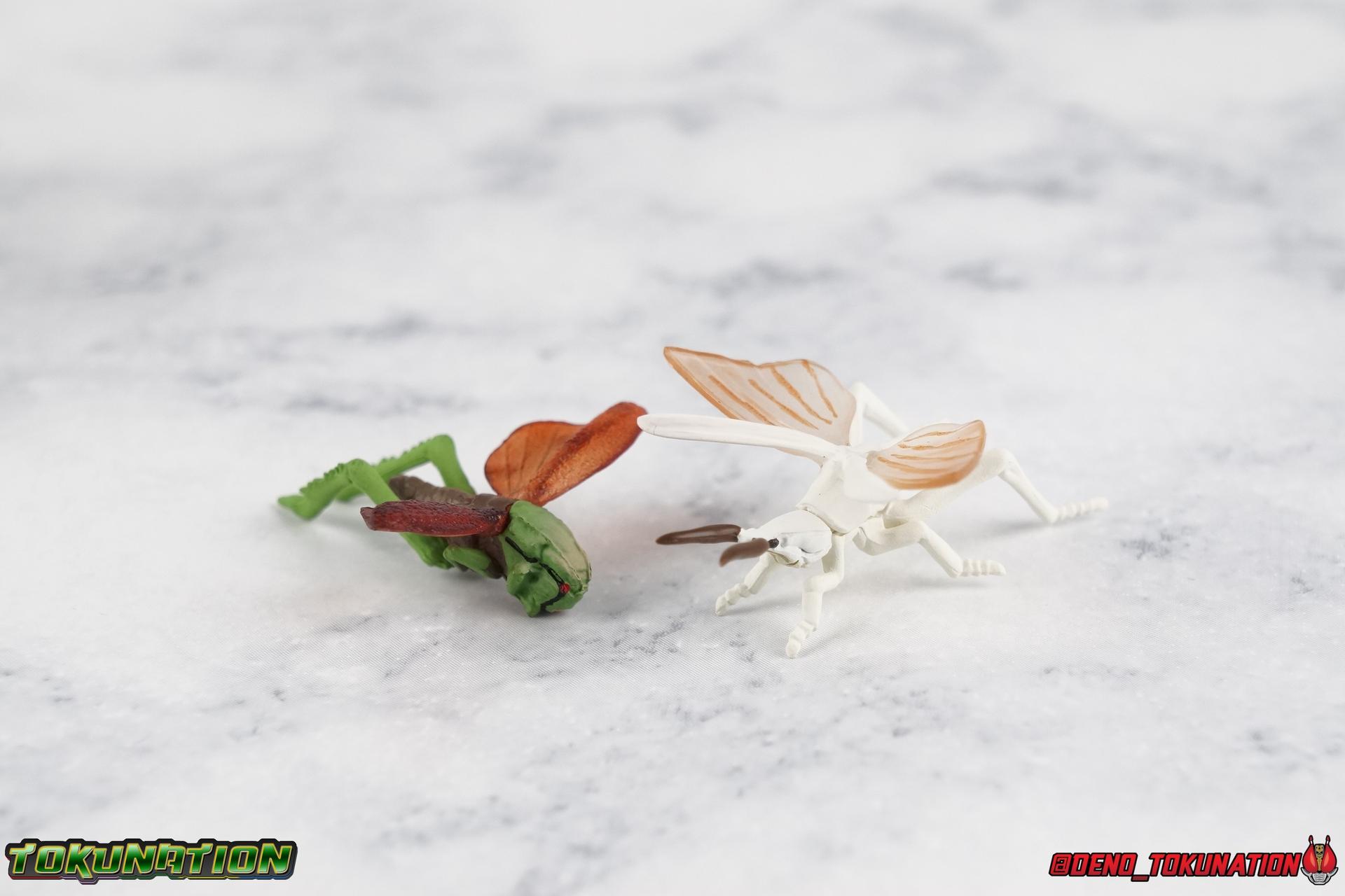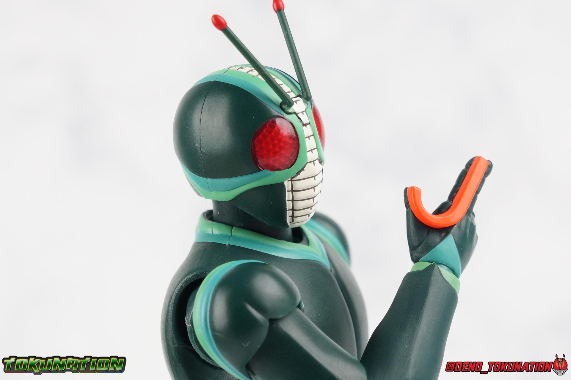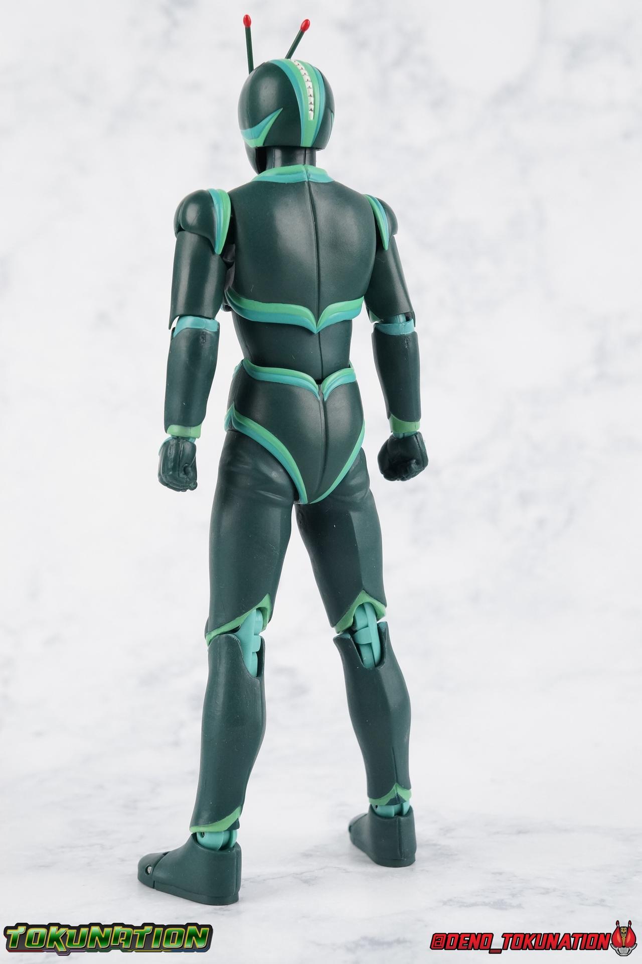 It's been a long time coming but I'm happy to announce my return to TokuNation galleries. It's time to take a look at the long awaited final Showa Rider, Kamen Rider J! J rounds out the trinity of movie exclusive riders from the post-RX era that is still considered Showa by Toei. Each film (Shin, ZO, & J) featured a new rider and a bit of a departure from traditional rider concepts, Shin to a far greater extent than the others. But they're all unique creatures really. This trilogy of films & characters have always had a bit of a cult status in fan communities. However despite S.H. Figuarts of Kamen Rider Shin & ZO having been released over 2 years ago now, J was only just released in January. Bandai has clearly been sitting on this release for some time, but I'm incredibly happy to finally have him in hand. For a little background, the Kamen Rider J film centered around a new evil group known as Fog Mother wanting to take control of the Earth to feast on it's inhabitants. Frankly it's fairly typical in Kamen Rider terms. But the designs and art direction of the film more than make up for any shortcoming of the plot. J himself, is actually the first real victim of this group, but would soon see himself reborn as a warrior of justice in no small part thanks to his soon to be talking sidekick, the grasshopper Berry. But more than any interesting facet of the story, J's actor is also what makes many fans enjoy this film. Yuta Mochizuki, whom many most fondly recall as Tyranno Ranger from Kyoryu Sentai Zyuranger starred in this film! Fun fact he was also the first live-action Tuxedo Kamen/Mask in the original Sailor Moon live action productions (hence the group shot down below). Packaging Nothing much to say here. J comes in a fairly standard slim style box. Only a handful of stock photos, and some dull colors don't make this box look terribly interesting. Packaging with Showa Riders has never been terribly flashy anyways. Main Figure ZO & J while separate films, had much of the same production staff, such as Keita Amemiya. That's specifically why their suit designs are so similar and why you may have mistaken one for the other at any point. It's common. There was an intention on the part of the production staff for these two to be like the modern equivalent of the Double Riders 1 & 2. Having both in figure form side by side allows you to get a better perspective on what makes them similar and so very different. Kamen Rider J, is clearly a new mold. Many people assumed J would have been an easy repaint or remold of ZO, but that just doesn't work. Looking at the finer details of the sculpt J had to be a new mold. Sadly I don't think it's nearly as nice as ZO. J has one glaring flaw, and that's his ankle design. For some reason the ankle joints are set in very very close to the shin guards. So there's no real forward movement and it makes balancing him pretty difficult. He tends to fall backwards if you don't straighten his legs out somewhat. Adding to this is the limited nature of the hips. J has some thick things that impact the waist piece quite a bit. He can still maintain some decently dynamic poses, but the lower body is far from perfect. As for the upper body J is actually really great. There's no noticeable issue that I can see. Physically the design is great, the shoulders are free of obstruction, the elbows have great range, and the torso can extend a decent amount as well. Honestly J has some superb articulation in his upper body. Thankfully the head is also uninhibited in this way. J has a smooth but striking design that lends itself well to the articulation he does have. However I do take issue with some of the paint apps. In the same way that ZO had some issues straight out of the box with his gold trim, J has issues with the green trim. Specifically I've noticed it on his shoulders. But these issues aside, Kamen Rider J is another wonderful addition to the Showa era of riders. It would seem that outside of going back down the renewal/Seihou path, or doing some odd one off re-colors, or the most unlikely scenario of doing more Kaijin, that the Showa era of riders is now complete. However there is still a shortage of Rider Machines at least. We've recently seen that ZX's Helldiver is going to be happening finally, perhaps J's J-Crosser & ZO's Z-Bringer will happen someday soon as well? Accessories As with many Tamashii Web Exclusives Kamen Rider J has a lite load: 2 - sets of hands. One open pair, and oddly one "holding things" pair. These undoubtedly have to be for an upcoming release of the J-Crosser. There's just no other reason for J to include handlebar type hands like this. 1 - "J" Hand. This iconic piece recreates a very brief moment in the Kamen Rider J movie. Prior to the final fight with Garai, J performs his final henshin doing the iconic hand motions we've come to love over the years of this franchise. The final part of which sees J bringing his right hand across his chest in the shape of glowing J. I'd have preferred it if this accessory had a translucent red J, but the painted red one works just fine. It still looks really cool. 1 - Berry. The strange talking grasshopper companion of J, given to him by the Groundling people. This representation of Berry isn't altogether accurate, but it's somewhat forgivable at this scale. 2 - sets of Berry wings. One folded down set, one open set. Neither of them will stay on his back for more than a second. The parts are made of a soft rubbery plastic and can be difficult to plug onto his back. And that's it. Though I don't think anything has necessarily been missed, in several of the films battles J actually sustains some physical damage to his suit. It's done in such a way that it looks like flesh wounds, rather than mechanical parts of a suit being damaged. I have to imagine that Bandai could easily re-release this figure in that damaged look with a slightly different color scheme, in the same fashion of as Broken Blade & Garren 