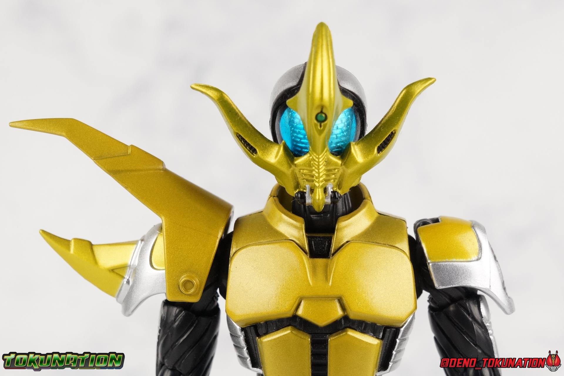 With Shinkochou Seihou releases in full swing, particularly for Kamen Rider Kabuto, I thought it was time we went back to take an extensive look at the trio of new riders that were introduced in Kabuto's film. Exclusive to God Speed Love, each of the 3 riders, Hercus Ketaros & Caucasus, has their own allegiance to one of the various future factions of ZECT. And even though ultimately each of them were sacrificial lambs for Tendou's path to the past, they all had particularly strong designs. We'll focus on each briefly below, be forewarned that the mold each of these figures uses as a base is the original Kabuto/Dark Kabuto mold, NOT the Seihou release. These are the original releases, they are quite dated, they do still have many faults of that original mold. Faults that most of the releases in the original Kabuto line suffered from. I won't focus on their functionality for too long as that mold doesn't really have much to offer in discussion anymore. Post #1 will focus on Hercus & Ketaros while Post #3 will primarily focus on Caucasus. If you'd like to hear my thoughts on this older body mold please feel fee to thumb through my original release Gattack & Dark Kabuto galleries for an idea. Packaging Each of these figures hails from an era of S.H. figuarts when gray scale plain boxes were the norm. So it's no shock that the packaging is incredibly boring for each of these figures. Main Figures Hercus: We'll start here with the silver Hercules Beetle themed Kamen Rider Hercus. A pretty basic repaint of the original Kabuto mold, Hercus does feature a new head and right shoulder. The new shoulder reminds me more of a Rhinoceros beetle than his actual head does, but I do like the double pronged nature of the heads' design. One large horn striking forward from the forehead, and a small upward pointing blade from the chin. While not the most exciting of the 3 new riders, it has a uniqueness all it's own. Aside from these changes Hercus also has a remolded right wrist which now has a brace and port for the included Hercus Kabutech Zecter to attach. Accessories: 2 sets of additional hands, 1 Hercus Zecter, and 1 ZECT Kunai Gun (gun mode). That's pretty lite, but also quite standard for the time of his release. I can't recall any of the original Kabuto riders actually including both the Kunai Gun and it's actual kunai mode. Technically he can wield it as the axe form too, but it's not quite the right shape or size for that. Ketaros: Next up we have the rust brown Centaurus Beetle themed Kamen Rider Ketaros. Another basic repaint of the original Kabuto mold, Ketaros does feature a more elaborately molded new head than Hercus. The new shoulder is identical to the one on Hercus, just with different paint apps. The new head however is a vast departure, I get the impression of dragonfly & scorpion combined in his visor design. It really is something else. The way that unique part splits the compound eyes is pretty striking, it's much less safe than most of the Kabuto rider form helmets were. Not exactly my favorite of the 3 movie riders, Ketaros is still a nice departure from Hercus' blandness. Aside from these changes Ketaros also the remolded right wrist which now has a brace and port for the included Ketaros Kabutech Zecter to attach. Accessories: 2 sets of additional hands, 1 Ketaros Zecter (a repaint of the Hercus Zecter), and 1 ZECT Kunai Gun (Kunai mode). That's pretty lite, but still standard for the time of his release. My guess is that he includes the Kunai mode of the kunai gun simply to differentiate Ketaros a bit more from Hercus. And that actually does help some. Caucasus: Now we arrive at easily my favorite of the 3 movie riders, the golden Caucasus Beetle themed Kamen Rider Caucasus! While still not a huge departure from the original Kabuto mold, or in fact the other 2 movie riders, Caucasus somehow winds up as my favorite of the 3. He features the same remolded shoulder as the other 2, with different paint apps again. And he also features another fantastic elaborate head. Ketaros was really interesting looking, but Caucasus almost appears to have a giant mustache. Which is somehow way more awesome? I also really like how the blue compound eyes offset the gold armor. Each of these molds carries about the same weight personality wise, but this one some how squeaks out as my favorite. Like the others his right wrist has been remolded with a new brace to accommodate the included Caucasus Kabutech Zecter. Accessories: 2 sets of additional hands, 1 Caucasus Zecter, 1 Hyper Zecter, and 1 blue rose. Even though Caucauss doesn't even include a simple repack of a weapon like the others do, he really comes with all he needs. The signature blue rose he's seen with in the film is a fantastic touch, and the Hyper Zecter is a must. Final Thoughts I have to say that even though these are all based on a pretty inferior mold, these figures still hold up decently. Obviously they're a bit undersized to scale correctly with today's line of Shinkocchou Seihou riders from Kabuto, but they can get the job done on a budget until the real deal comes out. If you see the trio cheaply I'd recommend picking them up to fill out a display at least. Kamen Riders Hercus, Ketaros, & Caucasus are worth that at least. But I'm also a huge Kabuto fan, the movie especially really worked for me. Often times people site Den-O as the first time that a Kamen Rider theatrical movie directly impacted the plot of the TV series, but really, it's Kabuto. If future Tendou hadn't managed to defeat Caucasus & steal the Hyper Zecter, as well as travel to the past, the original TV series would have never happened. Without this alternate future that's actually a prequel, the show wouldn't exist. And I love that. That's probably where a huge chunk of my attachment for these 3 designs comes from as well. But enough of me pontificating. Check out the full gallery below and let that be the deciding factor for you.
