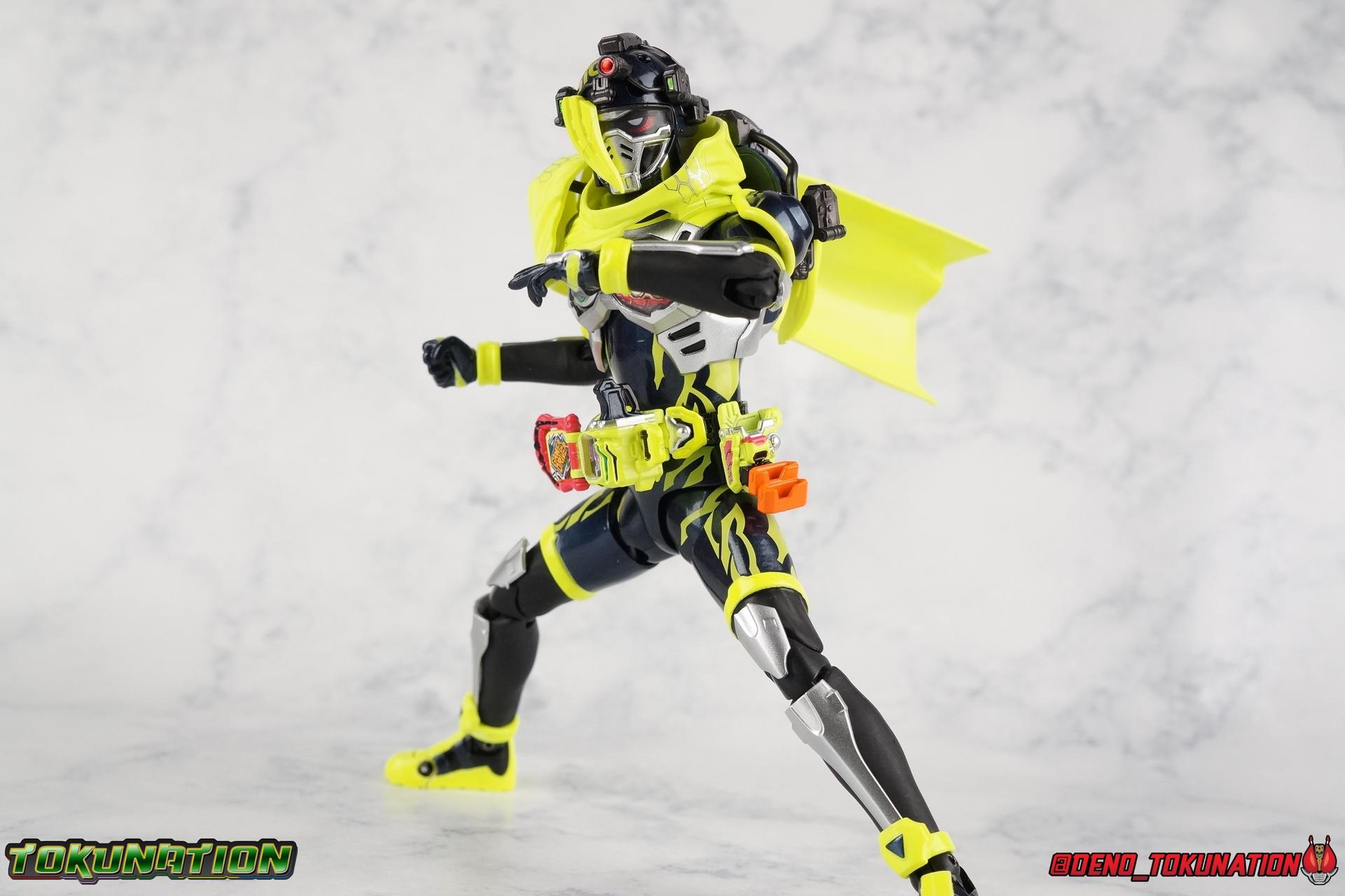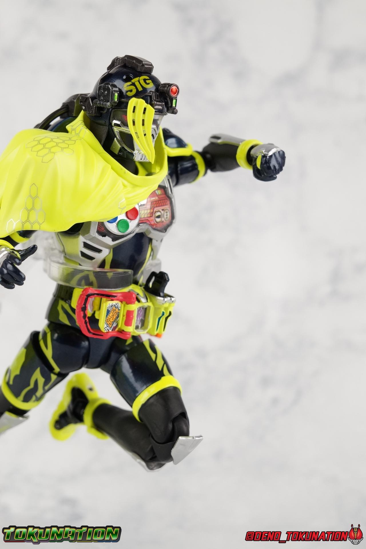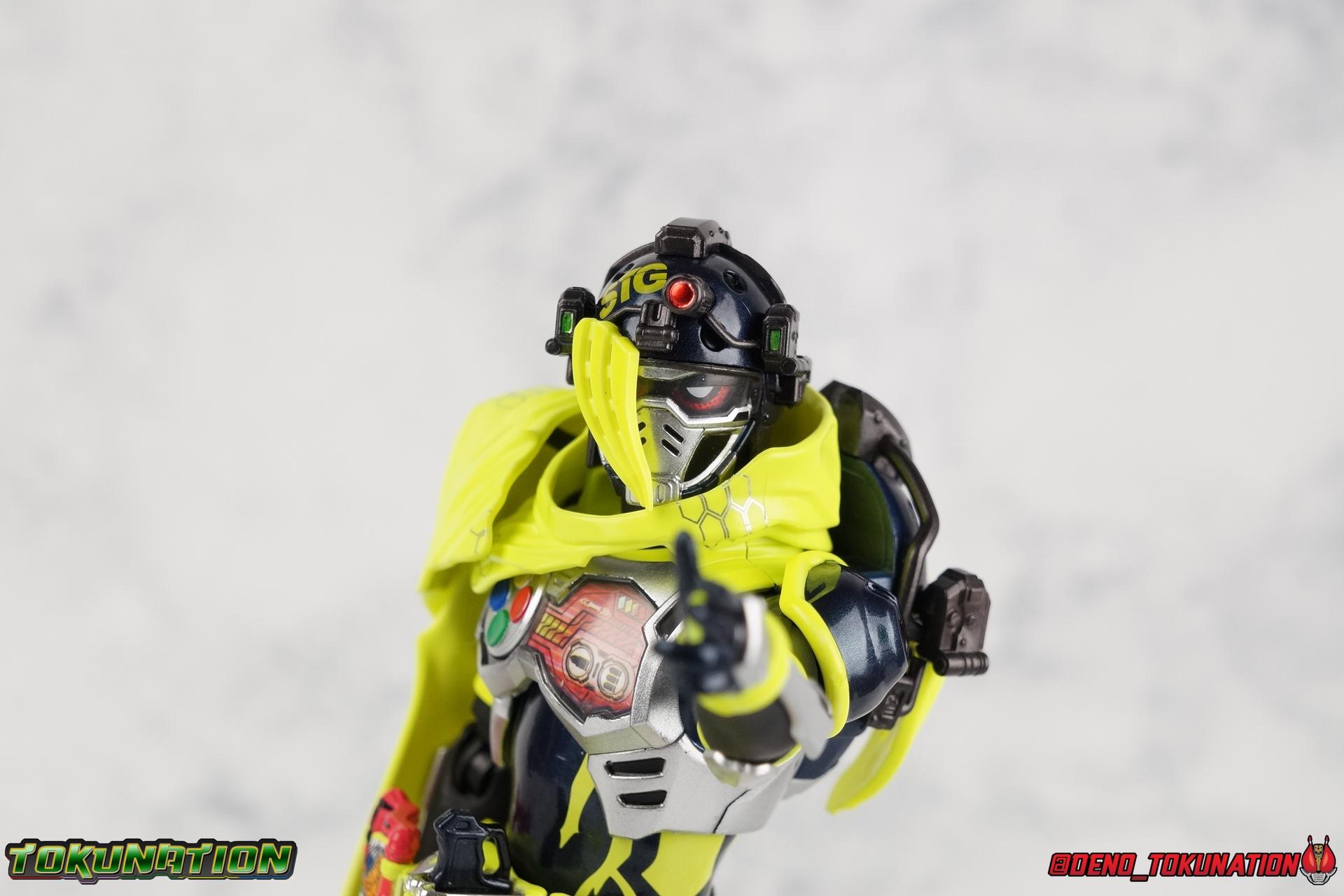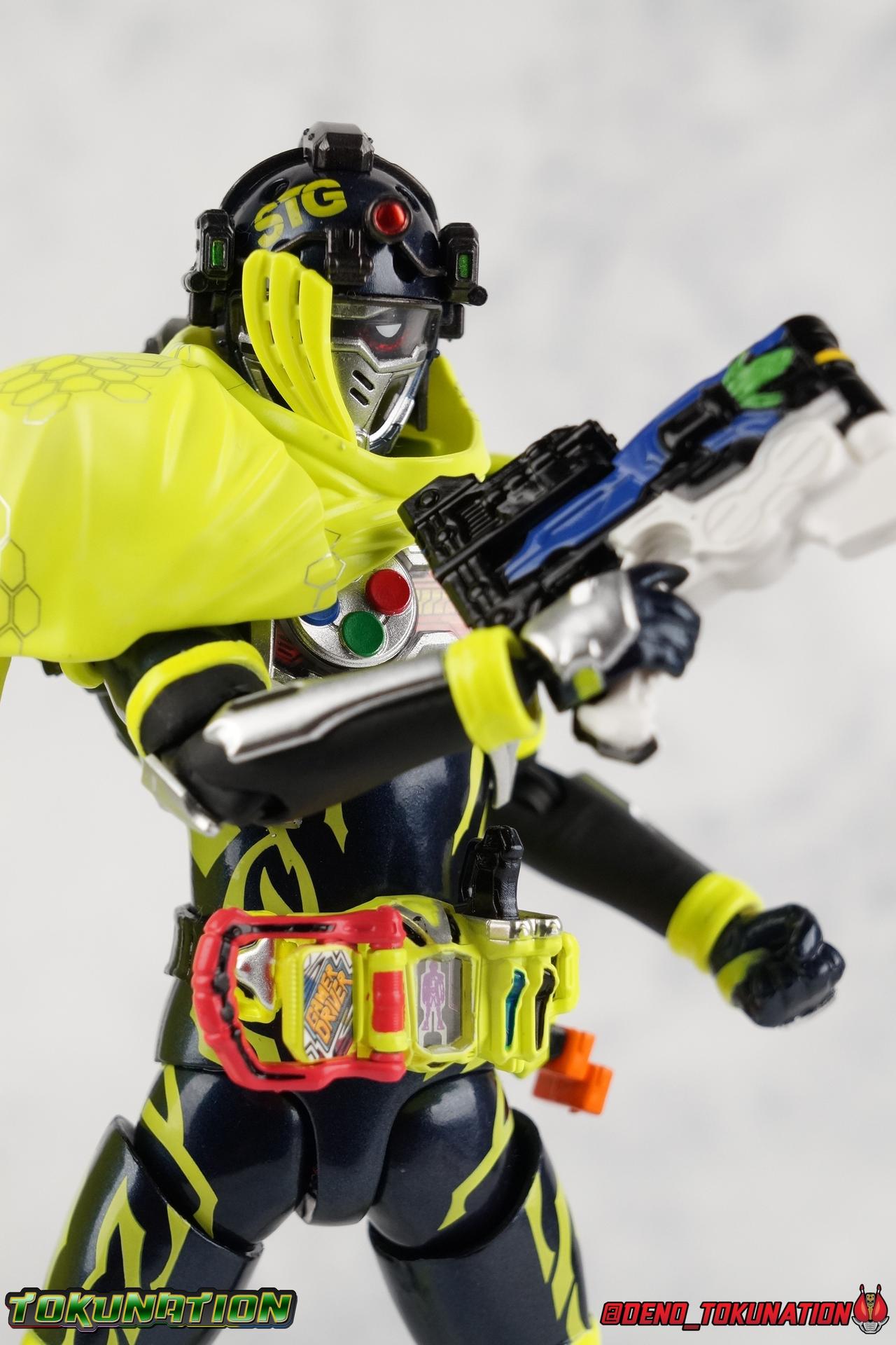 We're back for the final part of our Mighty Action X Beginning Set gallery series! S.H. Figuarts Kamen Riders Ex-Aid Action Gamer Level 2, & Brave Quest Gamer Level 2. And this time we get to end things with everyone's favorite unlicensed doctor, S.H Figuarts Kamen Rider Snipe Shooting Gamer Level 2! Packaging The Mighty Action X Beginning set is a rather large 3-pack. Something that's rarely tried with figuarts release. The last 3-pack in recent memory was the Hakaider Squad set, that was a web exclusive release, and it didn't sell well. So for Bandai to take a chance on 3 unique riders from Ex-Aid, and release them at retail, that was pretty surprising. The box is a rather colorful 3-tone type that really pops, definitely befitting of the series it's from. Honestly the figures in box would make for a nice display piece if you'd like to pick up the individual figures to open too. It just looks good. The 3 riders come in one large tray with their hands, while the Mighty Action X stage as well as their unique weapons are in a separate tray below. Main Figure ** Special note, I lost the Bang Bang Shooting Gasshat about halfway through this gallery and simply could not find it for several hours. So some pictures are of Snipe with it missing. Sorry! Each Ex-Aid rider has a pretty radically different design, as with any series each character is unique. But they also tend to share some design influence, and in many cases parts. The Ex-Aid line, at least so far as Level 2 forms are concerned is a prime example of this. Each suit has it's own unique detailing and colors, but at a basic level they feature the same mold. Sporty type shoes, the bike shorts look, the driver, the chest plate. You see what I mean. So although Ex-Aid, Brave, & Snipe look very different, they also have a ton of similarities. This review will echo nearly everything I have said about Ex-Aid & Brave as the mold is mostly identical. Please feel free to skip ahead to photos if you like. As with the last two riders, Snipe Level 2 features a ton of complex detail that we don't normally see each year. Paint apps and small molded details galore. Snipe may look slightly more dull by comparison, but that's just his more drab color scheme. Still, from the Ground up the new Ex-Aid type body is pretty solidly built. Though the ankles still lack the freedom of movement they need. You'll still find that wide stances are just really really difficult to achieve, which means he's always gonna be a bit off balance. This could be more of a detriment with a character like Snipe, the FPS based Bang Bang Shooting should mean this figure can pull off stable balanced poses, but it can be difficult. All that being said though, the paint apps for the lower part of the body are still top notch, even if again the whole package is a bit more drab. The bright green striping on Snipe's thighs is well done, just not as exciting. One of the more elaborate pieces on the figure is the Gamer Driver itself. This entire device is extraordinarily detailed for something at this scale. The Driver handle can flip shut, thus hiding the rider read out on the front screen as well. The right of the driver has 2 slots for Gasshats. One is already attached in the form of the Bang Bang Shooting Gasshat. It's kind of a dummy item though as it's really just the handle portion that pegs in. To the right of the driver, is a Gasshat holster. There are 2 slots for extra Gasshats as well as 1 slot for a Critical Finish to be inserted. This whole assembly just looks fantastic. I'm taken back to Gaim Orange Arms and the wonderful design of his Sengoku Driver. This level of functionality is always impressive. I won't sell the rest of the upper body short either. Snipe may not be as striking as his predecessors but his chest detailing is just as magnificent. The paint apps on the outer layer are crisp and clear, but I'm so impressed by the Rider Gauge label within his chest. Again, unlike Bandai's previous failures with labels (Kiwami Arms) this is flawless. On the flip side of the torso is the deactivated Level 1 head. As with Ex-Aid it's a bit stylized and shrunk down, but wow it looks good. It's such a strange detail for me to love but I do. Not to be forgotten are the arms. Sadly this is where I take great issue with the figure. Snipe's shoulder sash is absolute junk. Plain and simple. It does nothing but hinder articulation and be frustrating. You can angle the pieces of it which are ball-jointed, but not enough for anything meaningful. Most of the time the parts simply pop off before getting into a position that's useful. It's sculpted well and the jointed nature of it doesn't detract from it's look, but it's very poorly executed. Finally that brings us to the head. While Ex-Aid's head still seems to get a far bit criticism, & Snipes collar color is incorrect, I don't see how you could complain with Brave's likeness frankly. That design is sharp, solid, and gorgeous. I like the extra mile Bandai went to making Taiga's "bangs" a removable piece as well. It's on a small pege so it can be rotated as needed when moving the head, this way when it impacts the collar you move it without fear of breakage. Smart move! Accessories Snipe's accesories are a bit more similar to Ex-Aid, he comes with a pretty basic assortment but it's also basically everything you need for him: 3 - Sets of additional hands. The same basic set up as Ex-Aid, Snipe's holding things hands are just specifically designed for his Magnum. 1 - Gashacon Magnum (Handgun Mode). Like Ex-Aids Gashacon Breaker, Bandai opted for a swap out part rather than a functioning weapon. The Magnum in Handgun Mode looks good, but is very difficult to get Snipe to hold properly. The grip is actually too big for the set of hands it's intended for. Otherwise I think it looks pretty nice, even if the paint is a bit too thick. 1 - Gashacon Magnum Rilfe Mode Barrel. A swap out part, you just remove one side of the Magnum and add this on