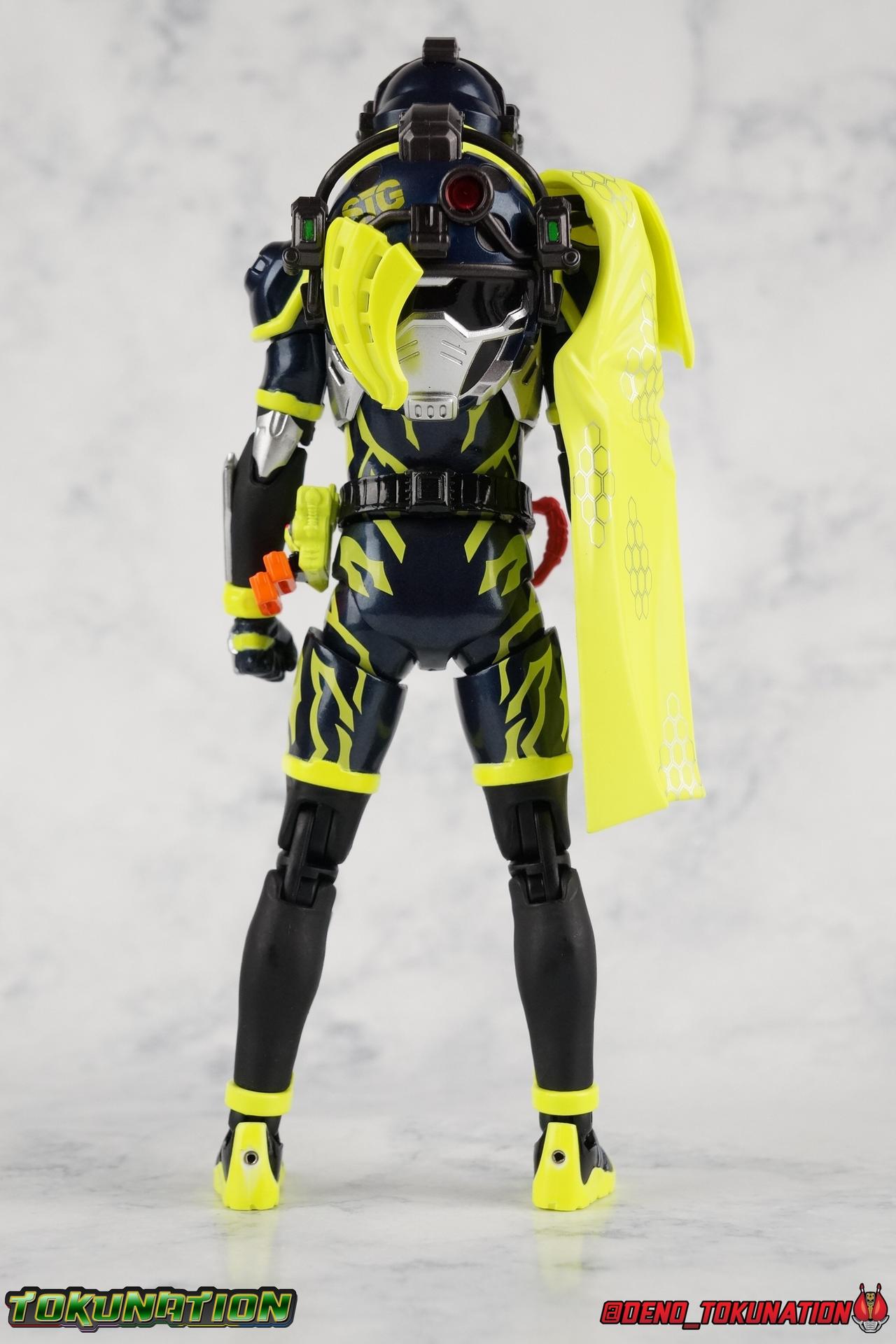 What I appreciate about the stage is the ports for Tamashii Stage arms. It makes the release feel like a little more than a straight re-use of the stage that came with Gaim (or was it Baron?) I'm glad I wasn't the only one frustrated with Snipe's cape. I wish they'd abandoned the shoulderpad under the cape and just attached it directly the shoulder. It just doesn't sit right, otherwise. |