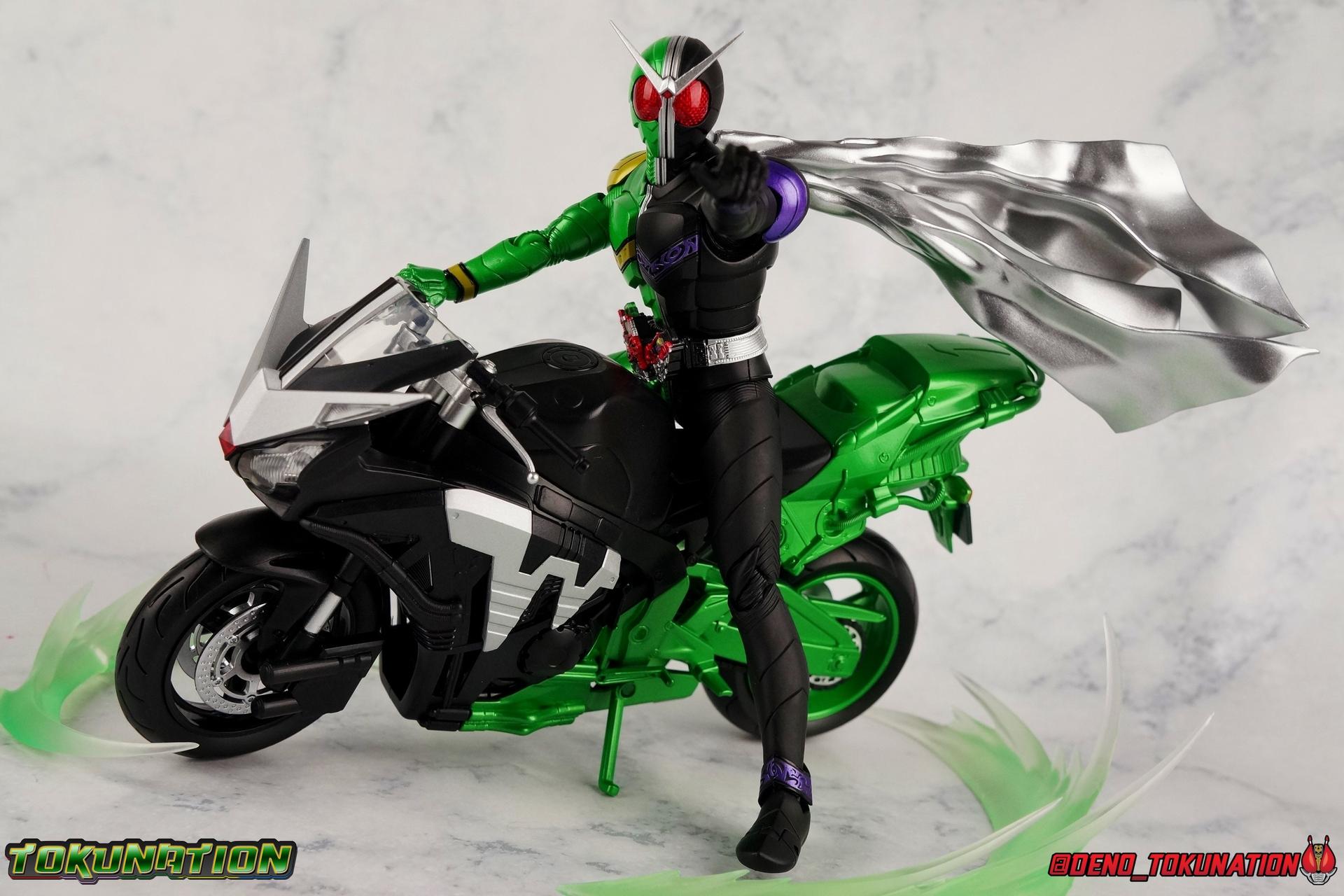 It's been a while since we visited the city of Fuuto. Last time around we took a look at the impressive Shinkocchou Seihou Kamen Rider W A long overdue renewal of the ancient figuarts W. Now it's his Rider Machines' turn. By most modern standards the original Hardboilder is still a great release. But to pair up with the Seihou W, Bandai decided to go back to the drawing board with a brand new mold for S.H. Figuarts Hardboilder. Packaging Hardboilder comes in about one of the most typical boxes you'll see. Rider Machines aren't usually in anything extravagant, Web Exclusives even more so because of the closed box style. There are some great gray scale photos on the black edges of the box that I really like, but everything else is pretty standard. So don't look for much different here. Main Figure Once again this will probably be a pretty brief review of a Rider Machine. These vehicles generally don't offer a ton of functionality. These are just glorified accessories for Riders themselves very often. And unfortunately that's more true for this release than the original Hardboilder. Although the original Hardboilder had a transformation gimmick, this new release does not. And aside from this, the physical differences are minimal. Essentially this newly designed Hardboilder is just a bit different size wise to scale with Seihou W. There just are not a ton of differences. The differences you can point out, are the more vibrant greens on the renewal, as well as more well defined details, such as the really intricate speedometer on the dash. As I mentioned the transformation gimmick has been totally removed this go around. The original Hardboilder could remove it's front axel, and split diagonally in half to equip the Dashboost & Turbuler units. Although the 3rd, the Hardsplasher, was never produced. But this functionality isn't present in the new bike. Which is smart because despite the fandom love for W the show, the other units never sold very well originally. It's sad to lose that, but I don't miss it quite that much either. Honestly that's about all you can say about a release like this. Photos of it speak for themselves. With W on board, the Hardboilder looks better than ever. Accessories Just the standard single accessory that most Rider Machines come with these days, the Wheel Base. That isn't unexpected but it's always disappointing to see a release with little to no accessories. Even just another scarf for W would have been nice to see. But oh well. Final Thoughts As is often the case with a Rider Machine, I'm not incredibly impressed with this figure on it's own. But you can't really take it in properly without the Rider that's meant to accompany it. S.H. Figuarts Hardboilder is a great if somewhat unnecessary update to the original release which came out so long ago. If you feel like you need to upgrade to this release then go for it, but I don't know that you'll be unhappy keeping the original either.