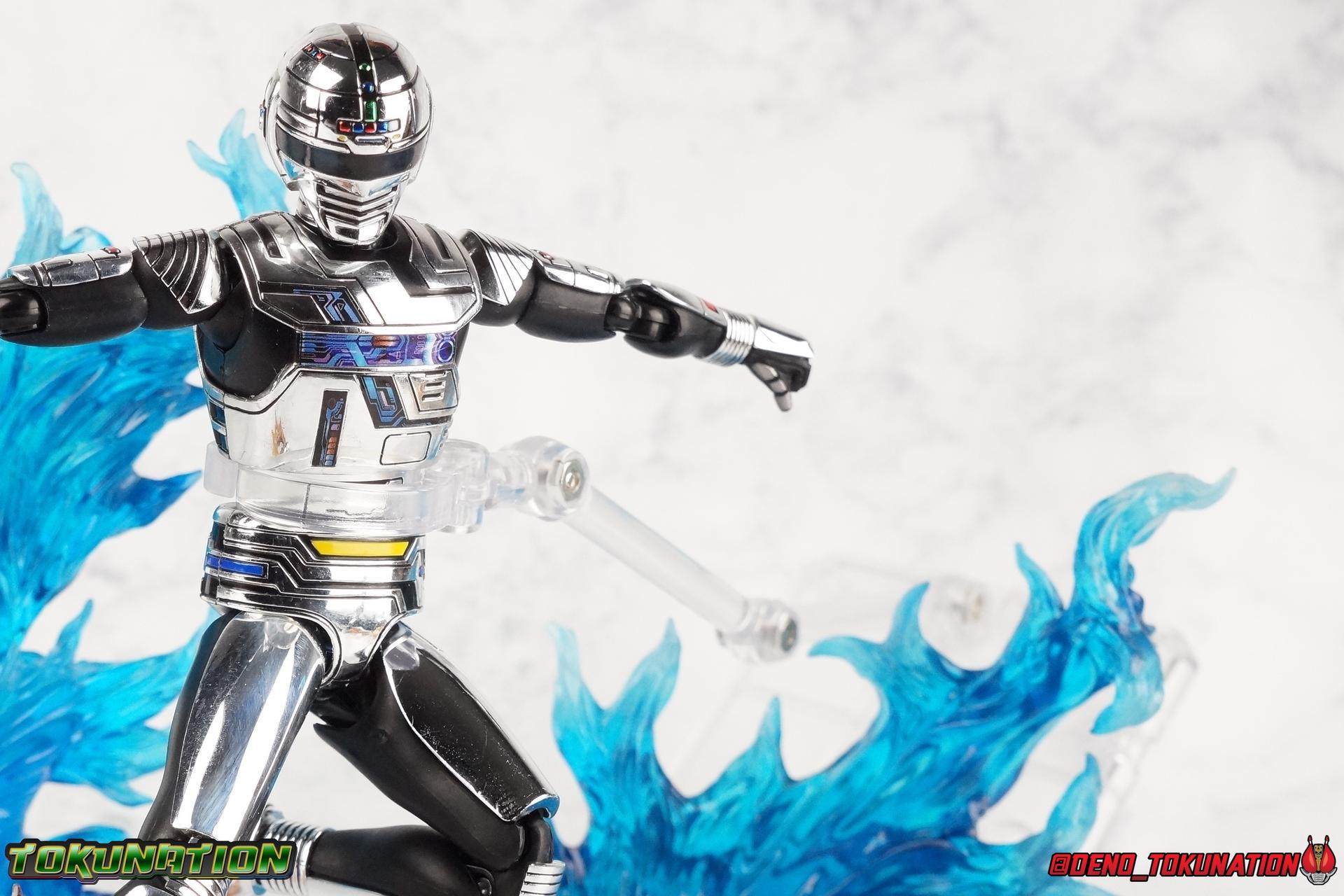 Over 4 years ago Tamashii Nations graced us with a pair of inaugural releases that launched the Metal Heroes sub-line for S.H. Figuarts. Back then we were treated to Gavan & his successor Gavan Type G. Now, during the new golden age of Metal Heroes it seems, Bandai is treating us to a pair of Renewals, one for each of these heroes! So today we're taking a look at the first of those released with S.H. Figuarts Space Sheriff Gavan Type G Space Squad Version! ** Physically this toy is very very similar to the original releases of Space Sheriff Gavan & Gavan Type G, though it's ostensibly meant to be a renewal of that mold. There are physical differences but the accessories and better paint apps are the most appreciable things you'll notice with this release. Just fair warning. Also, this gallery consists of 100+ images spread across the first 3 posts. So be sure to check out the whole thing! Packaging I actually really dig the new box that Bandai's come up with for Gavan Type G this time around. The first two Gavan releases both came in boxes that were themed around the original TV series aesthetic and each was partially color swapped to differentiate them from each other. This time it gets a bit more of a space theme going on thanks to the movie this release promotes. I just generally like it better to be honest. Main Figure So like I said up above, this mold is VERY similar to the original mold used for Gavan & Type G. In fact this one is simply a bit more thick and wide than that one. You'll notice wider hips, a more thick abdomen, a chest plate that sticks out a bit further, and just generally more clearance for these joints than the original had. But that's about it, ultimately these changes don't amount to a ton of appreciable improvements. So be forewarned this review will have many similarities to my old original Gavan gallery. Note that in comparison shots, the Space Squad version will be on the left with the original Type G on the right. Now with the statements I made above out of the way, I want to start by saying that this mold really is a great improvement over the original. It's not immediately something you notice, but more something that comes to mind as you handle it further. Starting at the bottom, the feet don't get a lot more clearance, so there isn't much to talk about there. The knees have the same old bends, but the hips are vastly improved. Not only are they stronger, no more sagging joints, but they have much more clearance for rotating than the old one. And that brings us up to the waist, where with the old one it was very gaunt and narrow, looking very awkward from the sides. This version beefs things up nicely enough to make it look like a real person is conceivably in there. And there isn't a ton of articulation lost either. By far the greatest improvement of the new Type G is the chest and head details. They are far more bright and elaborate, matching his appearance in Space Squad and in fact his first appearance in Gavan The Movie. I had never realized until now just how inaccurate the chest detailing on the first Type G was. Also you can see Gavan's "eyes" beneath the standard black visor quite a bit better. They should always be at least partially visible like this. Even when you aren't using the included laser scope head. So this release gets top marks for this as well. The head itself is a hair larger and more proportional to the body than the first release as well. Just adding to the overall improved look of this release over the original. I'll also mention that the arms aren't terribly different from the first one, though the shoulders seem to have much better clearance than before. But the hands, my god the best improvement is right there. You can actually change out the hands without fear of shearing off a razor thin wrist peg in the process, which happened with the first original Type G I owned and was very common throughout that production run. Ultimately this figure may not appear physically to be all that different. But in reality the small changes and differences made to it from the first release really are appreciable. I have to say I'm still fairly unsatisfied with the chrome applications this go around. While not inaccurate, the imperfections, scratches, and smudging to the chrome make it look like a used product. But all of these imperfections were present straight out of the box well. I wish Bandai would go with a more flat gray metallic paint app, like those on Juspion. But the reflective chrome is more accurate I suppose. A better application process needs to be used is all. Accessories This section is where the biggest differences between the the original release and the Space Squad one exist: 1 - Laser Scope head. This alternate head replicates Type G's visor lighting up as it does periodically. Originally an ability meant to allow classic Gavan to detect invisible monsters, it's since become synonymous with moments of either character powering up, or having showy flashy action. It's my preferred way to display this figure actually. I like how the eyes really pop. 3 - sets of additional hands. One set for weapon holding, one set of open palms, then a split pair that includes a flat karate chop style hand, and one with a set of two fingers pointing forward to recreate the Lazer Z Beam attack, or to hold the end of the Laser Blade. 1 - Laser Blade (Origin Version). A blade forged on Juspion's homeworld, one who can wield it properly is assured victory. This is the one weapon which sets apart this version from the original Type G release. That release came packed with the same classic Laser Blade that classic Gavan did. Both of the Gavan figuarts were packed with it. This new Origin version is a bit more ornate and elaborate in design. It's also the version of the Laser Blade that Geki/Type G is seen using in the Space Squad film after Mad Gallant destroys the original. So while the actual figuart itself may be similar physically to the 1st 