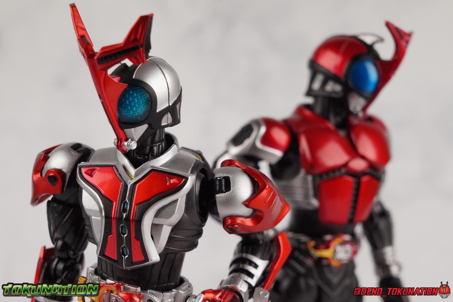 Well, it's official. Tamashii Nations has confirmed release details for Shinkocchou Seihou Hyper Kabuto! So we've decided to head back down memory lane again and do a gallery of the original S.H. Figuarts Kamen Rider Hyper Kabuto! Remember, this figure came out nearly 7 years ago. So of course it won't match up to the standards of today's releases. But let's examine where the new Seihou release is likely to improve. Packaging Like many older 1.0 releases, the original Hyper Kabuto came in a pretty plain box. Just basic two tone red with black text & one gray scale photo of the actual suit rather than the toy. Indeed this was the boring era of figuarts packaging. Main Figure Now, of allllll the figuarts based on the original Kabuto mold, Hyper is probably the best one. It suffers the least from all of that body types' original flaws. No noticeably bowed legs, no loose hip joints, and a head that's at least proportionate to the body. However it does have it's own unique flaw. Fading paint. Specifically the red paint apps. Over time they seem to fade excessively, in much the same way that Knight Survive and the original Kuuga Rising Mighty have. It's mostly present on the arms and especially on the hands, and there's no real way to stop it either. That being said here's how the figure actually functions. As I said before this mold doesn't really suffer from the same kind of persistent QC problems as the rest of the original line. It does however have some loose ankles and very tight hips. And the paint fade is of course an issue. But as you can see below, this is actually still a pretty serviceable figure. It's no Seihou, but it's been a good figure to fill out your Kabuto display for the last 7 years. While the combination of loose ankles and tight hips can make some posing difficult, ultimately this mold still has plenty of personality. That mostly thanks to the really great range of motion in the arms and head, and the bulk & detailing of the armor on the upper body. This figures' body armor is the real selling factor though. While many figures of the time and even now, don't feature built-in form switching gimmicks, Hyper Kabuto did. Thanks to some swappable ankle & wrist components and some removeable chest panels you can trasnform Kabuto from his standard Hyper Form to Clock Up mode. The wrist & ankle wings peg on when you remove the red panels that are already present. They can come off easily so just be cautious and try not to snap the tiny pegs that hold them in place. The chest panels are on similarly tiny pegs, you just remove them and peg them back on a little further out from the center. To achieve the full Clock Up look you also need to fold up the extra red shoulder pads. All in all it's a pretty satisfying transition from one mode to the next, and again it's just something you don't see in many figures. There's also a pair of light wings included to finish off the look of Clock Up, mostly for Kabuto's Hyper Kick attack. While not as new or nice as many modern releases, this is a figure that can still work for many collectors on a budget. Accessories Surprisingly Hype Kabuto is pretty loaded down for a 7 year old retail release: 2.5 - sets of hands. One set of open hands, one set for holding the Perfect Zecter in sword form, and single right hand for pointing up to the Path of Heaven. 1 - Perfect Zecter. It's actually a pretty impressively detailed weapon for the era. It can do the rudementary trasformation from sword to gun form quite well. And the individual Zecters present on it are all removable as they should be. It's pretty well detailed for what it is honestly. It's a little too heavy for the weak wrists and shallow hands to hold up but you can get him in the poses you need to get the job done. 2 - replacement wrist wings. These parts should be used in conjunction with the ankle wing parts and the wings of light for the figures' backpack. These help replicate Hyper Kabuto's Clock Up mode. 2 - replacement ankle wings. These parts should be used in conjunction with the wrist wing parts and the wings of light for the figures' backpack. These replicate Hyper Kabuto's Clock Up mode. 2 - "wings of light". You have to remove some small pads on the backpack that are a bit like a carapace, but the wings themselves have new enlarged pads attached to them too. The wings are actually pretty nice, given they're just clear pieces of plastic with some rainbow application applied. They really do look nice, but seeing pictures of the new Seihou wings, it kinds of puts these to shame. For the era this figure was released, that's a phenomenal selection. It really is. But the accessories that come with the S.S. release are all vastly improved versions of these so it should be clear who the winner will be in the match up. Final Thoughts Frankly this is still a solid figure after all these years. It's just a bit too small and lanky. Those are the biggest issues that plague this figure and the biggest reasons to upgrade to the upcoming Shinkocchou Seihou release. The accessories that come with the new one, particularly the new wings, far outshine what came with this original figure as well. But if you're on a budget and still a love of all things Kabuto, then the original Kabuto Hyper Form figuart should be right up your alley.