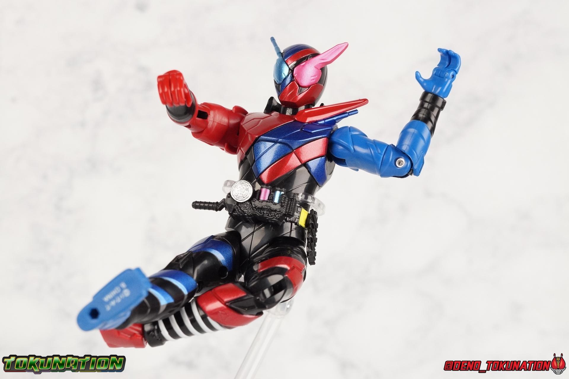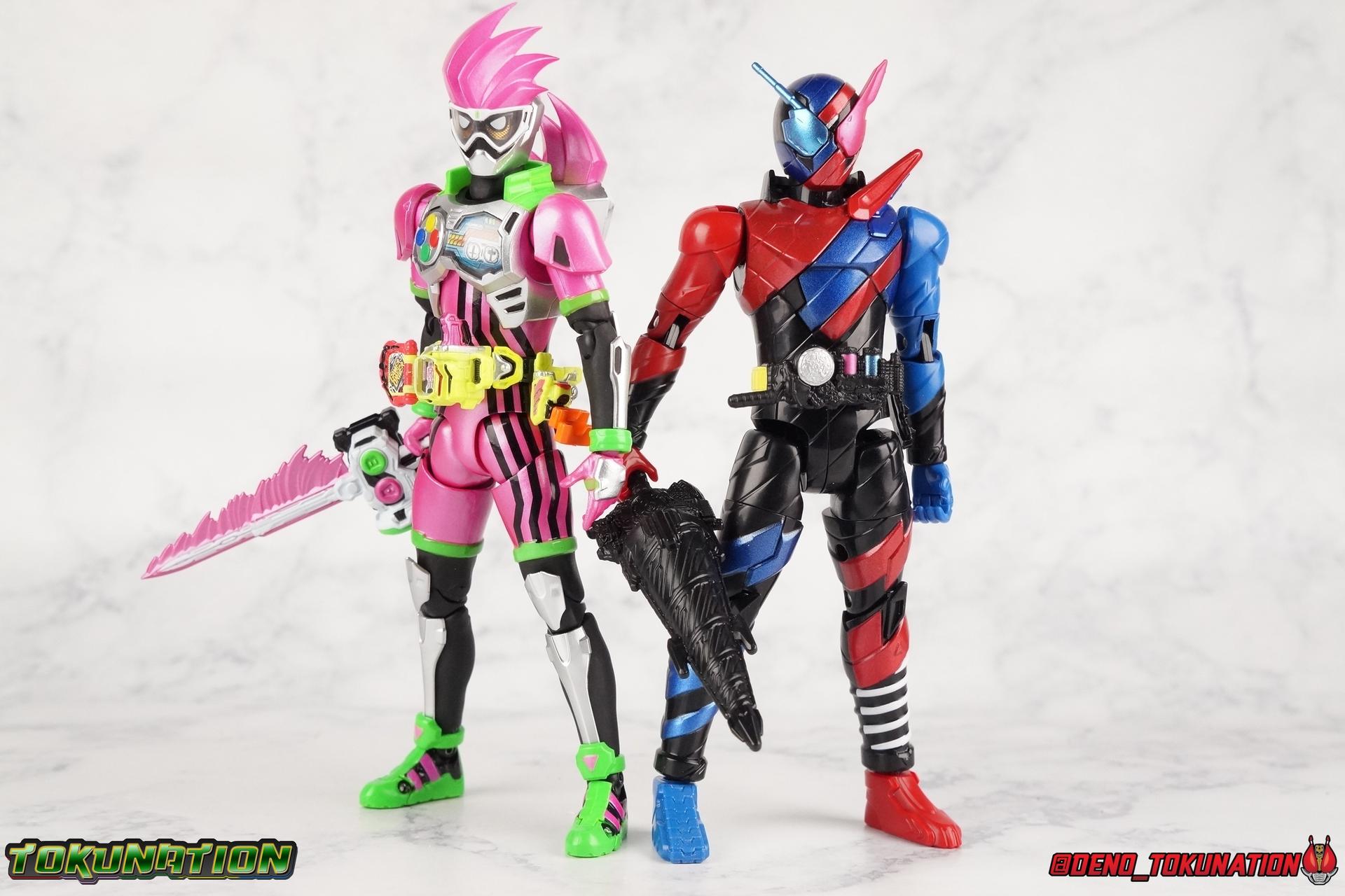 It's been a while since I've reviewed one of the so-called "gimmick" figures from a Kamen Rider line, the last one being LVUR01 Ex-Aid. But this go around I'm tackling the first release for the currently airing Kamen Rider Build! The new line this year is known as BCR or Build Changer Rider, and the first release in the line is BCR 01 Kamen Rider Build Rabbit/Tank Form! Pacakging Making s light departure from the last couple years. BCR Build comes in an odd box with a flap that extends up on the front side, and pretty far out. So there's a good likelihood of it getting bent during shipping. It's quite odd actually. There's no hook for it to hang on a peg board in a store or anything. It's just kind of a useless easily damaged flap. Otherwise this box doesn't do anything particularly extraordinary. Lot's off nice stock images are present and the colors are nice and flashy, but it doesn't grab me like last years Ex-Aid packaging did. Main Figure Alright, so to start, I generally do enjoy so-called gimmick figures each year for Rider. i didn't start to get into them, or even really handle any until I took the plunge with Arms Change Gaim. That was a rabbit hole for a little while honestly. And while a lot of figures inevitably get the upgrade into S.H. Figuarts form, sans gimmick, it doesn't happen for everything. So on occasion I find a reason to keep one here or there. Like Gaim Drive Arms, or Drive Type Fruits. Given my first impressions with BCR, I can't say I'll be doing the same this year. Let's get started with how Kamen Rider Build is packaged. These figures comes packaged as two separate halves. Halves probably isn't the write word given the manner in which the body is sliced up, but you get the picture. As with other similarities people have pointed out, this also happens to be how the old W Form Change Rider figures were packaged. I've provided some images of each half separately below so you can take in how weirdly the two halves comes together, I still think it's a pretty creative way to re-create the gimmick from the show, even if the execution is ultimately lacking. On their own each half a bit of unique detail though as with any mainline figure like this the details are a bit on the soft side. When you bring the Rabbit & Tank halves together with a nice satisfying click, you get the complete Kamen Rider Build Rabbit Tank Form. There's nothing special to it. Just snap the Rabbit half on top of the tank half. It's a nice snug fit with no gap issues. I have to say I think Build's base form makes a great use of blue & red blending to get a really unique look. As you can see below I have quite a few red & blue heroes and he fits right in. The Build Driver & individual compound eyes are the most detailed parts of the figure. But again as with most mainline toys the details are totally accurate. The Build Drive at least gets the general shape and color right for the Full Bottles. The lever doesn't rotate which is a bummer, especially given how difficult it is for Build's limited arm to grab it. If you leave it in his hand for too long it just bends the handle. And while that's a bummer get ready for the biggest disappointment of the line. No waist or neck joint. Due to the nature of how the combination works there isn't a moving joint for either of these parts. So recreating just about any action scene or standard pose is impossible. I've simulated the best I can in these photos. But Build loses a ton of personality thanks to these issues. He can only stare straightforward. The rest of the articulation is fairly standard with single jointed knees, double hinged hips, and single hinged elbows with double hinged shoulders. The knuckles on the hands are thankfully tighter this year as the standard joint was rather loose last year on many Ex-Aids. The ankles don't provide a ton of range so finding stable poses with them, and an upper half that can't accommodate either, can be tiresome. What you see in my pictures is the extent of what the figure can do, and sadly that's not much. I do find it a little difficult to get the two halves to come back apart though, the release mechanism doesn't really wanna work. I do tend to have to stick my thumbnail in between the two halves of the head to get him to pop apart. Accessories Another shortcoming of this figure is it's singular accessory: 1 - Drill Crusher Blade Mode. The Drill Crusher is pretty basic, not surprisingly. It's cast in solid black, partially hollow on the back half. This is common with mainline rider figures to have pretty basic accessories, the detailing is still decent on this piece. I'm surprised that the Gun Mode wasn't included as well, but oh well. 1 accessory with a release like this is pretty standard fare. Final Thoughts Generally I'm willing to give these types of figures the benefit of the doubt. They are what they are, they get the job done. That being said, I do think BCR Build is kind of underwhelming. The gimmick is executed well, the overall look of the figure is nice, but it's pretty sub-par in the grand scheme of main line figures. Arms Change will still always be kind of the king for this type of toy in my personal opinion. I'd say hold off on this line unless you're just in love with the gimmick, otherwise wait for a bit of a discount.