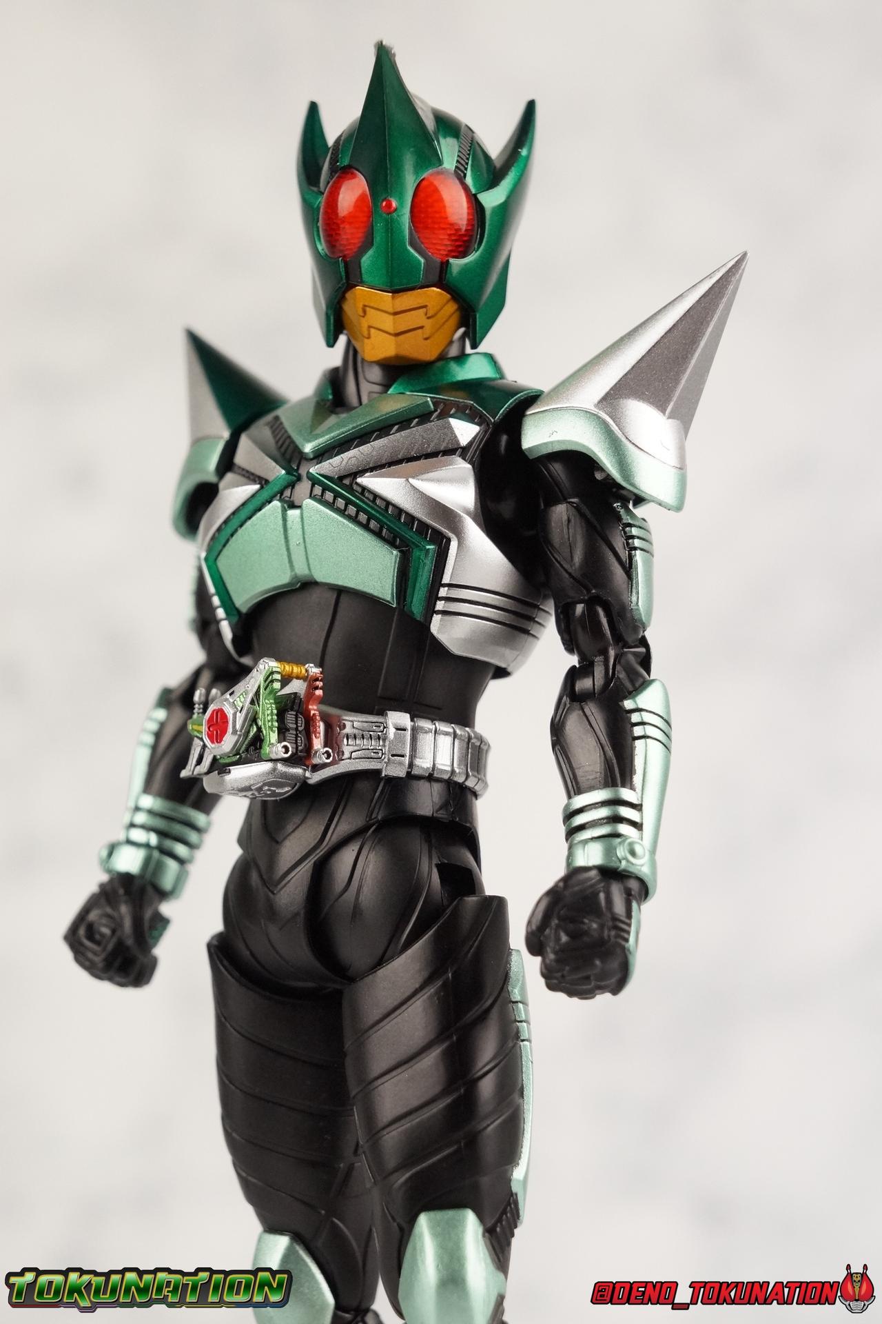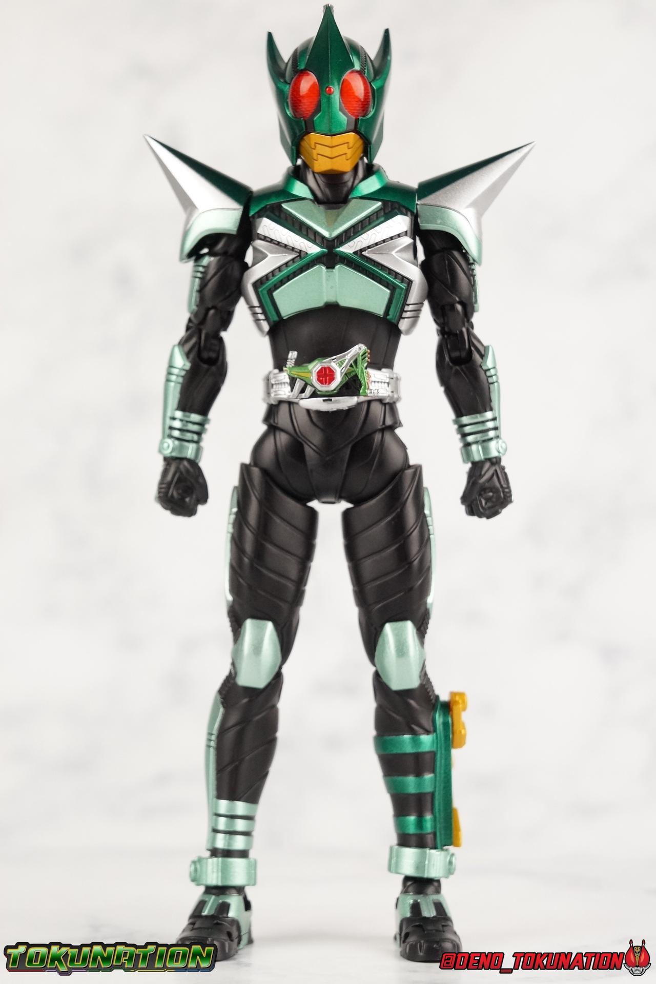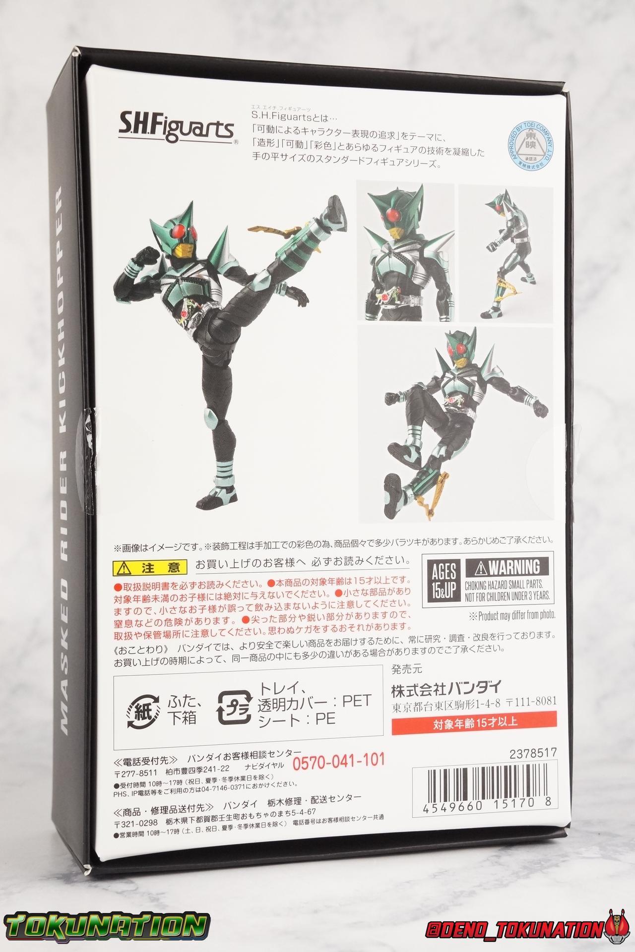 Sou Yaguruma was once the top dog of ZECT, commanding legions of ZECTroopers as Kamen Rider TheBee. The advocate of "perfect harmony" would soon be humbled however by Souji Tendou, and begin walking a darker path of self-loathing that eventually (and inexplicably) lead him to his new identity as Kamen Rider Kickhopper! Now Yaguruma is the latest addition to the Shinkocchou Seihou premium renewal line of S.H. Figuarts! So let's dive into our review of the figure. Packaging That standard slipcover packaging of Shinkocchou Seihou returns again. I promise I really appreciate the ease of access this kind of packaging provides. I really like this design more than a standard figuarts square box, but they've gotta start spicing things up. The one monotone image across the front of the box is getting rather boring. The presentation is nice but it's starting to fall flat in the face of more colorful and creative mainline releases like those from Ex-Aid is all. Main Figure Just as with Kabuto, Gattack, & Dark Kabuto before him, Kickhopper is an overwhelmingly needed update to an outdated and obsolete figure. The original release was plagued by the now standard QC issues of the original Kabuto line. Especially with those bowed legs. I'm happy to report that Seihou Kickhopper is the perfect successor to that original release. As with my last couple Seihou galleries form this series, you'll find a lot of similar passages in my review, it's just unavoidable when these figures share the same basic body and tooling aside from a few key areas. But I'll definitely zero in on the differences with this one. To start, the most iconic thing about Kickhopper is of course the Anchor Joint weapon attached to his left ankle. This unique item not only gives Kickhopper the 'jump' in his Rider Jump, but packs all the power behind his Rider Kick. It's also the most improved thing about this release. On the original figure it was a static accessory, permanently fixed in placed. This go around however the Anchor Joint is actually jointed and can be slid down the shin with the blade fully extendable to properly recreate a Rider Kick. The style of hips originally implemented in this mold provide a wide and balanced motion that allows you to replicate all of Kickhoppers most iconic poses & attacks. Though I do still think any standing kick looks pretty goofy in figure form. I would say the hips are limited only by their design as they do impact the waist assembly a little more prematurely than I'd like. But it's undeniable how versatile they are compared to many figures. The Hopper Zecter is really nicely detailed, especially when compared to the original. The details are sharp, the paint apps crisp, and it's even removeable. If you flip it around, the backside is also (properly) fully painted in Punch Hopper colors. It does pop off the buckle rather easily but it just looks so good. And while we don't have moving pectoral plates or flexible chest armor like with Kabuto & Dark Kabuto, Kickhopper's design is still pretty smooth, albeit a bit more limited in the upper body area. But you also don't have to worry about the torso impacting the Zecter. The new chest armor is really really nice though, it looks like a perfect replica of the show prop with really subtle paint details I had never really noticed before. The arms are free of nearly all obstruction thanks to wonderfully hinged shoulder pads. They do tend to look a little unnatural in some poses and expose the joints beneath however. But the elbows and wrist provide the same great range of motion we've come to expect from this mold, one that's still holding up very well 3 years on. Lastly we look at Kickhoppers head, which is just spot on. The original suffered from it's disproportionate size to the body as well as some issues with length and width. I'm happy to report that this go around the head is the correct size relative to the body and also the proper glossy green. The mouth plate is a brilliant gold and the compound eyes really sparkle in the right light. As with his 3 predecessors, Shinkocchou Seihou Kickhopper really is the ultimate apology for the original release. And being able to FINALLY recreate my favorite moment from Kabuto, the Triple Rider Kick in Seihou form, is the ultimate treat. Accessories Not much here, but just what you need: 1- Hopper Zecter (open). This is the flipped version of the Hopper Zecter from Kickhopper's Rider Jump/Kick combination. After the moving parts that were present on Seihou Kabuto's Zecter years ago I was surprised that Seihou Gattacks' was a swap out part instead, and I'm surprised again that the Hopper Zecter is the same. It just seems like something that could have been engineered to work instead. I mean just look at the W Driver & Gaia Memories. 2 - sets of hands. These hands are a bit odd if you ask me. The open hands are a very stiff variety of open palm. They aren't very expressive at all. The other pair are the standard type of "holding things" hands, and they look almost perfectly shaped for handlebars on a Rider Machine. But the Hopper Bros had no such bikes, nor any weapons they would have held. So these hands are a really pointless inclusion. The two glaring omissions that most collectors will notice are undoubtedly items included with the original figuart. The ramen bowl as well as a personalized Tamashii Stage. The ramen bowl was a pretty hilarious and iconic accessory, signifying one of the goofier plots of the show. And while the stage isn't nearly as important, it was nice that the original Hopper bros came with them. As is the original figuart is so dirt cheap now you could pretty much buy it just for those accessories. So while it's a bummer they weren't included here, it's no great loss either. Final Thoughts That's 4 down and well frankly quite a few to go. With Hyper Kabuto on the way finally, is it only a mater of time before TheBee, Sasword, Drake and others finally get this premium treatment as well