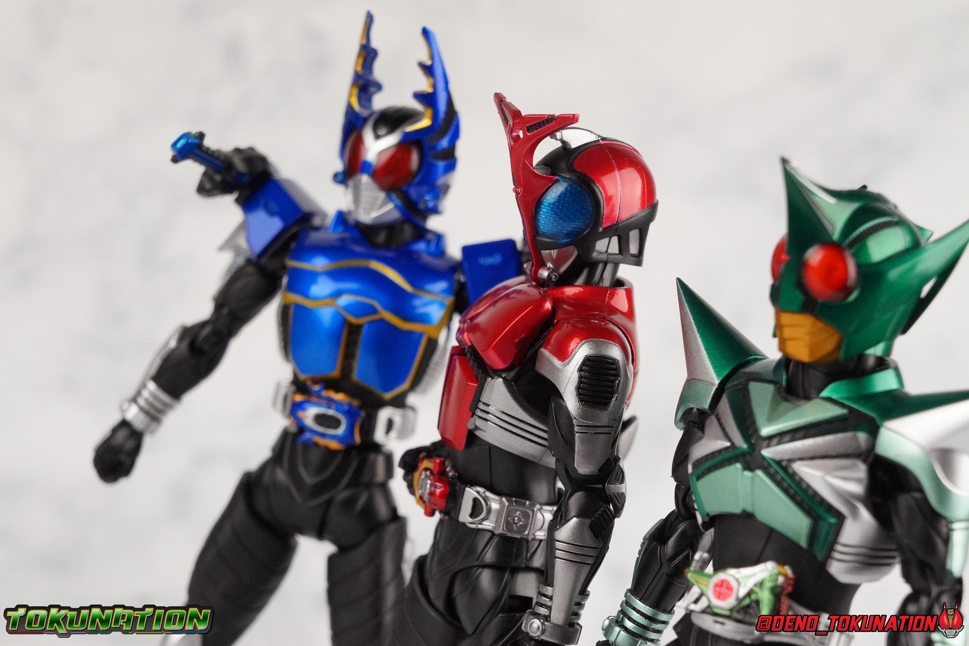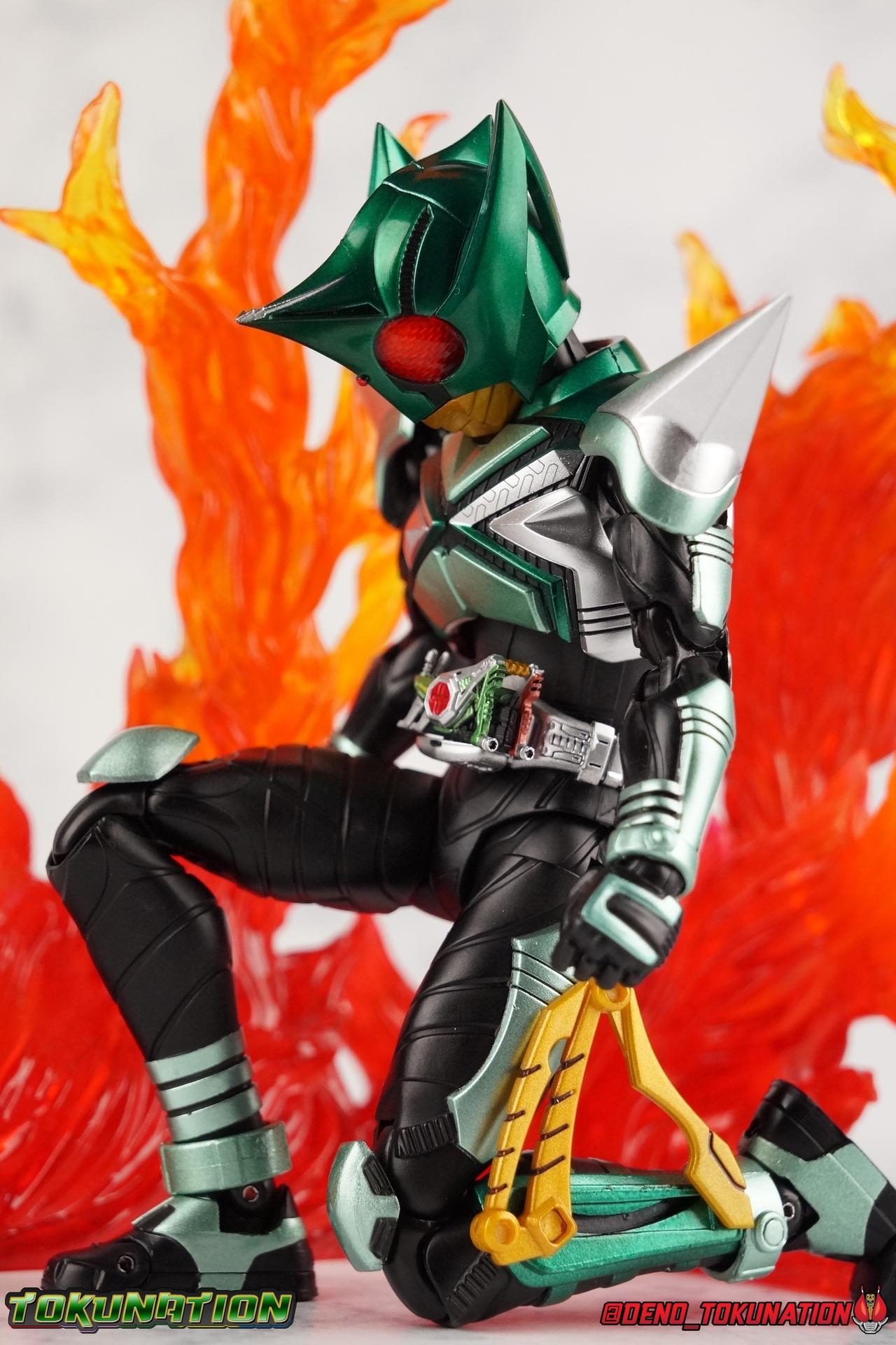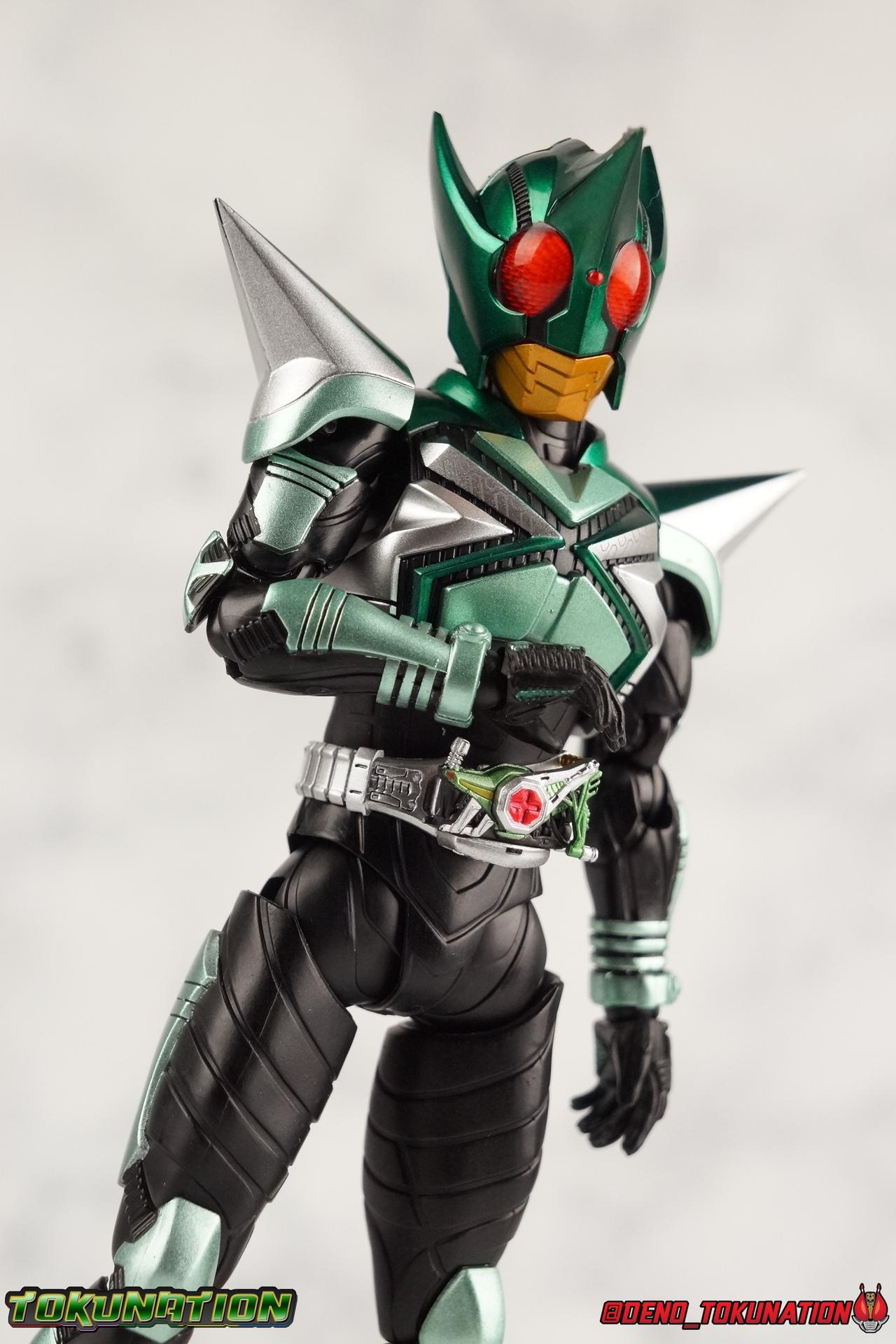 Sou Yaguruma was once the top dog of ZECT, commanding legions of ZECTroopers as Kamen Rider TheBee. The advocate of "perfect harmony" would soon be humbled however by Souji Tendou, and begin walking a darker path of self-loathing that eventually (and inexplicably) lead him to his new identity as Kamen Rider Kickhopper! Now Yaguruma is the latest addition to the Shinkocchou Seihou premium renewal line of S.H. Figuarts! So let's dive into our review of the figure. Packaging That standard slipcover packaging of Shinkocchou Seihou returns again. I promise I really appreciate the ease of access this kind of packaging provides. I really like this design more than a standard figuarts square box, but they've gotta start spicing things up. The one monotone image across the front of the box is getting rather boring. The presentation is nice but it's starting to fall flat in the face of more colorful and creative mainline releases like those from Ex-Aid is all. Main Figure Just as with Kabuto, Gattack, & Dark Kabuto before him, Kickhopper is an overwhelmingly needed update to an outdated and obsolete figure. The original release was plagued by the now standard QC issues of the original Kabuto line. Especially with those bowed legs. I'm happy to report that Seihou Kickhopper is the perfect successor to that original release. As with my last couple Seihou galleries form this series, you'll find a lot of similar passages in my review, it's just unavoidable when these figures share the same basic body and tooling aside from a few key areas. But I'll definitely zero in on the differences with this one. To start, the most iconic thing about Kickhopper is of course the Anchor Joint weapon attached to his left ankle. This unique item not only gives Kickhopper the 'jump' in his Rider Jump, but packs all the power behind his Rider Kick. It's also the most improved thing about this release. On the original figure it was a static accessory, permanently fixed in placed. This go around however the Anchor Joint is actually jointed and can be slid down the shin with the blade fully extendable to properly recreate a Rider Kick. The style of hips originally implemented in this mold provide a wide and balanced motion that allows you to replicate all of Kickhoppers most iconic poses & attacks. Though I do still think any standing kick looks pretty goofy in figure form. I would say the hips are limited only by their design as they do impact the waist assembly a little more prematurely than I'd like. But it's undeniable how versatile they are compared to many figures. The Hopper Zecter is really nicely detailed, especially when compared to the original. The details are sharp, the paint apps crisp, and it's even removeable. If you flip it around, the backside is also (properly) fully painted in Punch Hopper colors. It does pop off the buckle rather easily but it just looks so good. And while we don't have moving pectoral plates or flexible chest armor like with Kabuto & Dark Kabuto, Kickhopper's design is still pretty smooth, albeit a bit more limited in the upper body area. But you also don't have to worry about the torso impacting the Zecter. The new chest armor is really really nice though, it looks like a perfect replica of the show prop with really subtle paint details I had never really noticed before. The arms are free of nearly all obstruction thanks to wonderfully hinged shoulder pads. They do tend to look a little unnatural in some poses and expose the joints beneath however. But the elbows and wrist provide the same great range of motion we've come to expect from this mold, one that's still holding up very well 3 years on. Lastly we look at Kickhoppers head, which is just spot on. The original suffered from it's disproportionate size to the body as well as some issues with length and width. I'm happy to report that this go around the head is the correct size relative to the body and also the proper glossy green. The mouth plate is a brilliant gold and the compound eyes really sparkle in the right light. As with his 3 predecessors, Shinkocchou Seihou Kickhopper really is the ultimate apology for the original release. And being able to FINALLY recreate my favorite moment from Kabuto, the Triple Rider Kick in Seihou form, is the ultimate treat. Accessories Not much here, but just what you need: 1- Hopper Zecter (open). This is the flipped version of the Hopper Zecter from Kickhopper's Rider Jump/Kick combination. After the moving parts that were present on Seihou Kabuto's Zecter years ago I was surprised that Seihou Gattacks' was a swap out part instead, and I'm surprised again that the Hopper Zecter is the same. It just seems like something that could have been engineered to work instead. I mean just look at the W Driver & Gaia Memories. 2 - sets of hands. These hands are a bit odd if you ask me. The open hands are a very stiff variety of open palm. They aren't very expressive at all. The other pair are the standard type of "holding things" hands, and they look almost perfectly shaped for handlebars on a Rider Machine. But the Hopper Bros had no such bikes, nor any weapons they would have held. So these hands are a really pointless inclusion. The two glaring omissions that most collectors will notice are undoubtedly items included with the original figuart. The ramen bowl as well as a personalized Tamashii Stage. The ramen bowl was a pretty hilarious and iconic accessory, signifying one of the goofier plots of the show. And while the stage isn't nearly as important, it was nice that the original Hopper bros came with them. As is the original figuart is so dirt cheap now you could pretty much buy it just for those accessories. So while it's a bummer they weren't included here, it's no great loss either. Final Thoughts That's 4 down and well frankly quite a few to go. With Hyper Kabuto on the way finally, is it only a mater of time before TheBee, Sasword, Drake and others finally get this premium treatment as well
