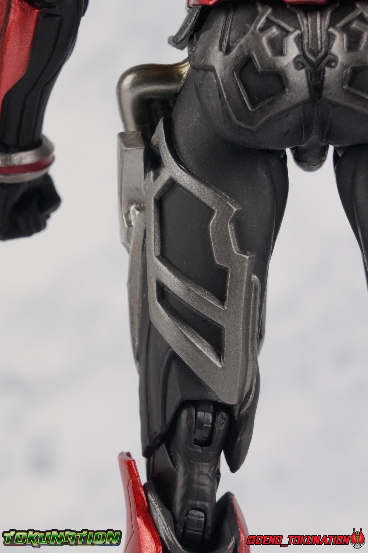 Normally I tend to limit myself to one scale of collecting for a particular show. I stick to 1/12 stuff, most often S.H. Figuarts. or gimmick and vintage figures around that scale. But every once in a while a show or figure grabs me enough that I do want to own it in a different size or line. Today's example of my weakness is brought to you by Kamen Rider Drive! I've never been huge into collecting S.I.C. figures, but S.I.C. Kamen Rider Drive Type Speed may finally be changing my tastes a little. Check out a full gallery & review below! Packaging As with most all modern S.I.C.'s, Drive Type Speed comes in a really elaborate and detailed window style box. The front actually looks like a stylized version of his helmet which I really dig. Obviously S.I.C.'s are fairly large, clocking in around 8", so this box is quite a bit bigger than an average figuart. And there are some fantastic stock photos on the exterior. They don't quite do this figure justice. Also the cardboard insert for the box is a fantastic reflective chrome with Drive's "R" emblem on it. It works great as a photo backdrop! Main Figure One thing I'll always give the S.I.C. toyline, details are key. And that's almost entirely thanks to the amazing man behind the line, Takeyuki Takeya. A brilliant artist with a mind for elaborate details and the meshing of organic and technological detailing. This release is doubly impressive because Takeya himself designed all the Roidmudes for Kamen Rider Drive. It was the first Kamen Rider Series to feature villains to be entirely designed by him. Though the riders themselves were not. S.I.C. Drive however, as with practically every other S.I.C. figure, was. This is Takeya taking a crack at Drive with his own unique style of detail and flourish. And it has been wonderfully executed. Though there are some minor caveats. The way the ball joints operate in the feet really irks me. They're on hinges but the ball also rotates 360, so it's very easy to get them off center, then Drive's feet won't sit flat at the same angle. The double jointed knees are astounding though. The entire calve can rest on the back of the thigh. That's just crazy. The hips can actually rotate out much further than I would have assumed too, those pipes on the thighs don't get in the way too much for outward movement, but they aren't exactly perfect either. They do pop off easily due to their design. And actually the hips can pull down a decent amount out of the waist so forward and back movement is remarkably good. This Drive can sit properly as though there were a Tridoron scaled to him. However he cant really get down on one knee to kneel, which is sort of my benchmark for figure posability. The upper body really only has one big thing that bugs me. And that's how loosely the Drive Driver sits on the belt itself. It's quite easy to pop off, the belt is pretty loose around the waist already, which normally I like because it frees up movement. But in this case it makes it easier to knock the driver off, that coupled with the soft plastic of the belt is obviously a great recipe for losing small parts. The lower torso also moves quite freely and is made of a soft plastic, though sometimes you can see straight through a hole in the waist because of the way it moves. The upper torso has some of the best asymmetrical detailing I've ever seen, I really love it. Taking Drive's tire sash to a new level. The way the ridges on the lower right & upper left corner of the chest compliment each other is gorgeous. And I love the added detail of a neck collar around the right side of Drive's head. It really drives (pun!) home the 'bisected by a tire idea' of his design. It's as though he was a totally normal rider then this thing just smashed it's way into the design and the suit just accommodated. This is why I love Takeya's work. The arms have some pretty standard movement, which is to say the shoulder pads keep them from doing much and the elbows can do about a 90 degree angle. The wrists don't have a ton of clearance because of how they sit flush with the wrist pads but you can get some use out of them. And lastly the head. Wow that just gorgeous brilliant detailed head. This take on the design easily looks like it could have fit in with the Roidmudes of the series. It's heroic, but it looks so, sinister? I love it. And it actually has plenty of room to move. Bravo on this design. This figure just rocks it at every level. It's just a gorgeous re-design of a suit that I already loved immensely. S.I.C. Kamen Rider Drive Type Speed gets the best of both worlds in it's first outing with this line. Hopefully S.I.C. Mashin Chaser & Heart can live up to this standard as well! Accessories As with most S.I.C.'s Drive is loaded up! 1 - Handle Sword. This version of the handle sword is quite the detailed departure from the figuart. As with everything else about this figure it takes the car aesthetic to the extreme. I love it. It can accept Shift Cars in a similar fashion to the S.H. Figuarts release. 1 - Door Gun. While the Door Gun may not look as radically different as the normal version it's still a great looking weapon that compliments Drive's new deep details very well. It can accept Shift Cars in a similar fashion to the S.H. Figuarts release and has an opening door as well. 1 - Max Flare Tire. This giant hunk of plastic can replace the standard Type Speed tire in much the same way as the figuart. It comes apart in sections to snap over the chest. In the case of this one the flame effects are molded onto the tire so they aren't removable. They are also totally awesome. 1 - Max Flare belt read out. This replaces Mr. Belt's standard face. It works basically just like the SHF, take the driver off and replace the plate. 3 - sets of hands. 1 open pair, 1 set for holding the gun, 1 set for holding the sword. I am a bit disappointed that he doesn't have a pair of relaxed open hands, but oh well. 6 - Shift Cars. That's 1 each of Midnight Shadow, 
