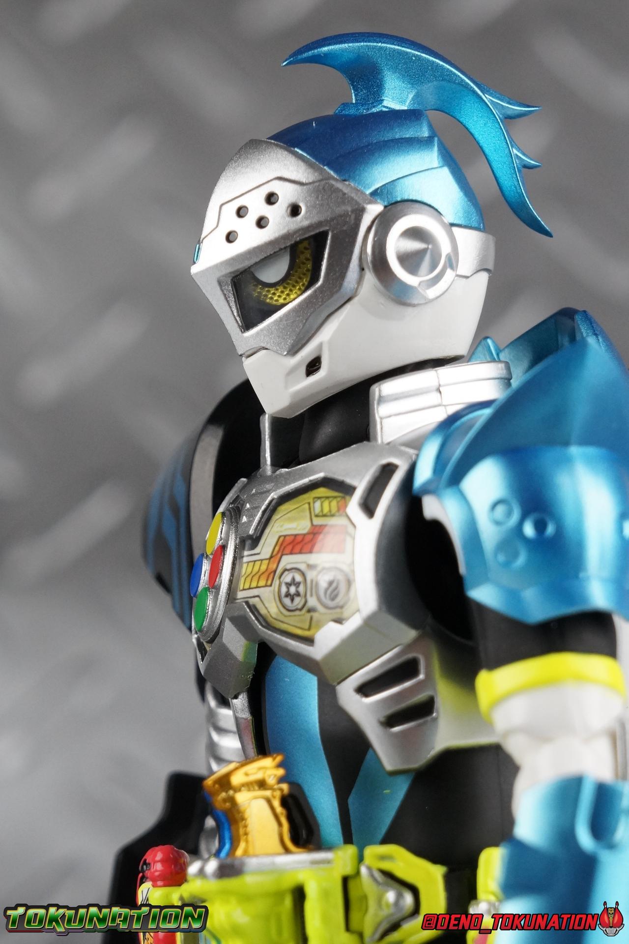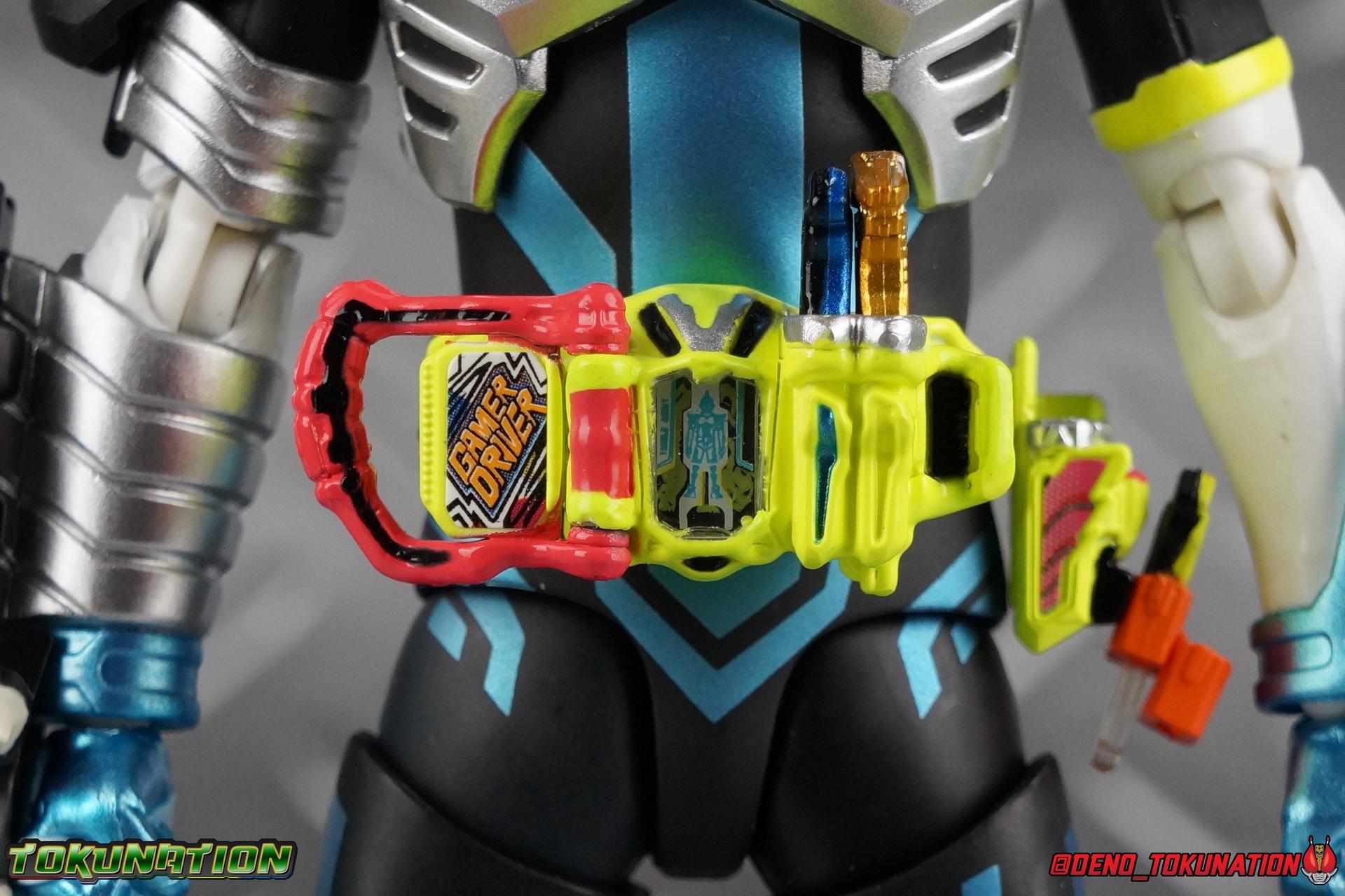 When 1 Player alone couldn't defeat the powered up Bugster, Graphite, it took 4-Player co-op to bring him down! Using the Level 5 Gashat Drago Knight Hunter Z Ex-Aid and his allies were each granted a portion of it's power and a piece of it's armor. In Hiro's case he inherited the power of the Dragon Blade, fitting his knight theme perfectly. In co-op form Brave only gained this piece of the Hunter Gamer powers but would eventually come to master this Gashat's power completely. Now it's time to take a look at how well his Figuart has inherited the Dragon's Blade with our review of S.H. Figuarts Kamen Rider Brave Hunter Quest Gamer Level 5! Packaging As with the first web exclusive in this line, Lazer Level 2, Brave features a bright and standout box. With no packaging window as all web exclusives are these days. As with Lazer the colors really pop and I like the character portrait on the front, despite it's rather misleading positioning of the figures arms. More on that later. Main Figure Seeing as this figure features components from two others we've seen previously, Brave Level 2 & Ex-Aid Level 5, you'll notice a lot of my review is very similar. Most of Brave Level 5's body is reused from the Level 2 release. While the right side of the body reuses components from the Level 5 Ex-Aid body. The Level 2 Ex-Aid riders themselves all share a great many number of parts as is. Each suit has it's own unique detailing and colors, but at a basic level they feature the same mold. Sporty type shoes, the bike shorts look, the driver, the chest plate. You see what I mean. This release of Brave is still as lavish as the first. From the Ground up the Ex-Aid type body is pretty solidly built. Though the ankles are still a huge fault for me. They don't have the full range of motion they need for Brave to assume many of the dynamic poses he's known for. You'll find that wide stances are just really really difficult to achieve, which means he's always gonna be a bit off balance. Sadly my Level 5 Brave also appears to have one leg longer than the other making it difficult to get him in a normal standing pose. The knees have a great bend that helps improve some of the articulation. And I would say that the bulkier right leg helps a bit with weight and stability. All that being said, the paint apps for the legs are exquisite. Luckily the white paint apps are so much better this go around. My Level 2 Brave had very spotty QC there. As with previous releases, Gamer Driver is still my favorite thing about the figure. This entire device is extraordinarily detailed for something at this scale. The Driver handle can flip shut. The functionality it features still astounds me. Changes to this release include a new "dummy" Drago Knight Hunter Z Gashat, which is removable as you can see in my pictures below. You can insert it as with any other Gashat into the Critical Finish slot on the Gashat Holster. Speaking of there's also what is meant to be the Level 3 DoReMiFa Beat Gashat in the holster. As with Ex-Aid Level 5's Gekitotsu Robots Gashat, DoReMiFa Beat is sparsely detailed and permanently fixed to the holster. Brave's upper body, left arm and head are unchanged. Brave is absolutely breathtaking but his chest detailing is something I still just cannot get over. The paint apps on the outer layer are crisp and clear, but I'm so impressed by the Rider Gauge label within his chest. On the flip side of the torso is the deactivated Level 1 head we've seen before. The left arm still has that pesky issue with the shoulder pad. Every time I try to stretch the arms out it's like rather than sliding out properly the pads just pop off again. Still a minor issue but one that bugs me. Looking up to the head, if you were irked by the lack of a white collar on the Level 2 releases then feel free to be irked again. It's an inconsequential detail to me. It's silver this go around too and that doesn't really bother me. Before we finish up with the main body, Brave's right arm has been replaced by the Level 5 Dragon Gun arm. Surprisingly, or maybe it shouldn't be, this arm isn't impaired at all like it was with Ex-Aid Level 5. With Ex-Aid the bulky shoulder pad was attached directly to the main body via the new chest plate on the torso. With Brave thankfully this pad is just attached to the arm and it really frees up the movement. Sadly the elbow is still neutered, being unable to achieve even a decent 90 degree angle. Exchanging hands on this arm is also a nightmare. The wrist pegs are rather tight on this release and difficult to replace thanks to the dragon claws on the wrist. Just as they were with Ex-Aid Physical shortcomings aside, this release still fills out my display quite well. But the real point of it is the accessories it includes. Accessories 4 - sets of hands. These are identical to those that came with Level 2 Brave. Straight re-packs with no additions or subtractions at all. 7 - "word bubble" effect parts. These clear thin plastic sheets were the big selling point for both Brave & Snipe Level 5. Each replicates an effect a battle action or outcome from the show. Included are: