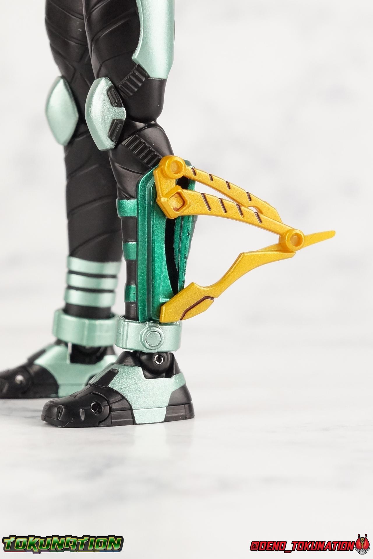 Sou Yaguruma was once the top dog of ZECT, commanding legions of ZECTroopers as Kamen Rider TheBee. The advocate of "perfect harmony" would soon be humbled however by Souji Tendou, and begin walking a darker path of self-loathing that eventually (and inexplicably) lead him to his new identity as Kamen Rider Kickhopper! Now Yaguruma is the latest addition to the Shinkocchou Seihou premium renewal line of S.H. Figuarts! So let's dive into our review of the figure. Packaging That standard slipcover packaging of Shinkocchou Seihou returns again. I promise I really appreciate the ease of access this kind of packaging provides. I really like this design more than a standard figuarts square box, but they've gotta start spicing things up. The one monotone image across the front of the box is getting rather boring. The presentation is nice but it's starting to fall flat in the face of more colorful and creative mainline releases like those from Ex-Aid is all. Main Figure Just as with Kabuto, Gattack, & Dark Kabuto before him, Kickhopper is an overwhelmingly needed update to an outdated and obsolete figure. The original release was plagued by the now standard QC issues of the original Kabuto line. Especially with those bowed legs. I'm happy to report that Seihou Kickhopper is the perfect successor to that original release. As with my last couple Seihou galleries form this series, you'll find a lot of similar passages in my review, it's just unavoidable when these figures share the same basic body and tooling aside from a few key areas. But I'll definitely zero in on the differences with this one. To start, the most iconic thing about Kickhopper is of course the Anchor Joint weapon attached to his left ankle. This unique item not only gives Kickhopper the 'jump' in his Rider Jump, but packs all the power behind his Rider Kick. It's also the most improved thing about this release. On the original figure it was a static accessory, permanently fixed in placed. This go around however the Anchor Joint is actually jointed and can be slid down the shin with the blade fully extendable to properly recreate a Rider Kick. The style of hips originally implemented in this mold provide a wide and balanced motion that allows you to replicate all of Kickhoppers most iconic poses & attacks. Though I do still think any standing kick looks pretty goofy in figure form. I would say the hips are limited only by their design as they do impact the waist assembly a little more prematurely than I'd like. But it's undeniable how versatile they are compared to many figures. The Hopper Zecter is really nicely detailed, especially when compared to the original. The details are sharp, the paint apps crisp, and it's even removeable. If you flip it around, the backside is also (properly) fully painted in Punch Hopper colors. It does pop off the buckle rather easily but it just looks so good. And while we don't have moving pectoral plates or flexible chest armor like with Kabuto & Dark Kabuto, Kickhopper's design is still pretty smooth, albeit a bit more limited in the upper body area. But you also don't have to worry about the torso impacting the Zecter. The new chest armor is really really nice though, it looks like a perfect replica of the show prop with really subtle paint details I had never really noticed before. The arms are free of nearly all obstruction thanks to wonderfully hinged shoulder pads. They do tend to look a little unnatural in some poses and expose the joints beneath however. But the elbows and wrist provide the same great range of motion we've come to expect from this mold, one that's still holding up very well 3 years on. Lastly we look at Kickhoppers head, which is just spot on. The original suffered from it's disproportionate size to the body as well as some issues with length and width. I'm happy to report that this go around the head is the correct size relative to the body and also the proper glossy green. The mouth plate is a brilliant gold and the compound eyes really sparkle in the right light. As with his 3 predecessors, Shinkocchou Seihou Kickhopper really is the ultimate apology for the original release. And being able to FINALLY recreate my favorite moment from Kabuto, the Triple Rider Kick in Seihou form, is the ultimate treat. Accessories Not much here, but just what you need: 1- Hopper Zecter (open). This is the flipped version of the Hopper Zecter from Kickhopper's Rider Jump/Kick combination. After the moving parts that were present on Seihou Kabuto's Zecter years ago I was surprised that Seihou Gattacks' was a swap out part instead, and I'm surprised again that the Hopper Zecter is the same. It just seems like something that could have been engineered to work instead. I mean just look at the W Driver & Gaia Memories. 2 - sets of hands. These hands are a bit odd if you ask me. The open hands are a very stiff variety of open palm. They aren't very expressive at all. The other pair are the standard type of "holding things" hands, and they look almost perfectly shaped for handlebars on a Rider Machine. But the Hopper Bros had no such bikes, nor any weapons they would have held. So these hands are a really pointless inclusion. The two glaring omissions that most collectors will notice are undoubtedly items included with the original figuart. The ramen bowl as well as a personalized Tamashii Stage. The ramen bowl was a pretty hilarious and iconic accessory, signifying one of the goofier plots of the show. And while the stage isn't nearly as important, it was nice that the original Hopper bros came with them. As is the original figuart is so dirt cheap now you could pretty much buy it just for those accessories. So while it's a bummer they weren't included here, it's no great loss either. Final Thoughts That's 4 down and well frankly quite a few to go. With Hyper Kabuto on the way finally, is it only a mater of time before TheBee, Sasword, Drake and others finally get this premium treatment as well