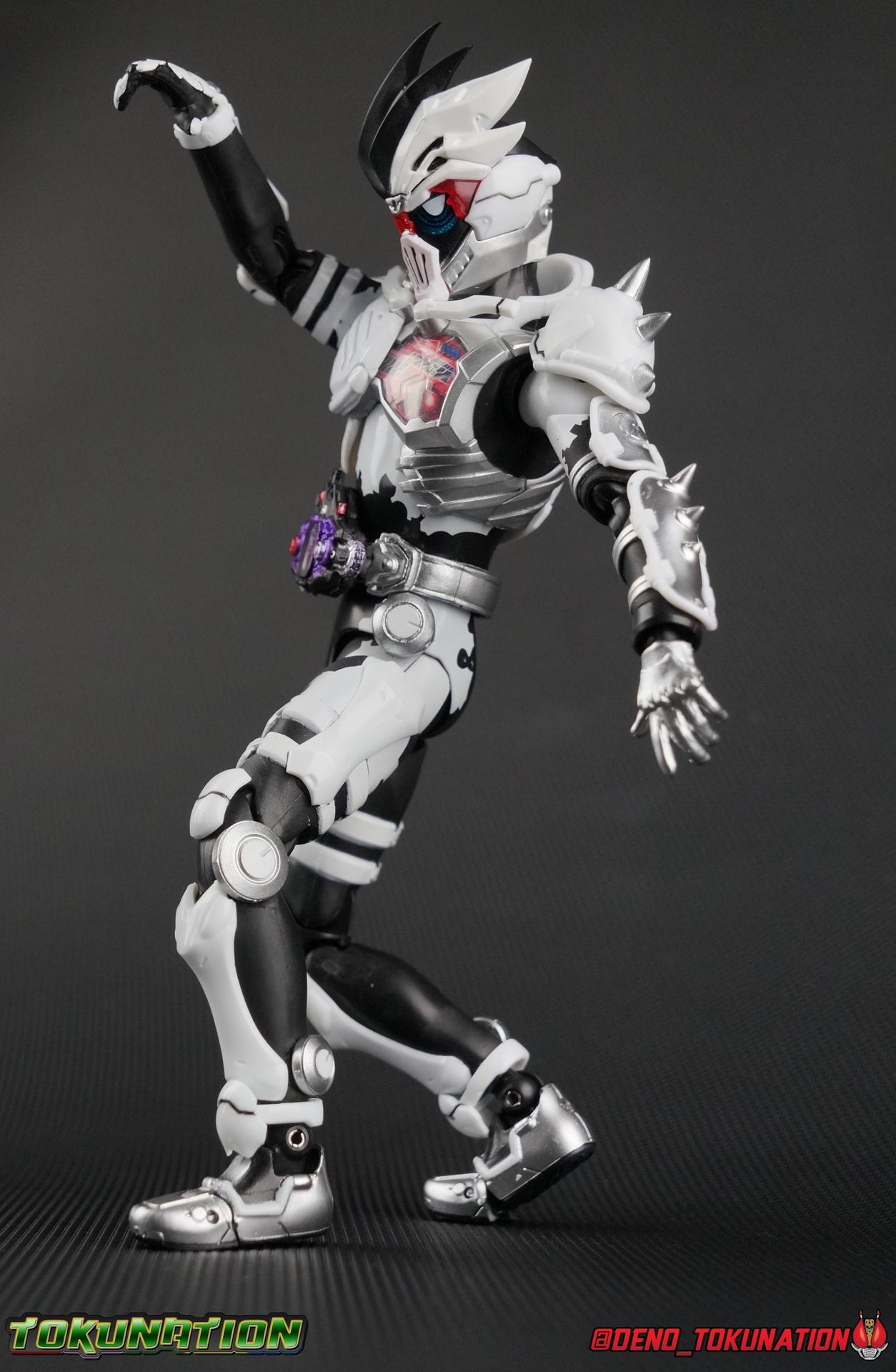 We've waited so very long for the one true hero to arrive. Finally, months after the end of Kamen Rider Ex-Aid, the first figuart of the one and only god himself Kuroto Dan has arrived! While Bandai has opted to go with (arguably) Kuroto's most popular and beloved form first, they did also just release his Level 2 Action Gamer form as a Tamashii Nations 2017 exclusive. Using the data of death, his own in fact, Kuroto Dan has become the Dangerous Zombie! This is our gallery of the excellent S.H. Figuarts Kamen Rider GenM Zombie Action Gamer Level X! Packaging GenM Level X comes in what is now standard packaging for Ex-Aid Web Exclusives. It's not nearly as right or loud, but it's a theme I still really dig. With no packaging window as all web exclusives are these days. As with the others the colors pop well and I like the character portrait on the front. That's about all there is to say on this one. Main Figure This figure was easily one of my most anticipated releases this year. The suit design for Level X is truly brilliant. It strikes the perfect balance of chaos and order as well as good an evil. Playing perfectly into Kuroto's nature and personality. This figure is an exquisite execution of the design. If you never immediately noticed this before, Zombie Gamer's design is very much based on a skeleton. It's easy to just see the black & white and not look at the finer details. But if you take a second glance, one of the most notable aspects of this is in the legs, where we begin. The shins themselves are actually bones. A majority of the rest of the design is more subtle, but I love how the shins look. I have a slight issue with how they protrude out just far enough at the bottom to mess with the forward motion of the ankles. I was able to get GenM into some very very precarious poses for this gallery. But it took an exorbitant amount of trial and error to do so. I will say I'm pretty disappointed in the quality of the paint work on the legs themselves though. The white bands around the hips and the black accenting them is very poorly applied on my copy, there almost appears to be a white haze over the black paint and several white flecks as well. GenM Level X marks the first instance of the Buggle Driver for Ex-Aid figuarts as well. It also marks a change in how Gashats are handled. The finer details of the Driver are a bit soft for my tastes, particuarly on the buttons on the front. But the paint work is really great, and the readout on the driver is very sharp.The Dangerous Zombie Gashat is very much like previous SHF Gashats, in that it is a dummy piece with just the handle and upper portion to plug into the Driver. However it is also substantially smaller than Gashats present in Gamer Drivers for reasons I don't understand. I tried recreating GenM Level 0X at the tail end of this gallery using Ex-Aids Drivers so you should be able to see the size difference. Of note, you can't just create Level 0X by doing this swap. Standard Level X's Rider Gauge is totally different. Speaking of the chest, the details on the Rider Gauage are actually really really nice. Bandai's label work has massively improved since the old Kiwami Arms debacle. Every Ex-Aid rider so far has had really crisp Rider Gauges and GenM Level X is no different. I particularly like the two bars just under the neck of the figure that simulate clavicle bones as well. These are actually hinged to move for some reason, but they never really get in the way of anything. On the flip side of the torso I am in LOVE with the details for GenM's spine. They just sell that skeletal nature of the design all that much more. GenM's arms are about as standard as you can get, Nothing too terribly special, the paint work is much nicer than the legs thankfully. The right shoulder pad bugs me just enough because it's easy to pop off the joint. But that's a minor gripe. Finally, that, head. That absolutely gorgeous sculpt. That broken visor and exposed eye. Bandai nailed that headsculpt perfectly. Being able to arch the head back or crane it over tot either side again helps sell the maniacal nature of this form. Overall GenM has very standard articulation as well, with just enough extra play in the joints to pull off some great menacing zombie poses very reminiscent of what we saw in the TV series. Accessories Kuroto comes with the perfect accessories to remind you of just how evil he was at an early point in the series: 5 - sets of additional hands. I love how the right hands have that skeletal paint work on the back of them. I honestly never noticed it til I had this figure in hand and I just LOVE little details like that. I think some of these sets could look a little more menacing and expressive but they do get the point across of who and what Dan was at this point in his (first) life. There's a few pairs of open hands in various poses as well as two pairs to hold the included weapons in either mode. 1 - Gashcaon Sparrow. The trademark weapon of Kamen Rider Lazer Level 3, and later his Lazer Turbo form. This was a trophy that Dan kept for himself after he killed Kiriya. The fact that this accessory is included with the GenM figuart instead of an actual Lazer one is just deliciously satisfying. The two halves can plug together in the middle by way of a small white tab. This hardly ever works on mine. It's a terrible part fit so the two halves constantly force each other apart, so that's frustrating. Alternatively the two can be held in the Sickle Modes instead. That's it for accessories but that's honestly perfect. The pipe dream would have been to include a Gamer Driver and Gashacon Breaker for GenM Level 0X. But the chest gauge would have had to be different as well. So that's understandable. I expect to see Level 0X released fully on it's own at some point as well. Final Thoughts I, like many collectors, heavily anticipated the release of this figure. Kuroto Dan is to many myself included, easily the most memorable and interesting ch