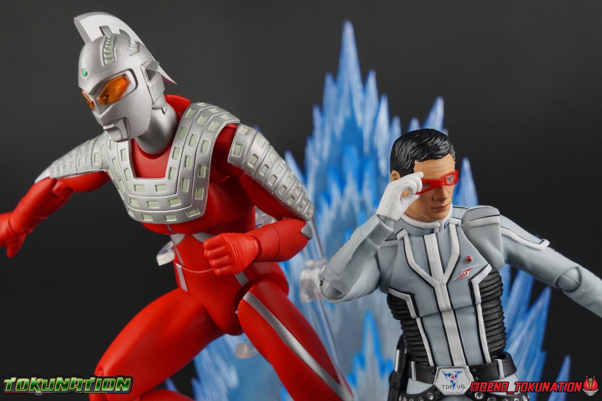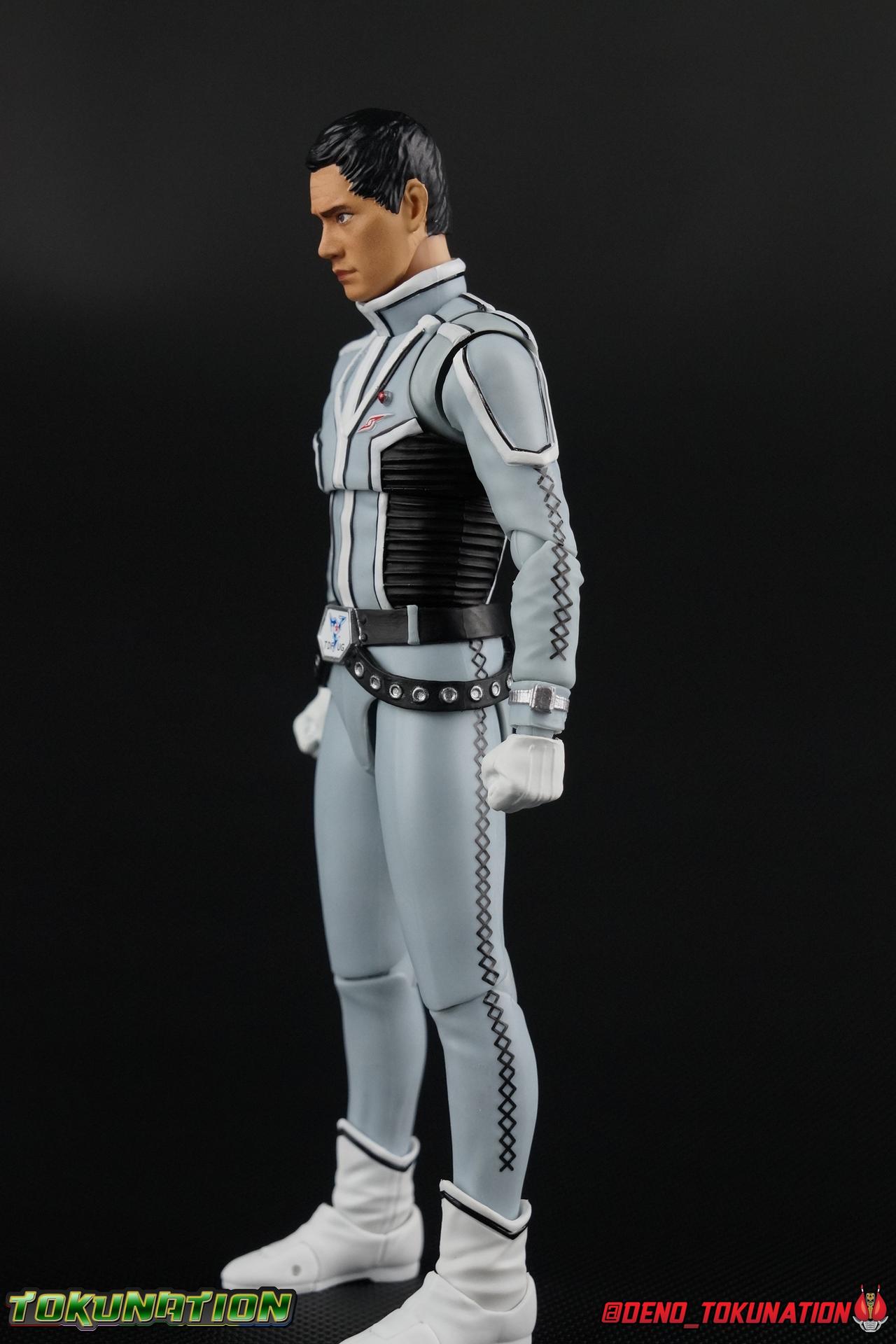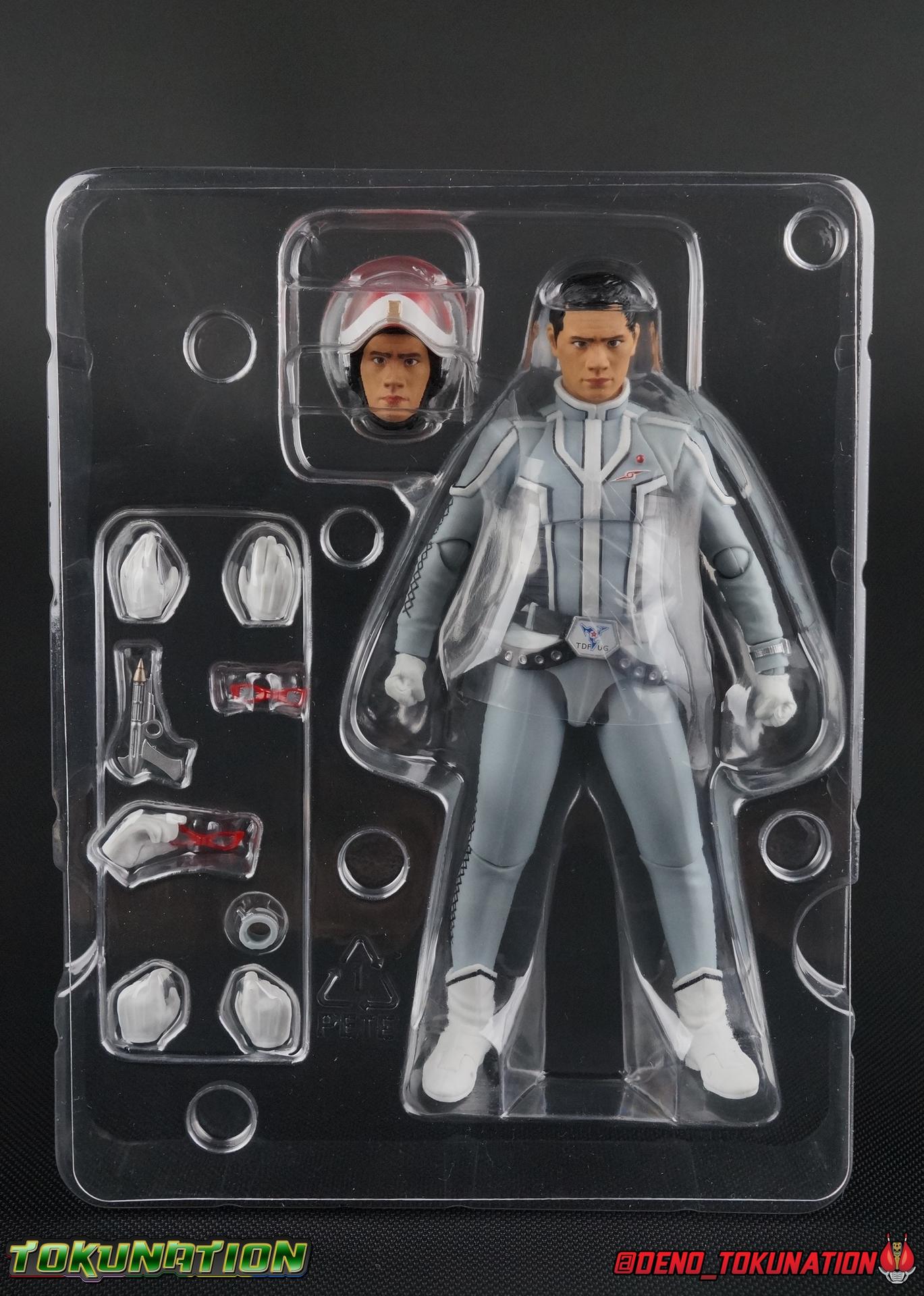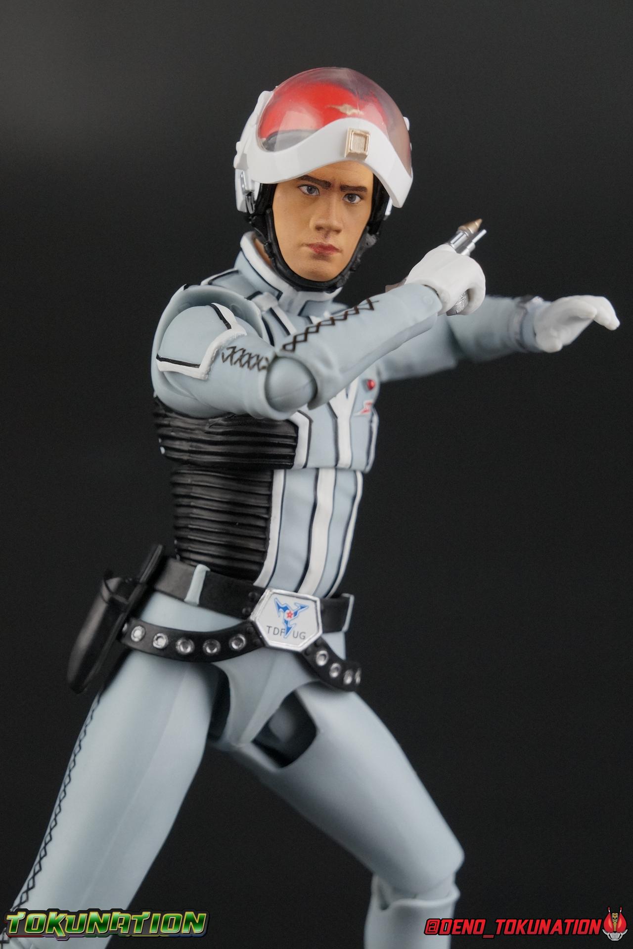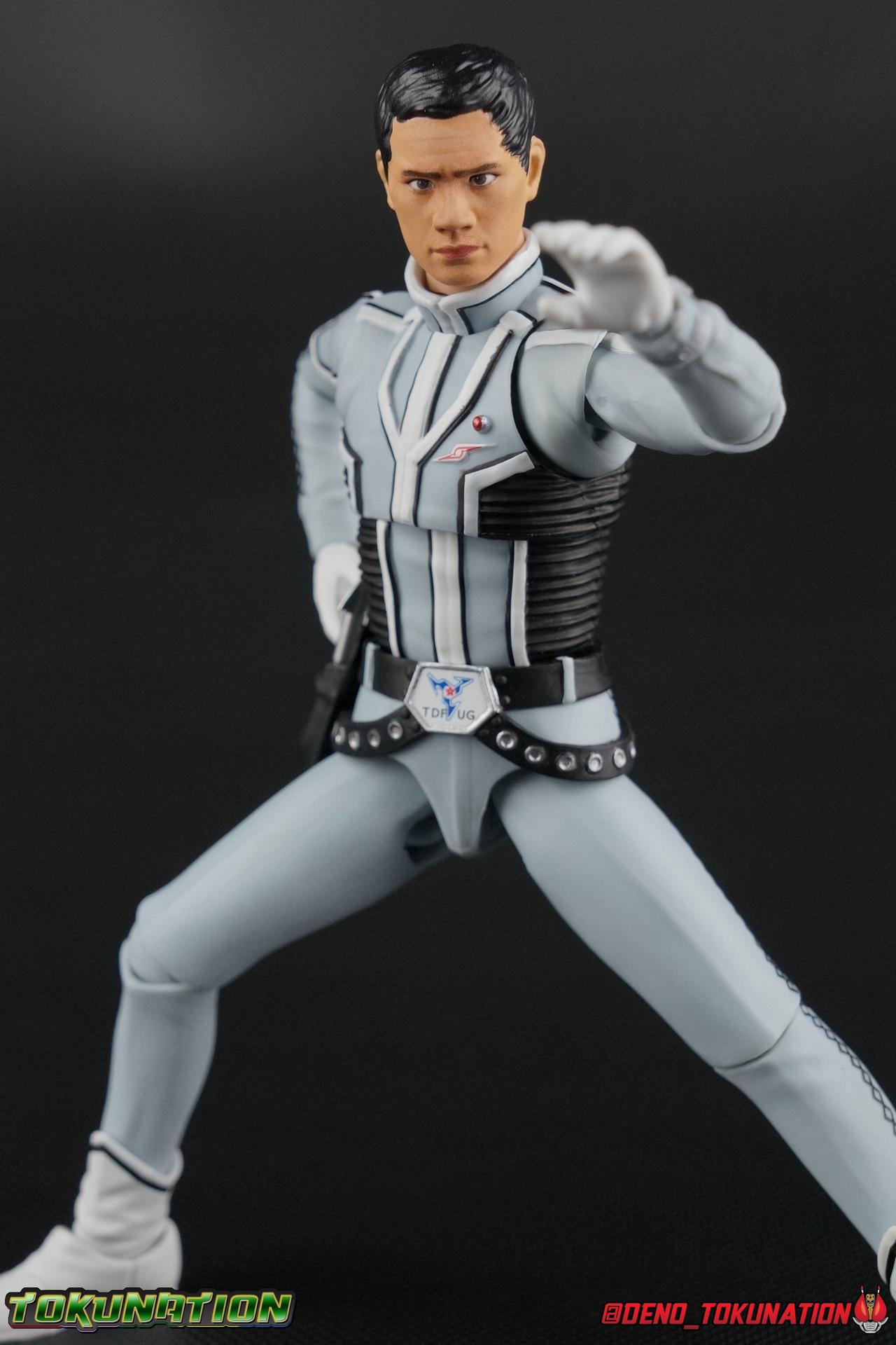 Dan Moroboshi was a heroic member of the Ultra Garrison. A mysterious young man, Dan was secretly in fact the hero Ultra Seven! Having come to Earth by chance while mapping the Milky Way, Seven would manage to save the life of a young hiker. Putting a spin on the classic story of Ultraman & Shin Hayate, rather than merging his being with this hiker, Seven would assume his appearance and create his Dan Moroboshi persona. Packaging Following the examples set by the first few Ultraman S.H. Figuarts, Dan comes in the now standard themed packaging. I really like the sweeping effects of the design, and the subtle blue of his box really works well with it. I do feel like the stock photos are deceptive as they don't really show you anything of action or significance. Main Figure Tamashii Nations has been at it with S.H. Figuarts for a very very long time at this point. Celebrating 10 years of the toyline, has also happened to coincide with the 50th anniversary of the series Ultra Seven. So Seven has enjoyed a number of great releases this year. S.H. Figuarts has tackled Ultra Seven himself, Alien Metron, King Joe, and the recently announced Alien Guts. Rounding out this years releases though is Dan Moroboshi himself. The first in a new sub-series of civilian identity S.H. Figuarts, Dan is sort of setting the bar for what we can expect with these kinds of releases going forward. Retsu Ichijoji of Space Sheriff Gavan & Takeshi Hongo of Kamen Rider have also been releases recently. But we're gonna kick off our thoughts with Dan. So this is a brand new mold. One that I want to say from the outset, does indeed have some flaws. I always like to start my reviews from the ground up, so the legs are what I want to focus on first. As Bandai has improved it's sculpting over the years, they've been able to more accurately recreate realistic fabric/fold details. Giving these figures a better sense of realism. That detailing is very apparent in Dan's boots and pants and I just really appreciate that. His ankle tilts though, really need improvement. There's just not enough play in them for dynamic poses. But that's really only part of the problem. The hips & knees are likewise limited. The knees are on a strange split ball joint, when you bend the knees one half of the ball joint tracks with the lower leg and upper leg which feels very limiting. The knees get a bout an 80 degree bend which would be fine, if not for the limited hip joints. They also cannot assume a 90 degree bend. Combine these issues with the ankles and you have a recipe for mediocre articulation. Now I really really like the waist and torso detailing. Dan's Ultra Garrison belt and holster are very crisply painted and detailed. The holster for his Ultra Gun is a bit tight, and given it's pointy tip it's a bit dicey to put in there. The torso is more of an interesting mix of sculpted details and joints. I really appreciate that the abdomen can rotate independently move from the upper, but it does break up the sculpt work of his UG Suit. Now I'm not a huge fan of the strange cuts used for the shoulder sections. They feel like they want to be similar to the "butterfly joints" of some Marvel Legends. Instead they function very ineffectively. Really that brings us to the arms themselves. The biggest fault of this figure, it has no bicep swivels, and that's detrimental. The combination of no swivels and little clearance for the shoulder sections means getting the arms close to the main body is eye pleasing poses is difficult. Even getting his hands on his hips is nearly impossible, or trying to get a hand on the Ultra Gun while it's in the holster. And that's really disappointing. Sadly another contributor to this imperfection is the same split style ball joints used for the elbows. Finally that brings us to the head. Now I know people have had divisive opinions over Bandai's face printing technique for human faces. A number of the Marvel & Star Wars releases have honestly been done pretty poorly. But I gotta say, Dan's face print looks great. It's a little dead in the eyes, but the face print itself is really quite on point. Unfortunately the head is very limited in what it can do thanks to the weird cuff around the neck, it's basically just a cylinder raised out from between the shoulders that can hardly move and impacts the underside of the head at every turn. Honestly I'm just really frustrated by the articulation choices that went into this release. I think it looks great from many angles, but the ability to get it into those angles is very limited. Accessories Honestly Dan comes with a ton of stuff: 1 - Ultra Gun. This small sidearm is the standard weapon of all Ultra Garrison members. It's a bit difficult to fit into the gun hands because of the width of the grip. You kind of have to turn to a weird angle to make it fit, then really push to get his trigger finger through. It could have been executed much better than this. 1 - Video Seaver. This wrist mounted communication device is another standard for Ultra Garrison members. The figure already has one attached behind the left wrist straight out of the box. But this swap out one has a flipped open screen. There's not much to it but I appreciate the inclusion. 1 - Helmeted Head. This head features the same face printed likeness of Dan, though it feels a bit softer. The helmet itself has a nice glossy finish and a visor that can flip down (this looks rather silly thought). This head runs into (literally) the same issues as the other in regards to hitting the collar parts. I really wish it had just been an empty helmet that could be placed over the normal head, but oh well. 1 - Ultra Eye. This is Seven's transformation item. It's a very small and thin accessory that can sort of be held in one of the Ultra Gun hands. Though this is rendered unnecessary by another accessory. 1 - Ultra Eye hand. This one is molded straight into a hand in the position you'd need to get it flush with Dan's eyes to si