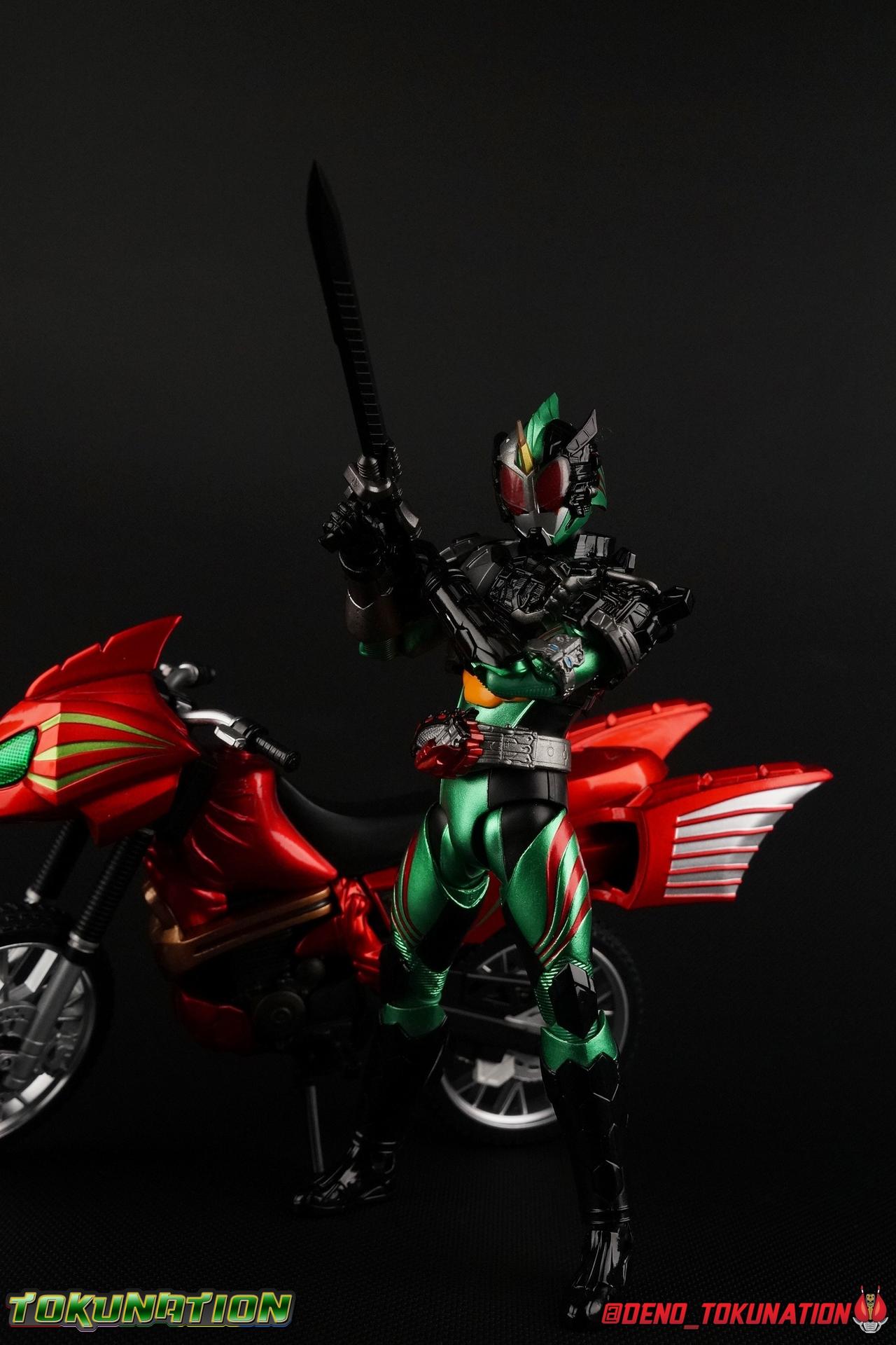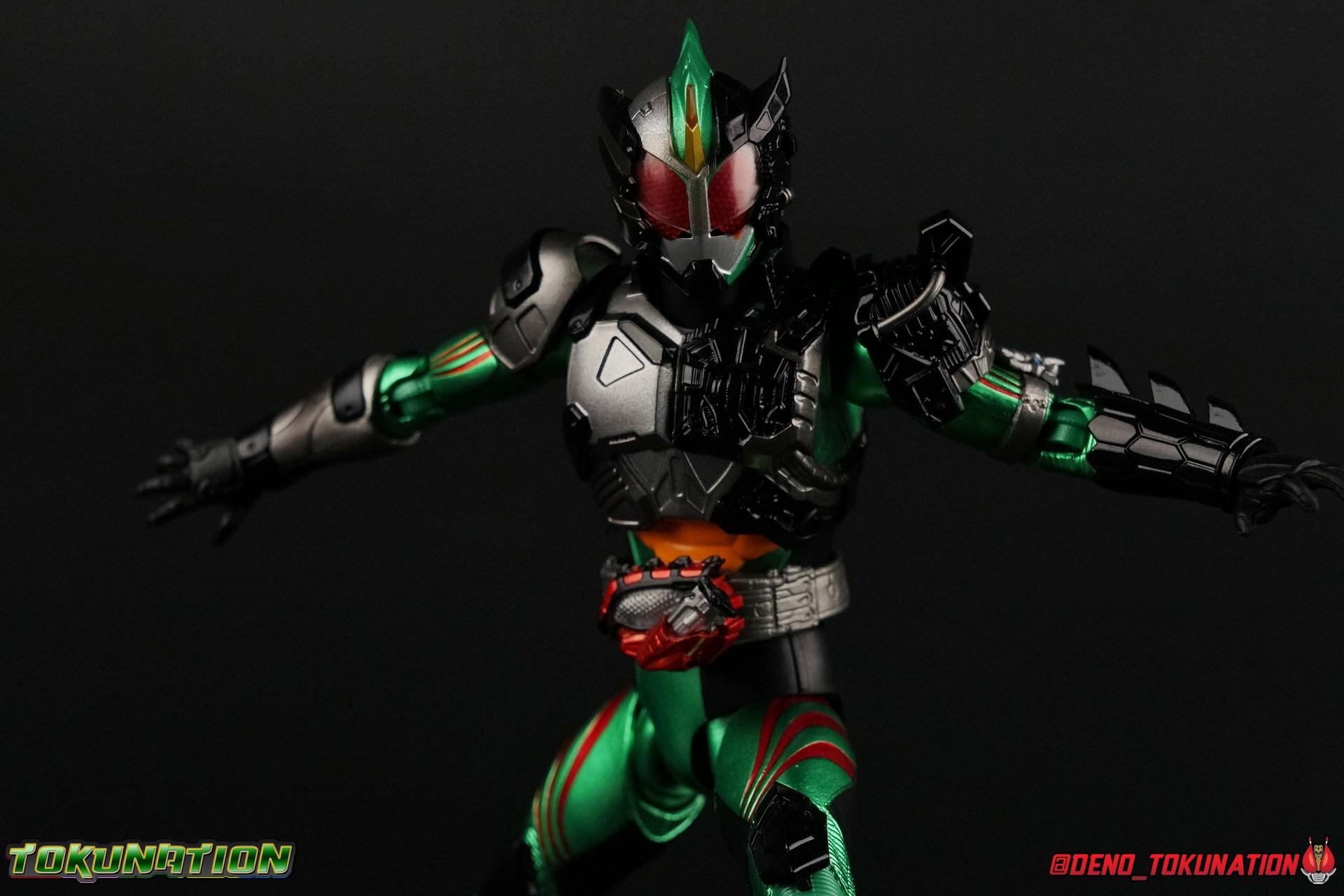 I still firmly believe in Amazon. After five S.H. Figuarts releases between the two 2 seasons of the popular Amazon Prime series, with 1 more on the way (Blind Alpha), I continue to be impressed with Kamen Rider Amazons. Each release up til now has been an entirely new mold, at least mostly, and each a completely new character. This release however is primarily one we've seen before, way back with Amazon Omega. S.H. Figuarts Kamen Rider New Omega takes the wonderful Omega mold and retrofits him with a version of the new cybernetic armored parts we first saw with Amazon Neo. Now, let's open our Amazons once again! Packaging If you don't know by now, Amazon.JP edition figuarts seem to be my new kink as I'll go to any length and pay any price to get them. So once again I've sprung for the Amazon.JP release of New Omega over the standard retail one. As usual this entails a brown corrugated cardboard style box meant to evoke an Amazon shipper. Other than that it's considerably larger than the retail releases' box due to the added exclusive accessories. Main Figure Oddly enough, despite being the 2nd rider introduced into the Amazons universe & being 1 of 4 in that world overall, Omega is the only rider to have received an upgraded form. It's debatable whether New Omega is even considered his final form because we just have no clue what to expect from the upcoming theatrical film. The point remains that arguably Haruka was the main character of season 1, most every major event leads to or from him. But with season 2 it's very obvious that Chihiro is supposed to be the focal point. So it's really odd that in a season that's primarily about the horribly broken father/son relationship between Jin & Chihiro, that Haruka is the only one of the 3 riders to wind up with an upgraded form. I know that's got nothing to do with the figure we're reviewing, but to me it's just kind of fascinating is all. Anyway, onwards! The New Omega body is one you're probably very familiar with at this point if you've been collecting with this series at all. The basic body used for it is that of the original Amazon Omega Figuart. But influence from the Neo Amazons Driver Haruka used in season 2 has added elements of Amazon Neo's design to his armor. Now the lower half the body is actually unchanged from Amazon Omega. From the abs down to the feet, these parts are identical. The legs are totally unchanged, even to the point that the knee pads still frustratingly pop off. They still feel dynamic enough to get the poses you want and thankfully this go around the thigh swivels have a bit less resistance which I like. The new bits start at the waist. The addition being the Neo Amazons Driver borrowed from Amazon Neo. The only difference this time around is that compound eye has been painted grey instead of yellow which makes it look a bit plain. As with Neo the Syringe/Ampule is non-removable. From here the lower torso/ab section is identical to Omega however new upper body piece has been sculpted. While similar in appearance to Neo's, New Omega's is a bit more slim, not quite as wide. New Omega's use of these cybernetic parts also features some unfinished techno detailing which was never quite explained in show. Though it greatly helps set Haruka's look apart. In the same sense the arms are very similar to the original Omega. From the bicep down the left arm is identical to the original release. The shoulder pad is a really cool new cybernetic part that's asymmetrical from the other arm. I really like the looks of it even if doesn't make much sense. The right arm features a new forearm based on Neo's, meaning it's removable so you can equip the Amazon Neo Blade arm. This arm also features an identical shoulder pad to Neo. The back of the figure has some similar detailing to Neo but it's totally different on closer inspection. The head is the final new addition. The broad strokes of it's design are similar to Neo, but it ultimately is a remold of the original Omega's. The right side panel is reused from Neo but everything else is an addition to the original head mold. I know not everyone loves the New Omega design but I just think it's gorgeous. Accessories Given that this form is directly lifted from Neo, it's probably not shocking that New Omega comes with the EXACT same accessories: 2 - sets of extra hands. A bit on the lite side unfortunately. The included pairs give you two types of open hands, one set that looks a little more savage but nothing special. I'm pretty bumed there's no holding things hands. Because that means in order to get New Omega on the Jungraider, you have to borrow the hands from the original Amazon Omega release. 1 - Amazon Injector/Ampule. These syringe like items are used by Chihiro, and later Haruka, to activate their Neo Amazons Drivers. The one in the Driver is not removable, and this accessory doesn't really serve much purpose to be perfectly honest. There isn't even a hand included that can hold it. 1 - Right Arm with Amazon Neo Blade. Rather than include the blade as a separate accessory that attaches to the arm itself, forgoing the difficulty of putting the grip in his hand. This forearm is actually pretty easy to replace and I appreciate this option rather than just a separate accessory. It's a straight repack of the blade arm that came with Neo. 1 - Set of Green Flame Effects. This set is a recolor of the popular Tamashii Flame Effects tailor made for New Omega. Amazon JP versions of Alpha, original Omega, & Neo also included sets of flames. Original Omega's were also green but with a white tint to them whereas New Omega's are just translucent green with no frosting to them. Amazon Sigma, as a Tamashii Web Exclusive, also included flames colored purple. Not too shabby. These Amazon JP editions always please me because of the flames effects. I would have liked more hands, the only real miss here is there's no Neo Hook. Amazon Neo didn't include one either. I'm sure the eventual Neo Jungrai