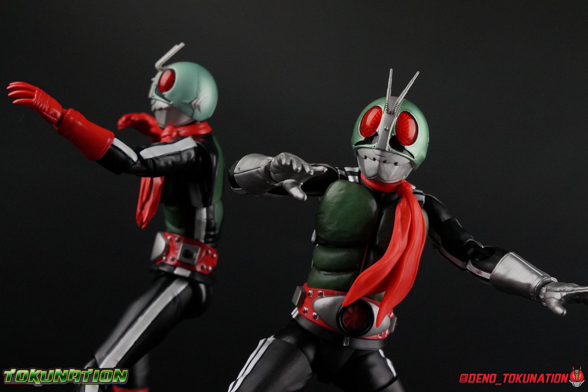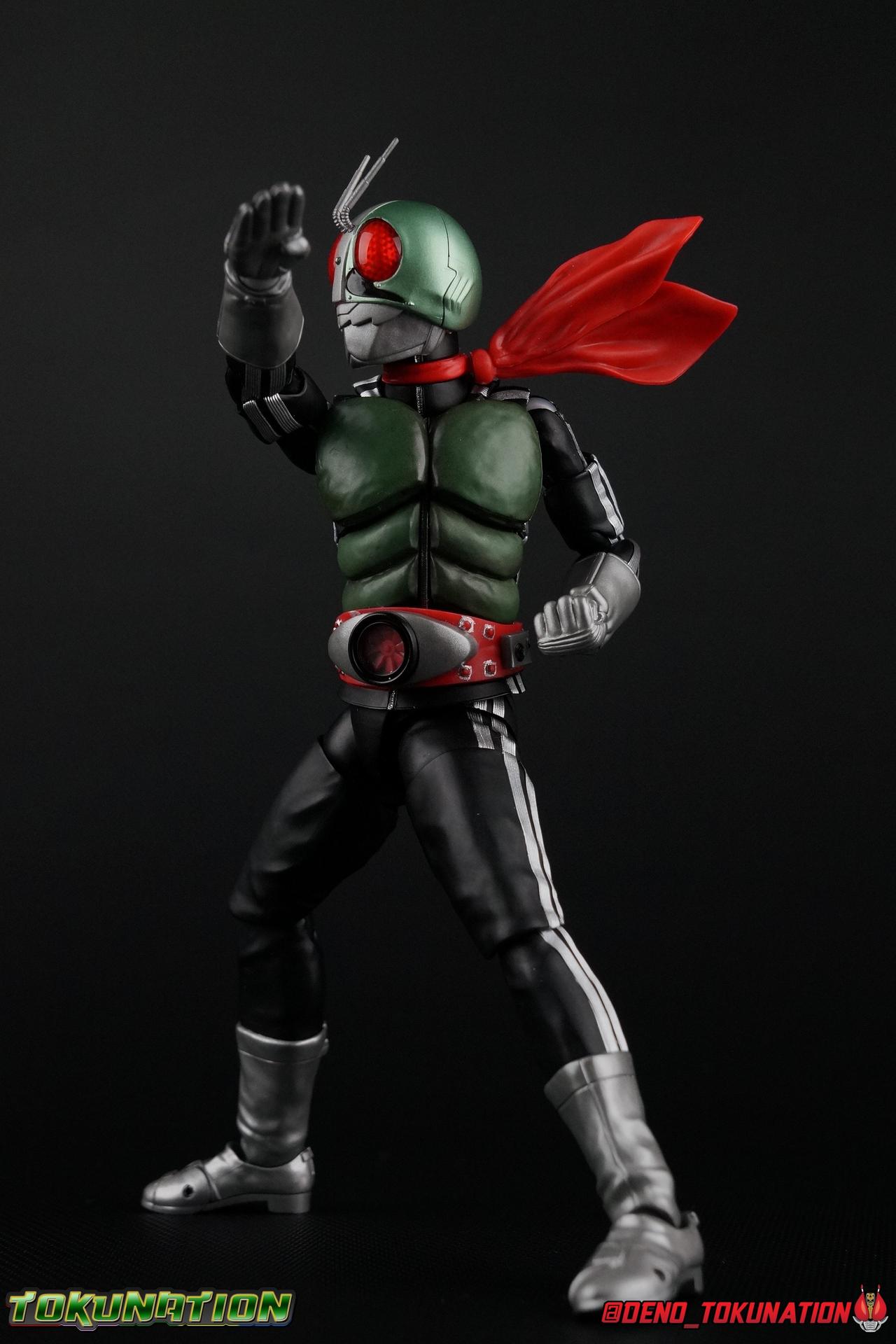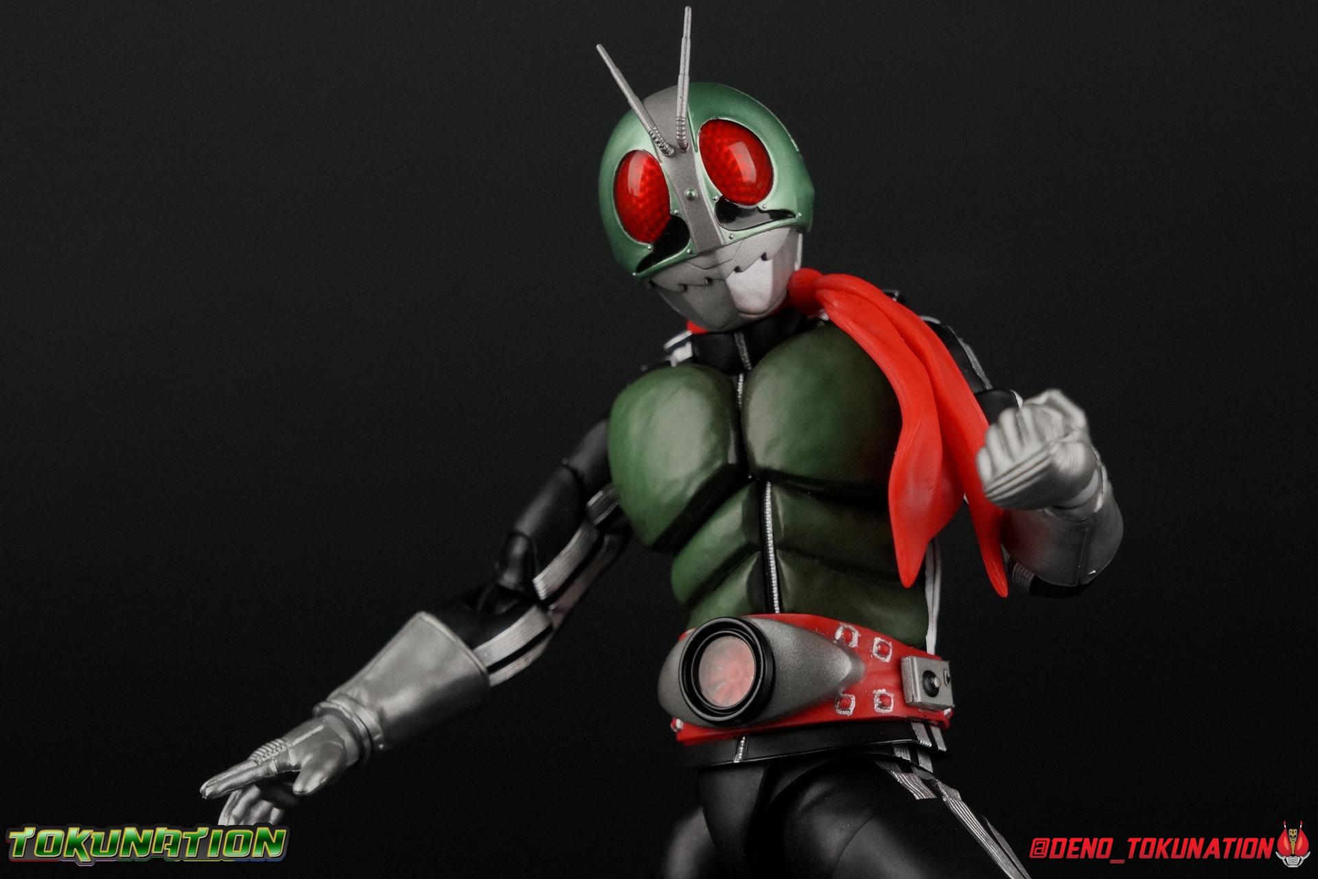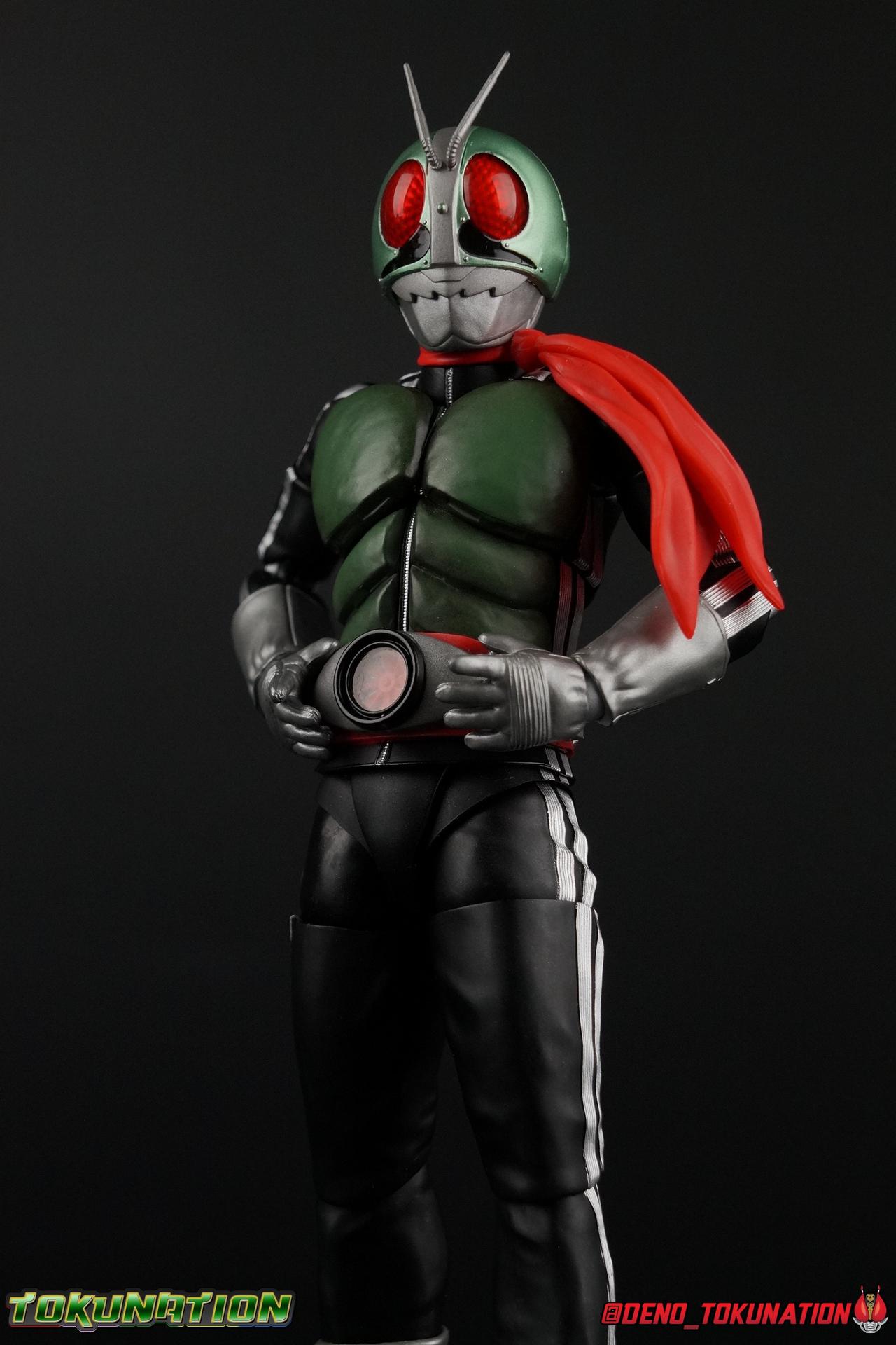 Following up from our recent look at S.H. Figuarts Takeshi Hongo, we have the most iconic riders' other new figure as well! Shinkocchou Seihou as a toyline has sought out the perfect balance of functional figures with as close to 100% screen accuracy as possible. The results frankly speak for themselves, from the first figure releases (Kabuto) to the most recent one before this (Skull), this line has continued to knock things out of the park. So how well has it worked for the original Kamen Rider? Very! Read below for our full review of S.H. Figuarts Shinkocchou Seihou Kamen Rider 1! ** This gallery is spread across the first 3 posts of this thread. Be sure to check them all out! Packaging That standard slipcover packaging of Shinkocchou Seihou returns again. You've seen it numerous times before. Rider 1's artwork looks really sharp on it. But of course there's nothing really new offered here. Business as usual. Main Figure What a time to be a collector! It's been just over 10 years since the S.H. figuarts toyline came into being. What began with figures based on the then current Kamen Rider The First film, has led us to this point. It's appropriate that 10 years later all the advances of this toyline are embodied in the releases we're looking at today. Those he's had numerous S.H. figuarts releases in one form or another over the last 10 years, finally the original Kamen Rider 1 gets the premium renewal Shinkocchou Seihou treatment! Released at the very end of 2017, Seihou Rider 1 is easily one of the best releases of last year. It's also easily the best figure form representation of this character we've ever had. This brand new mold works to as closely as possible recreate the original suit it's based on, right down to the most minute of details. This figure is of course based on the "Shin" Rider 1 design introduced later into the original TV series run. Avid fans will of course remember the classic green and pink eyes look of the original suit as well as the darker Sakurajima Rider 1 suits used later on. But the Shin design is the one most often associated with Takeshi Hongo, and it's become his easily most iconic look. It's the form he's taken in every single appearance he's made since it's debut in the original series for the last 40+ years save for the 2016 Movie design. So it's only appropriate that this design be the one to receive the Seihou treatment first. Similarly the upcoming Seihou Rider 2 release is based on his equally iconic & standard Shin Rider 2 design. Now, what's so special about this release? Well if you've handled any of the multiple prior Rider 1 figuarts you've undoubtedly noticed by now that those figures don't stack up to many modern releases now. They tend to be short, disproportionate, and use outdated articulation design. Seihou Rider 1 tosses all that out the window. Starting with the legs, we have a really remarkable design choice even just for the feet. A nice free balljoint is used for the ankle so you don't have much obstructing it, but it also has one of the best toe bends I've ever seen on a figuarts. That's going both directions! It just provides really stable balance. Similarly to other Seihous the legs are also expertly crafted. Akin to W or Skull, Rider 1 has a sort of receding knee joint that's hidden under the knee itself and expands as you move it. Making things look really natural and proportionate. The hips are a really interesting combinations of new ideas. Some of which I can see were borrowed from recent renewals of Super Saiyan Vegeta & Super Saiyan 3 Goku. Both of these figures featured a new hip "mesh" design. An overlay of parts that move over the hip to keep the design unbroken while posing. Rider 1 has a very similar system in place, though it can look odd from extreme angles. They aren't really impacted by his waist section at all either which is a huge relief. This figure needs to be every bit as dynamic as the real character. The legs as a whole also feature great molded in fabric style details to really sell how accurate the figure is to the actual suit. It's been a hallmark of this toyline and I love it. Moving up, we have the latest version of the Typhoon rider belt. This is probably the best detailed and most accurate version of it done at this scale so far. Mine has a few silver paint splotches that you really only notice upon a close inspection though. Now the torso is by far the thing that sets this release apart most. Modern Rider 1 figures have very often taken his classic design and streamlined bits of it to be more modern, as in they look less like painted styrofoam and rubber. Thankfully Seihou Rider 1 embraces the original design. This couldn't be more evident than with the green padding on his chest and stomach. Right down to every rough imperfection, concave are, and ripple, the suit has been properly recreated for the first time. And it manages to look better than the actual suit still. I will warn you to be careful as on my copy the waist joint and floating torso joints are both very very tight and require a bit of force to move. But the design of the upper body is just so visually pleasing that I'm willing to forgo that criticism. The arms are likewise greatly improved. Thankfully to a sunken in shoulder joint that doesn't protrude from the body, the shoulders are free to fully rotate 180 degrees, be fully outstretched and arched back, hell you can even completely invert the joint and turn the arm around backwards. It's an absolutely killer design. The wonderful bicep swivels return as well! Something that should be standard on every last figuart in my opinion. The elbows work perfectly and the balljoints for the hands are extended just far enough away from the wrist to free them up for dynamic posing as well. My only gripe with the arms is that they do impact the torso somewhat, and can't lay totally flat against his ribs. But that's a small price to pay for this level of functionality. Before we tackle the he