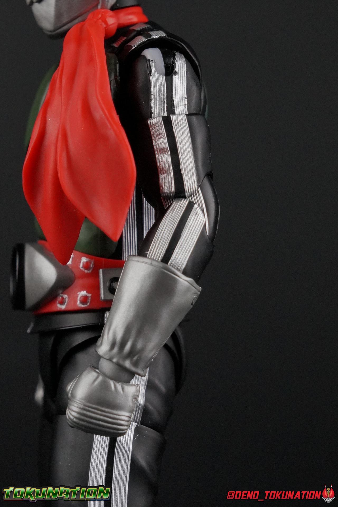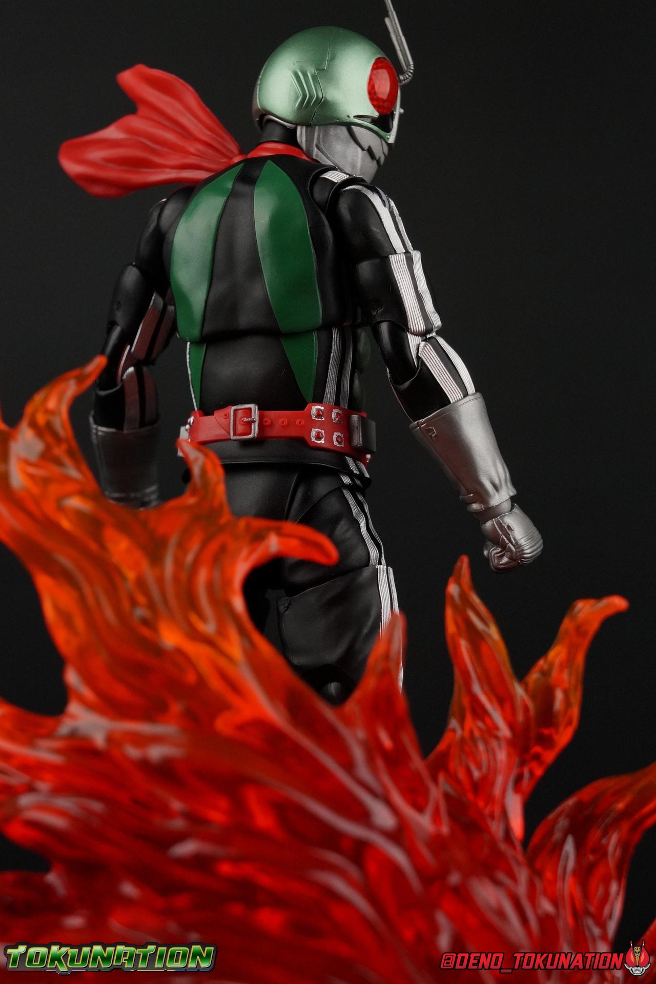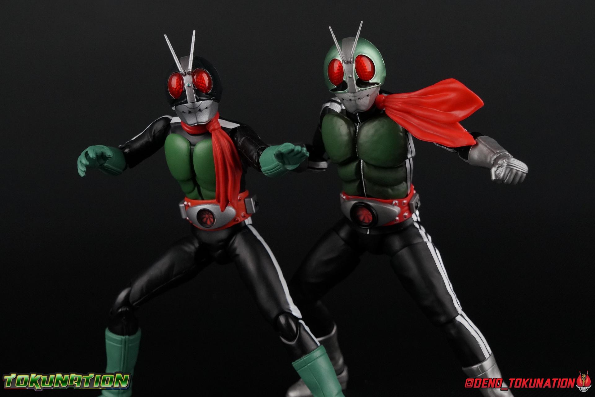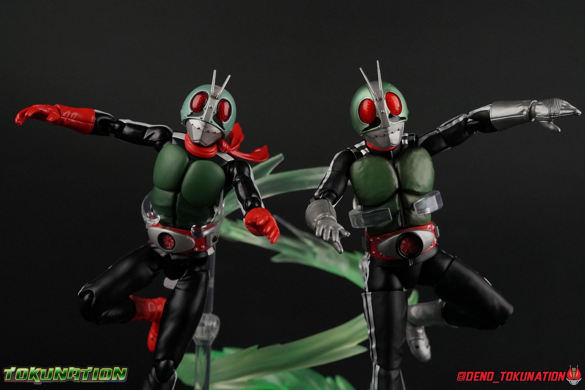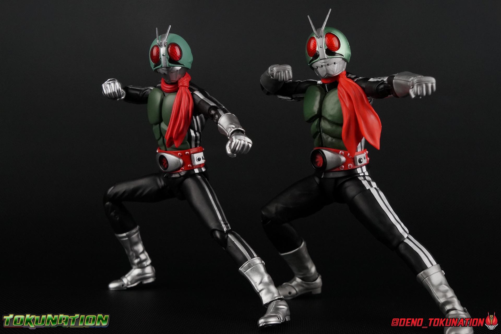 Following up from our recent look at S.H. Figuarts Takeshi Hongo, we have the most iconic riders' other new figure as well! Shinkocchou Seihou as a toyline has sought out the perfect balance of functional figures with as close to 100% screen accuracy as possible. The results frankly speak for themselves, from the first figure releases (Kabuto) to the most recent one before this (Skull), this line has continued to knock things out of the park. So how well has it worked for the original Kamen Rider? Very! Read below for our full review of S.H. Figuarts Shinkocchou Seihou Kamen Rider 1! ** This gallery is spread across the first 3 posts of this thread. Be sure to check them all out! Packaging That standard slipcover packaging of Shinkocchou Seihou returns again. You've seen it numerous times before. Rider 1's artwork looks really sharp on it. But of course there's nothing really new offered here. Business as usual. Main Figure What a time to be a collector! It's been just over 10 years since the S.H. figuarts toyline came into being. What began with figures based on the then current Kamen Rider The First film, has led us to this point. It's appropriate that 10 years later all the advances of this toyline are embodied in the releases we're looking at today. Those he's had numerous S.H. figuarts releases in one form or another over the last 10 years, finally the original Kamen Rider 1 gets the premium renewal Shinkocchou Seihou treatment! Released at the very end of 2017, Seihou Rider 1 is easily one of the best releases of last year. It's also easily the best figure form representation of this character we've ever had. This brand new mold works to as closely as possible recreate the original suit it's based on, right down to the most minute of details. This figure is of course based on the "Shin" Rider 1 design introduced later into the original TV series run. Avid fans will of course remember the classic green and pink eyes look of the original suit as well as the darker Sakurajima Rider 1 suits used later on. But the Shin design is the one most often associated with Takeshi Hongo, and it's become his easily most iconic look. It's the form he's taken in every single appearance he's made since it's debut in the original series for the last 40+ years save for the 2016 Movie design. So it's only appropriate that this design be the one to receive the Seihou treatment first. Similarly the upcoming Seihou Rider 2 release is based on his equally iconic & standard Shin Rider 2 design. Now, what's so special about this release? Well if you've handled any of the multiple prior Rider 1 figuarts you've undoubtedly noticed by now that those figures don't stack up to many modern releases now. They tend to be short, disproportionate, and use outdated articulation design. Seihou Rider 1 tosses all that out the window. Starting with the legs, we have a really remarkable design choice even just for the feet. A nice free balljoint is used for the ankle so you don't have much obstructing it, but it also has one of the best toe bends I've ever seen on a figuarts. That's going both directions! It just provides really stable balance. Similarly to other Seihous the legs are also expertly crafted. Akin to W or Skull, Rider 1 has a sort of receding knee joint that's hidden under the knee itself and expands as you move it. Making things look really natural and proportionate. The hips are a really interesting combinations of new ideas. Some of which I can see were borrowed from recent renewals of Super Saiyan Vegeta & Super Saiyan 3 Goku. Both of these figures featured a new hip "mesh" design. An overlay of parts that move over the hip to keep the design unbroken while posing. Rider 1 has a very similar system in place, though it can look odd from extreme angles. They aren't really impacted by his waist section at all either which is a huge relief. This figure needs to be every bit as dynamic as the real character. The legs as a whole also feature great molded in fabric style details to really sell how accurate the figure is to the actual suit. It's been a hallmark of this toyline and I love it. Moving up, we have the latest version of the Typhoon rider belt. This is probably the best detailed and most accurate version of it done at this scale so far. Mine has a few silver paint splotches that you really only notice upon a close inspection though. Now the torso is by far the thing that sets this release apart most. Modern Rider 1 figures have very often taken his classic design and streamlined bits of it to be more modern, as in they look less like painted styrofoam and rubber. Thankfully Seihou Rider 1 embraces the original design. This couldn't be more evident than with the green padding on his chest and stomach. Right down to every rough imperfection, concave are, and ripple, the suit has been properly recreated for the first time. And it manages to look better than the actual suit still. I will warn you to be careful as on my copy the waist joint and floating torso joints are both very very tight and require a bit of force to move. But the design of the upper body is just so visually pleasing that I'm willing to forgo that criticism. The arms are likewise greatly improved. Thankfully to a sunken in shoulder joint that doesn't protrude from the body, the shoulders are free to fully rotate 180 degrees, be fully outstretched and arched back, hell you can even completely invert the joint and turn the arm around backwards. It's an absolutely killer design. The wonderful bicep swivels return as well! Something that should be standard on every last figuart in my opinion. The elbows work perfectly and the balljoints for the hands are extended just far enough away from the wrist to free them up for dynamic posing as well. My only gripe with the arms is that they do impact the torso somewhat, and can't lay totally flat against his ribs. But that's a small price to pay for this level of functionality. Before we tackle the he