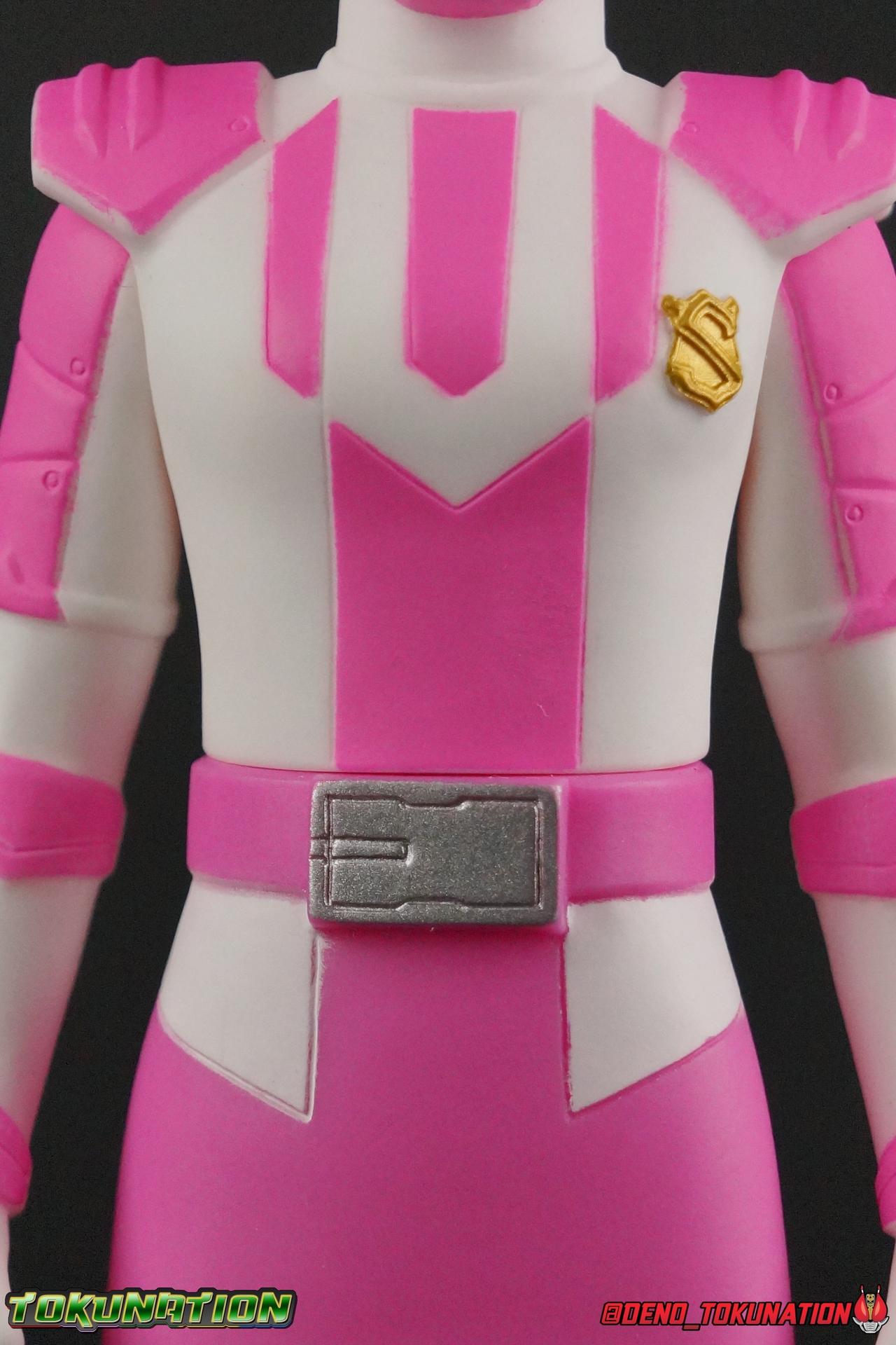 Kaitou Sentai Lupinrager VS Keisatsu Sentai Patranger has only just begun! Straight off, this show is already shaping up to be great action, good fun, and pure stylish. Last weekend's premiere episode left us all desperately wanting more. Of course another new episode will be airing this saturday and we can't wait. But we're also very excited because the first round of merchandise has finally been released for the series as well! Today our gallery spotlight on the show begins with a look at 3 of the first Sentai Hero Collection Vinyl releases for the series. Patren 1, Patren 2, & Patren 3! Packaging The packaging for releases like these boils down to a mere tag hanging out of their back. Each features a nice portrait of the characters, the plastic holding them to the figures goes through a very tiny hole just below the neck line. You can either yank it right out of the back, no harm, or cut it and get the piece left on the inside back out by taking the figure apart. As soft vinyl this is very easy to do. Main Figures Using their own VS Changers, three members of Global Special Police Organization take the form of Keisatsu Sentai Patranger in their quest to defeat the Gangler. Along the way they'll be doing their best to bring in the notorious Lupinrangers as well. Kicking off the toyline for this series we've opted to take a look at the Sentai Hero Collection Vinyls for Patranger first. We'll be taking a look Lupinranger next week as well. For starters though, I haven't typically reviewed vinyls much in my time on this site, but I have to say I was very very won over by the designs from this show. Both teams in fact. And seeing as poseable figures of these teams (other than Yu-Do Candy Toys) won't likely be made, I wanted to have some representation of them. So, where to start? Well in short there's not a lot to this review. Hero Collection Vinyls, Sofubis, Soft Vinyls in general are either non-articulated or sparsely articulated. These 3 are the same as well. Each of the Patrangers has a waist joint that can rotate side to side, in part just thanks to the design process that creates them. Soft Vinyls like this are hollow and molded in two separate pieces. The lower half and upper half of the body are separate. Each vinyl also has shoulder joints to allow you to rotate the arms up into roughly 90 degree angles on each figure. That's the extent of the moving parts but that's totally the norm for vinyls in this price range. Patren 1 & Patren 2 (Ichigo & Nigo if you prefer) are the exact same mold. It's always ideal to be able to reuse a mold as many times as possible with few to no alterations in this line. Bandai Japan makes easy money like this. So Patren 1 & 2 being nigh identical works to their advantage. The only real difference between the two is a 'slight' alteration to 2's visor. Patren 3 however is a totally different mold, and doesn't even share molding with the Lupinrangers. So unless another female member of the team is added at a later date I don't think we'll be seeing it used again. Basically this vinyl is about a head shorter than the other two and obviously a bit smaller body overall. The skirt piece is molded into the thighs themselves so the leg separation ends at that point. Each of these vinyls is molded in their primary ranger color so everything else is additional paint work. So there are a number of small paint errors on each of them. Over spray, missed applications, what have you, but at this price point (900 yen list price) it's hard to split hairs on it. I am a bit disappointed that the bands on the legs and arms are only painted on the front side of each though. The designs are executed about as well as they can be for vinyls under $10 and feature a fair bit of molded detail I wouldn't have expected. Ankle & knee cuffs, belts, arm armor, GSPO badges, helmets. The molded details are great, the paint just misses the mark somewhat. Given what I paid plus shipping I'm fairly happy though. I'd recommend you go with SAL shipping for these though. Fnal Thoughts I get it, vinyls are not terribly exciting to everyone. But in some cases I'm willing to jump on them when there won't be another alternative. These things are static display pieces plain and simple. Liking the Patranger designs is what propelled me to get them, and even though it's only marginally different, I also have Patren Ugo on order. Sentai Hero Collection vinyls hit that sweet spot of affordability for me to have a representation of a character in my collection. Obviously they don't scale with figuarts or anything like that, but they get the job done on a budget. Next time, Kaitou Change!