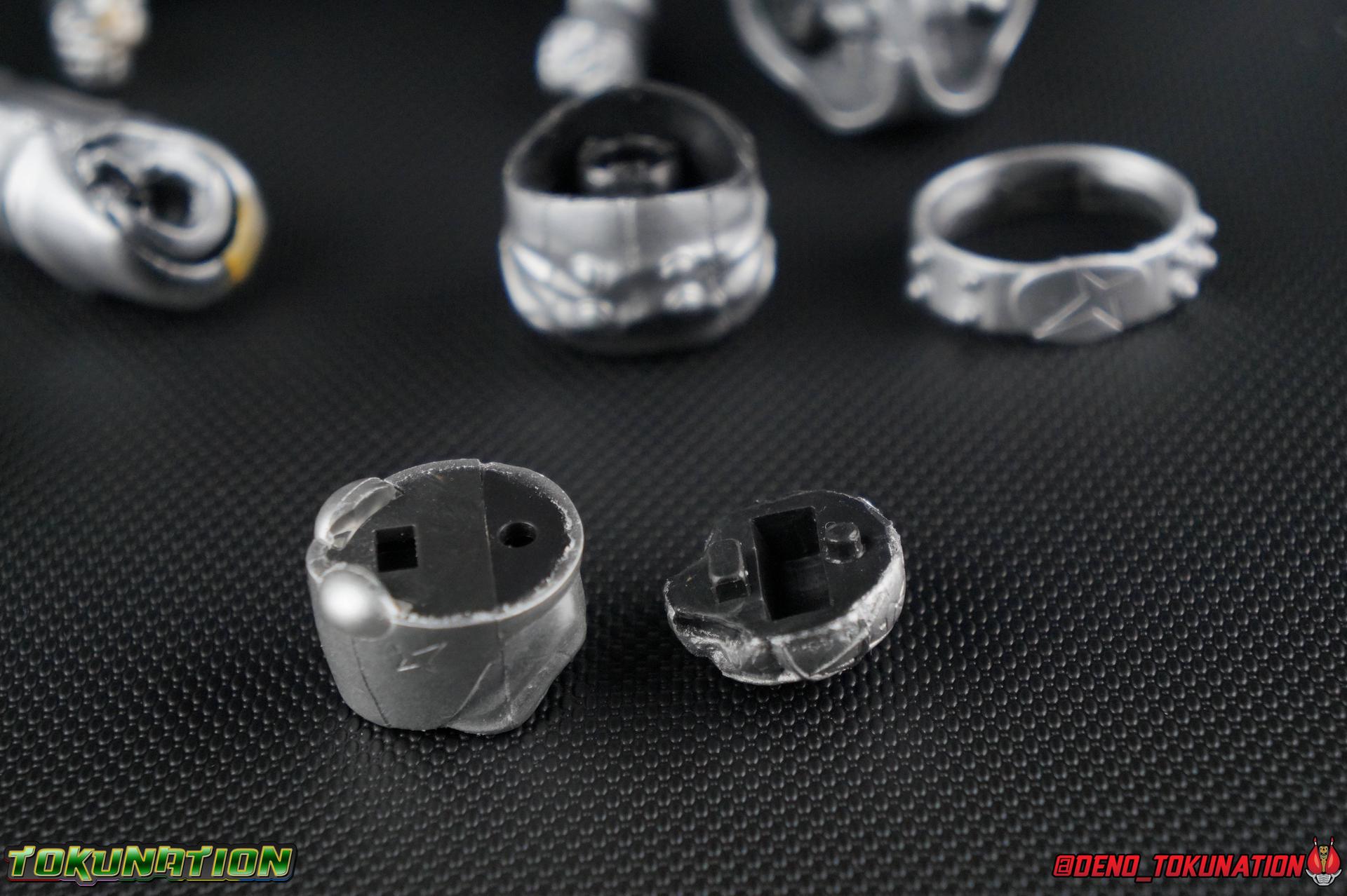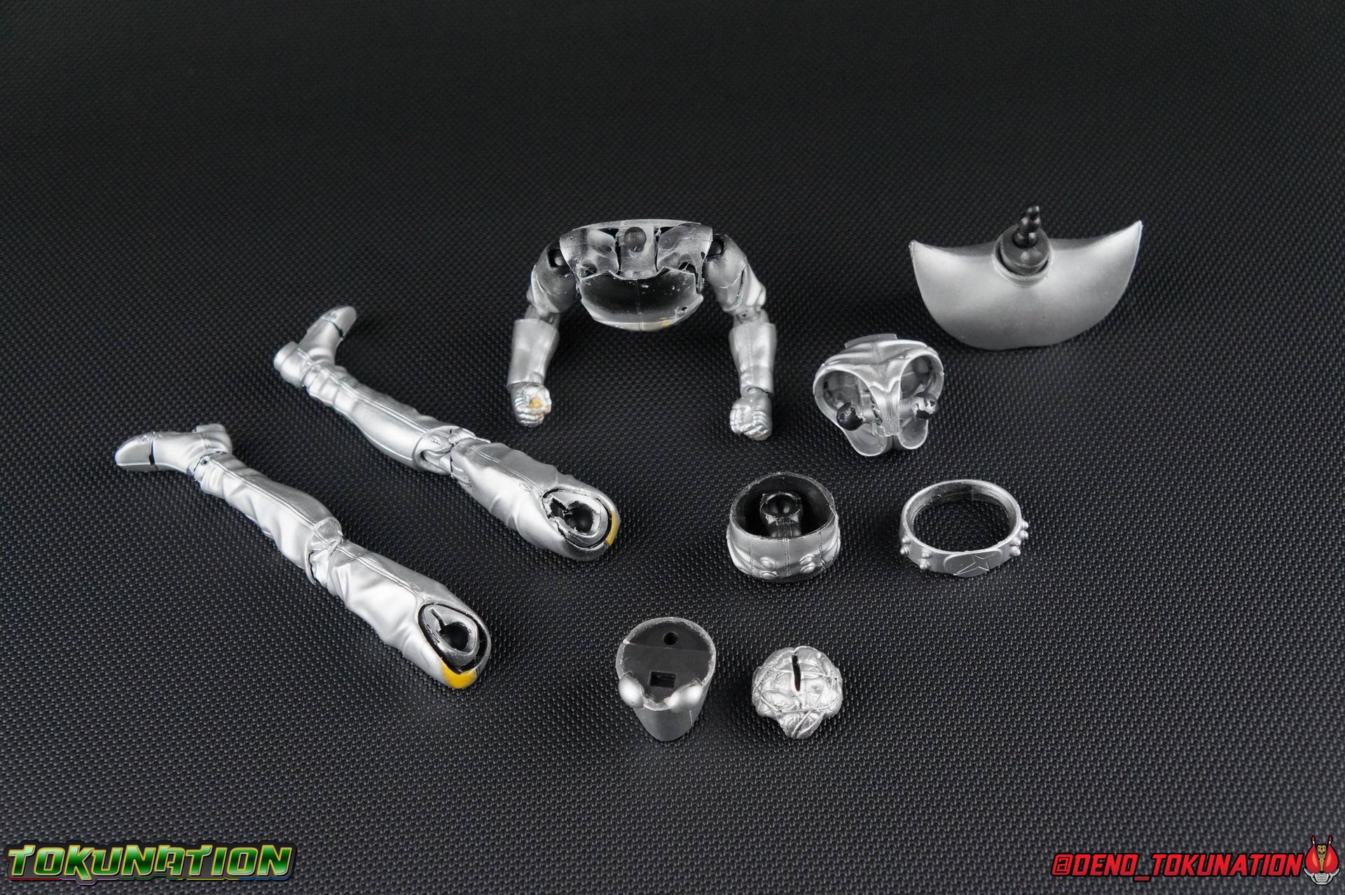 I've had the opportunity to own and review some really rare and unique pieces for this site over the last 7 years. Conventions exclusives, unique limited run releases, even special Lucky Draws. This time though, I have the incredible opportunity to share with you all a look inside the production process that results in a retail product. I've recently come into possession of a Pre-Production Factory Sample of the S.H. Figuarts Hakaider Squad! And I'm here to share a full breakdown of what this figure is and how you can tell. For starters, here's a refresher on the 5 uses of the Hakaider mold we've seen before: - Hakaider - Gill Hakaider - Hakaider Squad (Red, Blue, Silver) With that out of the way, what exactly do I mean when using the terms Pre-Production Sample or Test Shot? The terms Prototype & Mock-Up also get tossed around for things like this, and are probably applicable here. Essentially in this case what we're talking about is a figure that's nearly finalized. It's something that's gone nearly entirely through the production cycle and is very close to going into full scale production at a factory level. Thanks to the Hakaider figuarts that came before them though, most of the pre-production was complete for the Hakaider Squad already. The original S.H. Figuarts Hakaider & subsequent Gill Hakaider release had already gone through this process. To create the three Squad members meant minor revisions to the mold, mostly paint operations, but yes a few small molded details as well. Basically this figure is the original Hakaider version of the mold, without the additions made for the Gill release. And I already know what you're thinking, "someone just painted an old Hakaider silver". At first glance, I would have agreed with you. But upon breaking this figure down to it's components and examining the paint in hand. This simply isn't the case. Here's why. Yes, the entire figure has been painted silver. And while it seems scattershot and lazy at first, this isn't a case where someone just took a can of paint and sprayed this figure. This is a factory quality application of paint, even if it is inconsistent. Compared to the actual Silver Hakaider of the Hakaider Squad the paint has the same finish to it. Now you ask, "why paint it all silver then?" Also a great question. I'm sure by now you've noticed the exposed black plastic underneath some of the paint, on the joints that are exposed when posing, or even yellow paint apps on the thighs and torso breaking through. Well, this silver paint was used (obviously unsuccessfully) as a theft deterrent. It's common practice for samples of this nature to be painted in a similar way to discourage theft. The entire figure has been painted that way, even on top of it's joints. When you disassemble the figure to it's base parts you can see quite clearly the areas where the factory application didn't reach. But the paint is applied in a smooth even way that shows it was done with some intention at the very least. The yellow paint apps you see peeking through indeed come from this being a standard Hakaider used for mock-up purposes for the Squad release. Any new parts crafted for the 3-pack would have been fitted to the original figure first to test comparability. So the yellow from the hips and even fists comes through still. Interestingly you can even see on his abs where black plastic is coming through thanks to how the belt covered those parts during the paint process. This is really telling because the studs on his ab section would normally have silver paint in the final product anyway. In this case though this pre-production sample has these studs in unpainted black plastic. Showing there was likely a small revision to that section at this point. It's quite common for pre-production samples to have finalized factory paint operations applied, or even be hand painted as we often see at Tamashii Nations events. Discerning which of these is the case for the yellow paint apps on this figure isn't possible. But it's clear this figure was mocked up with the intention of showing what the Hakaider Squad would look like, before it was painted silver. The biggest tell as to it's proto/mock-up nature is the small hole drilled through the left section of the chest, just under his chest armor. This is a common feature of Tamashii Nations display prototypes whether they be at actual show events or even in the Akiba Showroom. We see them quite often. This is yet another theft deterrence tactic. It immediately marks a figure in a recognizable way that would usually keep it from exchanging hands. Think of it as the "not for sale" marking of a Figuart. Now as to how you can determine it's a later Hakaider Squad test shot, and not one for the original Hakaider or Gill. That's something you really have to look for and know what you're looking for to determine. In this case the initial giveaway is the arms. An area you likely wouldn't have noticed before now. The upper arm just above the bicep swivel on Hakaider & Gill features a yellow band marking that goes around the arm. This area is molded in and painted over. On this test shot however, what we have is a perfectly smooth surface. Something which is only shared by the three Hakaider Squad figuarts. Pointing to this being an original Hakaider with newly molded Squad biceps for mock-up purposes. While I'm on the arms it also appears as though Tamashii was possibly going to revise the fist size from the previous Hakaiders for the 3-pack release. The left fist is actually smaller than the right, both have partially exposed yellow paint apps on the fingers as well as the exact same design. It's an interesting quirk I didn't note until very far into my work with this figure. Finally, the aspect that really shows the true nature of this figure is the head. You'll undoubtedly notice that it's missing the brain cap. When I came into possession of this figure, no brain cap or any of the other accessories that would normall