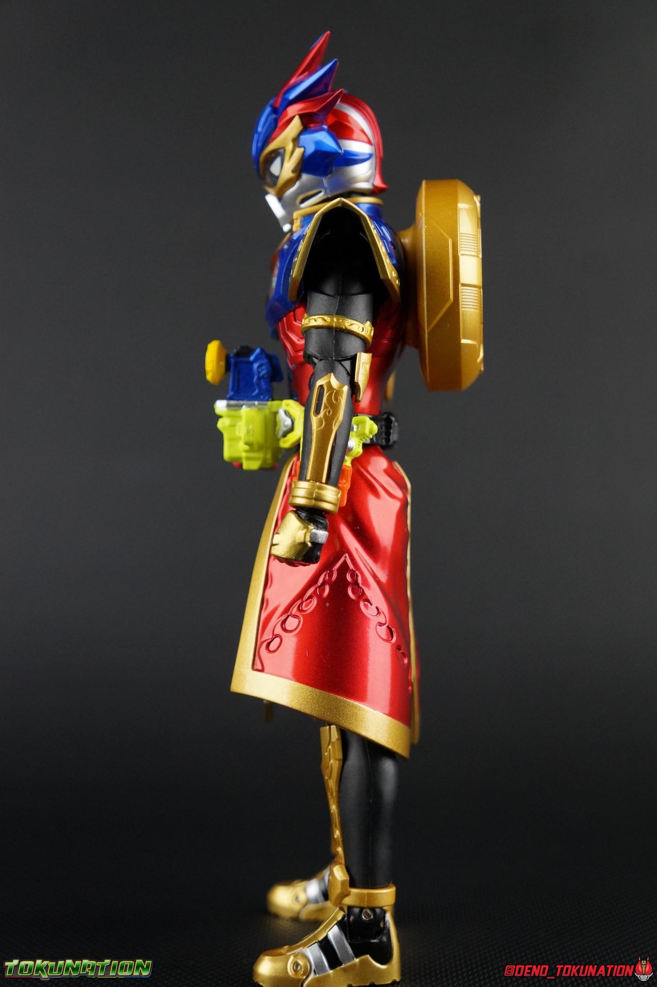 The Genius Gamer M or rather, the Bugster Parad whom'd given Emu those skills for years would eventually become Kamen Rider Para-DX. Using the Gashat Gear Dual he could alternate between two powerful Level 50 forms. In an attempt to stay relevant in Emu's life and surpass him, Parad would even go so far as to have himself be reprogrammed by Maximum Mighty X. This procedure allowed him to finally use a Gamer Driver like a human, in doing so giving him access to his most powerful form. Now we look at this pinnacle of strength & skill in our gallery of S.H. Figuarts Kamen rider Para-DX Perfect Knockout Gamer Level 99! Packaging As with previous releases, Para-DX Level 99's box is themed very similarly to the rest of the line. With it's bright, loud, packaging it's right at home with the rest of the Ex-Aid lineup. With no packaging window as all web exclusives are these days. As with the others the colors really pop and I like the character portrait on the front. And I'm always down for red/blue two-tone. That's about all there is to say on this one once again. Main Figure I'll be honest, it took me a long time to really care for Parad's Level 99 form in show. The design just did not work for me for some time. It felt very at odds with itself in my mind. But as the show continued it really became easier for me to digest the suit and I eventually really grew to like it overall. The figure won me over straight out of the box thanks to this. Para-DX Level 99 has a really strong and powerful sculpt that definitely showcases it's high level nature. This is a form that commands attention. And thanks to the 3-piece poseable skirt armor the figure can assume some really nice wide angled stances that are filled out a bit from these parts. Something about them helps contribute to the overall look of the figure and really bulks the lower body up quite nicely. Even if the legs themselves are still basically the Ex-Aid ones we've come to know so well, minor flaws and all, the whole package really works. And I absolutely LOVE the engraved puzzle piece design on the skirt. It's just top notch gorgeous as is the section on his abs. As with previous releases, the Gamer Driver is as always my favorite thing about these figures. This entire device is really intricately detailed for something at this scale. The Driver handle can still flip shut. Changes to this release include a new read out on the driver that pairs with this form. I'd never noticed before but it seems that the image is of Para-DX's Perfect Puzzle form. There's also the addition of the "dummy" Gashat Gear Dual, which is removable and compatible with all Gamer Drivers and double slotted Gashacon weapons. You can insert it into any other Gamer Driver with two open slots, much in the same way as Mighty Brothers XX or Snipe Level 50. At this scale I'm really impressed by the artwork on the front of the Gashat Gear Dual, it's a really good representation of the real deal. The Gashat Holster to the left of the Driver is empty. The upper body of the figure has a lot going on. Particularly on Parad's back. This is where the large Dial representing the Gashat Gear Dual sits. While pretty large this part doesn't detract from the design or hinder Parad's articulation. The chest detailing on the figure is also quite nice. As most always seems to be the case for Ex-Aid Riders, Para-DX has a nice crisp clear Rider Gauge in his chest as well. Honestly there's just a ton of great detailing on this fella. There's a lot of ornate engraving style details on the armor. The puzzle pieces I mentioned above are the best, but I love the sort of gold engraving done on the legs arms and shoulder pads. The shoulder pads while I'm on them, are a bit of a bother. The keep the figure from fully lifting his arms up perpendicular to the body. You can always rotate the shoulders back and angle things out as you need, but I'm always bothered when figures can't fully extend their arms out to the sides. That brings us to head, where the biggest fault of this release lies. Unfortunately the head was manufactured pretty inaccurately. The eyes within the visor are a bit misshapen compared to the actual show prop, but the bigger issue is their placement. They're supposed to touch the top edge of the visor and come down from there. Instead the eyes are almost centered within the visor. The look is both very off-putting and rather disappointing. The paint work on the rest of the helmet is brilliant but the issue with the eyes is just so irksome that it's difficult to enjoy it beyond that. The flared out alternating "hair" is very well done and definitely makes Para-DX seem just a 'tad' bit like a Yu-Gi-Oh character. Accessories Para-DX comes with pretty much all he really could. Even if it feels a bit on the lite side. 3 - Sets of hands. 2 splayed open hands, two more relaxed open hands, and two weapon holding hands. Nothing unique to speak of but enough hands to get the job done in most cases. 1 - Gashacon Parabladegun. This strange two form weapon has never felt like nearly as intuitive of a design as the Gashacon Breaker to me. And it feels just a bit awkward in toy form as well. It's detailed quite nicely so it at least looks good in that respect. But I almost do feel it's a little over-sized, maybe? The grip is just a hint too thick as well. It doesn't fit quite as well in Parad's hand as I'd like. To switch between the Ax & Gun modes you just rotate the blade back and forth. It's a little bit loose though. There's also a slot to accommodate any double sized Gashat to replicate a Critical Finish. I would really really hope that at some point in the future, an accurate head would be included with another Ex-Aid figuart, in much the same way that the original Accel figuart eventually got a new head with Booster. Para-DX's head is just kind of unforgivably off and we need a replacement for it ASAP. Toss it in with Perfect Puzzle or Knockout Fighter when and if those come out. Somethi