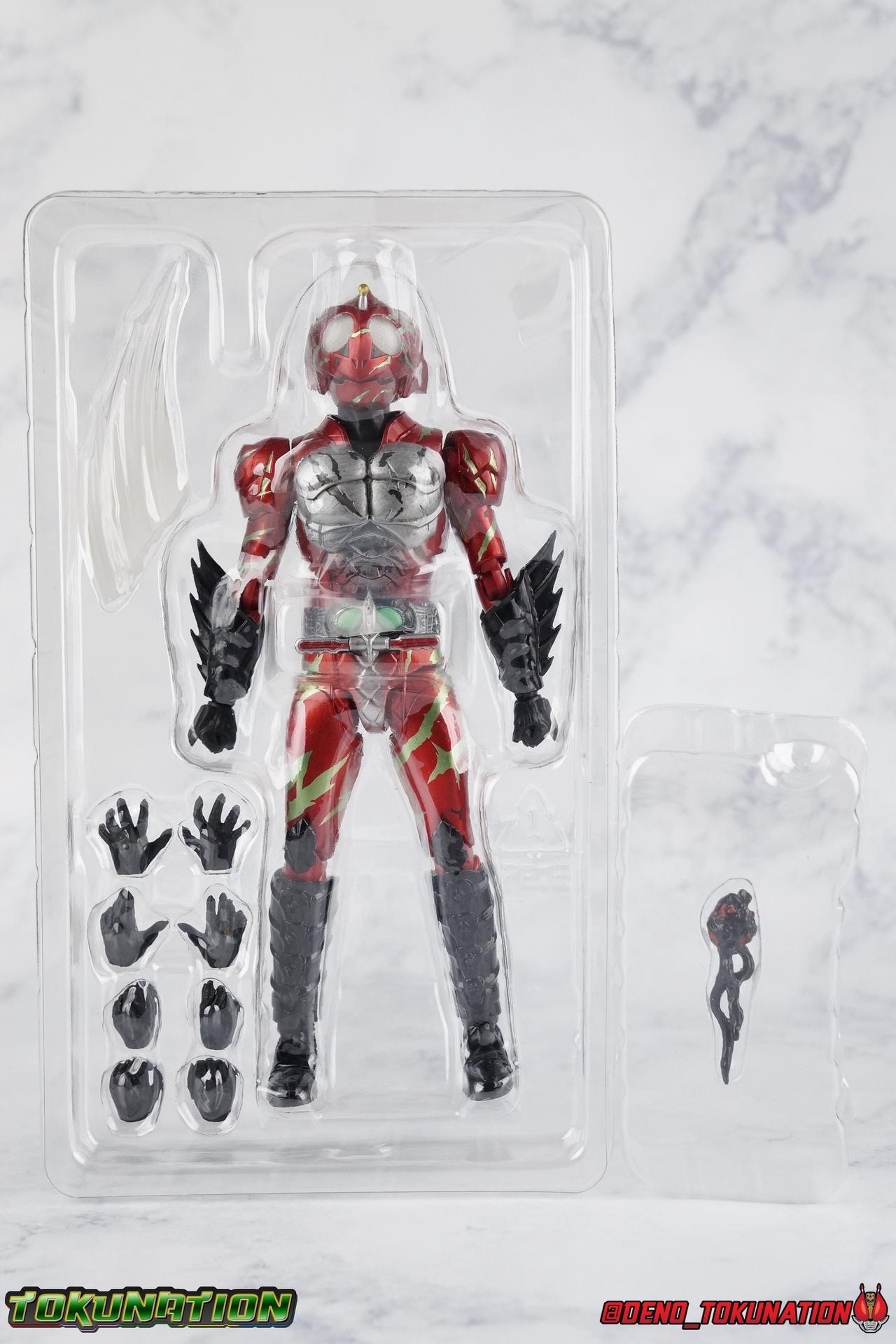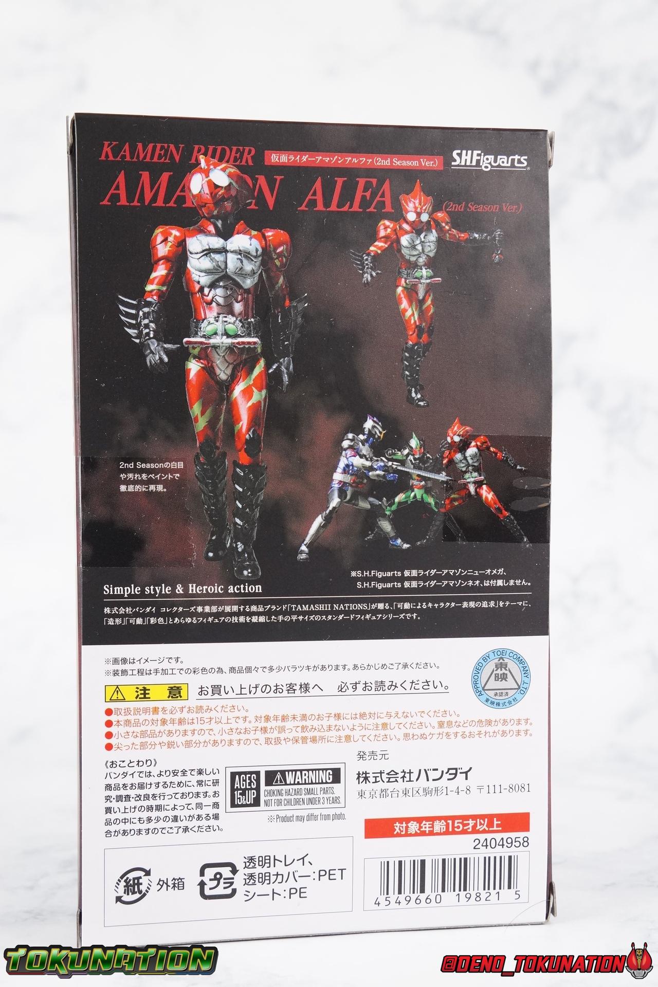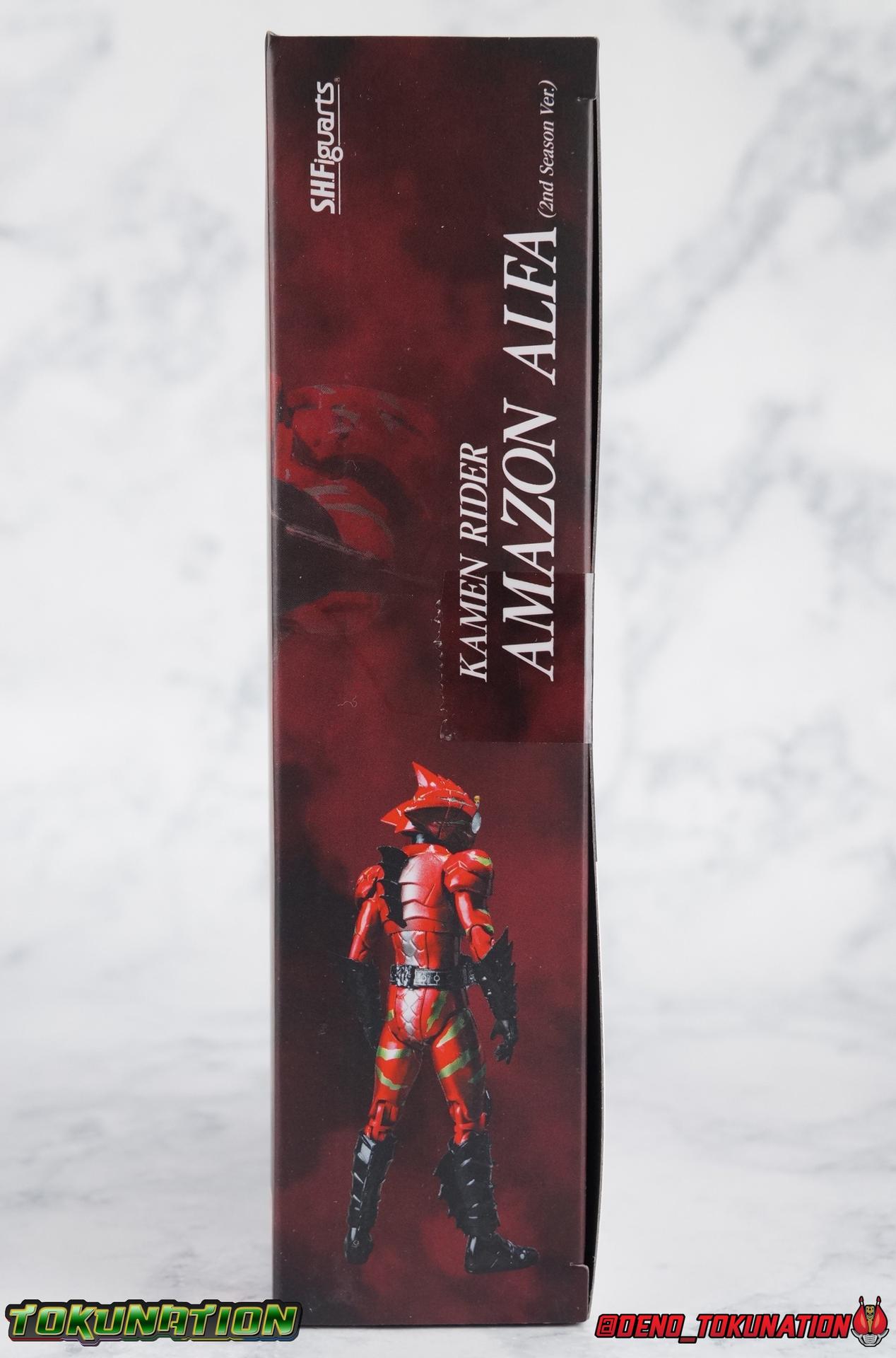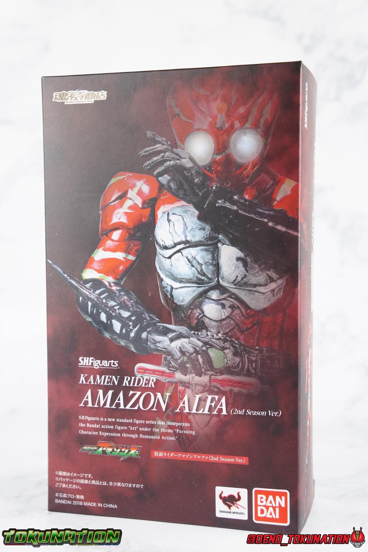 As we approach the theatrical release of the hotly anticipated Kamen Rider Amazons film we're back to take a look at the latest, and currently last, release for this series. S.H. Figuarts Kamen Rider Amazon Alpha (2nd Season Ver.) represents Jin Takeyama's more broken form after years of battle with Haruka. Badly scarred, and now blind, Alpha is a wild animal with the sole purpose of destroying every Amazon that crosses his path. Including his son, Chihiro. Packaging Season 2 Alpha comes in much the same style of box we've come to know from the Amazons line up. Though in particular I really love the shot they've used for the front facing character portrait this time. The figure and accessories are mostly packed in one tray identical to the original Alpha releases. A small additional tray that fits under the main one is included to house the Amazon Heart. Main Figure This portion consists of text largely taken from my review of the original Amazon Alpha release. This is a physically identical figure just with a few new paint apps for me to gush about. If you've checked out that review from last year then you mostly know what to expect. Amazon Alpha is a design that more closely resembles the original Showa Amazon, while Omega had a similar color scheme. It's clear though that Alpha has always been meant to be the more direct homage. In fact, specifically, Alpha is based on the S.I.C. Hero Saga exclusive form of Pre-Amazon. As for the figure itself, Alpha (as with any Amazons release thus far) is just a solid release. I do still have some issues with Alpha's leg design though. Sadly Alpha has some weirdly stunted ankles that can't quite bend back. The very tip of his heel points upward and impacts the fins on the back of his legs, making it difficult to balance him on occasion. The hips do feel a bit more free on this Season 2 version than the original release however. Where Omega looked like he was wearing a diaper but had functional legs, Alpha is visually better looking but his hips do still impact the waist a little too soon to be truly dynamic. The Amazons Driver is once again gorgeous with this release. The paint wash applied to the Season 2 Version of the Driver gets it a little closer to the used and scraped look it has in show. It approximates that worn damage but does miss the mark a little. The right grip on the driver is removable like Omega's, though Alpha includes no Battler Grip weapons. When you get to the torso you'll begin to see some significant additional paint apps that really make all the difference for the Season 2 version. The torso overall is dark with a black tinge painted over the silver. The scars molded into the chest have also had a deep paint wash applied to bring out all of their edges and show that Jin has suffered some terrible injuries in the years since season 1. In his first Season 2 appearance Jin is also particularly savage. Far more so than he'd even been before. He is literally bathed in Amazon blood when he defeats one. The figure has what at first seems to be a random application of dark black paint in various areas that on closer inspection is clearly intentional. This figure is blood-splattered in Amazons Blood. A small number of these blood stains are present on the legs and arms as well, but the majority of the rest are present on Alpha's head. Alphas' Arms are designed a bit better than Omega's in my opinion as well. Omega had this pesky habit of his shoulder pads popping off when you stretched the arm out too far, and they were on a friction tab that moved so getting them back was difficult. Alpha's shoulder pads are on ball joints making matters much more manageable. You get the same great range out of the elbows, though the wrists are a bit limited because the balljoint sits a tad too deep in the arm. Finally, Amazon Alpha's head is just spot on. I loved the bright green eyes of the original release, but this go around the compound eyes are now pale white. While that seems like an odd way to represent an injury, it goes back to a flashback battle Jin & Haruka had between seasons in which Haruka's Violent Slash destroyed Jin's vision. This blindness is also an homage to a brief stint from the original Showa Amazon television series, when Amazon lost his own sight. These milky white eyes, combined with the Amazons Blood splatter give Season 2 Alpha a truly haunting look. For a straight up repaint, Alpha Season 2 Version is well worth it for the new paint apps alone. I would love to see battle damaged repaints like this, for Omega & Neo as well. Accessories The basic accessories with this release are identical to the original version" 4 - sets of hands. That's 2 types of open hands, and two sets of "holding things" hands that can be used for something I'm sure. But Alpha doesn't include any Battler Grip weapons, and doesn't ride a Jungraider in show. So really the holding hands are superfluous here. 1 - Violent Slash effect part. It clips right on over the forearm blades on either arm and can be a little snug. So just be careful when removing it. 1 - Amazons Heart. The only new accessory for this release, this morbid accessory goes well with the distinctly more savage Season 2 version of Jin. Taking into account this accessory, the blood splattered on this version of Jin is even more perfect. I really love this accessory, though it would make more sense for Jin to have ripped it out of a generic Amazon of either generation, one such figure doesn't exist. So for this galleries purposes, he's ripped it out of Chihiro. Final Thoughts Kamen Rider Amazons has been my jam for two years now. I've been thoroughly pleased with every release from it frankly. There are still several more things I'd love to see make it to market as well. Evolved Mole Amazon, Iyu/Crow, and in particular the new Neo Alpha from the upcoming movie. I'd love to have them all. And if getting things like that means I have to buy some minor repaints with a few new bells & whistl
