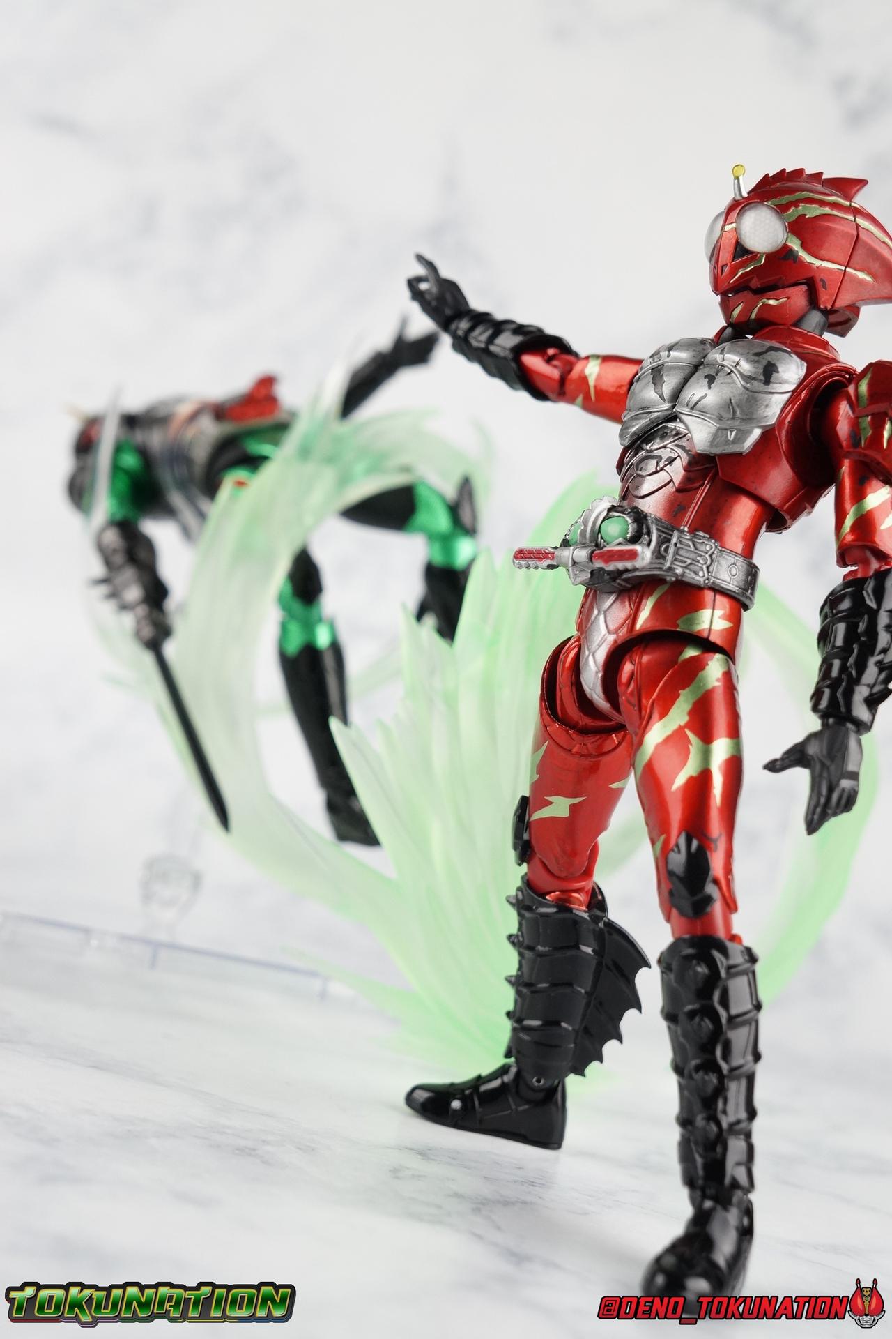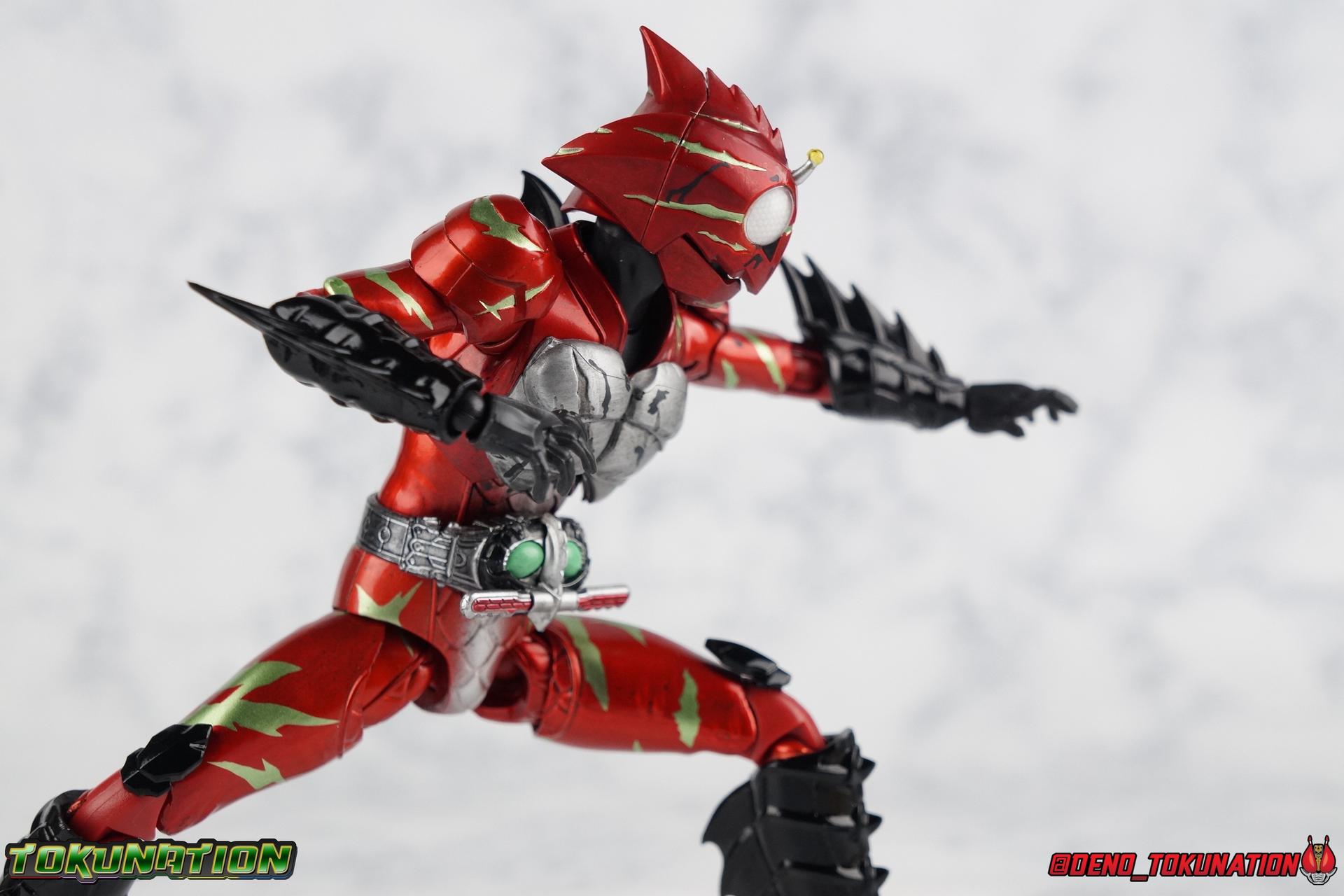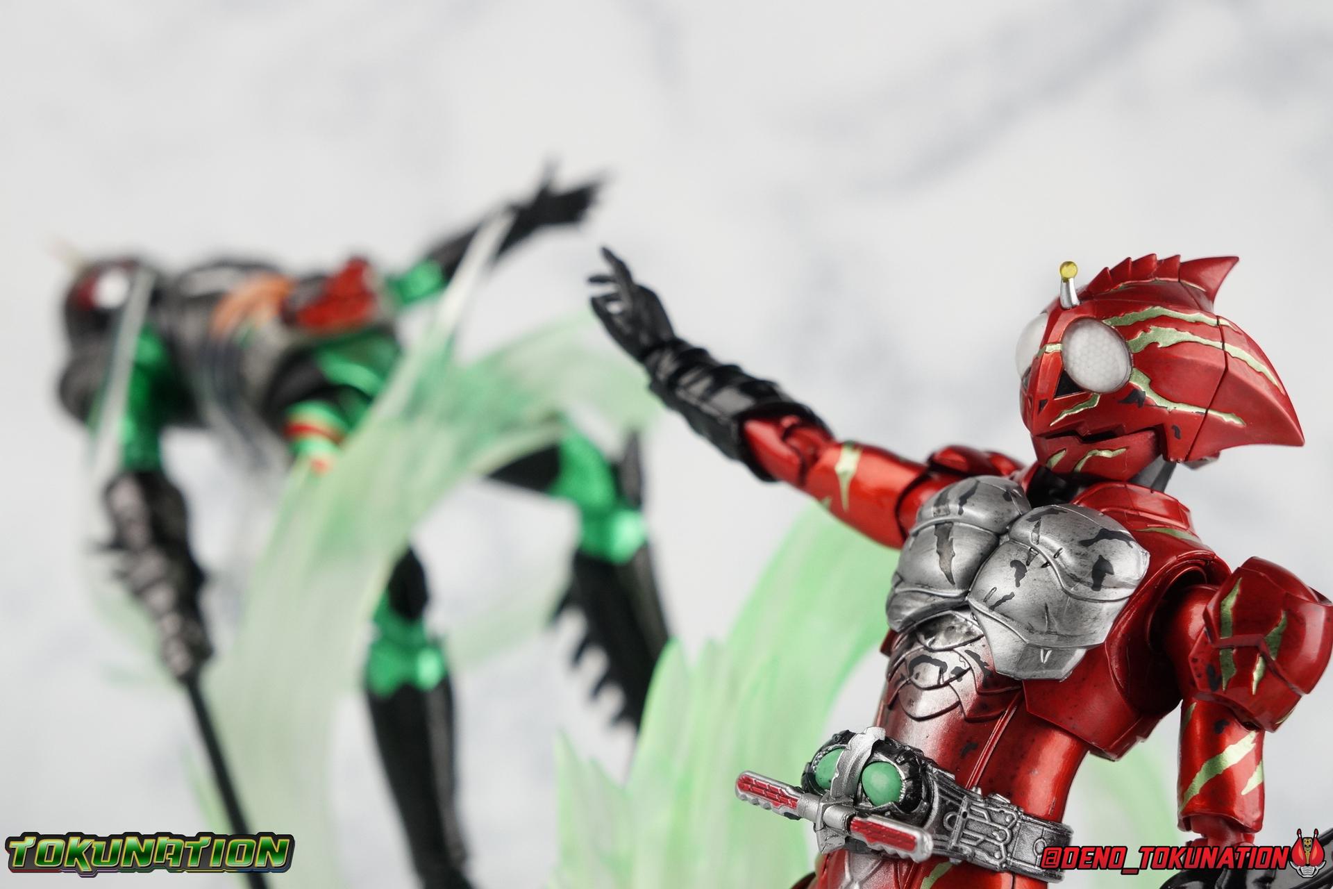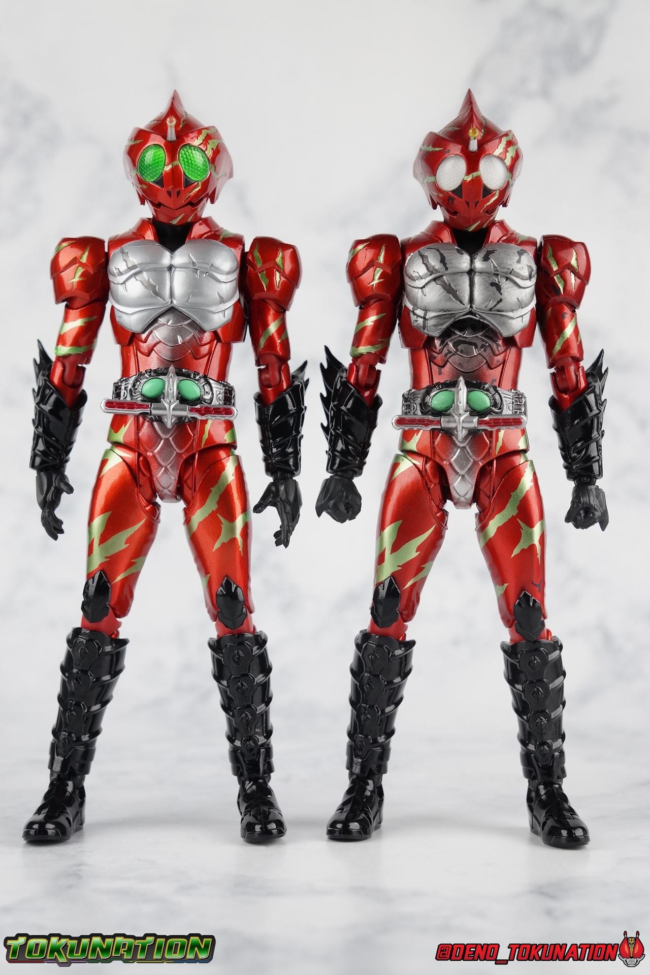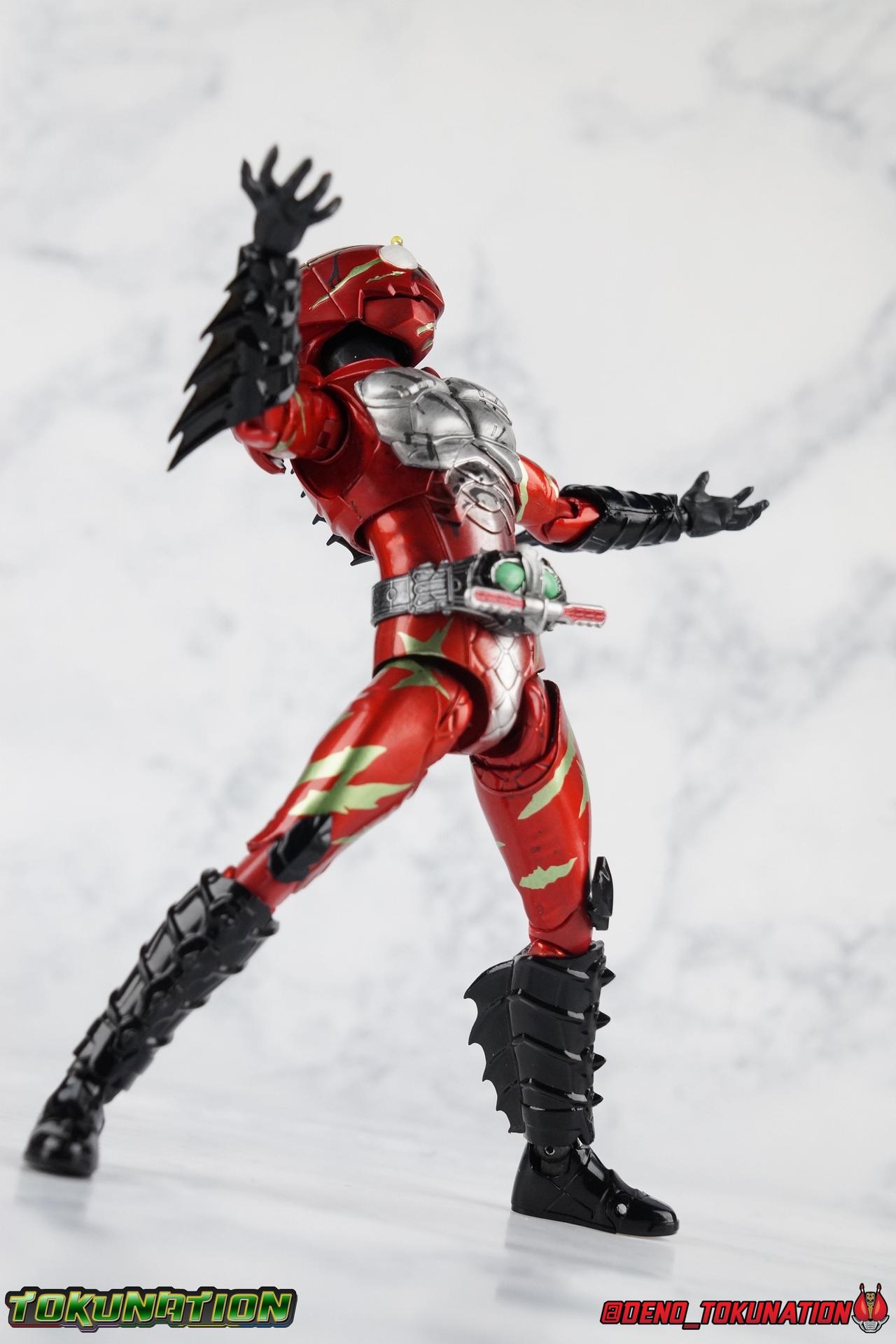 As we approach the theatrical release of the hotly anticipated Kamen Rider Amazons film we're back to take a look at the latest, and currently last, release for this series. S.H. Figuarts Kamen Rider Amazon Alpha (2nd Season Ver.) represents Jin Takeyama's more broken form after years of battle with Haruka. Badly scarred, and now blind, Alpha is a wild animal with the sole purpose of destroying every Amazon that crosses his path. Including his son, Chihiro. Packaging Season 2 Alpha comes in much the same style of box we've come to know from the Amazons line up. Though in particular I really love the shot they've used for the front facing character portrait this time. The figure and accessories are mostly packed in one tray identical to the original Alpha releases. A small additional tray that fits under the main one is included to house the Amazon Heart. Main Figure This portion consists of text largely taken from my review of the original Amazon Alpha release. This is a physically identical figure just with a few new paint apps for me to gush about. If you've checked out that review from last year then you mostly know what to expect. Amazon Alpha is a design that more closely resembles the original Showa Amazon, while Omega had a similar color scheme. It's clear though that Alpha has always been meant to be the more direct homage. In fact, specifically, Alpha is based on the S.I.C. Hero Saga exclusive form of Pre-Amazon. As for the figure itself, Alpha (as with any Amazons release thus far) is just a solid release. I do still have some issues with Alpha's leg design though. Sadly Alpha has some weirdly stunted ankles that can't quite bend back. The very tip of his heel points upward and impacts the fins on the back of his legs, making it difficult to balance him on occasion. The hips do feel a bit more free on this Season 2 version than the original release however. Where Omega looked like he was wearing a diaper but had functional legs, Alpha is visually better looking but his hips do still impact the waist a little too soon to be truly dynamic. The Amazons Driver is once again gorgeous with this release. The paint wash applied to the Season 2 Version of the Driver gets it a little closer to the used and scraped look it has in show. It approximates that worn damage but does miss the mark a little. The right grip on the driver is removable like Omega's, though Alpha includes no Battler Grip weapons. When you get to the torso you'll begin to see some significant additional paint apps that really make all the difference for the Season 2 version. The torso overall is dark with a black tinge painted over the silver. The scars molded into the chest have also had a deep paint wash applied to bring out all of their edges and show that Jin has suffered some terrible injuries in the years since season 1. In his first Season 2 appearance Jin is also particularly savage. Far more so than he'd even been before. He is literally bathed in Amazon blood when he defeats one. The figure has what at first seems to be a random application of dark black paint in various areas that on closer inspection is clearly intentional. This figure is blood-splattered in Amazons Blood. A small number of these blood stains are present on the legs and arms as well, but the majority of the rest are present on Alpha's head. Alphas' Arms are designed a bit better than Omega's in my opinion as well. Omega had this pesky habit of his shoulder pads popping off when you stretched the arm out too far, and they were on a friction tab that moved so getting them back was difficult. Alpha's shoulder pads are on ball joints making matters much more manageable. You get the same great range out of the elbows, though the wrists are a bit limited because the balljoint sits a tad too deep in the arm. Finally, Amazon Alpha's head is just spot on. I loved the bright green eyes of the original release, but this go around the compound eyes are now pale white. While that seems like an odd way to represent an injury, it goes back to a flashback battle Jin & Haruka had between seasons in which Haruka's Violent Slash destroyed Jin's vision. This blindness is also an homage to a brief stint from the original Showa Amazon television series, when Amazon lost his own sight. These milky white eyes, combined with the Amazons Blood splatter give Season 2 Alpha a truly haunting look. For a straight up repaint, Alpha Season 2 Version is well worth it for the new paint apps alone. I would love to see battle damaged repaints like this, for Omega & Neo as well. Accessories The basic accessories with this release are identical to the original version" 4 - sets of hands. That's 2 types of open hands, and two sets of "holding things" hands that can be used for something I'm sure. But Alpha doesn't include any Battler Grip weapons, and doesn't ride a Jungraider in show. So really the holding hands are superfluous here. 1 - Violent Slash effect part. It clips right on over the forearm blades on either arm and can be a little snug. So just be careful when removing it. 1 - Amazons Heart. The only new accessory for this release, this morbid accessory goes well with the distinctly more savage Season 2 version of Jin. Taking into account this accessory, the blood splattered on this version of Jin is even more perfect. I really love this accessory, though it would make more sense for Jin to have ripped it out of a generic Amazon of either generation, one such figure doesn't exist. So for this galleries purposes, he's ripped it out of Chihiro. Final Thoughts Kamen Rider Amazons has been my jam for two years now. I've been thoroughly pleased with every release from it frankly. There are still several more things I'd love to see make it to market as well. Evolved Mole Amazon, Iyu/Crow, and in particular the new Neo Alpha from the upcoming movie. I'd love to have them all. And if getting things like that means I have to buy some minor repaints with a few new bells & whistl