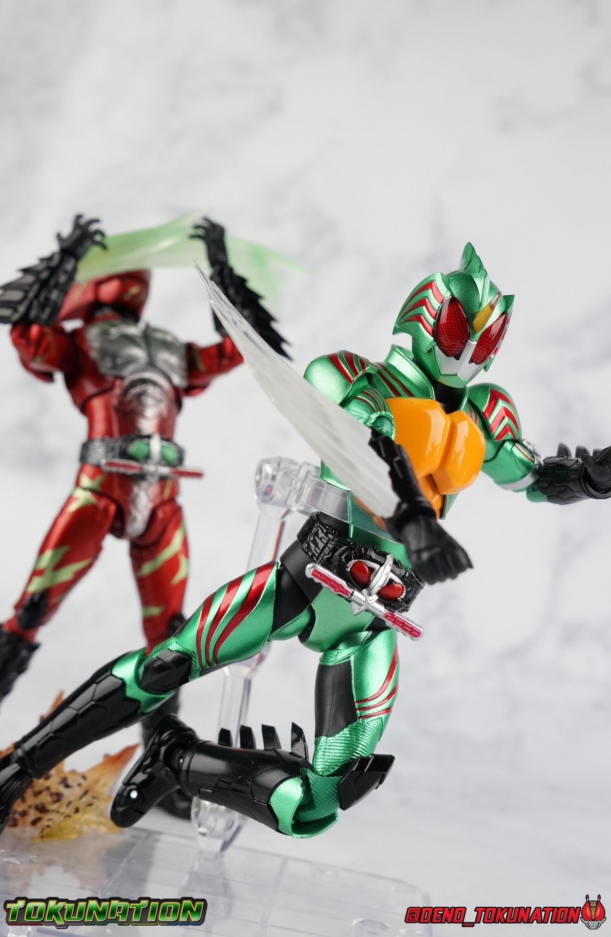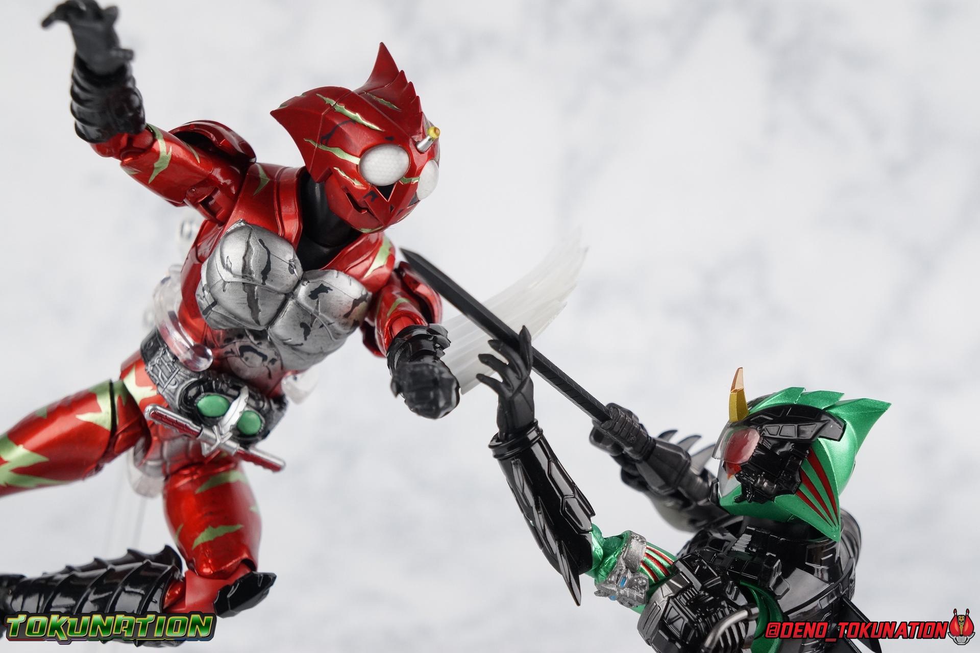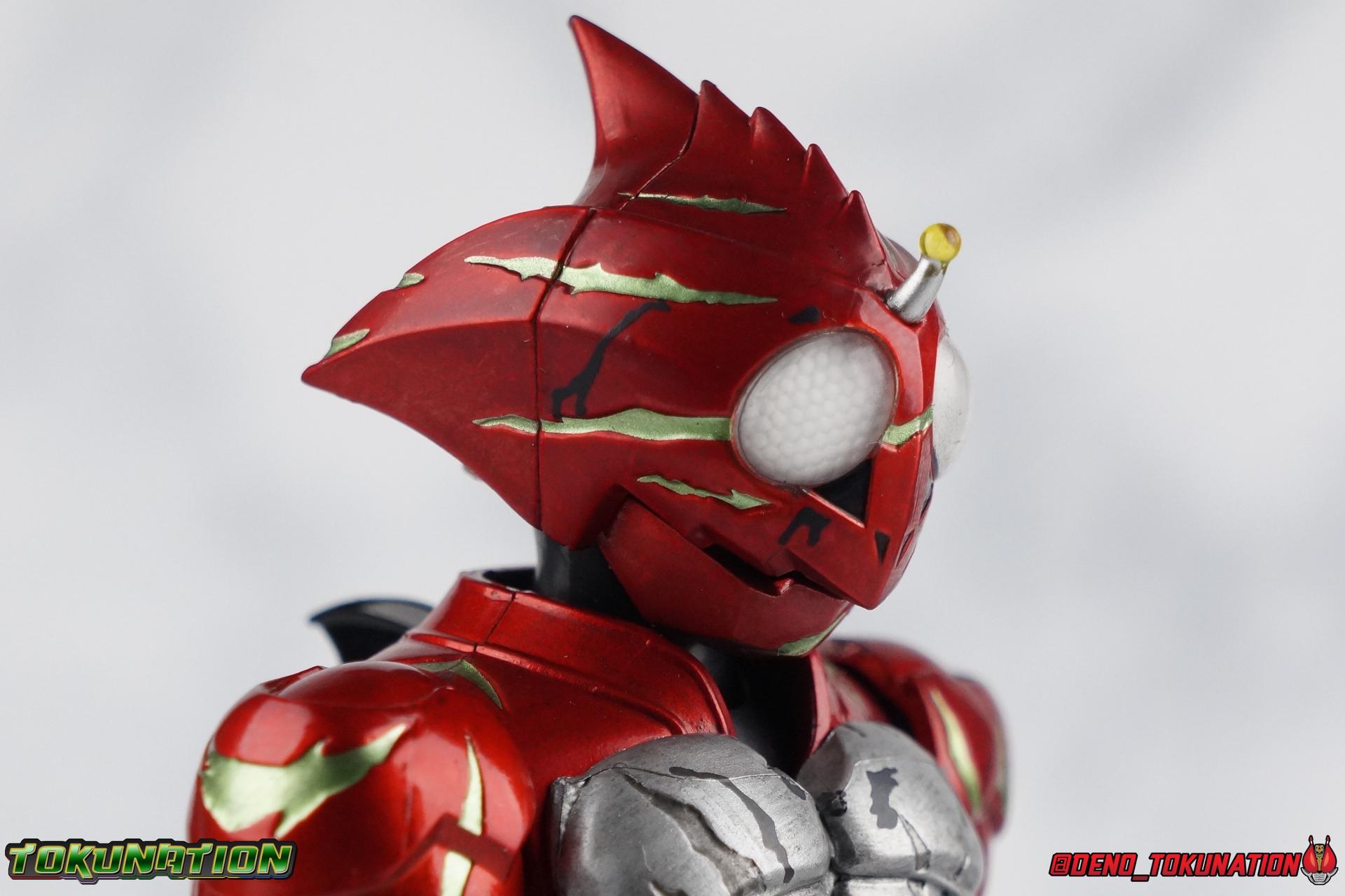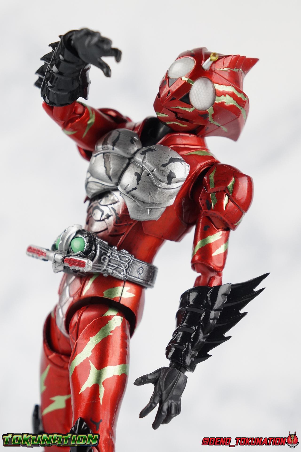 As we approach the theatrical release of the hotly anticipated Kamen Rider Amazons film we're back to take a look at the latest, and currently last, release for this series. S.H. Figuarts Kamen Rider Amazon Alpha (2nd Season Ver.) represents Jin Takeyama's more broken form after years of battle with Haruka. Badly scarred, and now blind, Alpha is a wild animal with the sole purpose of destroying every Amazon that crosses his path. Including his son, Chihiro. Packaging Season 2 Alpha comes in much the same style of box we've come to know from the Amazons line up. Though in particular I really love the shot they've used for the front facing character portrait this time. The figure and accessories are mostly packed in one tray identical to the original Alpha releases. A small additional tray that fits under the main one is included to house the Amazon Heart. Main Figure This portion consists of text largely taken from my review of the original Amazon Alpha release. This is a physically identical figure just with a few new paint apps for me to gush about. If you've checked out that review from last year then you mostly know what to expect. Amazon Alpha is a design that more closely resembles the original Showa Amazon, while Omega had a similar color scheme. It's clear though that Alpha has always been meant to be the more direct homage. In fact, specifically, Alpha is based on the S.I.C. Hero Saga exclusive form of Pre-Amazon. As for the figure itself, Alpha (as with any Amazons release thus far) is just a solid release. I do still have some issues with Alpha's leg design though. Sadly Alpha has some weirdly stunted ankles that can't quite bend back. The very tip of his heel points upward and impacts the fins on the back of his legs, making it difficult to balance him on occasion. The hips do feel a bit more free on this Season 2 version than the original release however. Where Omega looked like he was wearing a diaper but had functional legs, Alpha is visually better looking but his hips do still impact the waist a little too soon to be truly dynamic. The Amazons Driver is once again gorgeous with this release. The paint wash applied to the Season 2 Version of the Driver gets it a little closer to the used and scraped look it has in show. It approximates that worn damage but does miss the mark a little. The right grip on the driver is removable like Omega's, though Alpha includes no Battler Grip weapons. When you get to the torso you'll begin to see some significant additional paint apps that really make all the difference for the Season 2 version. The torso overall is dark with a black tinge painted over the silver. The scars molded into the chest have also had a deep paint wash applied to bring out all of their edges and show that Jin has suffered some terrible injuries in the years since season 1. In his first Season 2 appearance Jin is also particularly savage. Far more so than he'd even been before. He is literally bathed in Amazon blood when he defeats one. The figure has what at first seems to be a random application of dark black paint in various areas that on closer inspection is clearly intentional. This figure is blood-splattered in Amazons Blood. A small number of these blood stains are present on the legs and arms as well, but the majority of the rest are present on Alpha's head. Alphas' Arms are designed a bit better than Omega's in my opinion as well. Omega had this pesky habit of his shoulder pads popping off when you stretched the arm out too far, and they were on a friction tab that moved so getting them back was difficult. Alpha's shoulder pads are on ball joints making matters much more manageable. You get the same great range out of the elbows, though the wrists are a bit limited because the balljoint sits a tad too deep in the arm. Finally, Amazon Alpha's head is just spot on. I loved the bright green eyes of the original release, but this go around the compound eyes are now pale white. While that seems like an odd way to represent an injury, it goes back to a flashback battle Jin & Haruka had between seasons in which Haruka's Violent Slash destroyed Jin's vision. This blindness is also an homage to a brief stint from the original Showa Amazon television series, when Amazon lost his own sight. These milky white eyes, combined with the Amazons Blood splatter give Season 2 Alpha a truly haunting look. For a straight up repaint, Alpha Season 2 Version is well worth it for the new paint apps alone. I would love to see battle damaged repaints like this, for Omega & Neo as well. Accessories The basic accessories with this release are identical to the original version" 4 - sets of hands. That's 2 types of open hands, and two sets of "holding things" hands that can be used for something I'm sure. But Alpha doesn't include any Battler Grip weapons, and doesn't ride a Jungraider in show. So really the holding hands are superfluous here. 1 - Violent Slash effect part. It clips right on over the forearm blades on either arm and can be a little snug. So just be careful when removing it. 1 - Amazons Heart. The only new accessory for this release, this morbid accessory goes well with the distinctly more savage Season 2 version of Jin. Taking into account this accessory, the blood splattered on this version of Jin is even more perfect. I really love this accessory, though it would make more sense for Jin to have ripped it out of a generic Amazon of either generation, one such figure doesn't exist. So for this galleries purposes, he's ripped it out of Chihiro. Final Thoughts Kamen Rider Amazons has been my jam for two years now. I've been thoroughly pleased with every release from it frankly. There are still several more things I'd love to see make it to market as well. Evolved Mole Amazon, Iyu/Crow, and in particular the new Neo Alpha from the upcoming movie. I'd love to have them all. And if getting things like that means I have to buy some minor repaints with a few new bells & whistl