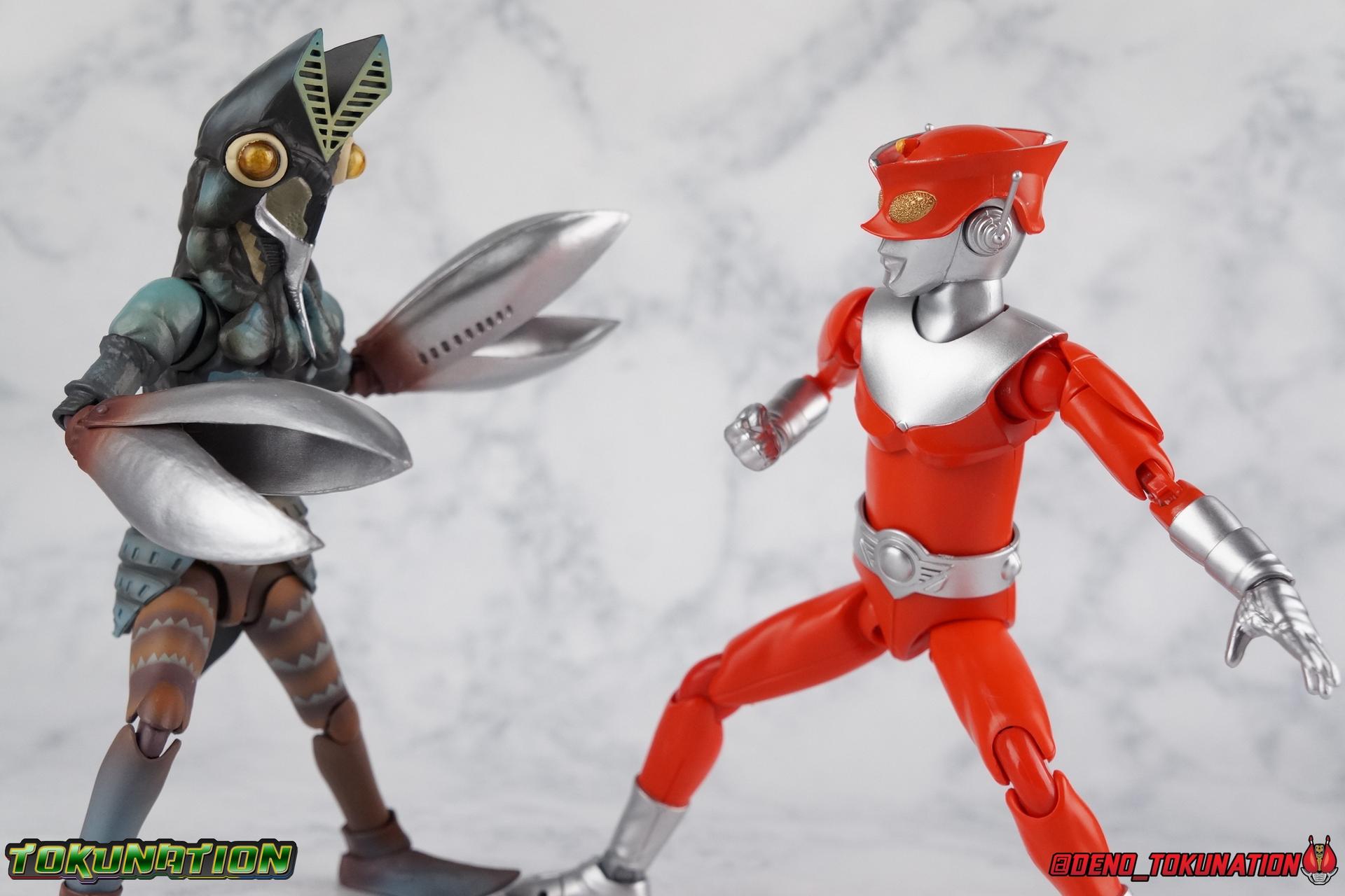 One of the most violent and obscure heroes in history, Redman hails from his own short lived 1972 micro-series. Consisting of 138 5-minute "Battles", Redman would nearly always face off against re-used Kaiju suits from the Ultraman franchise. A few other odd monsters from other Tsuburaya productions would occasionally appear as well. But what Redman is so well known for, is the unceremoniously violent way in which he would attack, beat, and destroy these Kaiju. Each episode sees him viciously attack and ultimately kill his enemies, sometimes even just with the brute force of his kicks & punches alone. The series regained notoriety in 2016 thanks to Tsuburaya streaming it in it's entirety one episode at a time on their youtube page. Since then, Tamashii Nations expressed interest in producing a figure of the character back in October 2016, but more recently Evolution Toy has finally done so. Revitalizing their own defunct tokusatsu heroes collector line, Evolution has begun the Hero Action Figure (HAF) line. Though many figure prototypes have already been seen, and several been made available for pre-order, the first release in the line only came out about a week ago. So without further adieu we present this (brutally honest) gallery & review, of HAF Redman. Main Figure Alright. So this is not only the first figure in a brand new line, but also, the very first fully poseable figure of Redman ever. This obscure old psycho has never had this kind of collector treatment before. Vinyls are the primary extent of any Redman toys that existed prior to this release. So in one sense this figure needed to set the bar high to set a precedent for this new toyline. In another sense it needed to set the bar high because it's the first poseable/collector oriented figure this character has ever received. Sadly, and somewhat expectedly, this figure fails in most any sense. First, a brief history of Evolution Toy. This company has been around for quite some time, technically. A large chunk of their history comes from their time as the long gone company CM's Corp, which filed for bankruptcy in 2014. The company as it is now is mostly known for it's long running Dynamite Action line, which has made use of a system of magnet's allowing for fluid posing and interchangeability. In the waning days of CM's, quality control had already become somewhat suspect. One would think that a new company rising from this like Evolution Toy would potentially improve on this. However in recent years Evolution has also produced sub-standard figures. Macross collectors have experienced this with their lackluster VF-2SS release. Their recent Mospeada Legioss is similarly plagued with issues. Their older toku hero figures that predate HAF, like Zone Fighter & Iron King were some of the most disappointing 6" scale collector figures on the market for their time as well. My point is this company has had many many misses in it's time. My point in going over the troubled production history of this company has hopefully prepared you for what's to come. The HAF line is essentially an attempt to copy Bandai's now defunct Ultra-Act series of Ultraman releases, but instead focusing on the obscure Tsuburaya heroes that are largely (except Gridman) forgotten these days. Redman is a unique choice because of his cult status. And boy the figure itself is sure unique alright. The overall plastic quality of this release feels very, old? When I say Evolution was specifically going for Ultra-Act and not the newer S.H. Figuarts Ultras I meant it. The plastic feels like the same hard inflexible material old Ultra-Acts were made of, and the joints are the same kind of mixed bag. For starters, Redman actually has some really wide flat feet that can be useful for posing. Honestly they're too big though, looking more like clown shoes than anything. The ankles are actually on pretty free moving balljoints that allow the foot to move pretty far up and forward and back. This combined with tight toe bends give Redman a decent bit of stability, though the ankles are quite loose. The knees are where big problems begin. The can't even quite make a 90 degree angle. While jointed on both ends of the knee, there just isn't much room before the back of the leg impacts itself. So that's bad right? Well, the hip is in the exact same situation. You can pull the hip down and out ever so slightly, but even this part can barely hit 90 degrees. And the hips can't move out very widely either. This is a real detriment to getting Redman into any great dynamic poses that don't just look terrible. Redman was a crazy dynamic fighter. Because of the shows low budget, the titular character had to do a ton of hand to hand combat and got very active. The figures' inability to replicate even a fraction of that energy is saddening. While the legs are a mixed back, the torso is more disappointing. While clearly two pieces, the lower & upper torso hardly move. They may as well be one giant part. The lower half can't move at all, the upper body actually can, but it's on a dangerously tight joint. I'm fairly certain if I apply any more force it'll break. And even when you can get it to move, rather than staying where you put it, the whole thing just snaps back in place. Moving it makes a really nasty plastic scraping/squeaking noise as well, and plastic shavings have been falling out of the torso on mine after moving it. The takeaway here is that it's a poorly designed joint and using it will likely cause damage. If there was just some room to lean the upper body left or right and give him a more natural bend, then you could get some decent poses out of Redman. These are real issues this figure has, but by far the biggest let down of it is the arms. LITERALLY, as soon as I opened my Redman, his left arm fell apart entirely. Essentially the arm is held together with one peg in the bicep. It's supposed to plug into the bicep with a piece of shoulder armor around it from the shoulder joint.