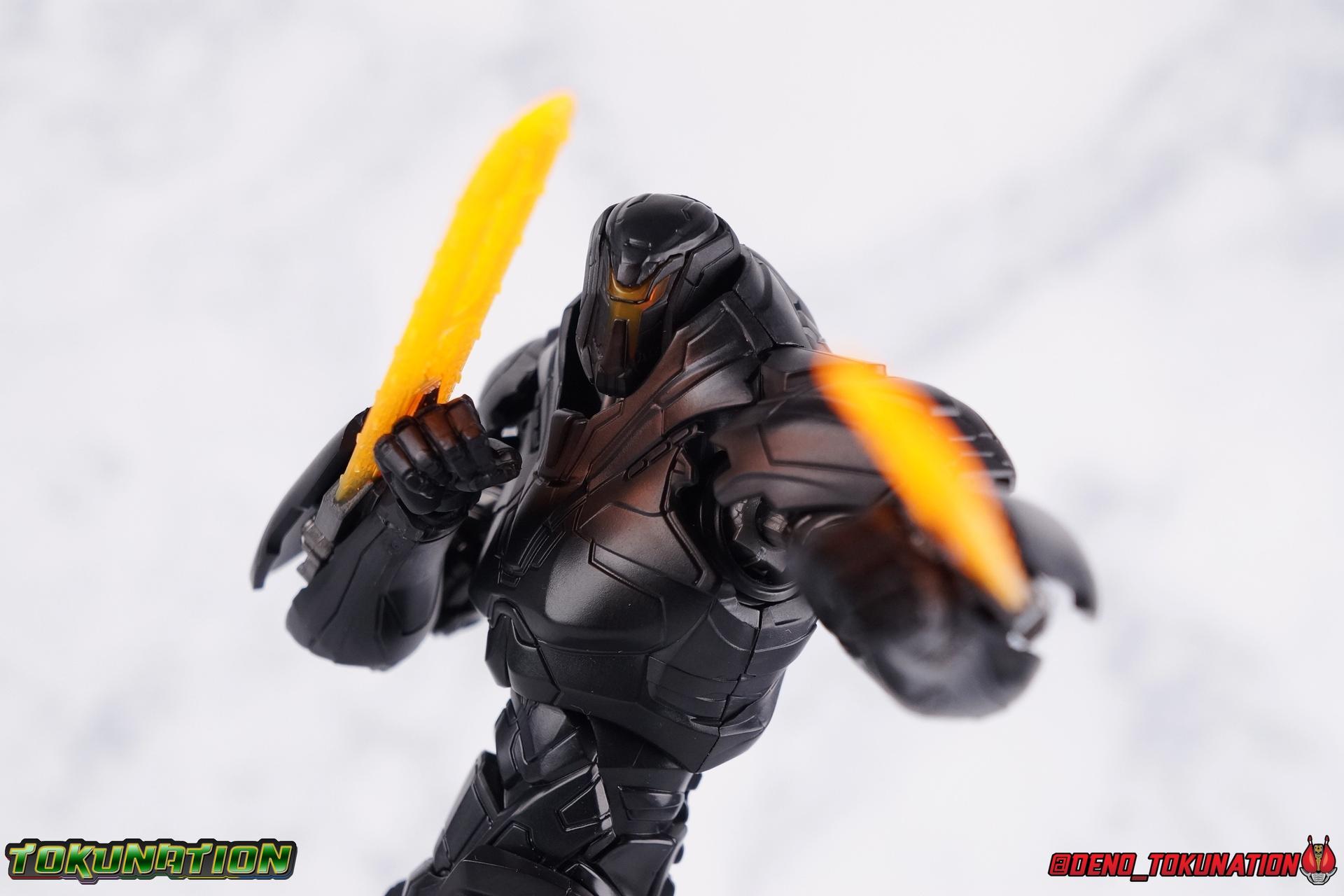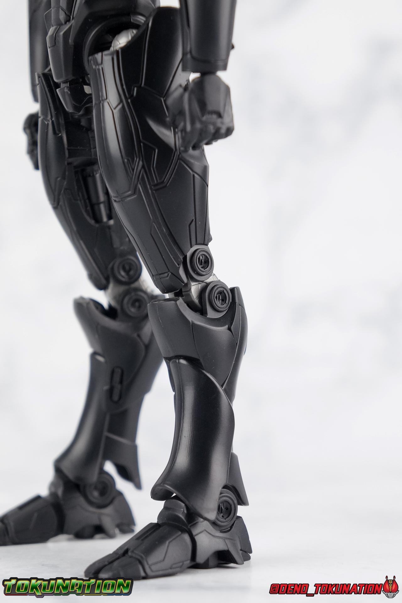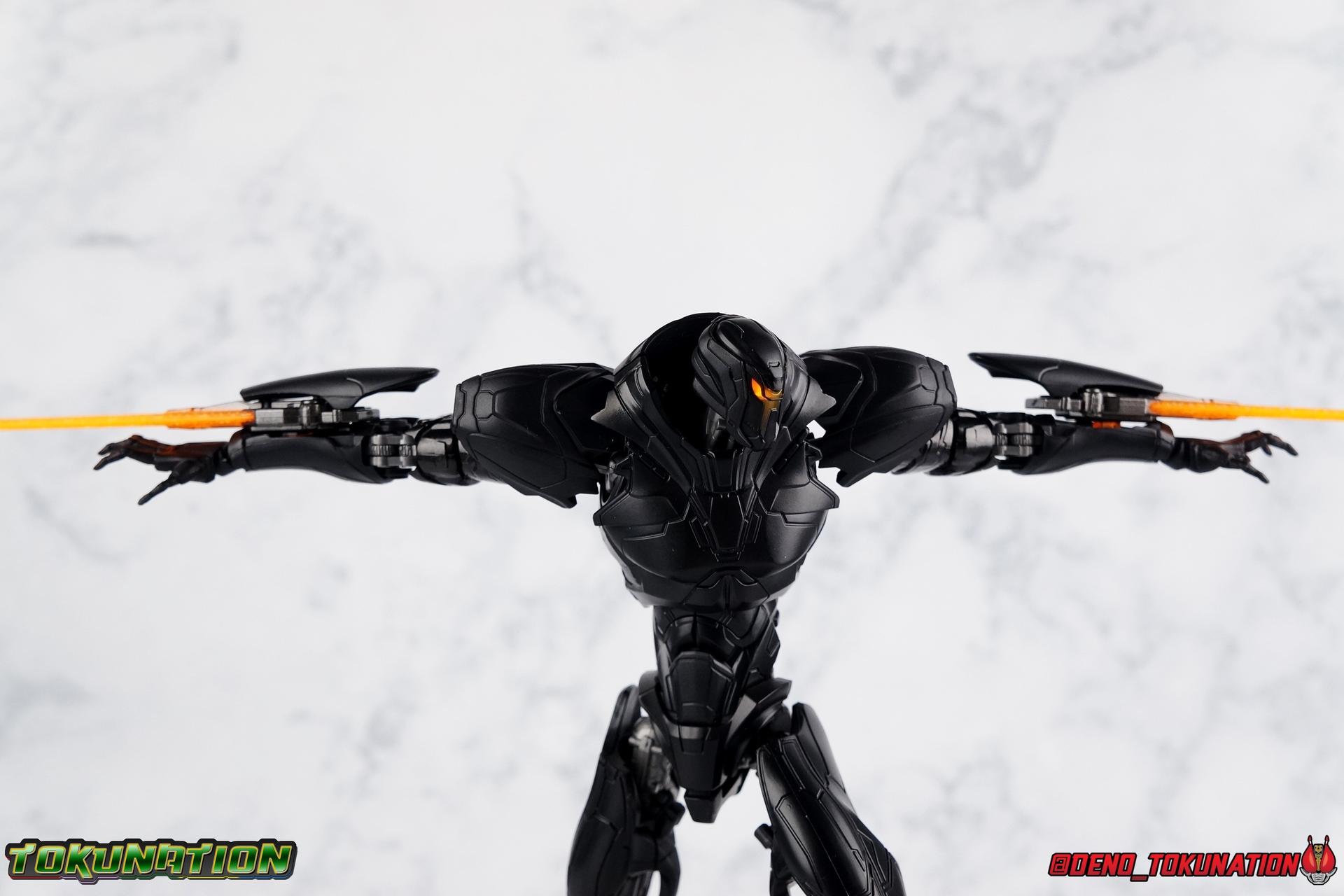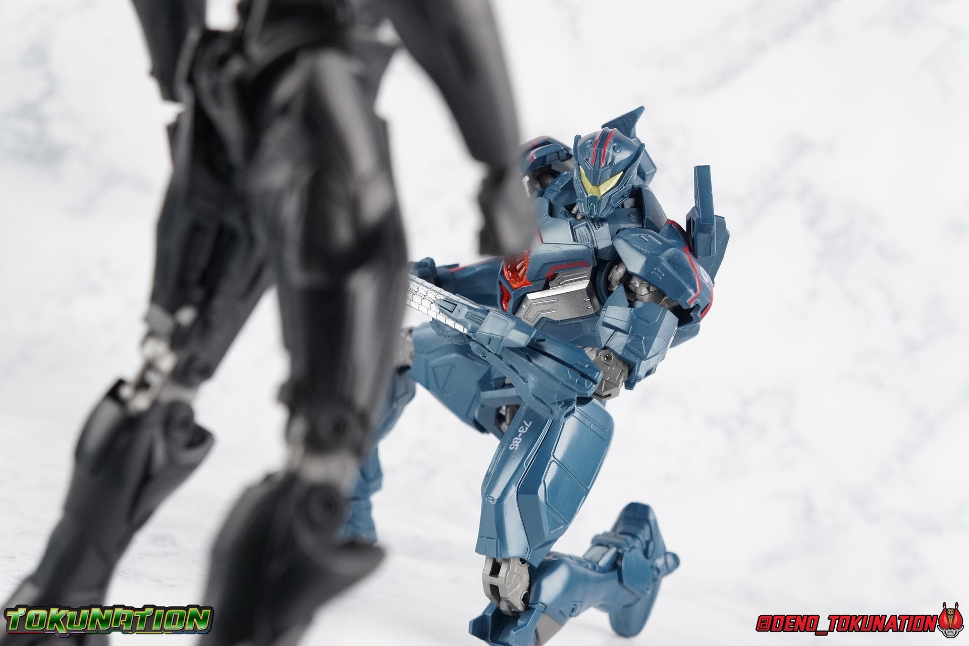 In the years' long war against the Precursors & their weapons of mass destruction, the Kaiju, the Pan Pacific Defense Corps has continued to develop newer and better Jaegers. And while a Drone program is also under development by Shao Industries to eventually replace the PPDC & it's pilots, the occasional rogue element does arise. Enter: Obsidian Fury. A mysterious Jaeger which rose from the ocean to battle Gipsy Avenger. Equipped with advanced weaponry and capable of entirely inhuman movement, this monstrous mech is a force for our heroes to reckon with. Can Jake & Nate uncover the secret truth of Obsidian Fury? You'll have to watch Pacific Rim Uprising to find out! ** Beware, there be spoilers ahead! If you'd rather not be spoiled on some minor elements of Pacific Rim Uprising then I wouldn't read my review too thoroughly. Packaging As I mentioned with Gipsy Avenger, Pacific Rim Robot Spirits have gone in a totally new direction this toyline hasn't really done before in terms of packaging. Each figure comes in a box with a punched tag to hang it on a retail store hook. It's definitely a new thing for Robot Spirits/Damashii to so openly market these figure at mass market retail. But perhaps their appeal and simultaneous release in both Western & Asian markets contributed to this decision? In either case these boxes are very unique and totally their own thing within the line. Even in regards to how slim and tall they are. I really like this new direction. Obsidian Fury is also the first, and so far only, evil Jaeger in the line so his packaging get's some extra red accenting that the others don't. Main Figure Literally and figuratively, Obsidian Fury is an entirely different beast from Gipsy Avenger. Gipsy served as a modernized update, a streamlined version, of the Gipsy Danger. Obsidian Fury isn't really bound by any such nostalgia and is therefore a bit more free to embrace it's alien nature. As a figure, this means that Obsidian is incredibly poseable and has very few of the limitations the other figures in the line have had. Like I said, Obsidian Fury is quite alien, and a lot of the design choices for the figure reflect it's inhuman nature. Much like Gipsy, Obsidian has really nice ball jointed ankles with plenty of range in all directions. They can even spin a full 360 degrees. I really really like the small details on this guy that set him apart from the more human like Jaegers, like his two-toed feet that remind me of like a mechanoid ninja. By far the thing that sells the alien-ness of Fury the most is the knee joint. It's designed in such a way that you can purposefully hyper extend it back, so far that the calfs wind up in an entirely different line of sight from the rest of the body when you look from the side. This kind of free movement makes for some insane posing potential. This guy cans trike a pose, and hold it. The waist & hip area is designed in much the same way as Gipsy. Each thigh has a rotating section within it attached to the hip ball joint. These rotating sections let you turn the leg in or out, but they themselves are also attached to another balljoint down within the thigh meaning they have even more play to them. Double jointed thighs are a welcome feature. The hip balljoints are aslo attached to the interior of the waist on a shared gray panel. One which move's independently of the black waist/crotch itself. This entire assembly can swing in and out of both sides of the waist allowing for maximum movement. Lining things back up perfectly can be a pain, but all of these features add up to some incredible legs as whole. The torso is also similarly designed to Gipsy. The lower half is one piece connected to the waist so there's no joint to make it move. Only the upper body floats on a ball joint. But thanks to how slender the lower half is, you can literally spin the upper body completely around, a full 360 degrees. The forward & back movement leaves a bit to be desired, but I'm not terribly displeased. As with Gipsy, Fury has some pretty poorly designed shoulders. In this case much more poorly. Underneath those giant shoulder pads is a very spindly looking balljoint that sticks out and attaches to the bicep. Weirdly enough, there's no true bicep swivel in the arm, but rather right above the bicep where it attaches to the balljoint, is a swivel. This can make using the arms a bit more awkward than I'd like. I'm assuming the joint was placed there because the giant shoulder pads make it look like there's more mass to the upper arm than actually exists. The movie's CG model could certainly make this work, but in physical toy form it's a bit more difficult to cheat that. The elbows are fairly standard like Gipsy, and the wrist joints are just the same. Though Obsidian's end to pull the joint completely out every time you change hands. And those big shoulder pads I keep mentioning? They're on some weird peg joint that lies on the tip of the shoulder blade. You would think this means they could rotate up and back to free up the arms some, but they actually don't function very well at all. This brings us to that beady little head of Obsidian Fury's. Set down a bit more into the shoulders of the figure it actually has a bit more range than I'd thought. Double jointed like Gipsy, Obsidian can angle his out to the sides quite nicely and stick his head out and forward menacingly as well. The only issue being backward movement where you always run into the neck cuff. Overall this is an exceptionally well articulated figure. But the lack of the neon orange light details that the movie model has can make this guy just blend together visually. There's a ton of uniquely sculpted detail everywhere that hasn't been painted properly and thus makes the figure seem really bland. Accessories Like Gipsy Avenger, Obsidian Fury comes with the bare minimum of what he needs, but thanks to the higher price point, it feels a bit less like a good deal. 2 - additional hands. Just a pair of