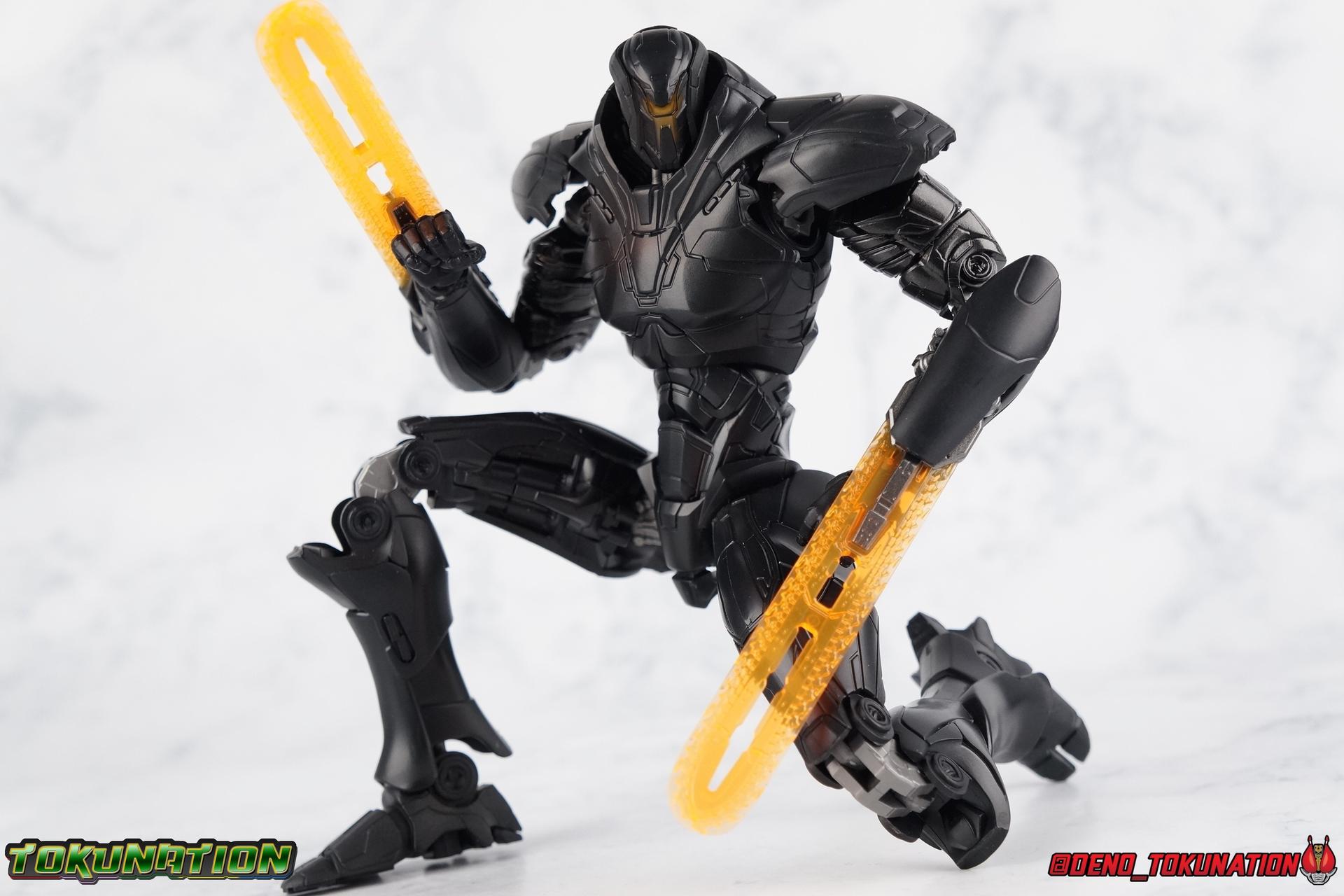 In the years' long war against the Precursors & their weapons of mass destruction, the Kaiju, the Pan Pacific Defense Corps has continued to develop newer and better Jaegers. And while a Drone program is also under development by Shao Industries to eventually replace the PPDC & it's pilots, the occasional rogue element does arise. Enter: Obsidian Fury. A mysterious Jaeger which rose from the ocean to battle Gipsy Avenger. Equipped with advanced weaponry and capable of entirely inhuman movement, this monstrous mech is a force for our heroes to reckon with. Can Jake & Nate uncover the secret truth of Obsidian Fury? You'll have to watch Pacific Rim Uprising to find out! ** Beware, there be spoilers ahead! If you'd rather not be spoiled on some minor elements of Pacific Rim Uprising then I wouldn't read my review too thoroughly. Packaging As I mentioned with Gipsy Avenger, Pacific Rim Robot Spirits have gone in a totally new direction this toyline hasn't really done before in terms of packaging. Each figure comes in a box with a punched tag to hang it on a retail store hook. It's definitely a new thing for Robot Spirits/Damashii to so openly market these figure at mass market retail. But perhaps their appeal and simultaneous release in both Western & Asian markets contributed to this decision? In either case these boxes are very unique and totally their own thing within the line. Even in regards to how slim and tall they are. I really like this new direction. Obsidian Fury is also the first, and so far only, evil Jaeger in the line so his packaging get's some extra red accenting that the others don't. Main Figure Literally and figuratively, Obsidian Fury is an entirely different beast from Gipsy Avenger. Gipsy served as a modernized update, a streamlined version, of the Gipsy Danger. Obsidian Fury isn't really bound by any such nostalgia and is therefore a bit more free to embrace it's alien nature. As a figure, this means that Obsidian is incredibly poseable and has very few of the limitations the other figures in the line have had. Like I said, Obsidian Fury is quite alien, and a lot of the design choices for the figure reflect it's inhuman nature. Much like Gipsy, Obsidian has really nice ball jointed ankles with plenty of range in all directions. They can even spin a full 360 degrees. I really really like the small details on this guy that set him apart from the more human like Jaegers, like his two-toed feet that remind me of like a mechanoid ninja. By far the thing that sells the alien-ness of Fury the most is the knee joint. It's designed in such a way that you can purposefully hyper extend it back, so far that the calfs wind up in an entirely different line of sight from the rest of the body when you look from the side. This kind of free movement makes for some insane posing potential. This guy cans trike a pose, and hold it. The waist & hip area is designed in much the same way as Gipsy. Each thigh has a rotating section within it attached to the hip ball joint. These rotating sections let you turn the leg in or out, but they themselves are also attached to another balljoint down within the thigh meaning they have even more play to them. Double jointed thighs are a welcome feature. The hip balljoints are aslo attached to the interior of the waist on a shared gray panel. One which move's independently of the black waist/crotch itself. This entire assembly can swing in and out of both sides of the waist allowing for maximum movement. Lining things back up perfectly can be a pain, but all of these features add up to some incredible legs as whole. The torso is also similarly designed to Gipsy. The lower half is one piece connected to the waist so there's no joint to make it move. Only the upper body floats on a ball joint. But thanks to how slender the lower half is, you can literally spin the upper body completely around, a full 360 degrees. The forward & back movement leaves a bit to be desired, but I'm not terribly displeased. As with Gipsy, Fury has some pretty poorly designed shoulders. In this case much more poorly. Underneath those giant shoulder pads is a very spindly looking balljoint that sticks out and attaches to the bicep. Weirdly enough, there's no true bicep swivel in the arm, but rather right above the bicep where it attaches to the balljoint, is a swivel. This can make using the arms a bit more awkward than I'd like. I'm assuming the joint was placed there because the giant shoulder pads make it look like there's more mass to the upper arm than actually exists. The movie's CG model could certainly make this work, but in physical toy form it's a bit more difficult to cheat that. The elbows are fairly standard like Gipsy, and the wrist joints are just the same. Though Obsidian's end to pull the joint completely out every time you change hands. And those big shoulder pads I keep mentioning? They're on some weird peg joint that lies on the tip of the shoulder blade. You would think this means they could rotate up and back to free up the arms some, but they actually don't function very well at all. This brings us to that beady little head of Obsidian Fury's. Set down a bit more into the shoulders of the figure it actually has a bit more range than I'd thought. Double jointed like Gipsy, Obsidian can angle his out to the sides quite nicely and stick his head out and forward menacingly as well. The only issue being backward movement where you always run into the neck cuff. Overall this is an exceptionally well articulated figure. But the lack of the neon orange light details that the movie model has can make this guy just blend together visually. There's a ton of uniquely sculpted detail everywhere that hasn't been painted properly and thus makes the figure seem really bland. Accessories Like Gipsy Avenger, Obsidian Fury comes with the bare minimum of what he needs, but thanks to the higher price point, it feels a bit less like a good deal. 2 - additional hands. Just a pair of